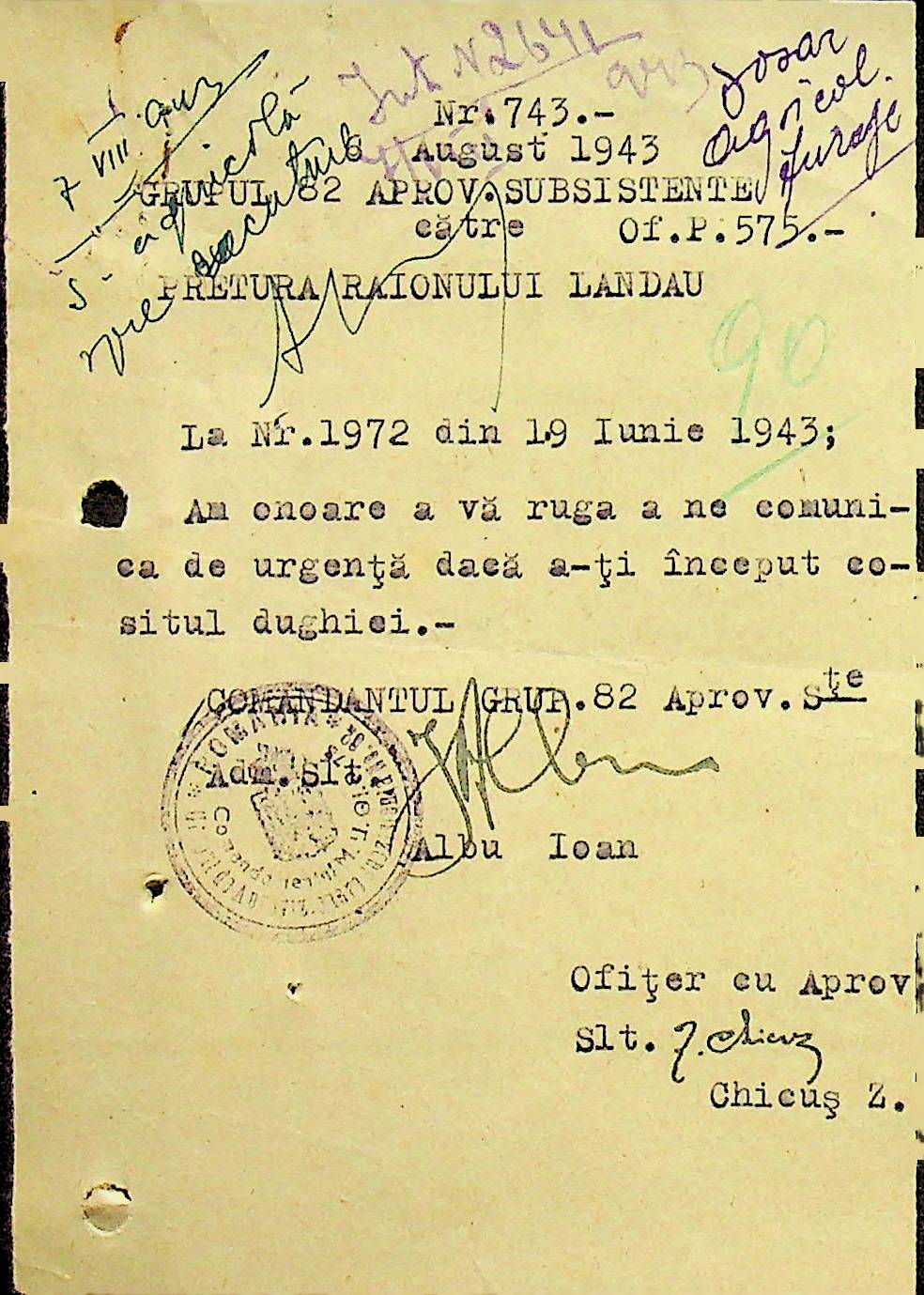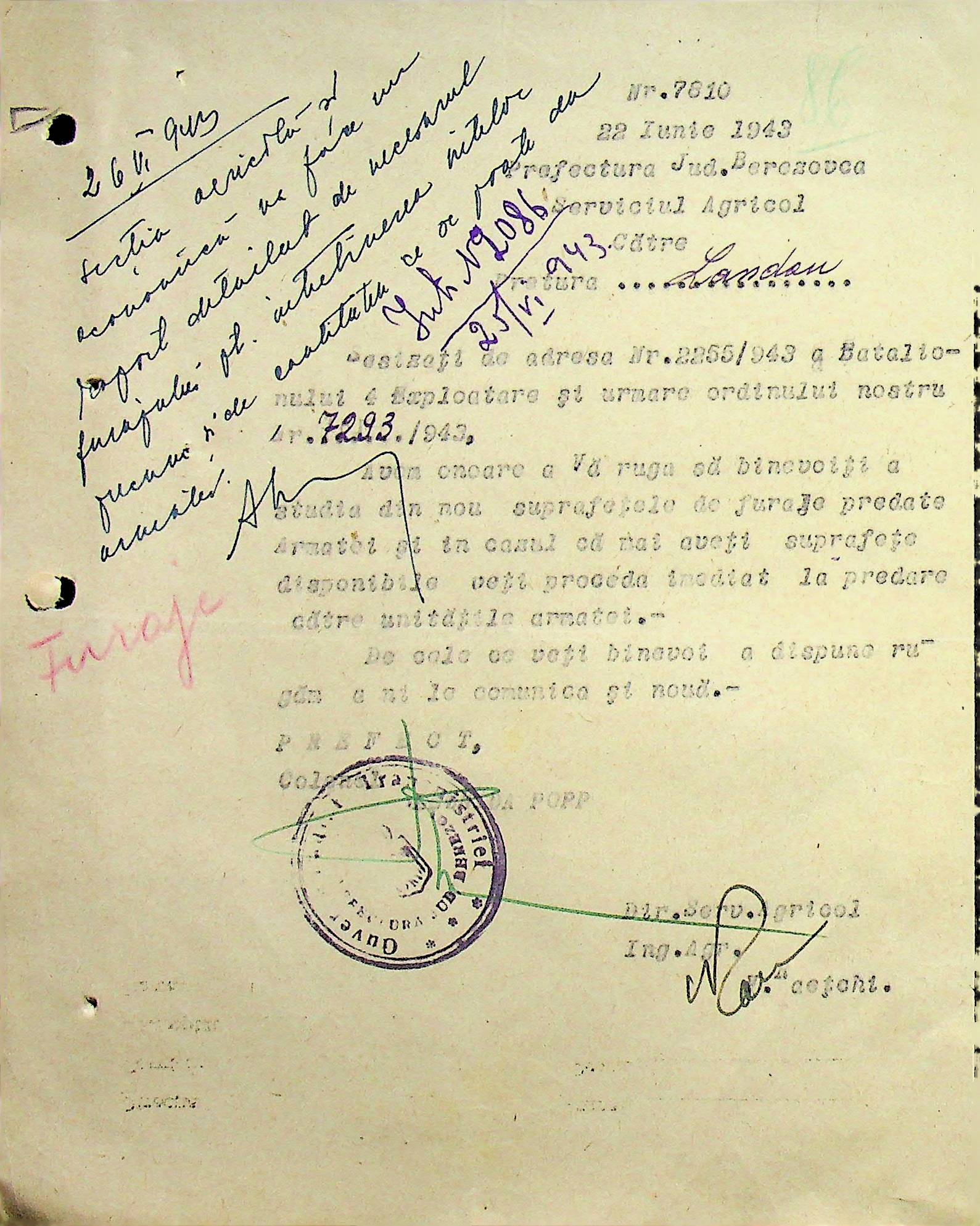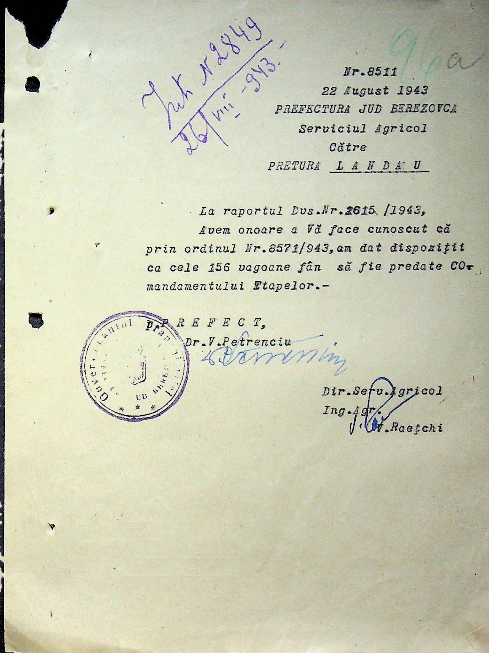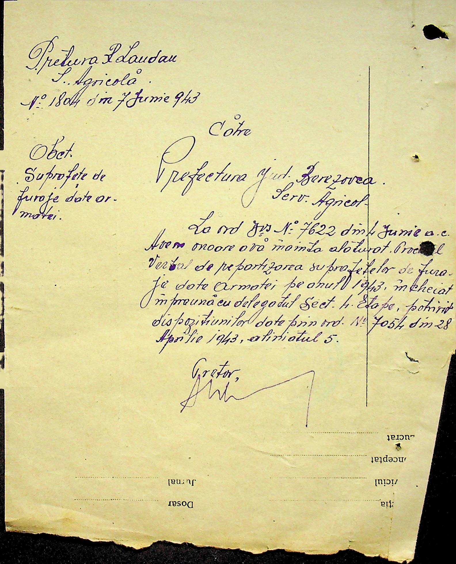 • • • • Справа № 88 Листування з сільськогосподарським відділом префектури Березівського повіту про облік та зберігання продуктів харчування на складах, відвантаження зерна, овочів та фуражу для німецько-румунської армії; протоколи про забезпечення економічних потреб району та задоволення продовольчих потреб німецько-румунських військових частин