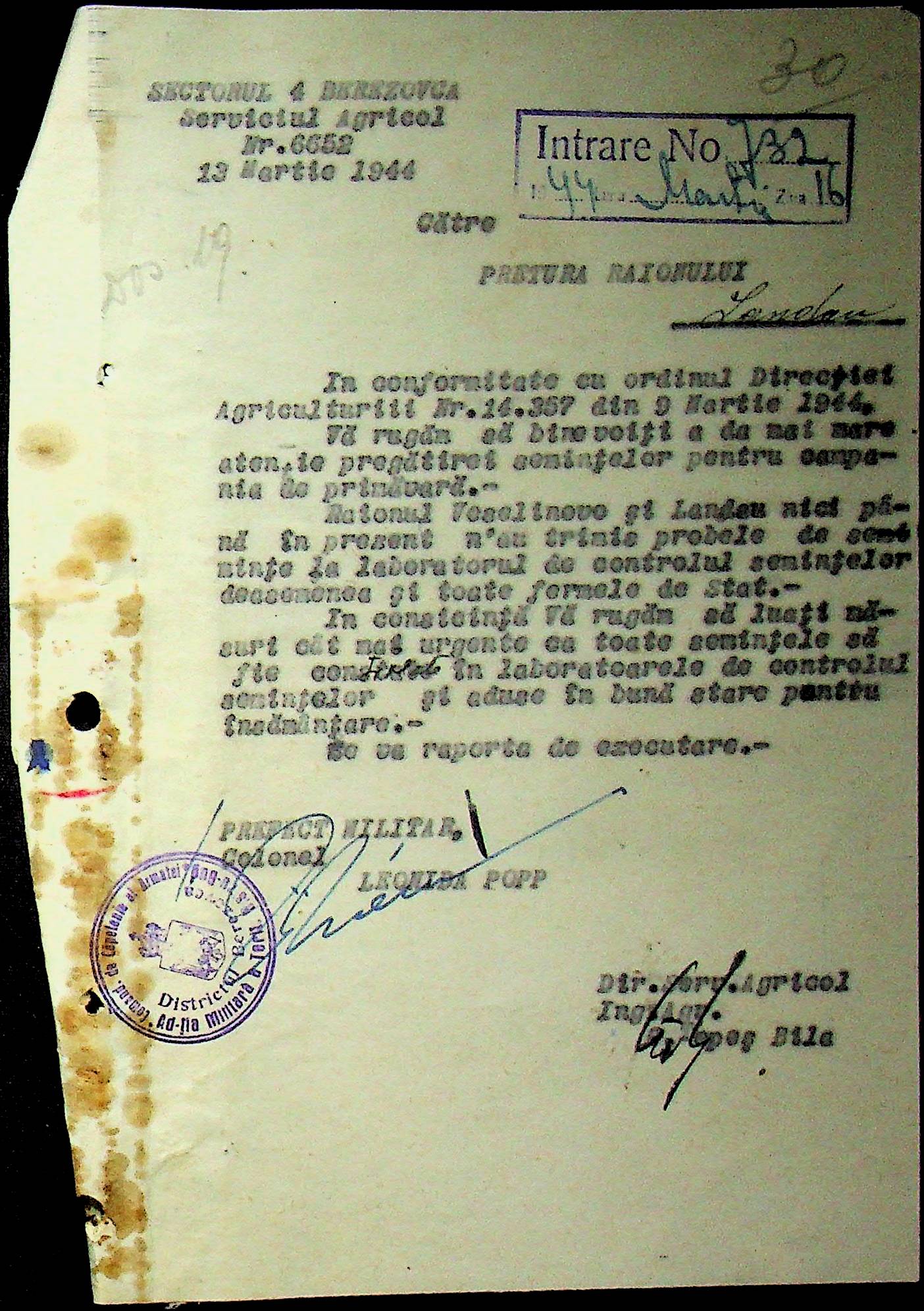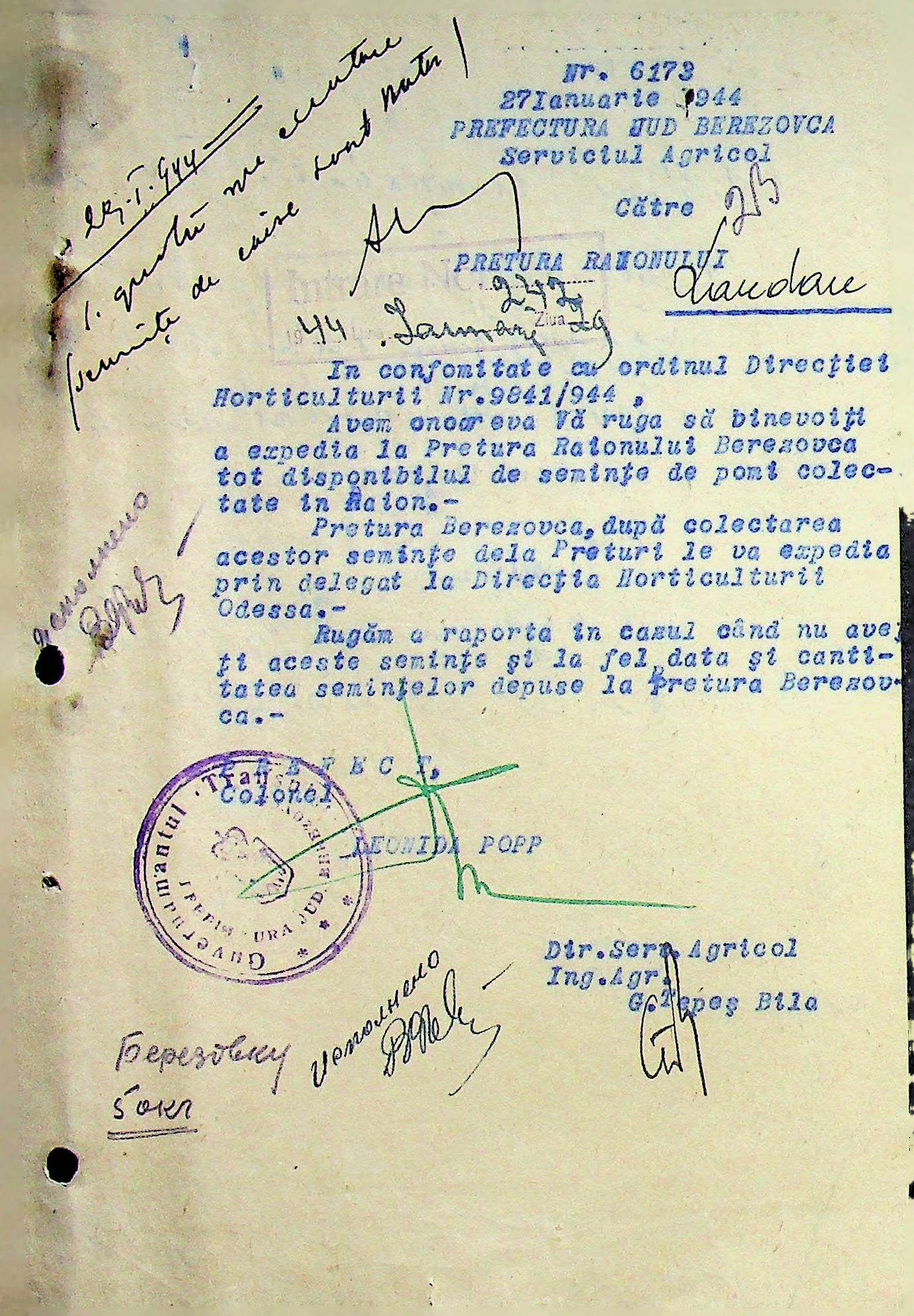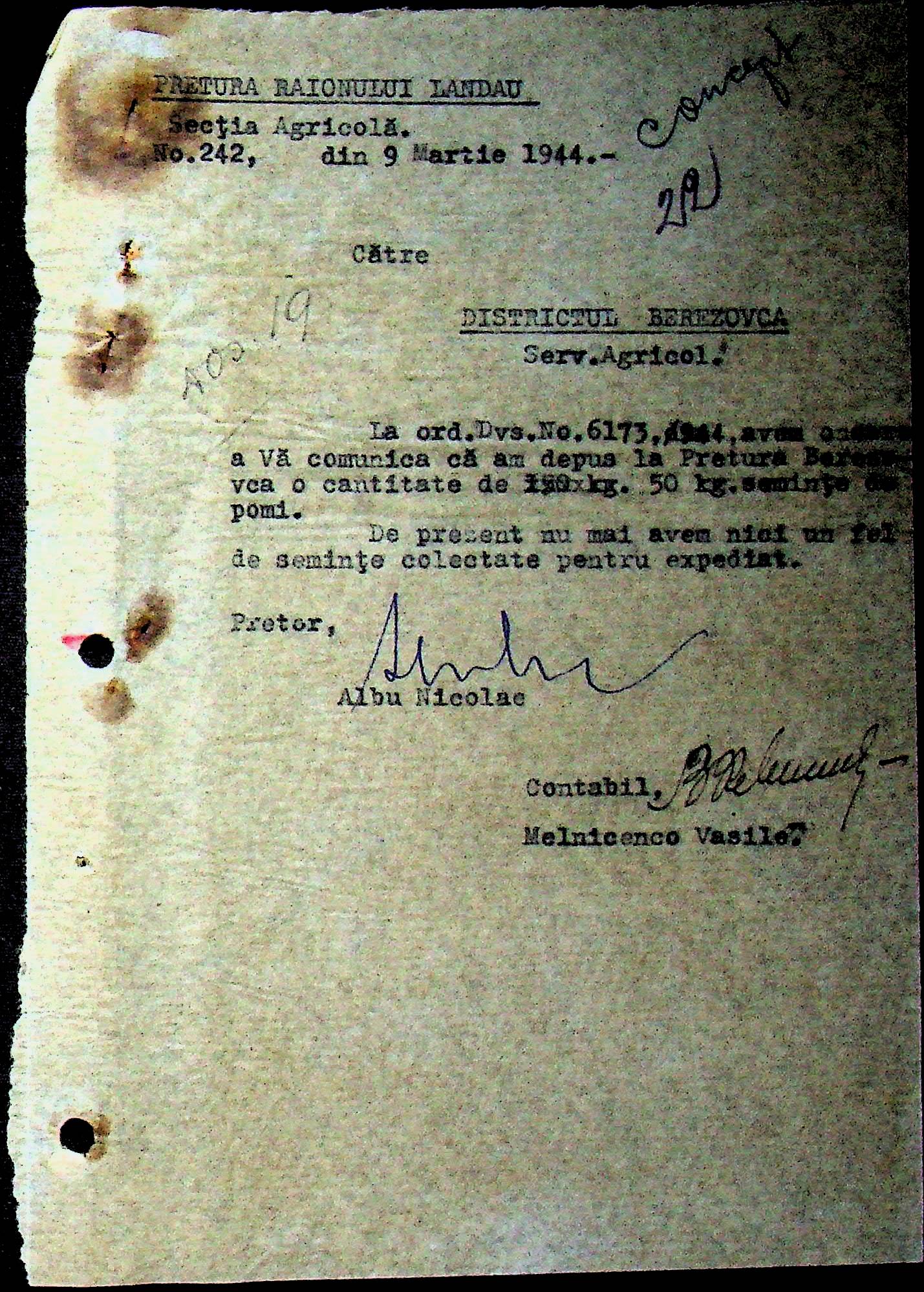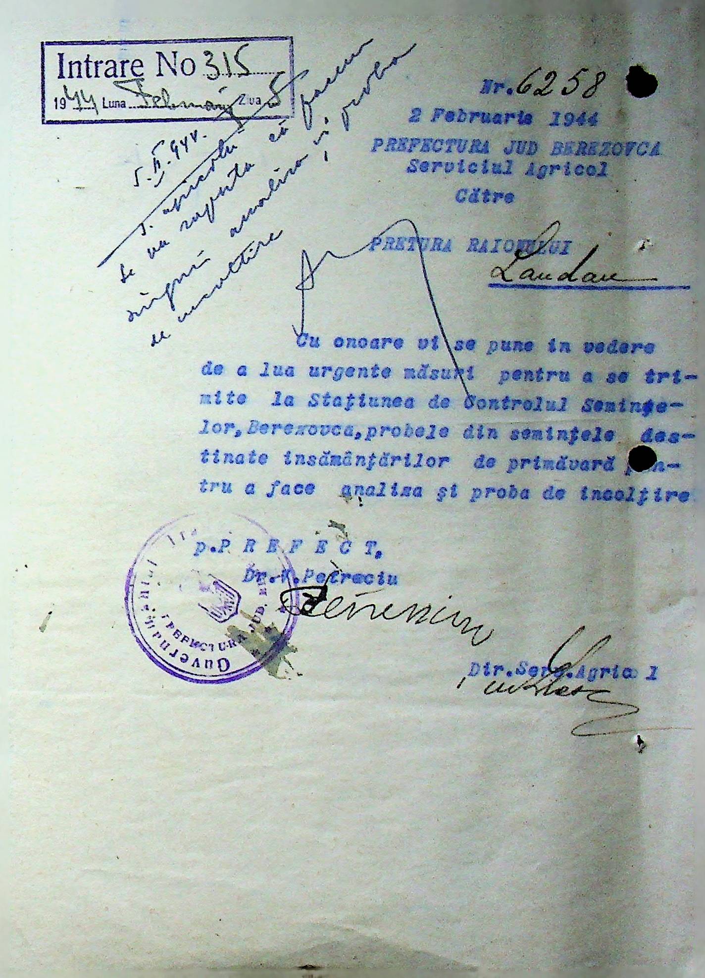• • • • Справа № 92 Листування з сільськогосподарським відділом префектури Березівського повіту про вжиття термінових заходів для обмолоту конопель, відбір насіння ячменю та відправку на аналіз, випробування насіння в лабораторії та його сертифікацію; про надання відомостей щодо наявного насіння цибулі та овочів в господарствах району, підготовку та транспортування насіння зернових, овочевих культур та люцерни в Румунію