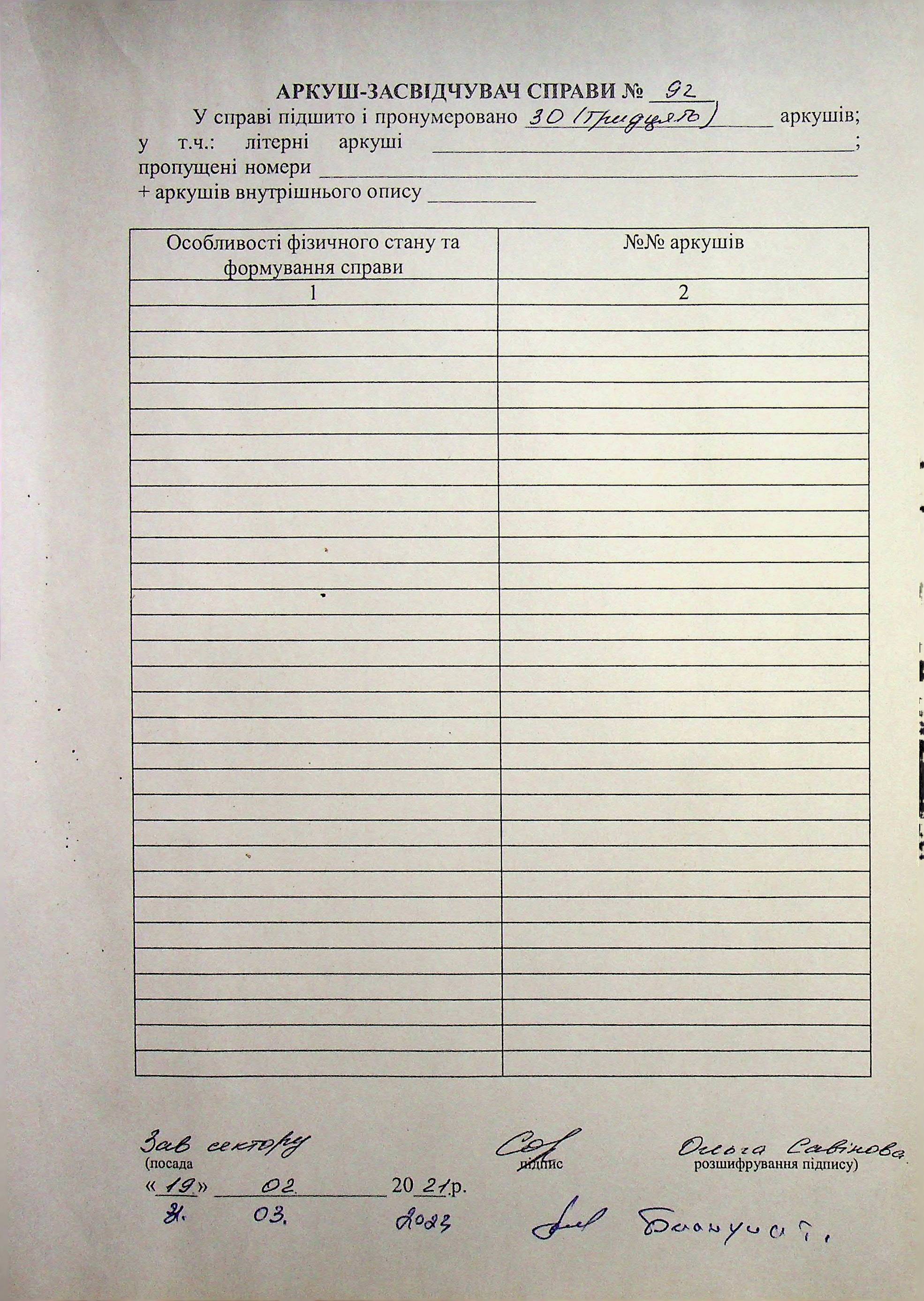 Фонд Н-1594 / Опис 3 / Справа 092