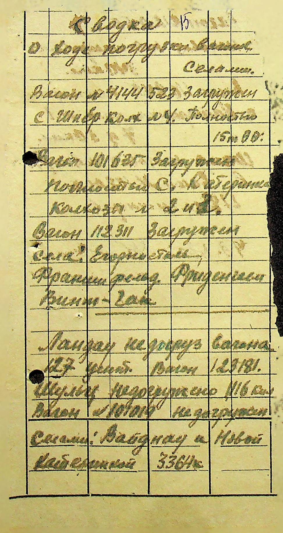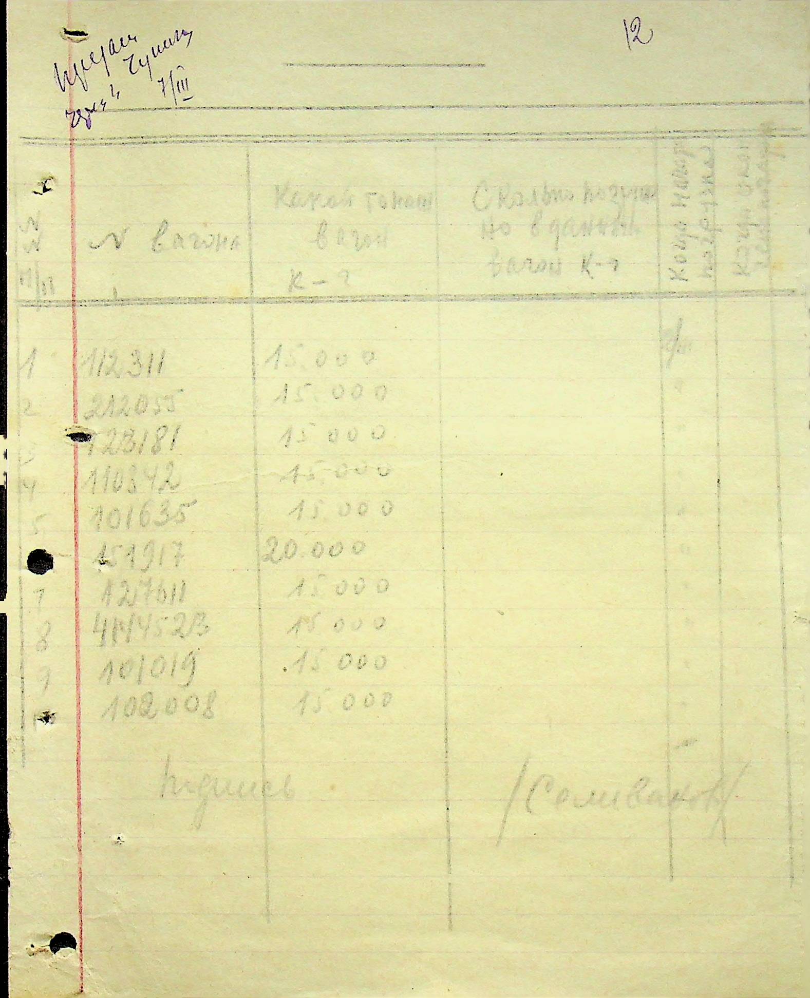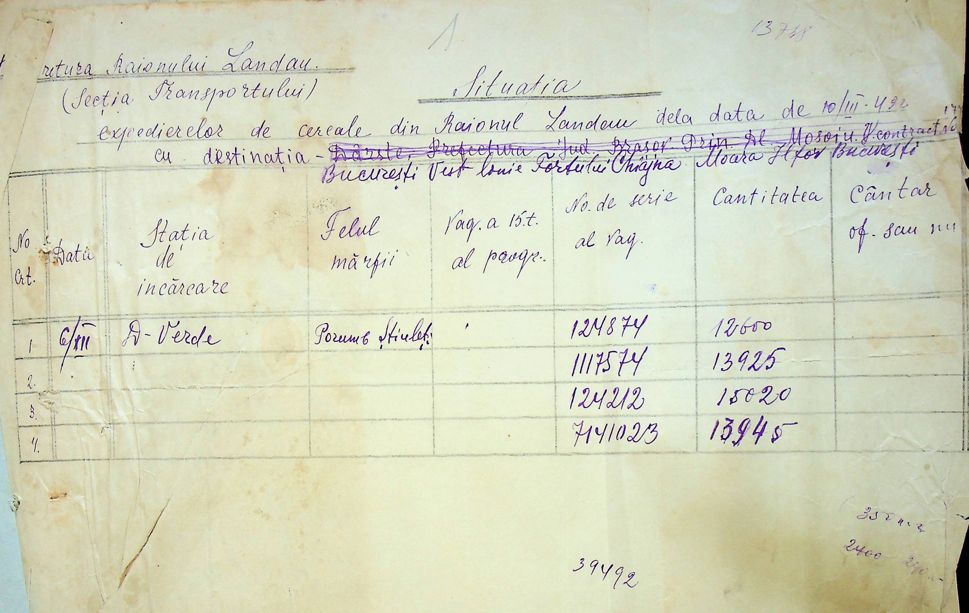 • • • • Справа № 98 Документи (відомості, зведення, розрахунки, листування) про подачу вагонів під завантаження, їх реєстрацію, початкову вагу та вагу після навантаження, результати зважування вагонів, правила перевезення вантажів залізницею, приймання вантажів до перевезення; про виконання плану здачі кукурудзи та відомості про залишки кукурудзи по земельних общинах, кількість відправленого зерна залізничним транспортом; про необхідну кількість вагонів для відправки вантажів врожаю 1942 року