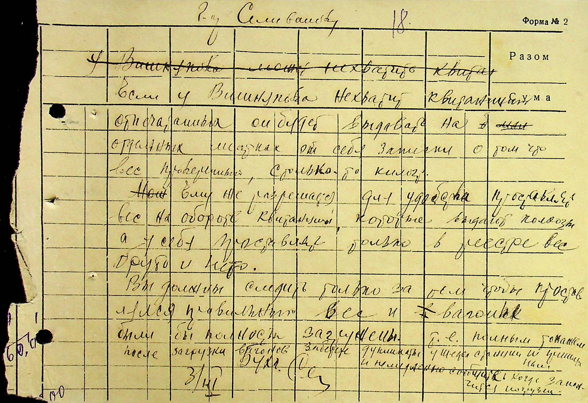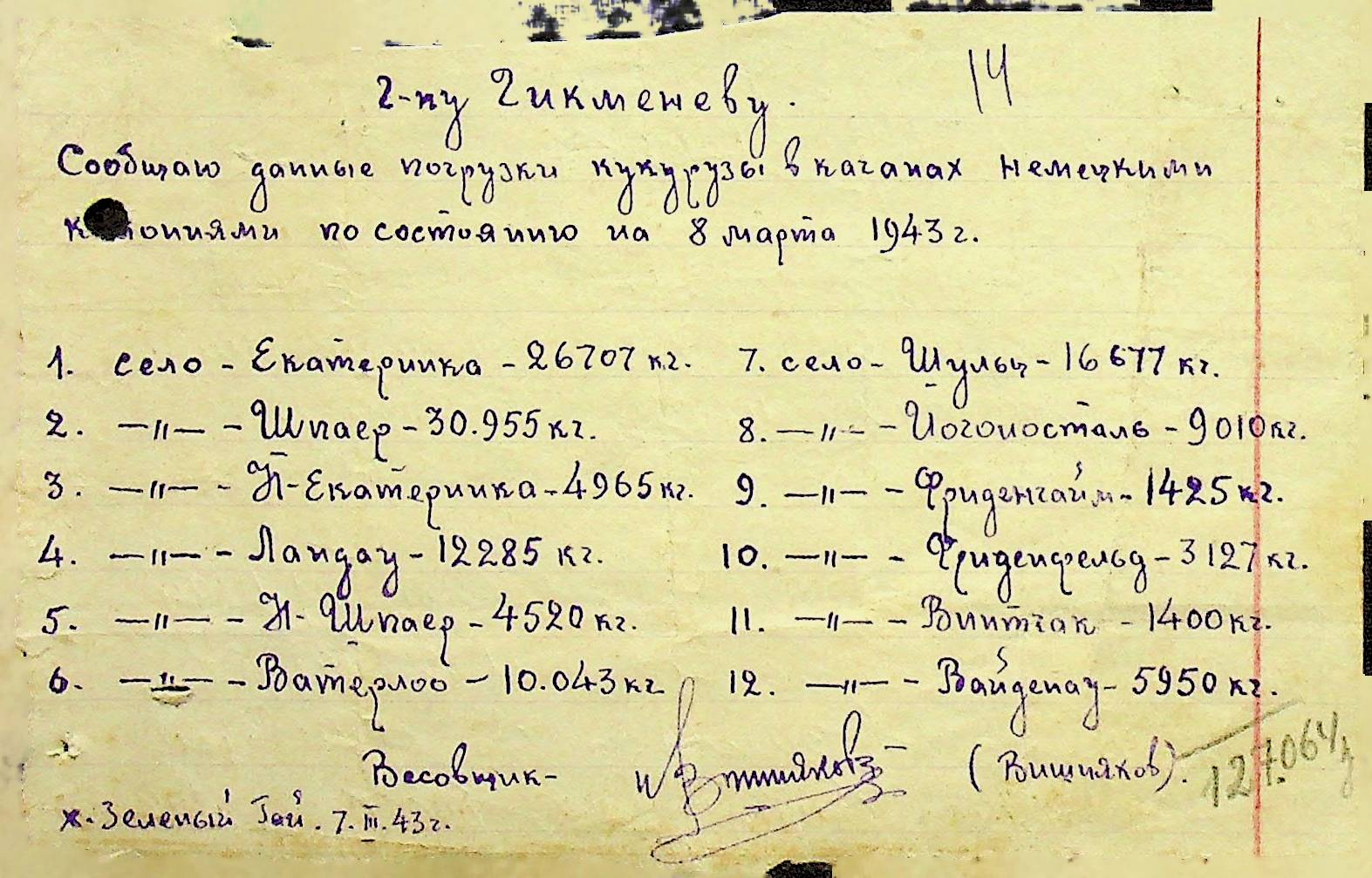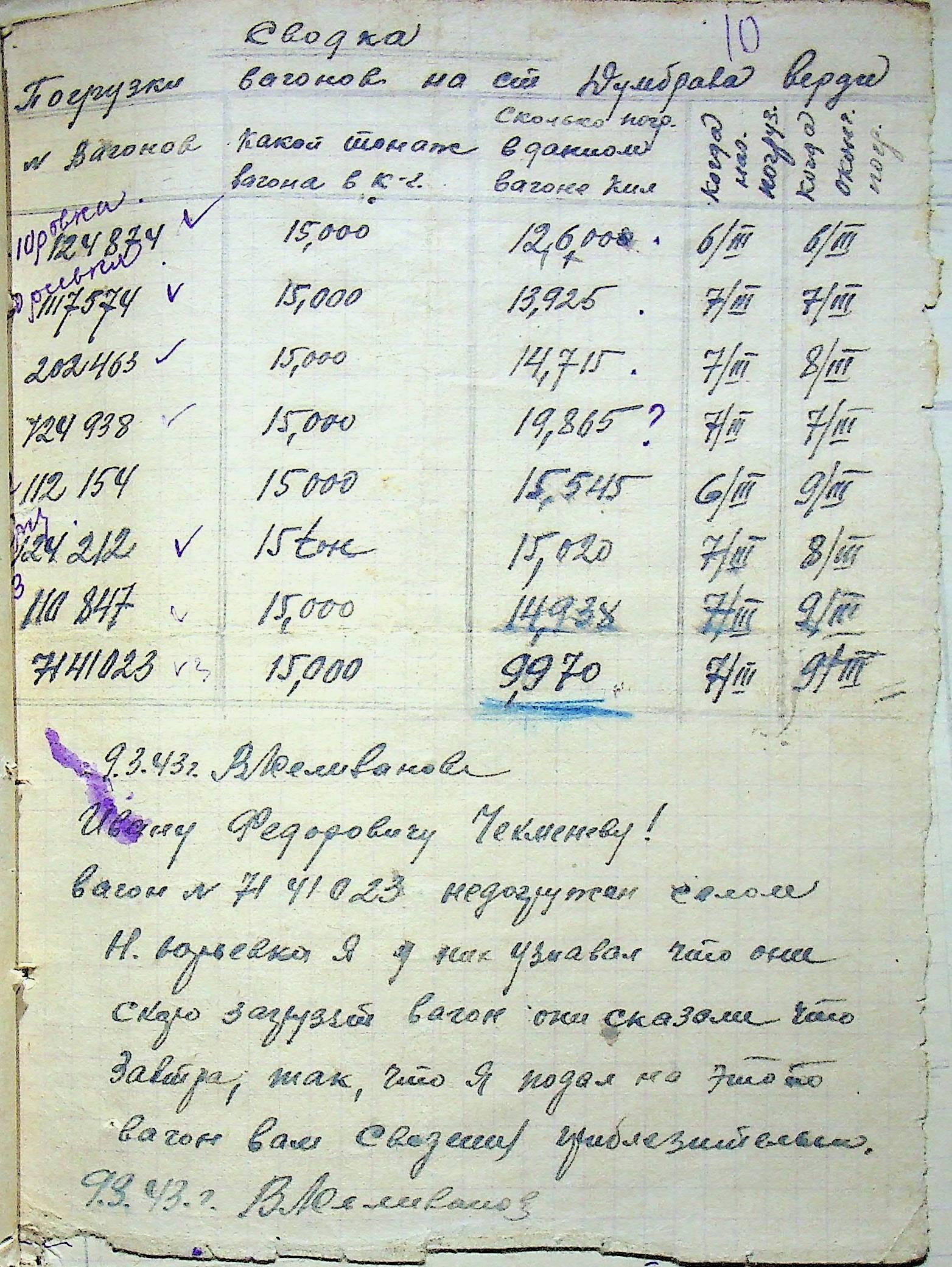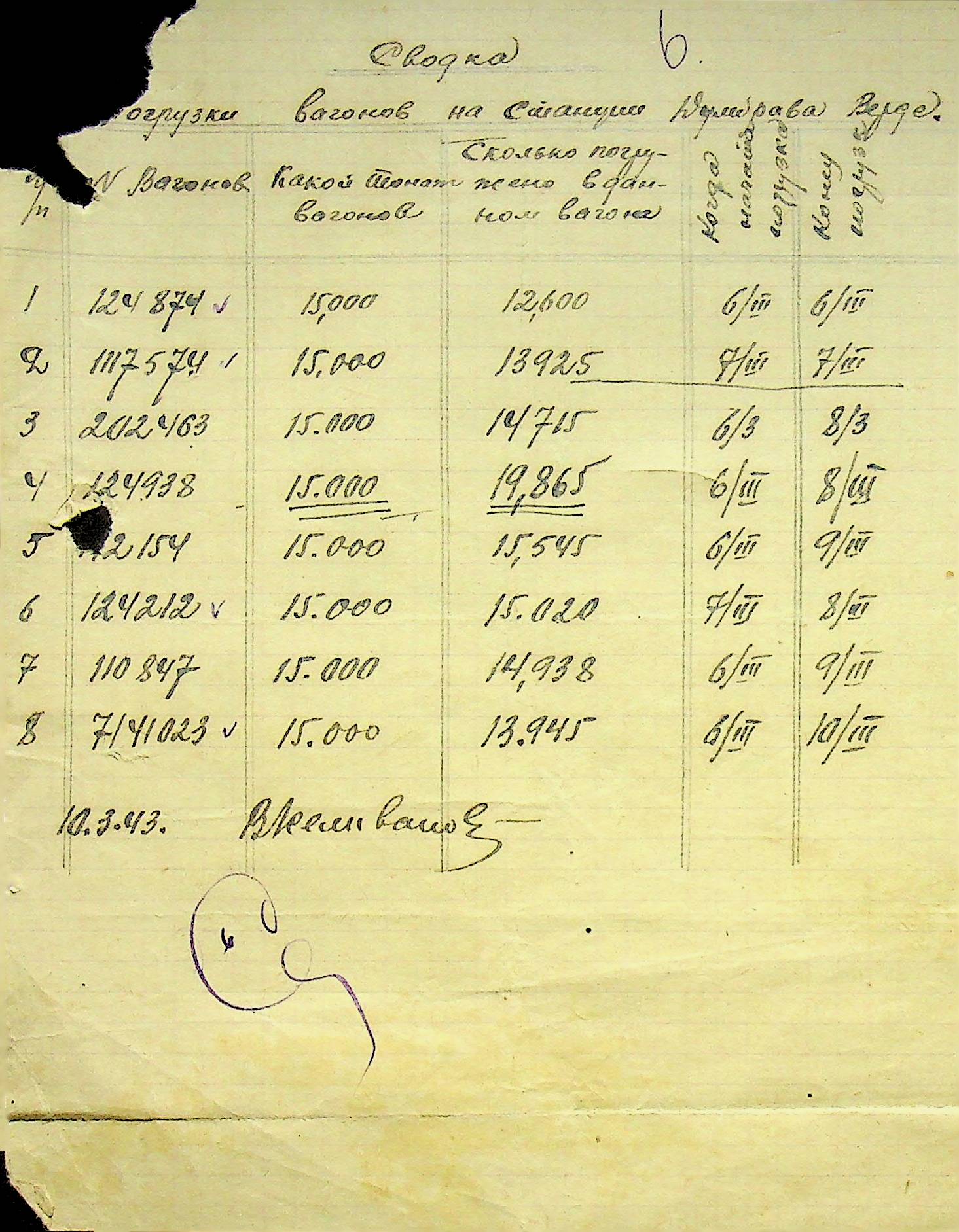 • • • • Справа № 98 Документи (відомості, зведення, розрахунки, листування) про подачу вагонів під завантаження, їх реєстрацію, початкову вагу та вагу після навантаження, результати зважування вагонів, правила перевезення вантажів залізницею, приймання вантажів до перевезення; про виконання плану здачі кукурудзи та відомості про залишки кукурудзи по земельних общинах, кількість відправленого зерна залізничним транспортом; про необхідну кількість вагонів для відправки вантажів врожаю 1942 року