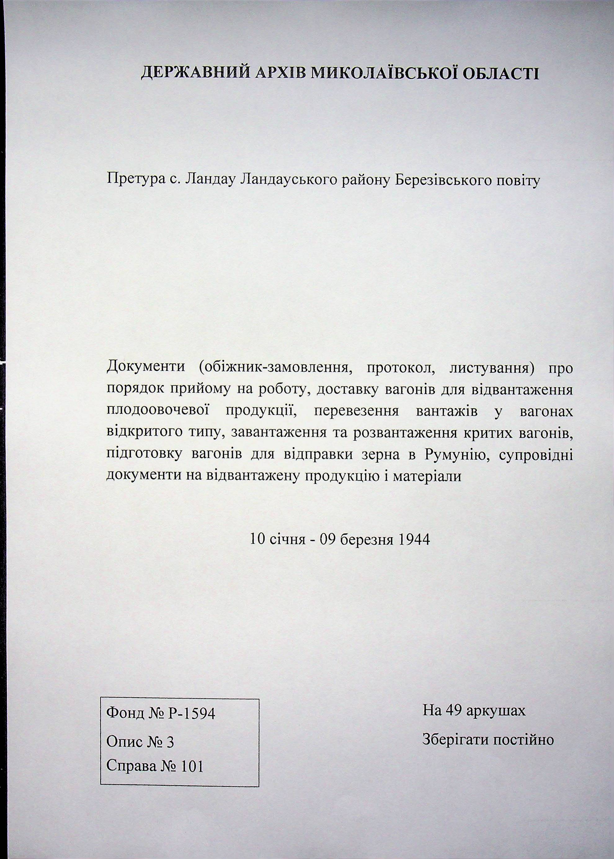 ◦ ◦ Фонд № Н-1594 “Претура Ландауського району”