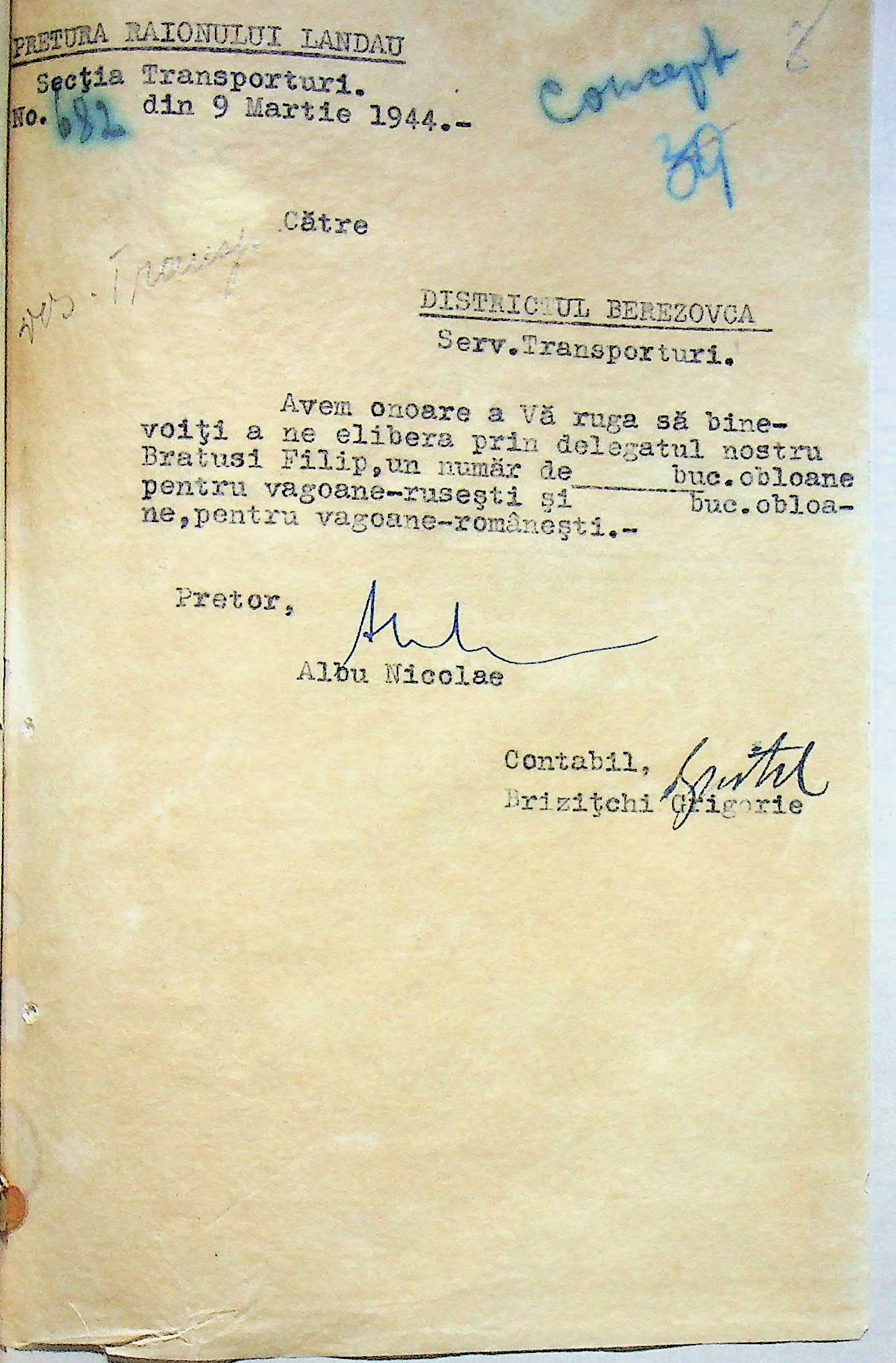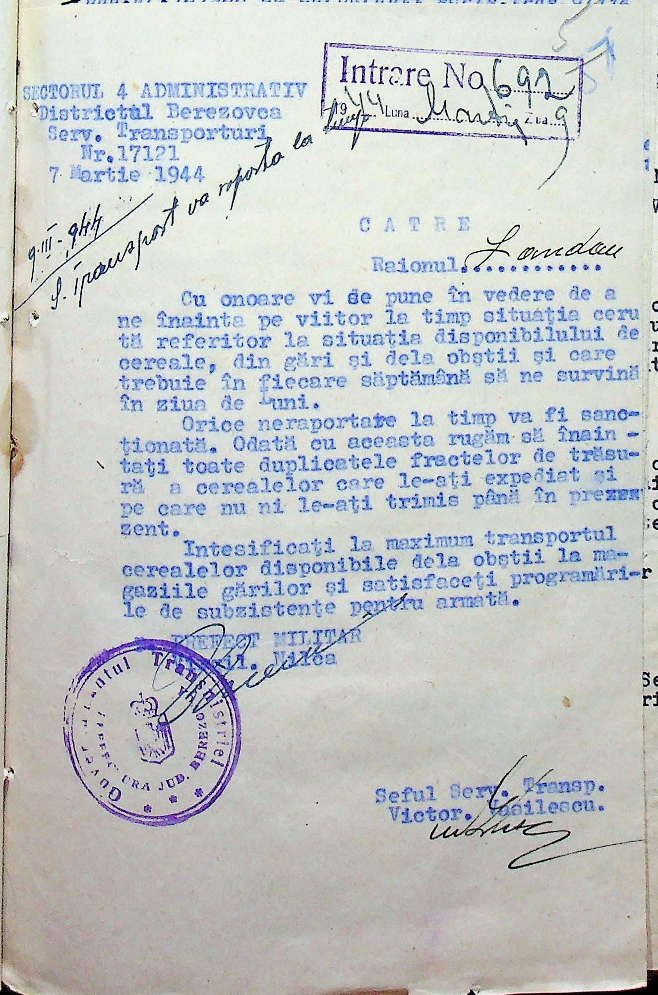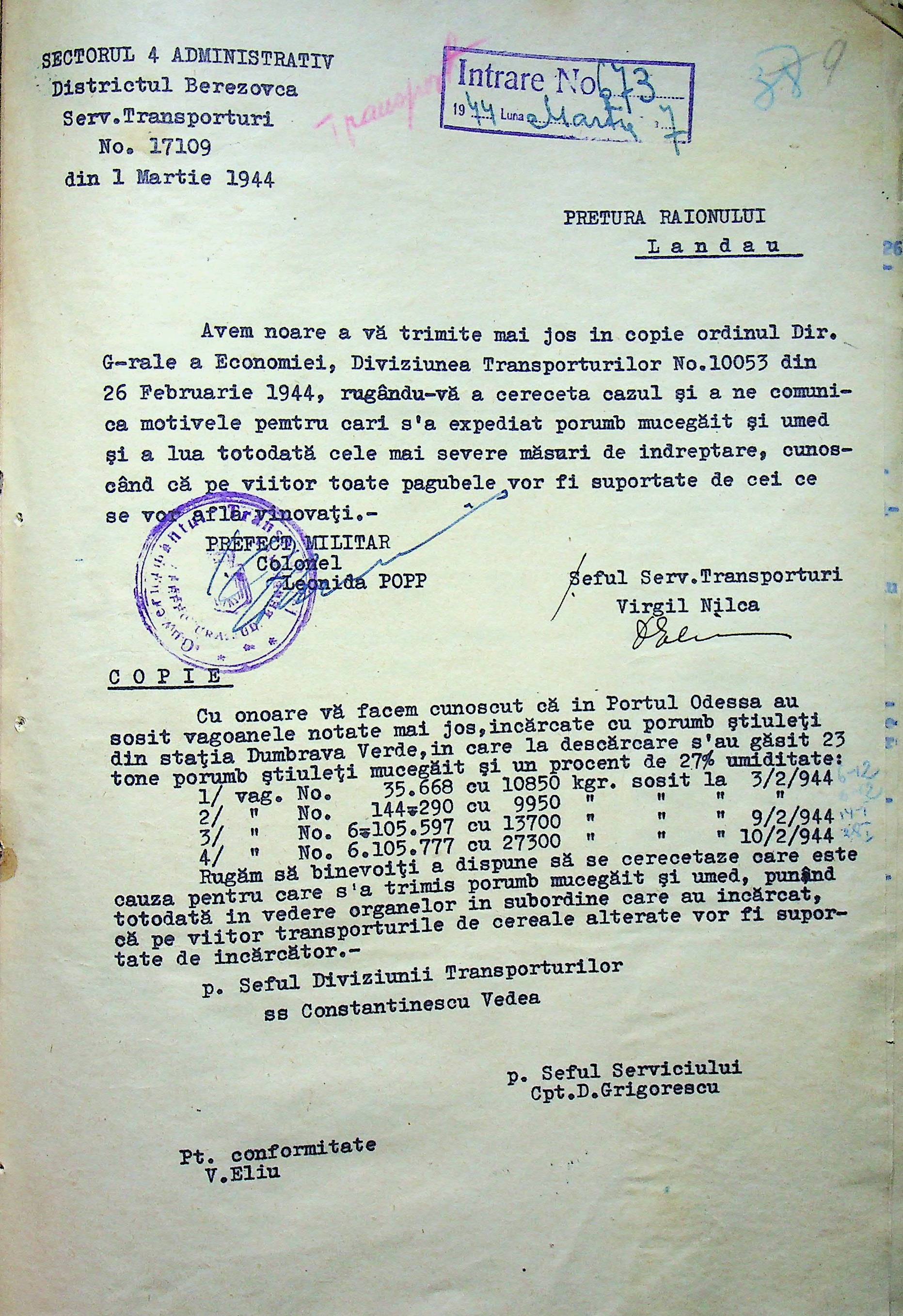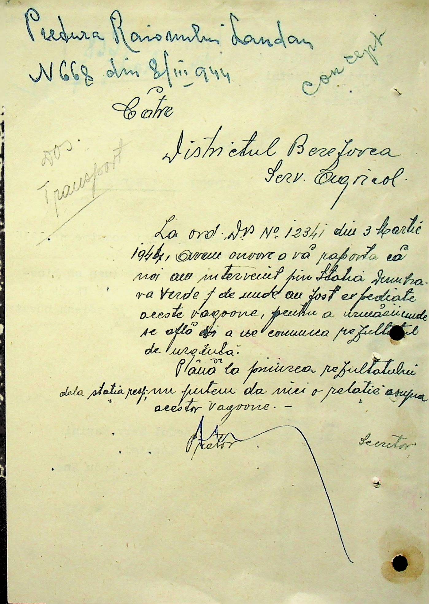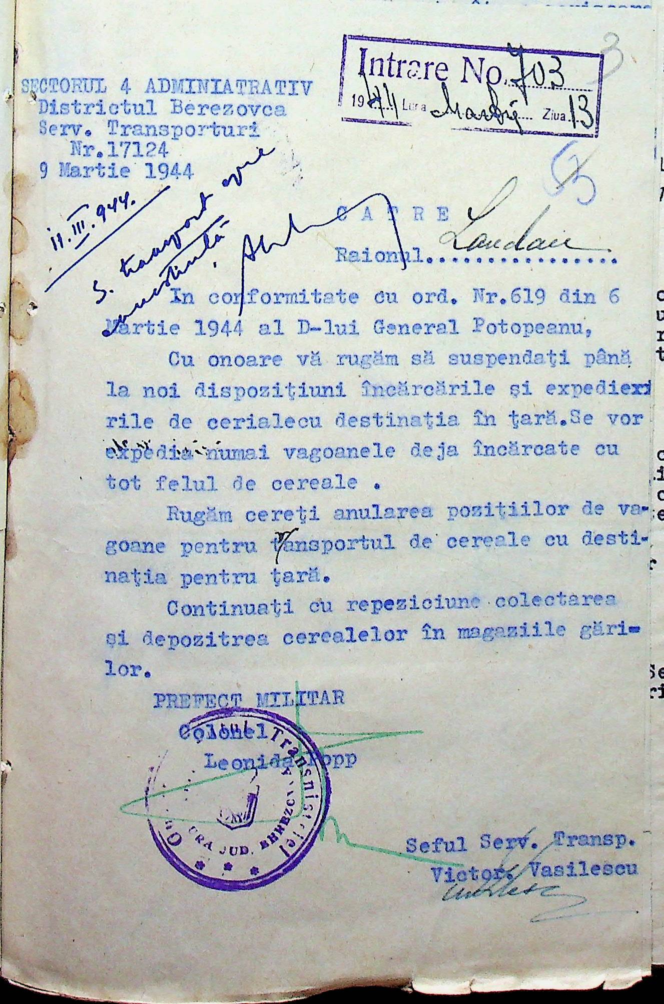 • • • • Справа № 101 Документи (обіжник-замовлення, протокол, листування) про порядок прийому на роботу, доставку вагонів для відвантаження плодоовочевої продукції, перевезення вантажів у вагонах відкритого типу, завантаження та розвантаження критих вагонів, підготовку вагонів для відправки зерна в Румунію, супровідні документи на відвантажену продукцію і матеріали