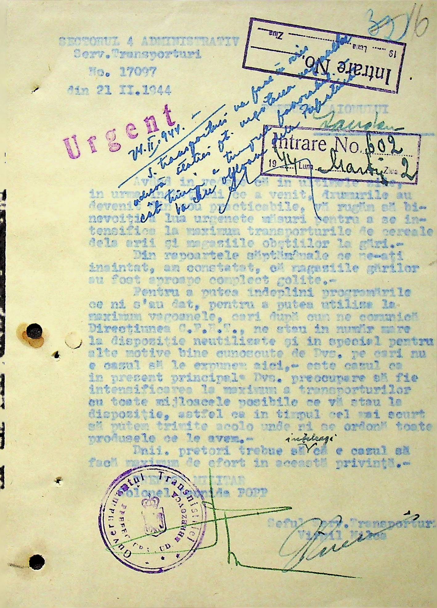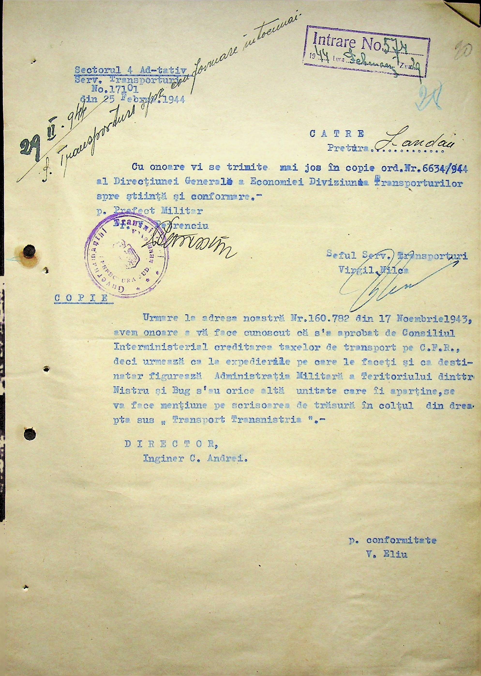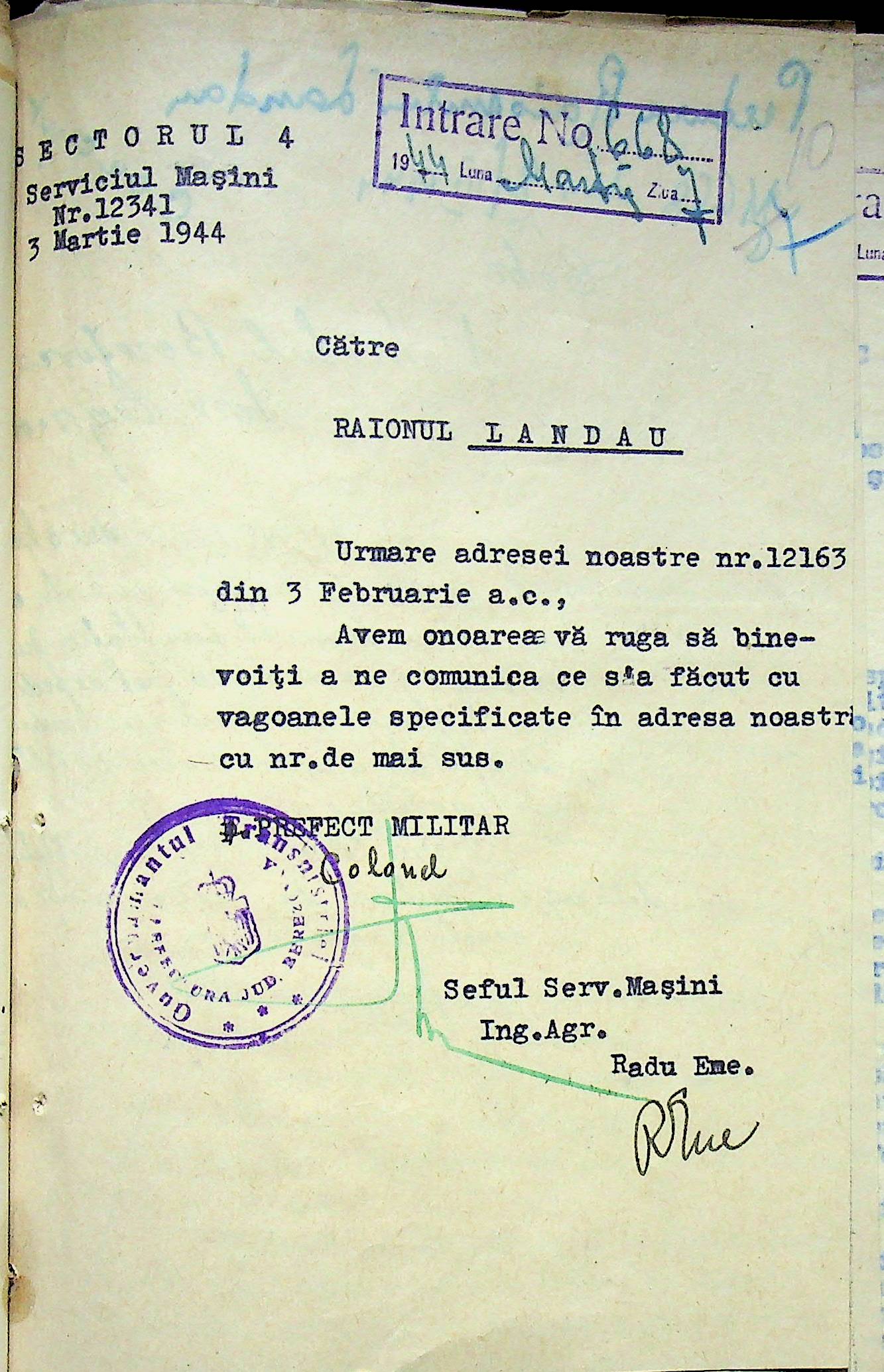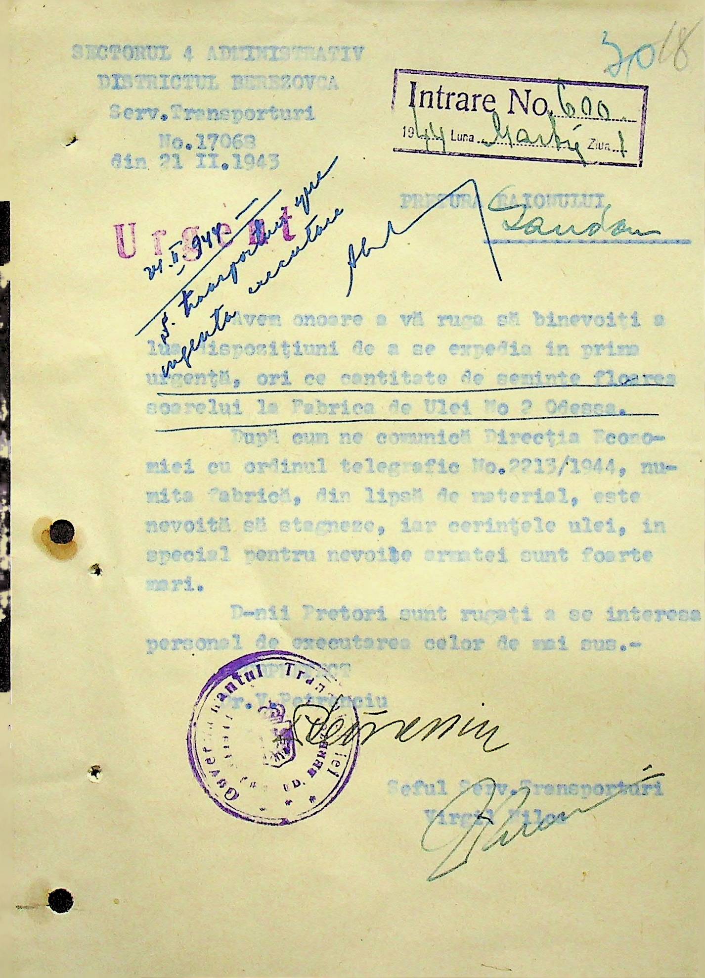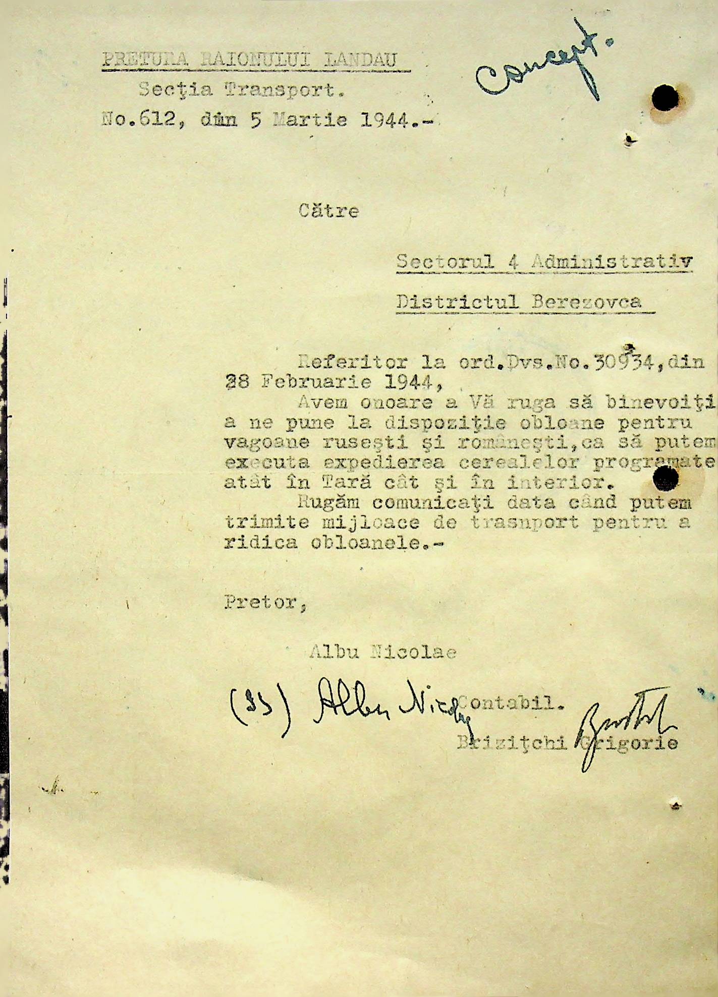 • • • • Справа № 101 Документи (обіжник-замовлення, протокол, листування) про порядок прийому на роботу, доставку вагонів для відвантаження плодоовочевої продукції, перевезення вантажів у вагонах відкритого типу, завантаження та розвантаження критих вагонів, підготовку вагонів для відправки зерна в Румунію, супровідні документи на відвантажену продукцію і матеріали