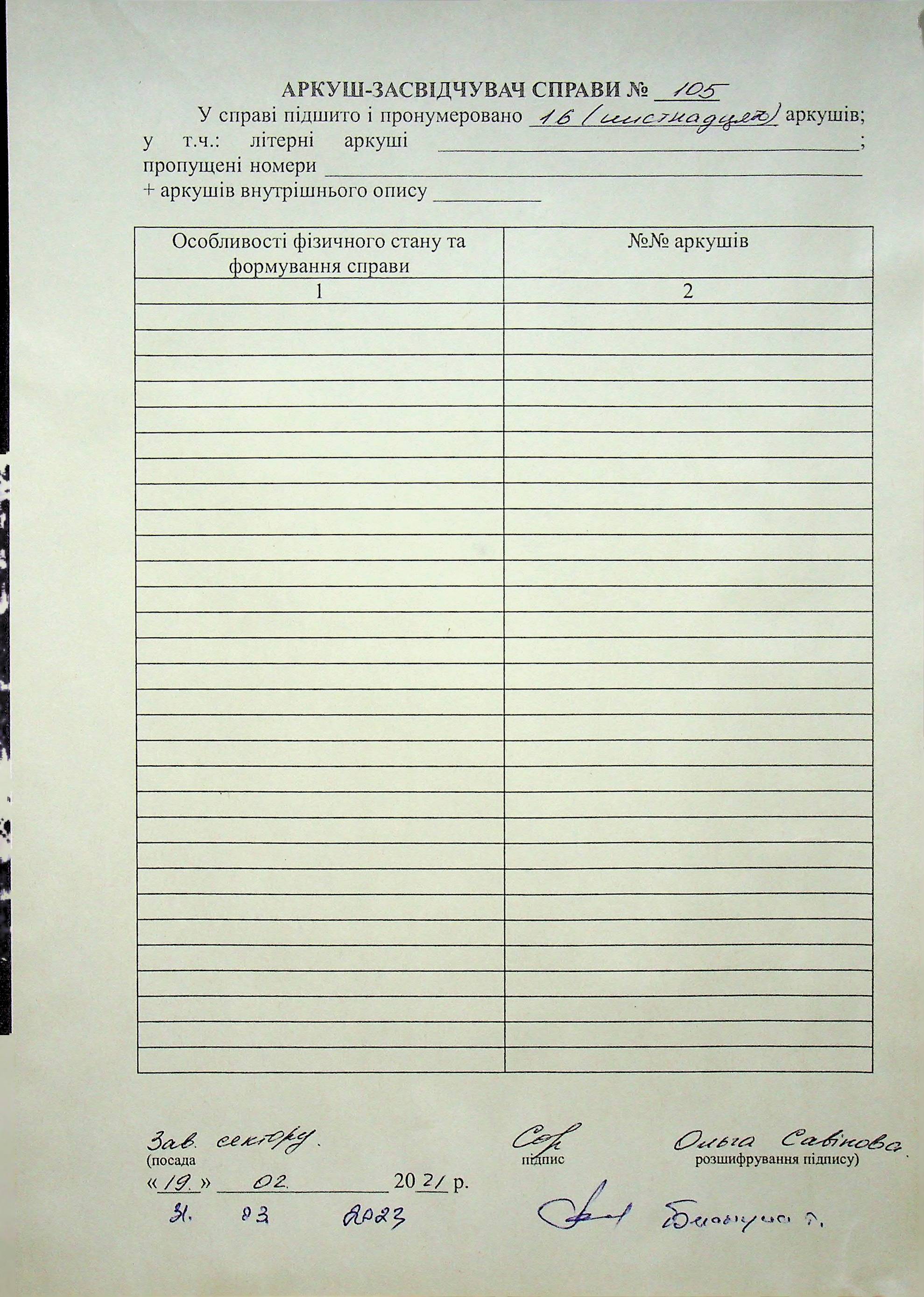 Фонд Н-1594 / Опис 3 / Справа 105