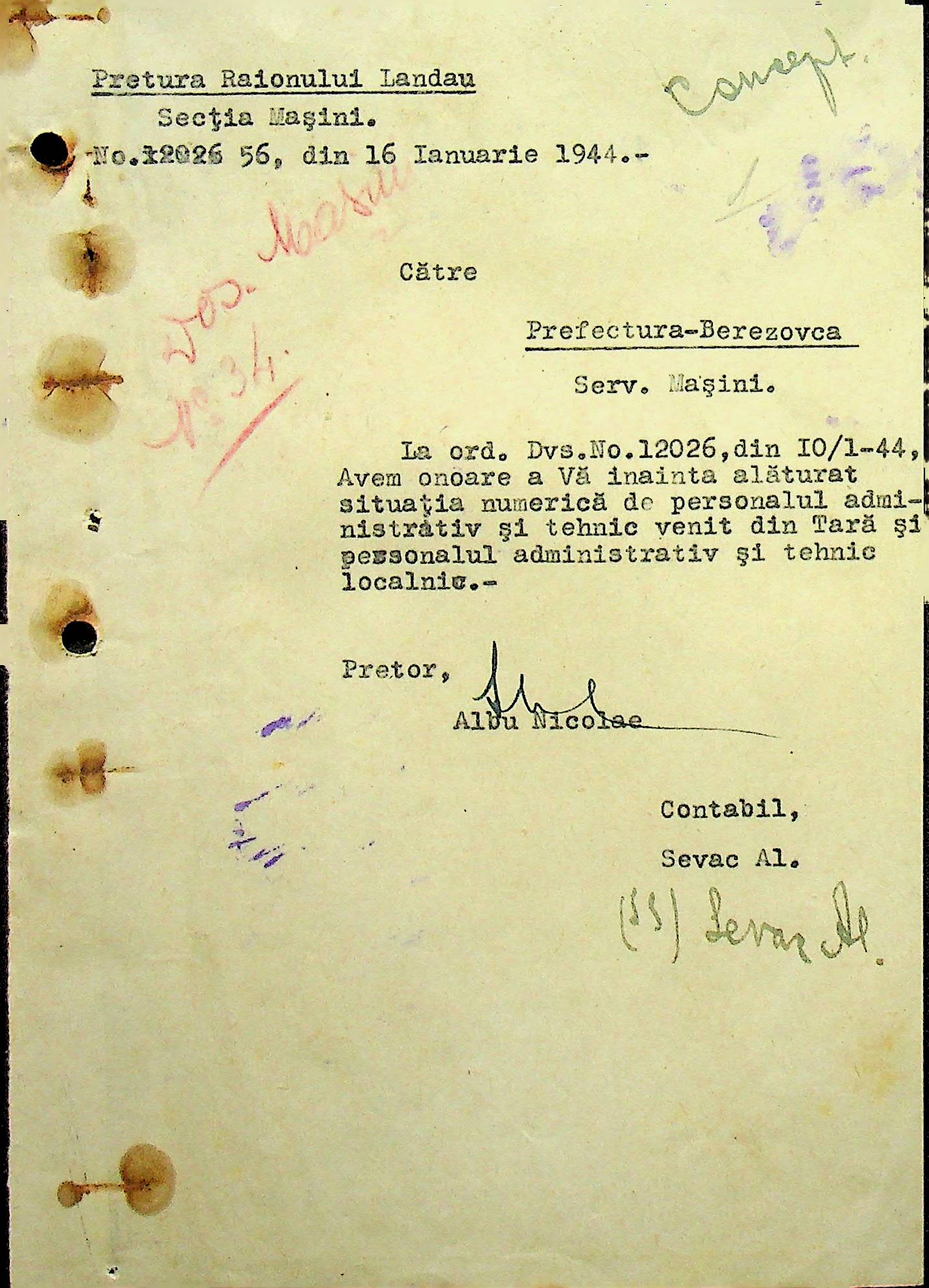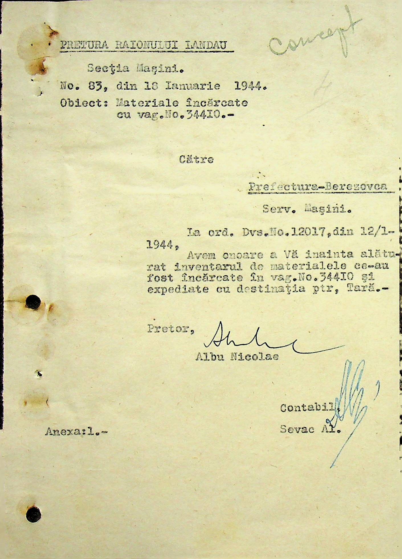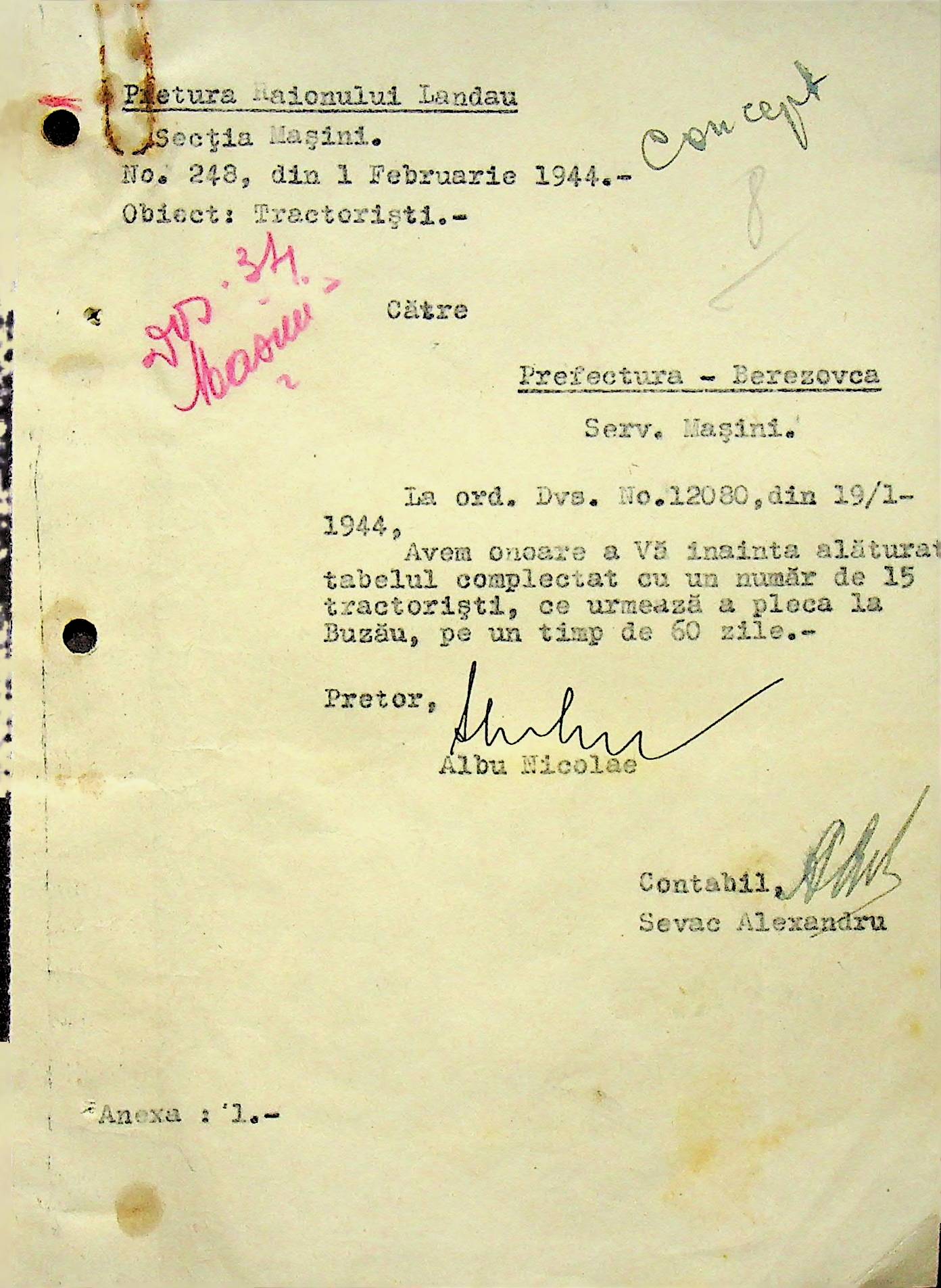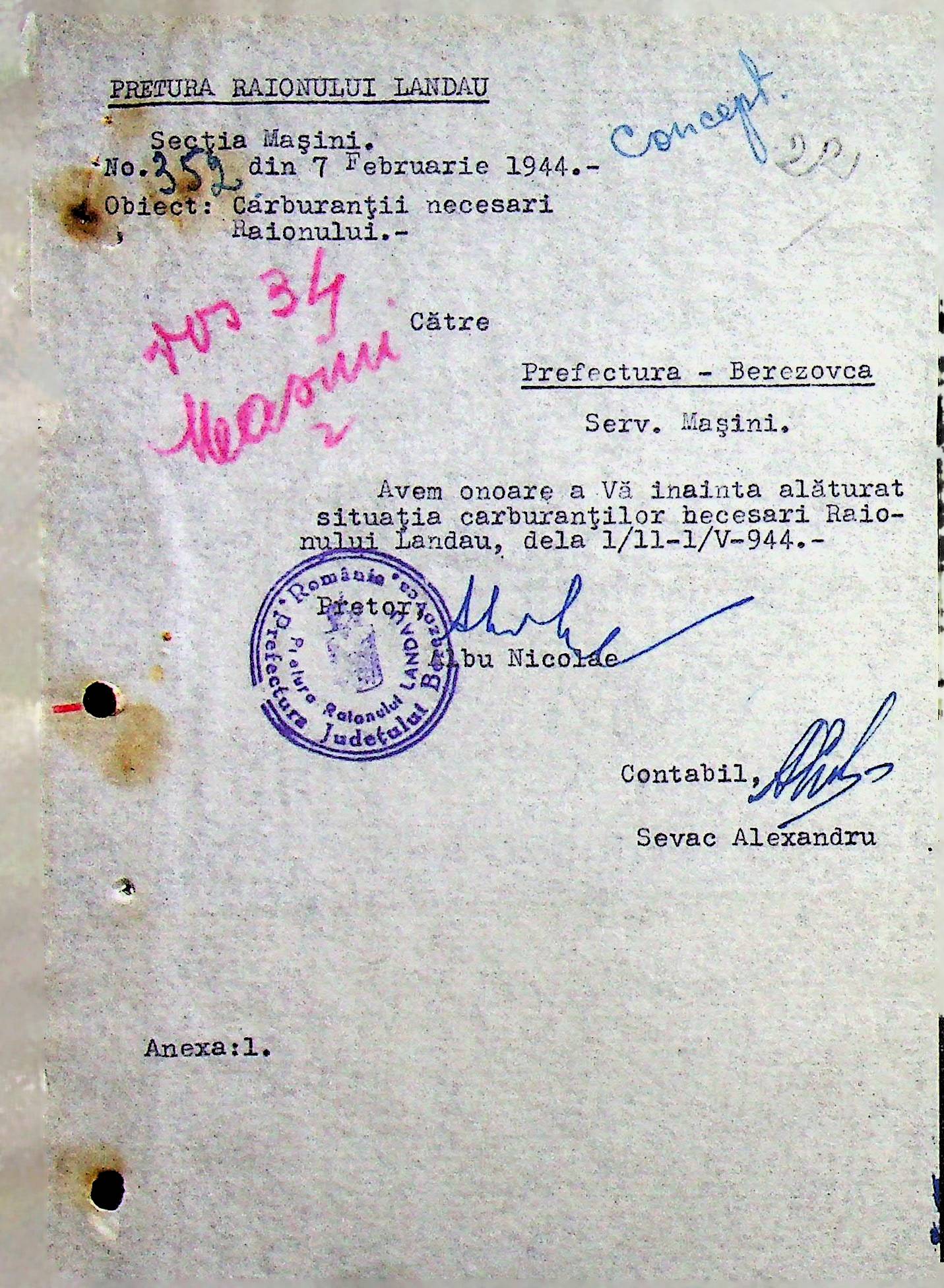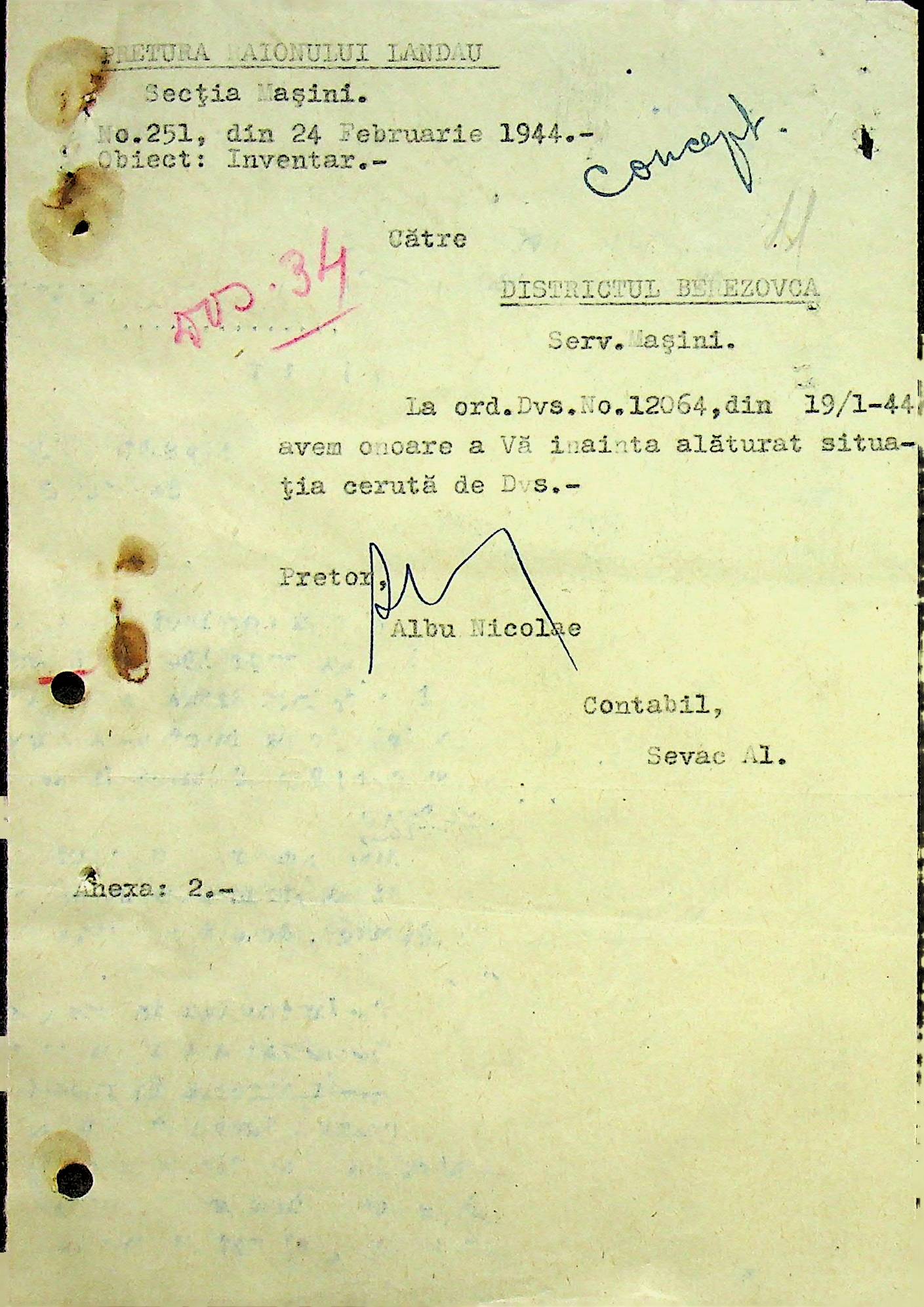 • • • • Справа № 108 Копія інструкції дирекції механізації губернаторства Трансністрії про складання інвентарного опису майна району, оцінювання його вартості та порядок експлуатації; листування з машинним відділом префектури про надання відомостей щодо чисельного складу адміністративно-технічного персоналу, який прибув з Румунії та місцевих спеціалістів; про відправку тракторів, сільськогосподарських інструментів, запасних частин, машин та іншого майна в Румунію; відомості про кількість палива, необхідного району, інвентарні описи майна. Протоколи про супровід майна, його відправку та отримання