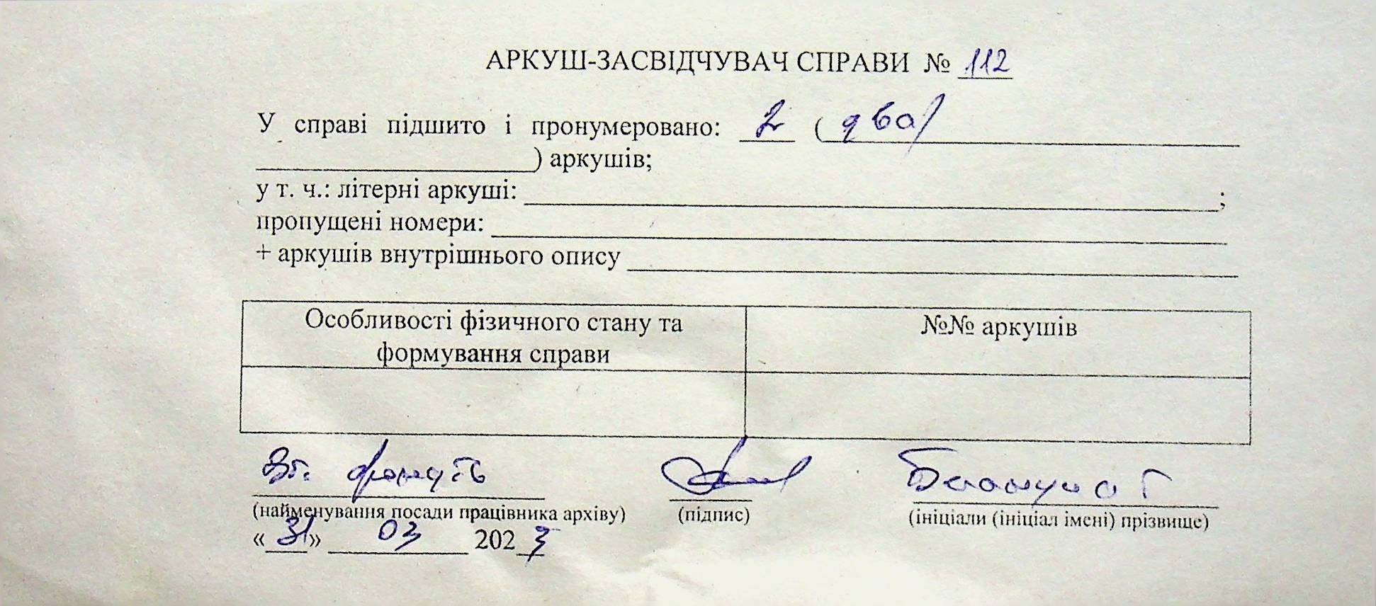 Фонд Н-1594 / Опис 3 / Справа 112
