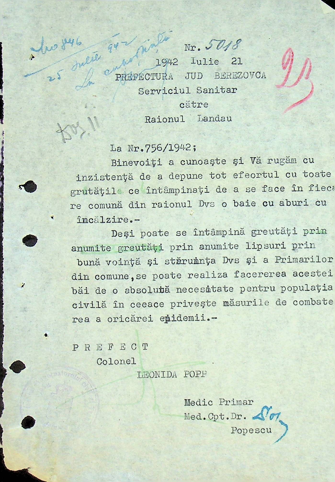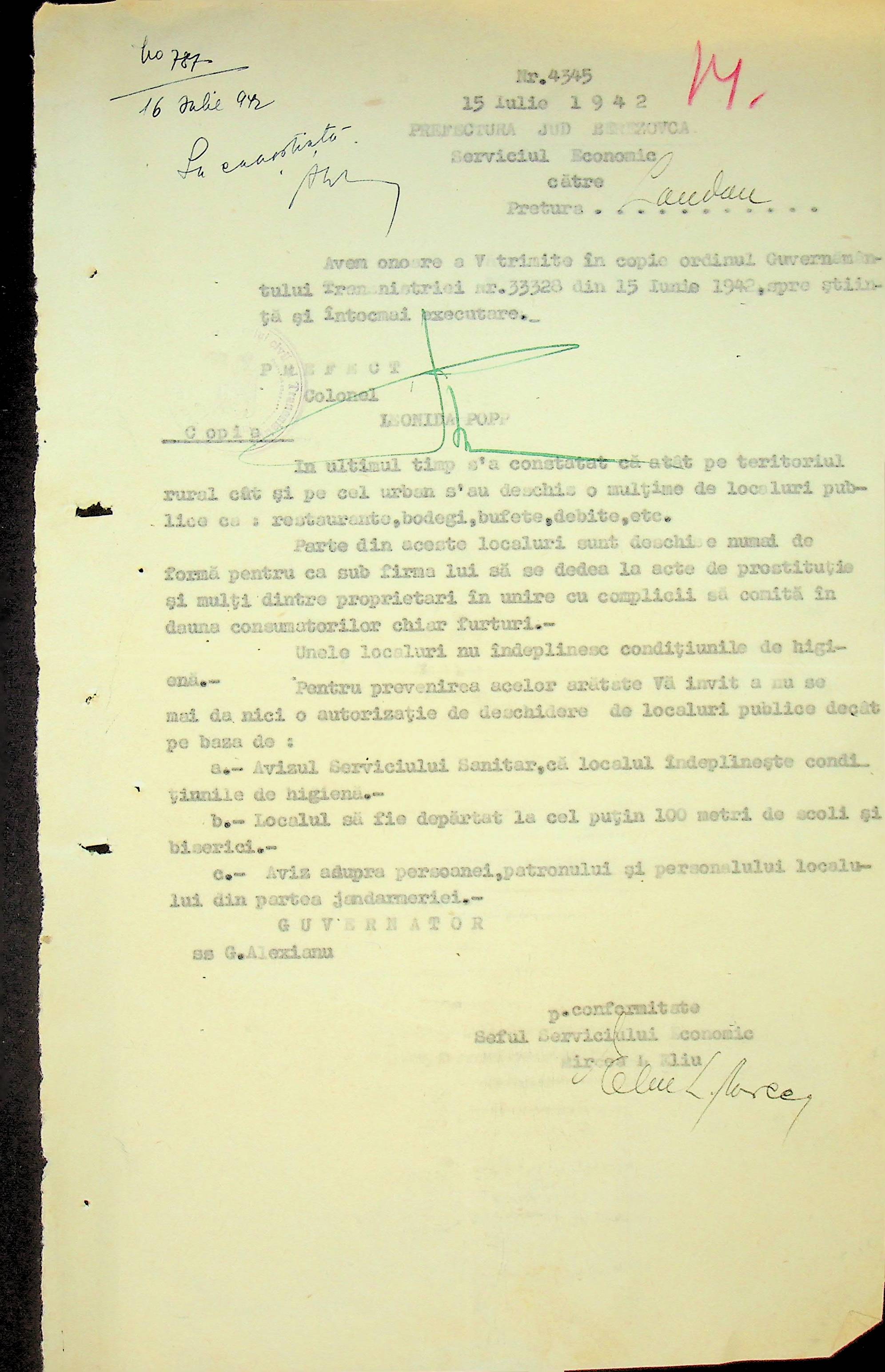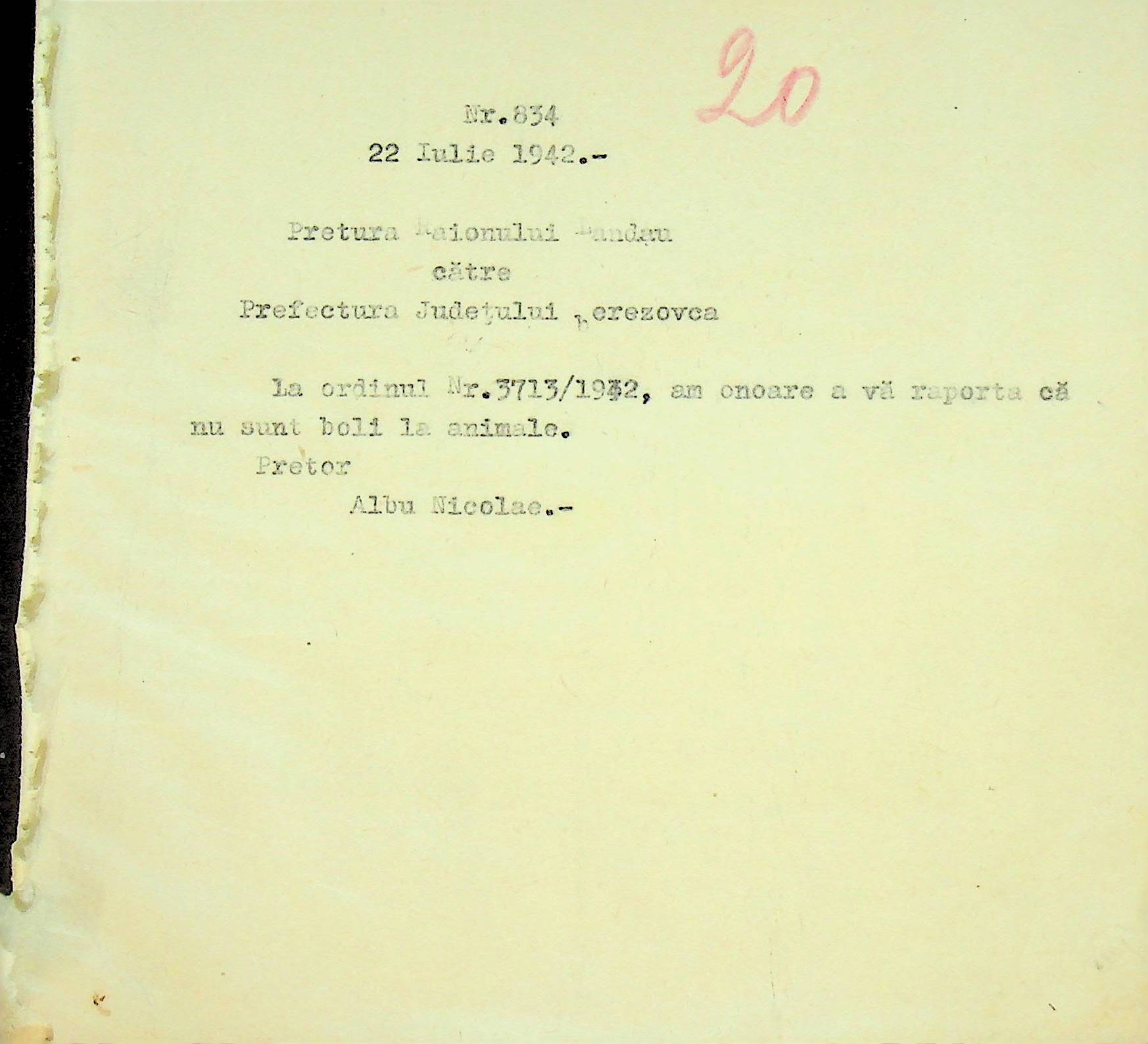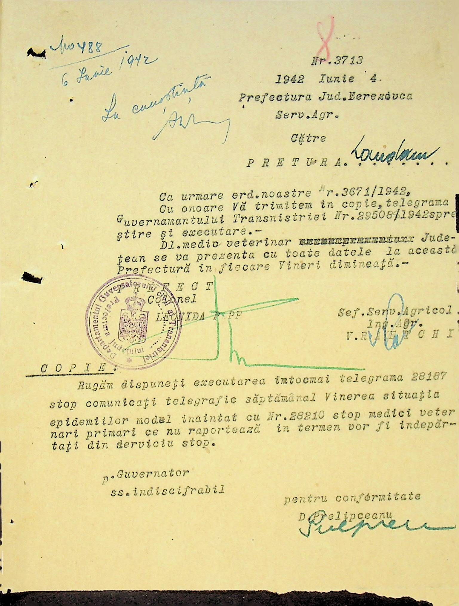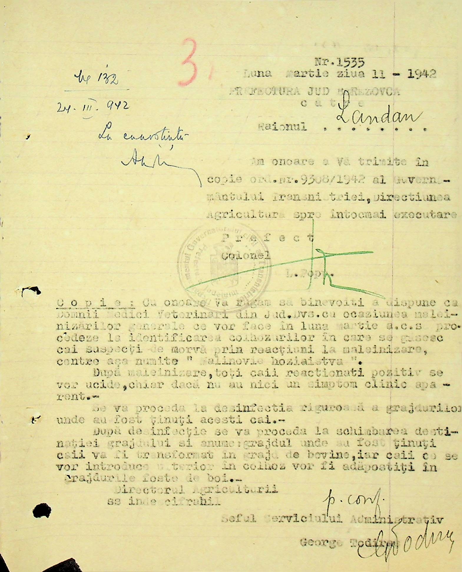 • • • • Справа № 117 Копія інструкції дирекції з охорони здоров’я цивільного губернатора Трансністрії про профілактику та боротьбу з інфекційними захворюваннями, організацію роботи та функціонування лікарень в умовах епідемії, висновки санітарної служби щодо роботи ресторанів, буфетів та винних льохів, ізолювання колодязів; листування з префектурою Березівського повіту про роботу ветеринарно-санітарних служб району, надання відомостей щодо захворюваності тварин та їх щеплення; про контроль та координацію діяльності ветеринарних лікарів округу, порядок виплати заробітної плати медичному персоналу; про спалах висипного тифу