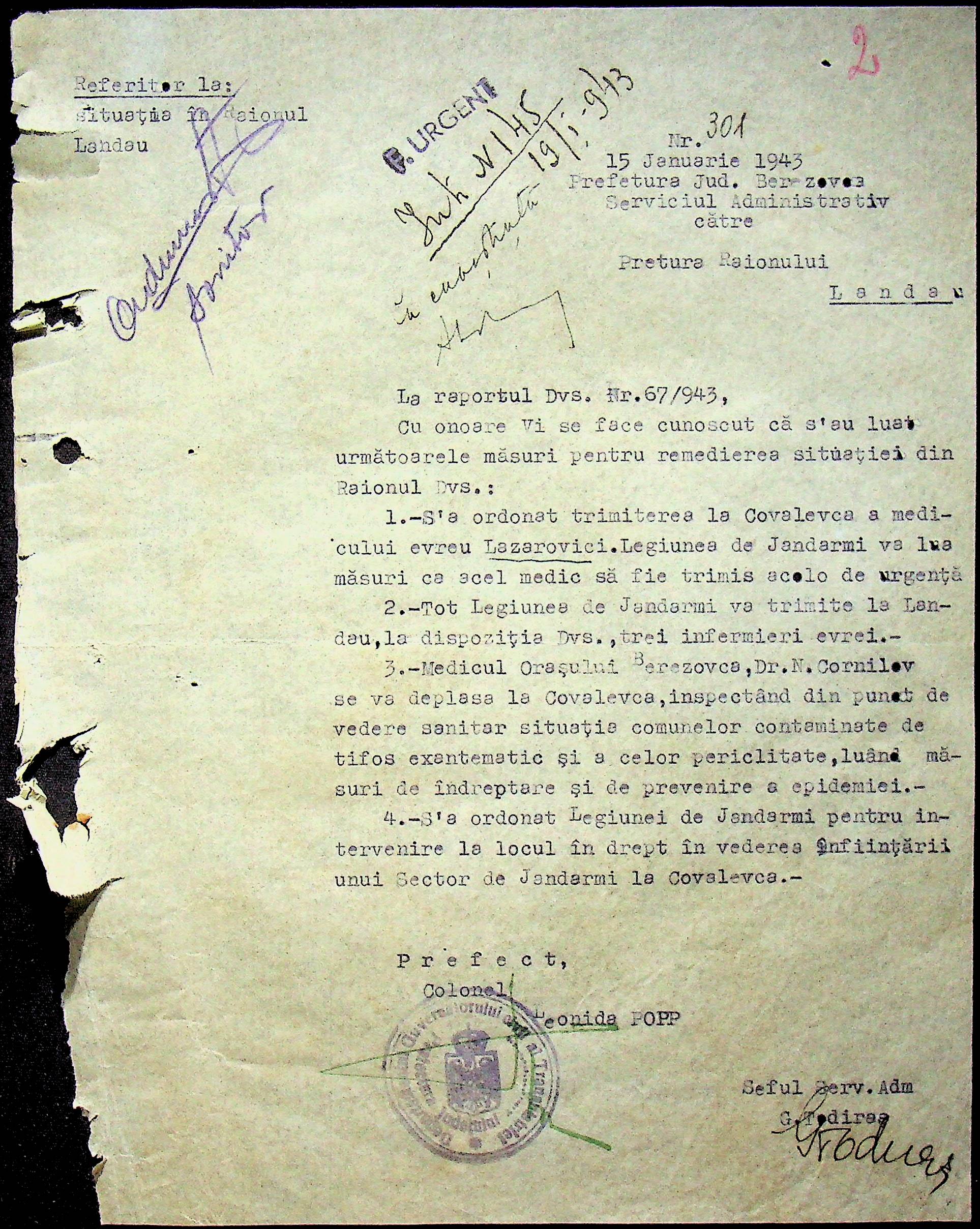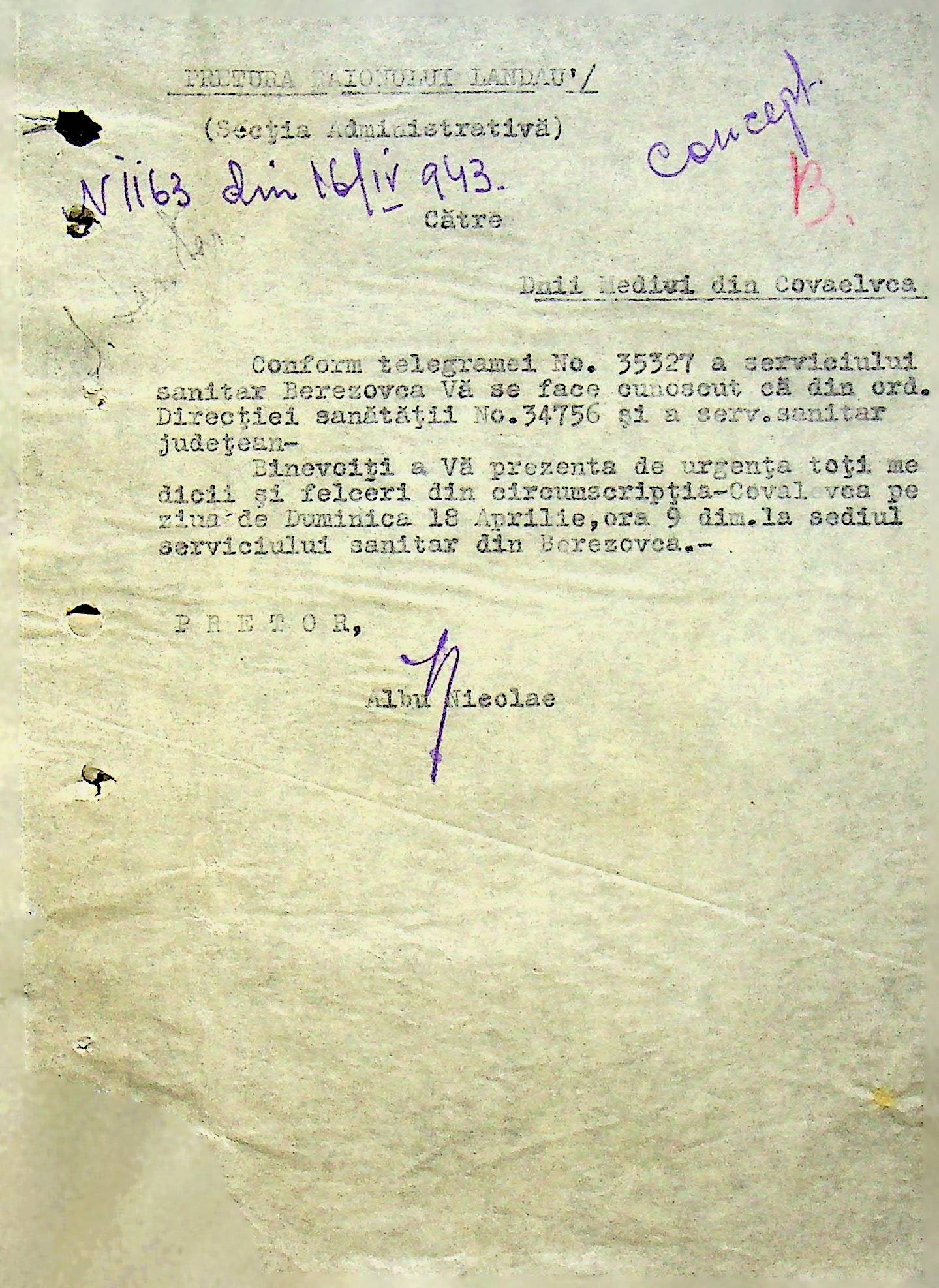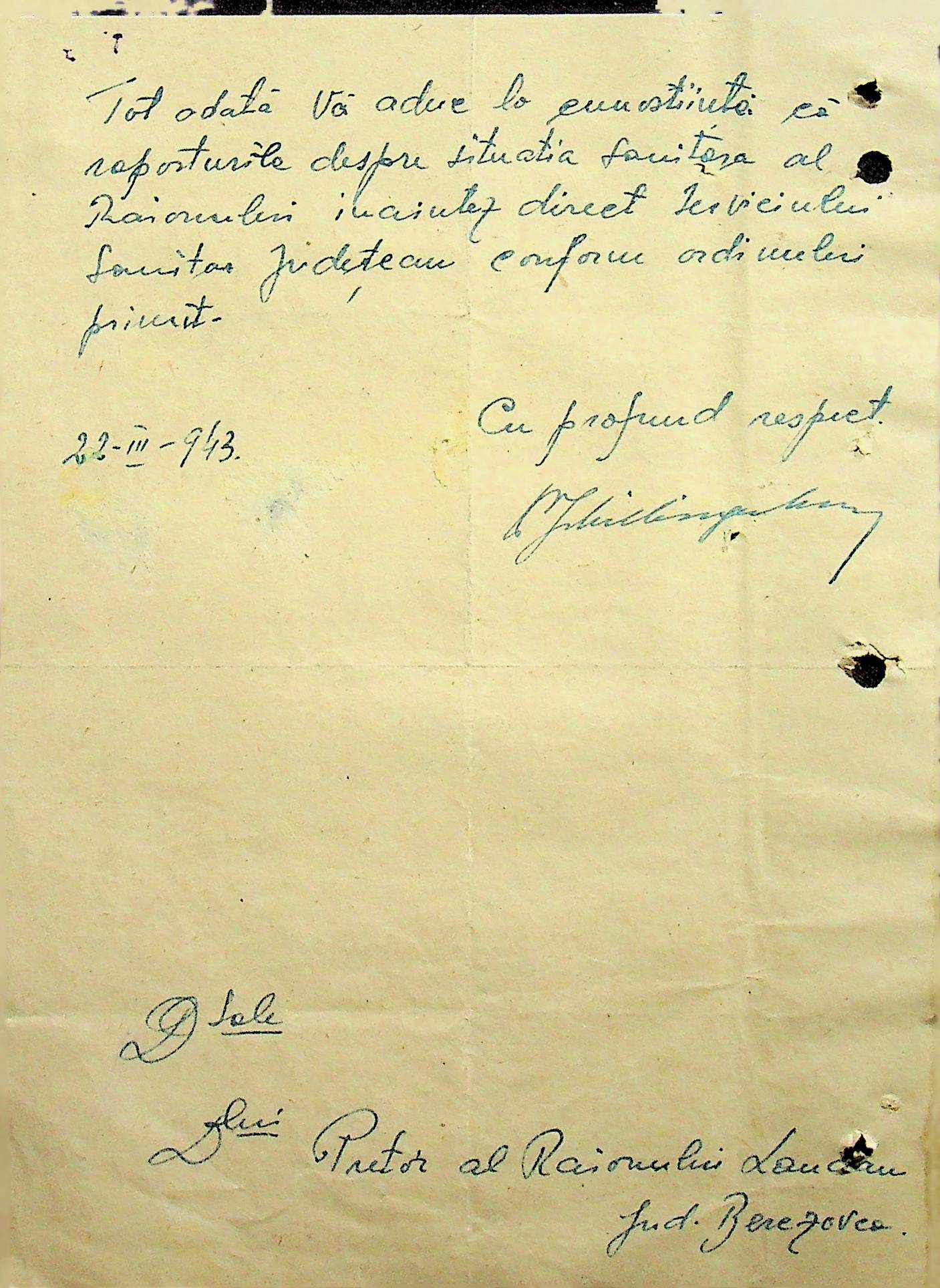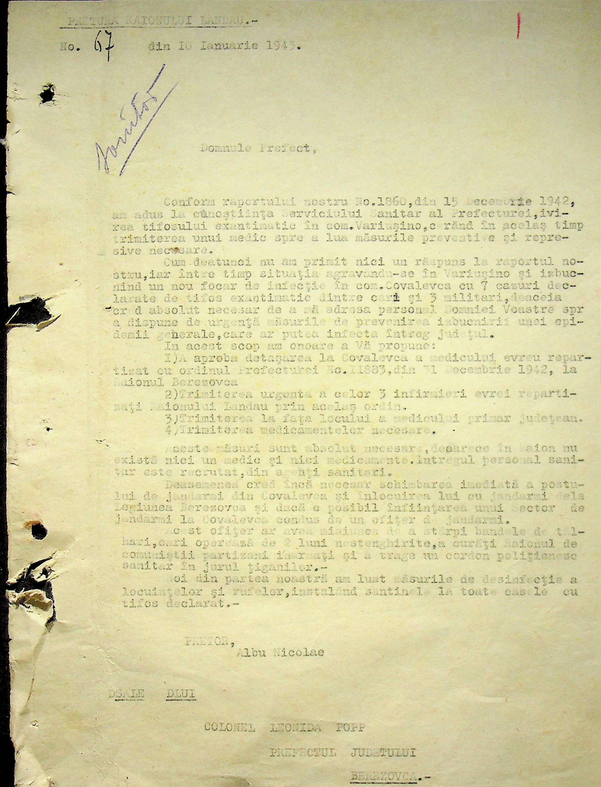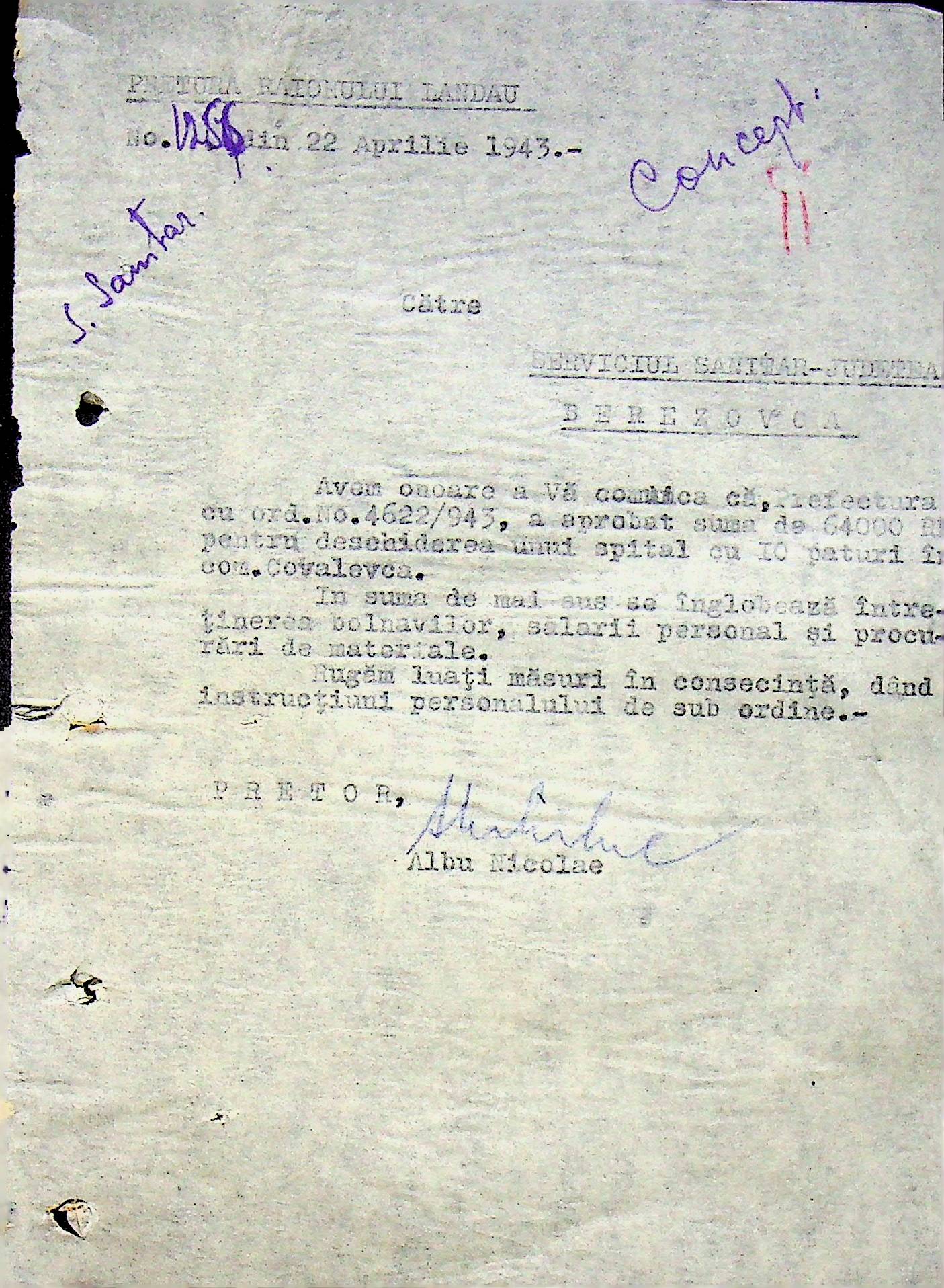 • • • • Справа № 118 Обіжний наказ Головного лікаря медико-санітарного округу про щеплення населення від холери; наказ префекта Березівського повіту про впровадження єдиних санітарних правил та норм в районі; листування з санітарним відділом префектури про епідемію висипного тифу і холери в районі.