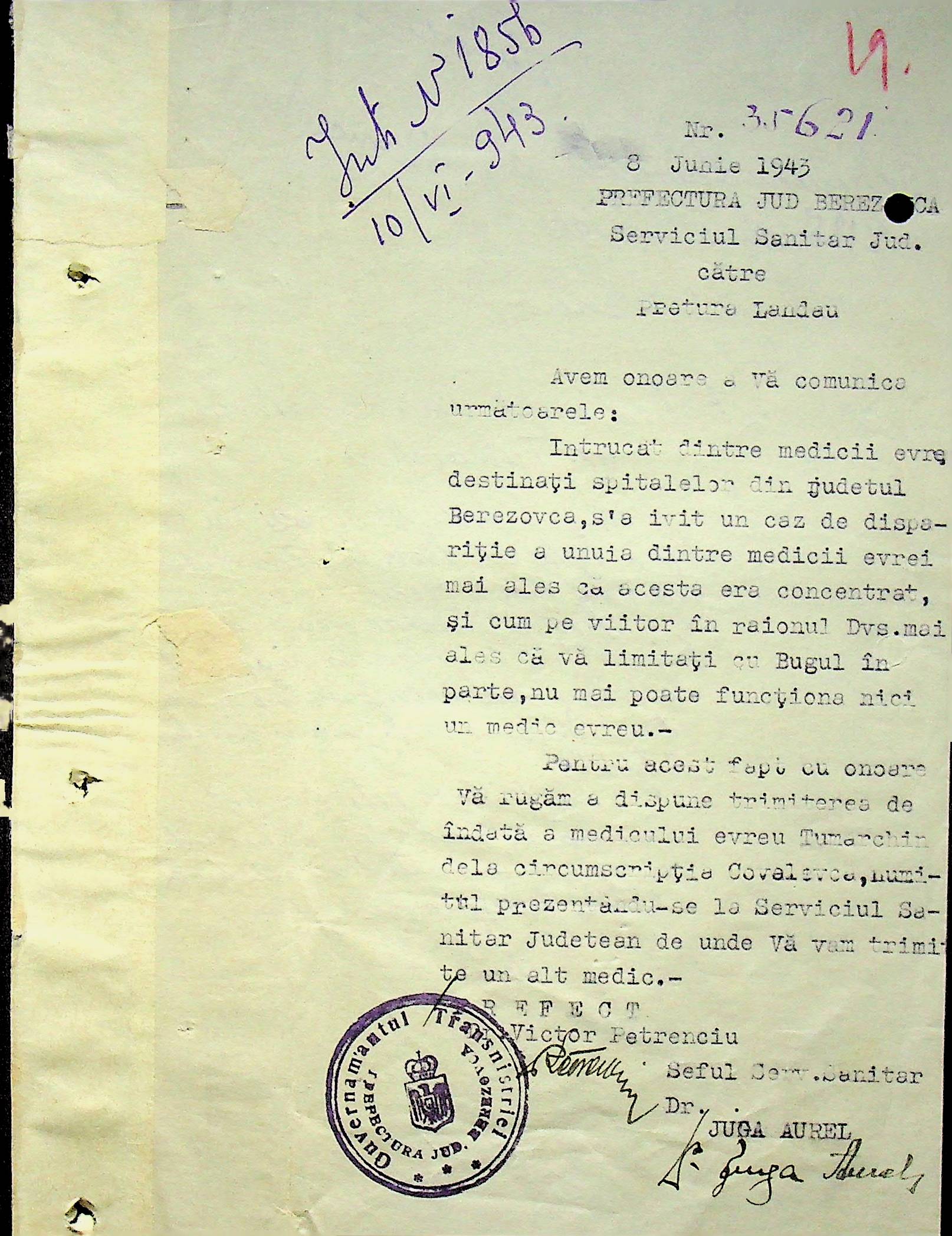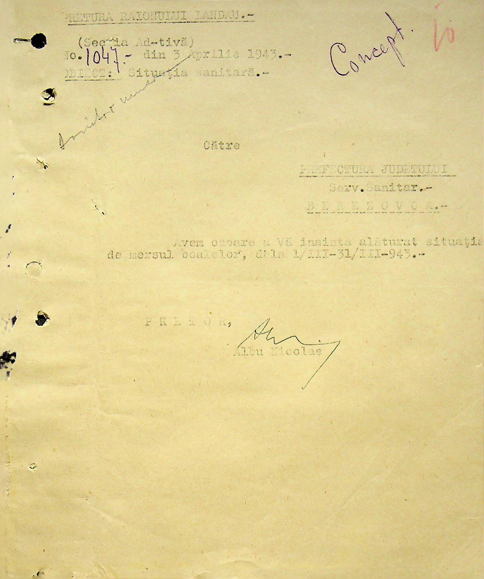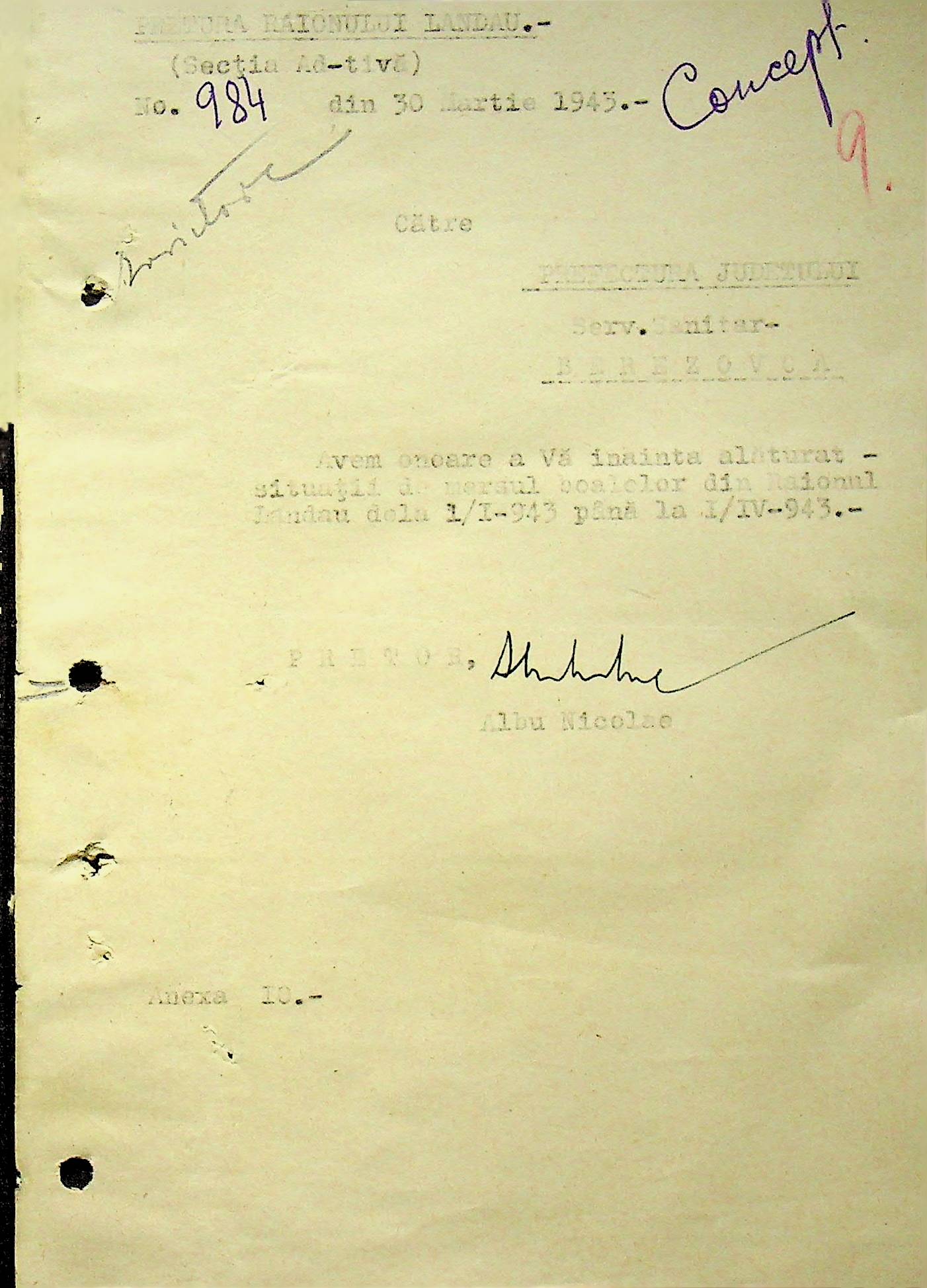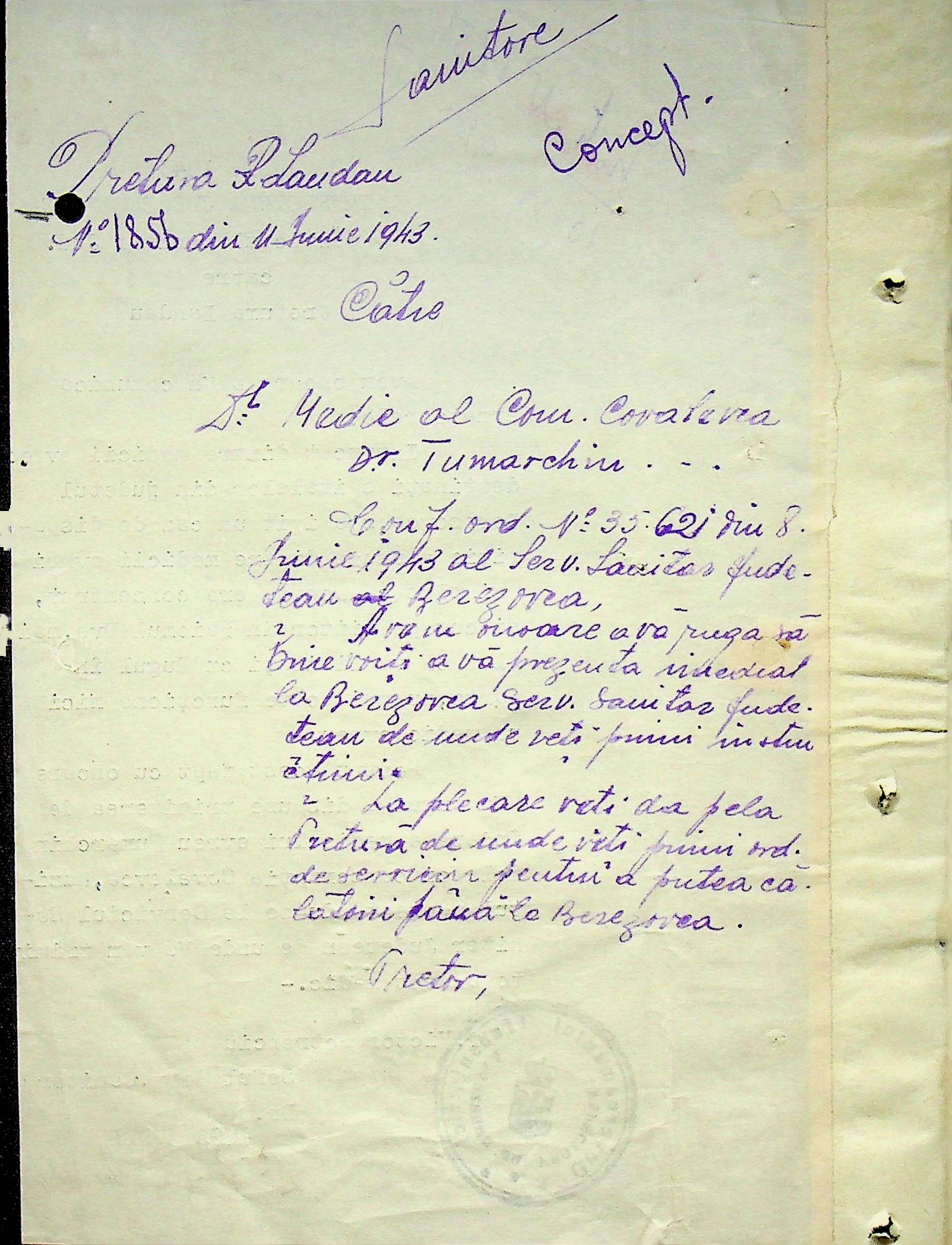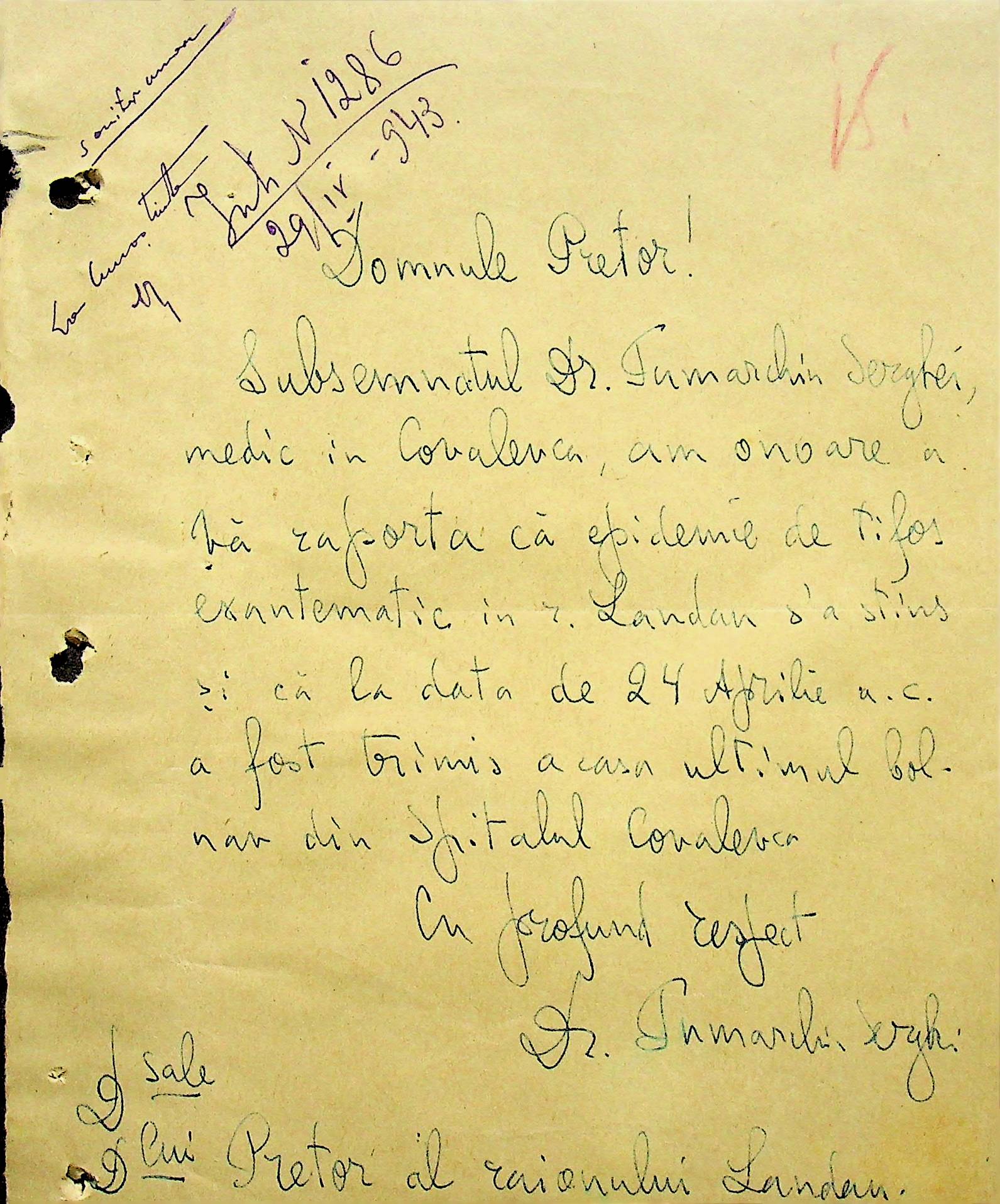 • • • • Справа № 118 Обіжний наказ Головного лікаря медико-санітарного округу про щеплення населення від холери; наказ префекта Березівського повіту про впровадження єдиних санітарних правил та норм в районі; листування з санітарним відділом префектури про епідемію висипного тифу і холери в районі.