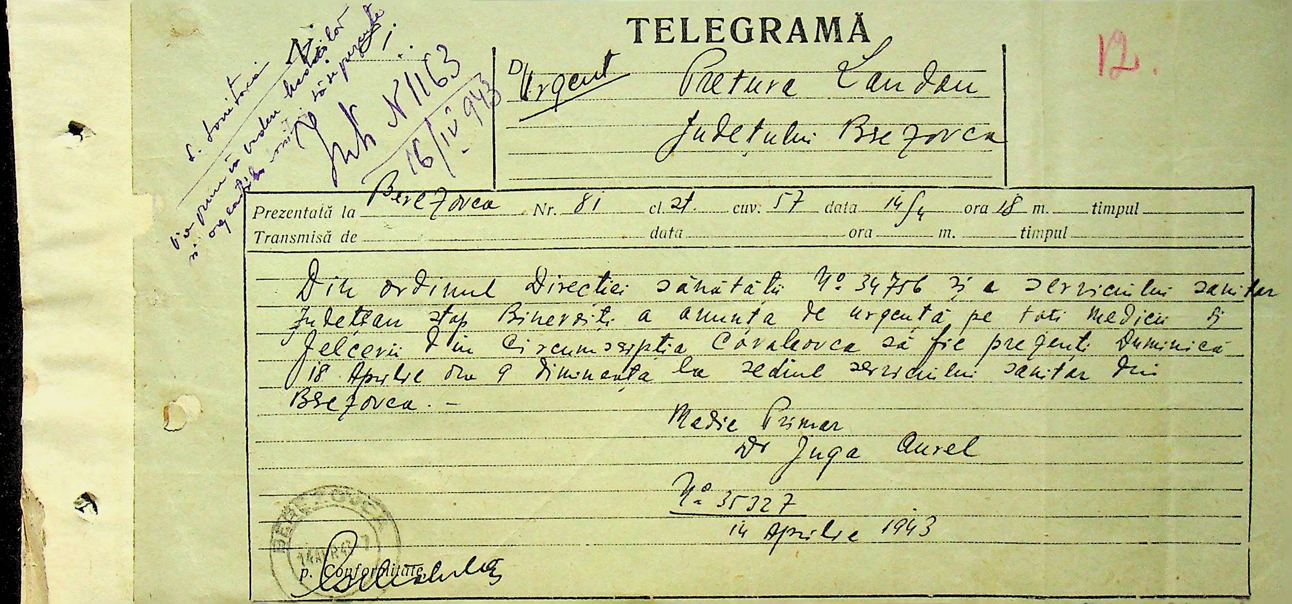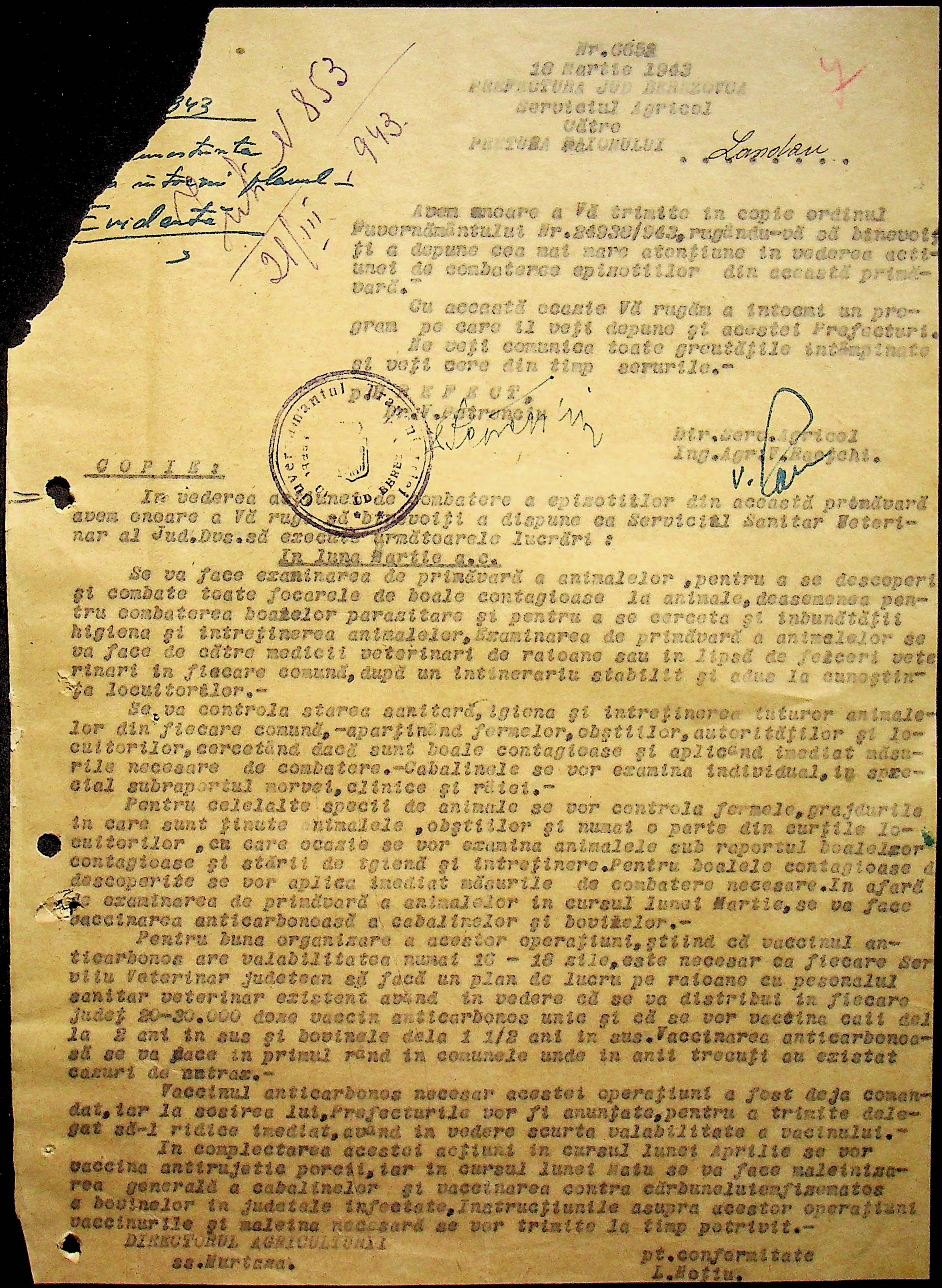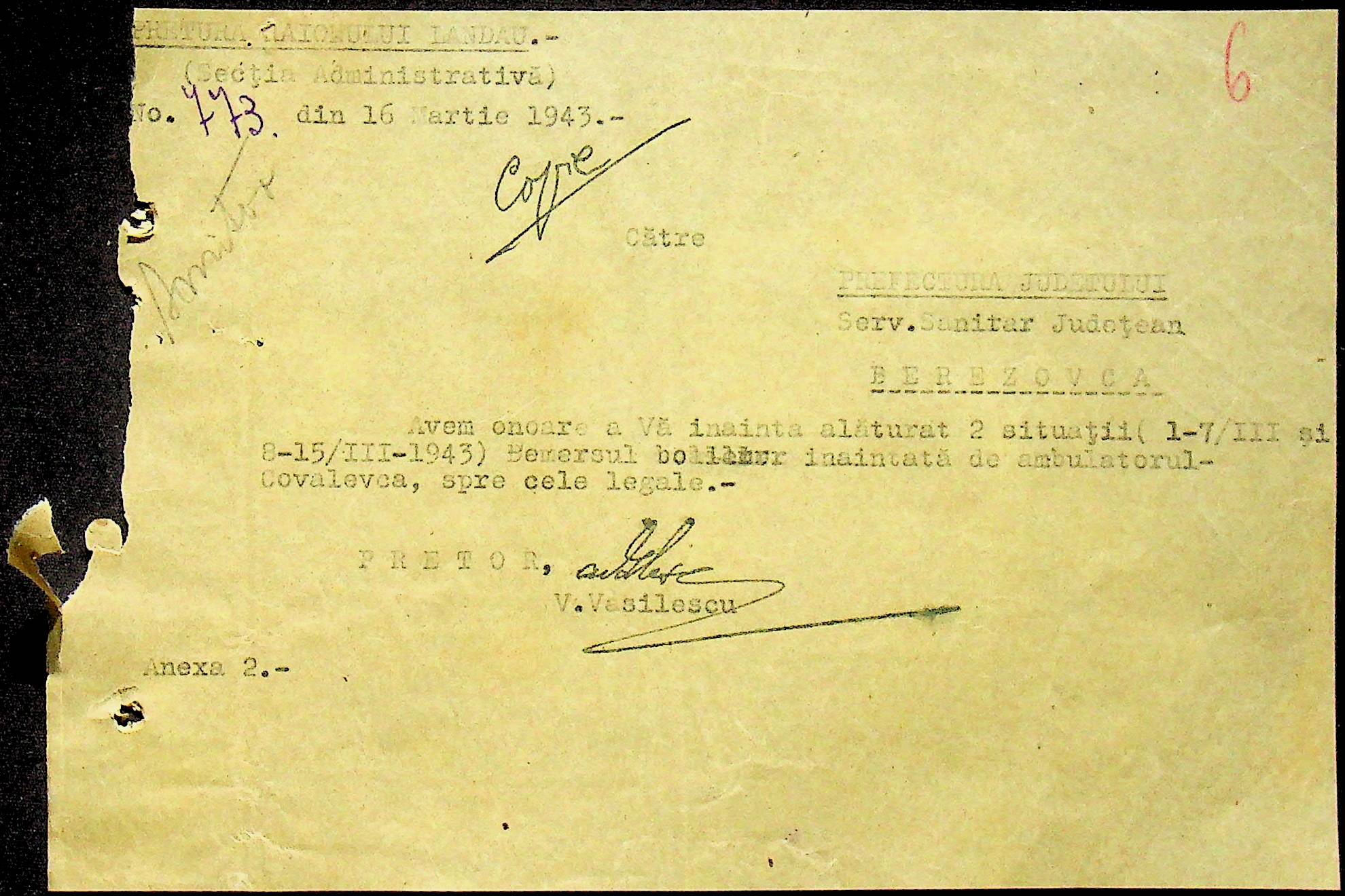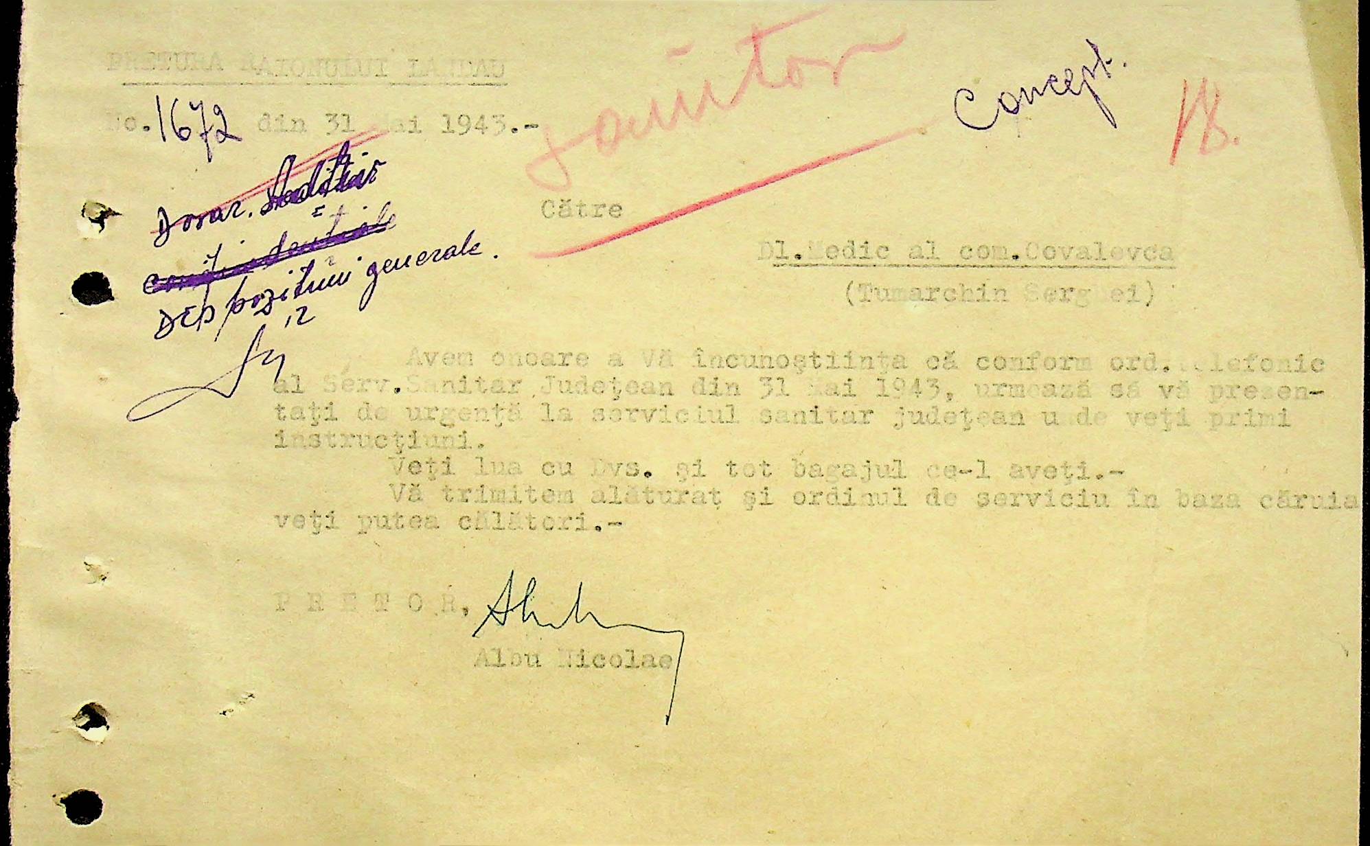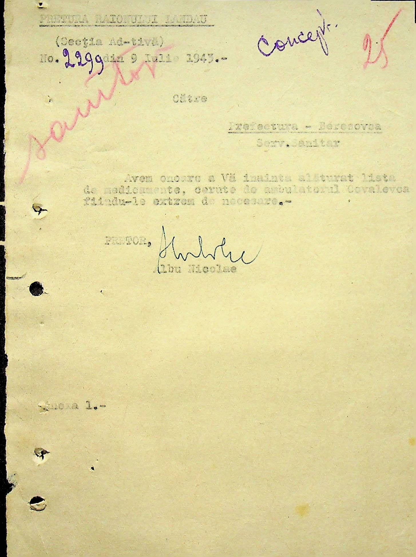 • • • • Справа № 118 Обіжний наказ Головного лікаря медико-санітарного округу про щеплення населення від холери; наказ префекта Березівського повіту про впровадження єдиних санітарних правил та норм в районі; листування з санітарним відділом префектури про епідемію висипного тифу і холери в районі.