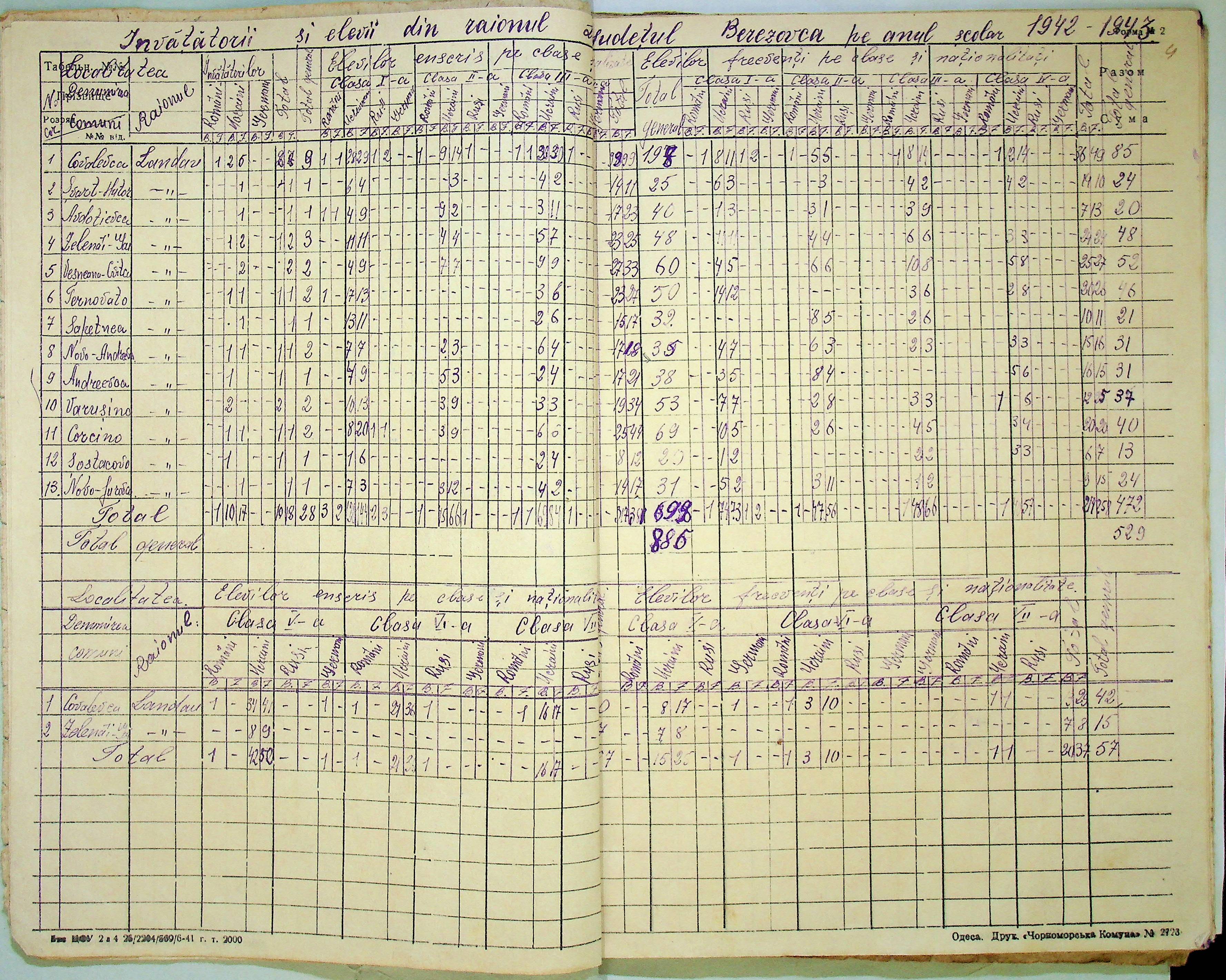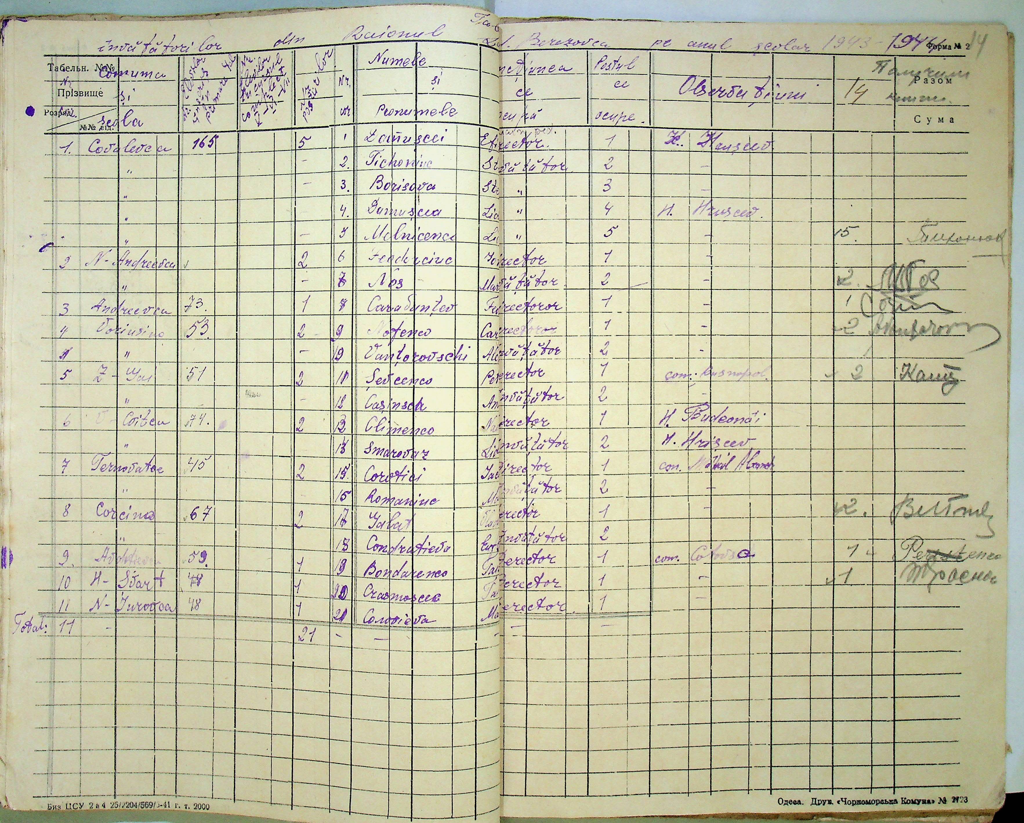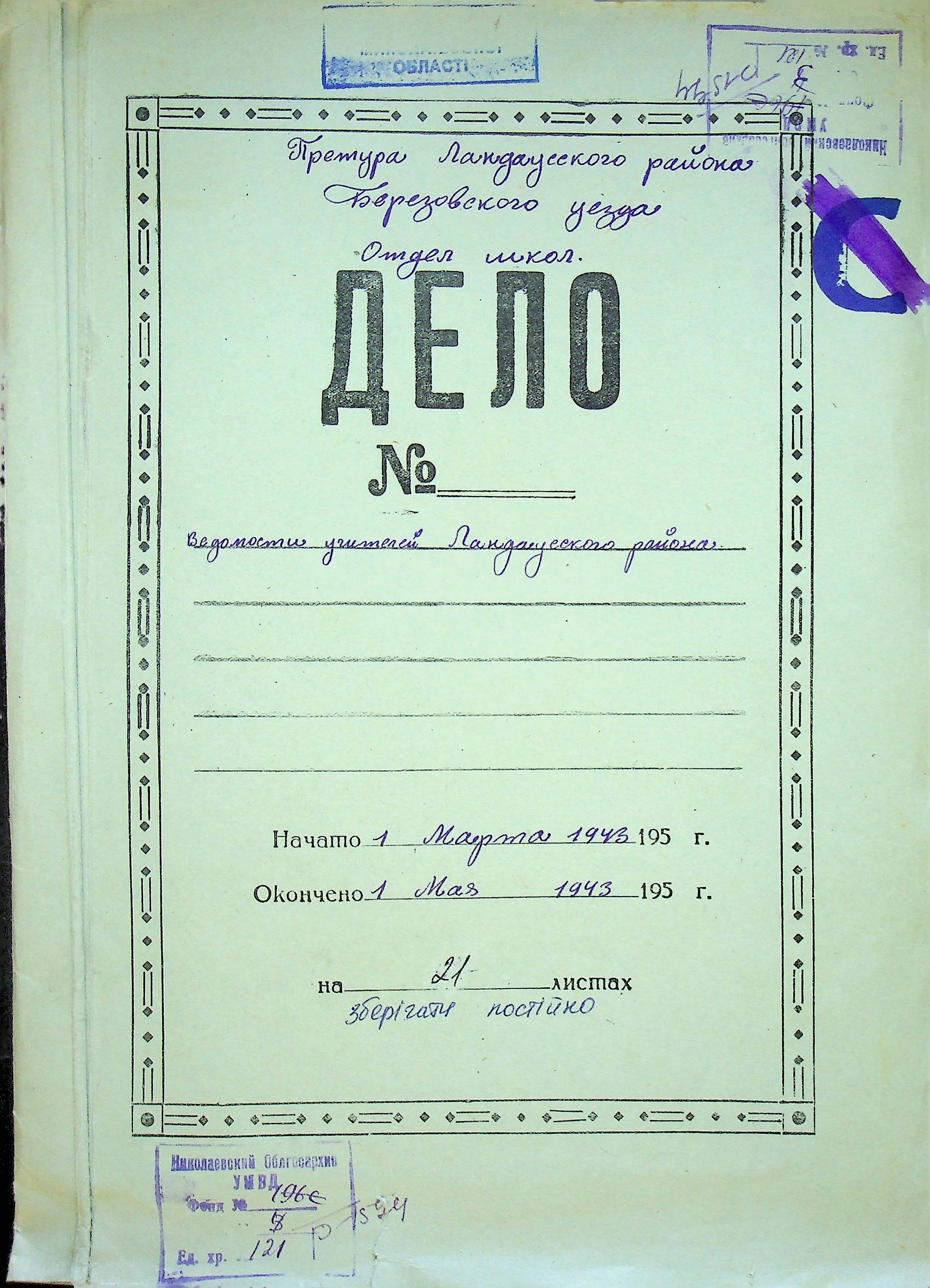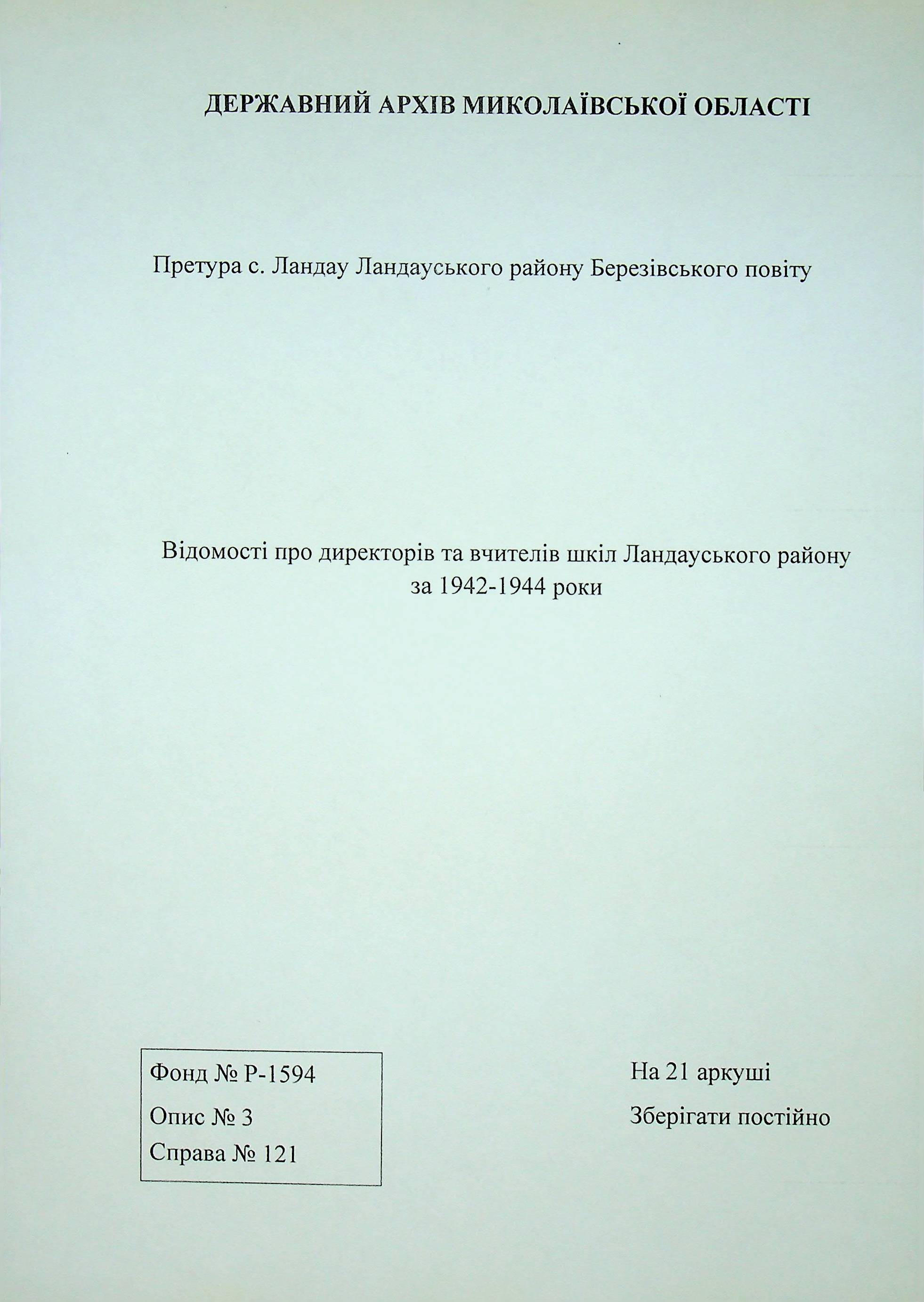 • • • • Справа № 121 Відомості про директорів та вчителів шкіл Ландауського району за 1942-1944 роки