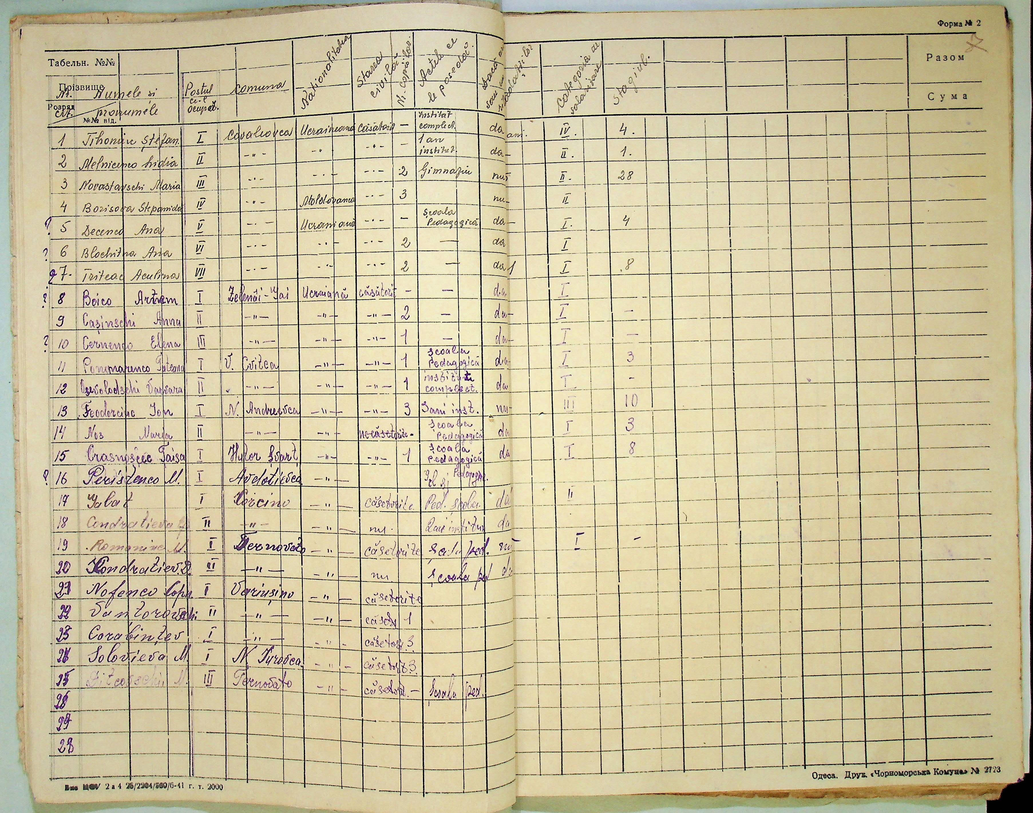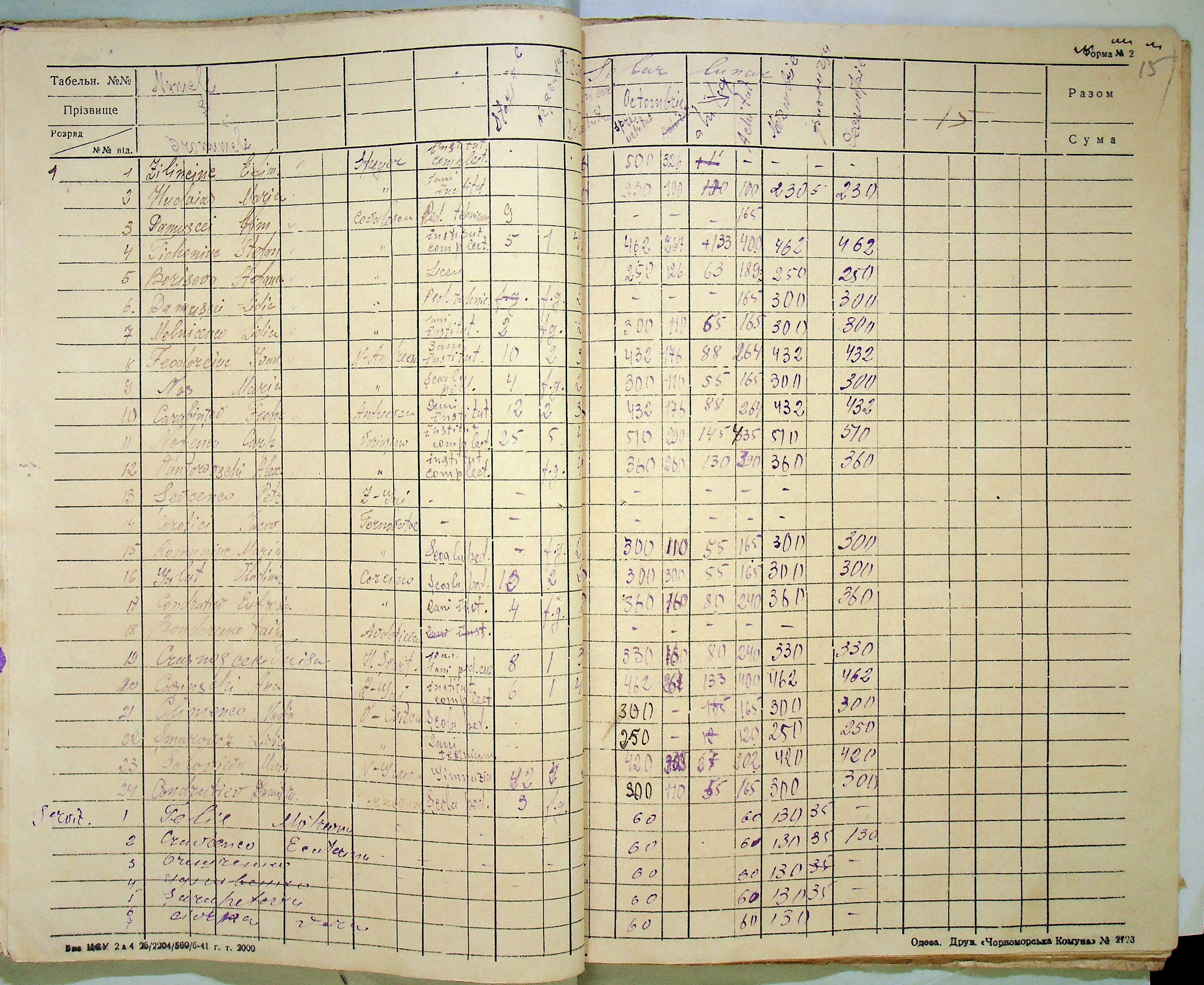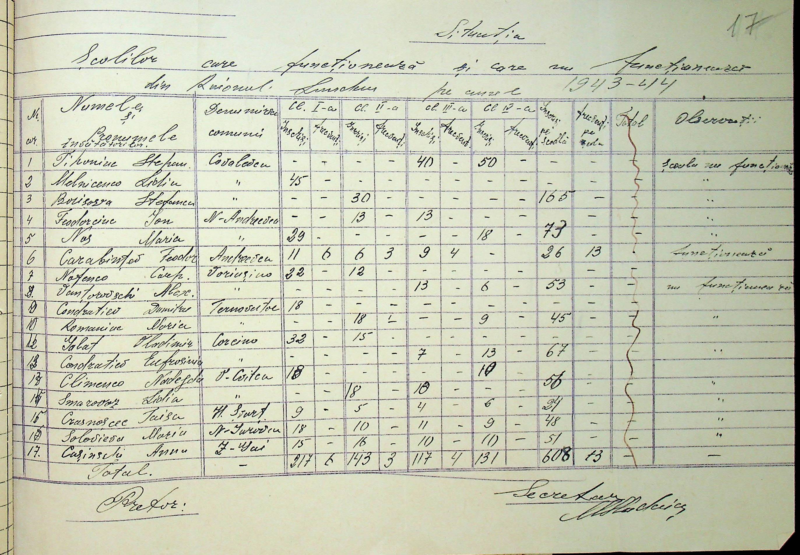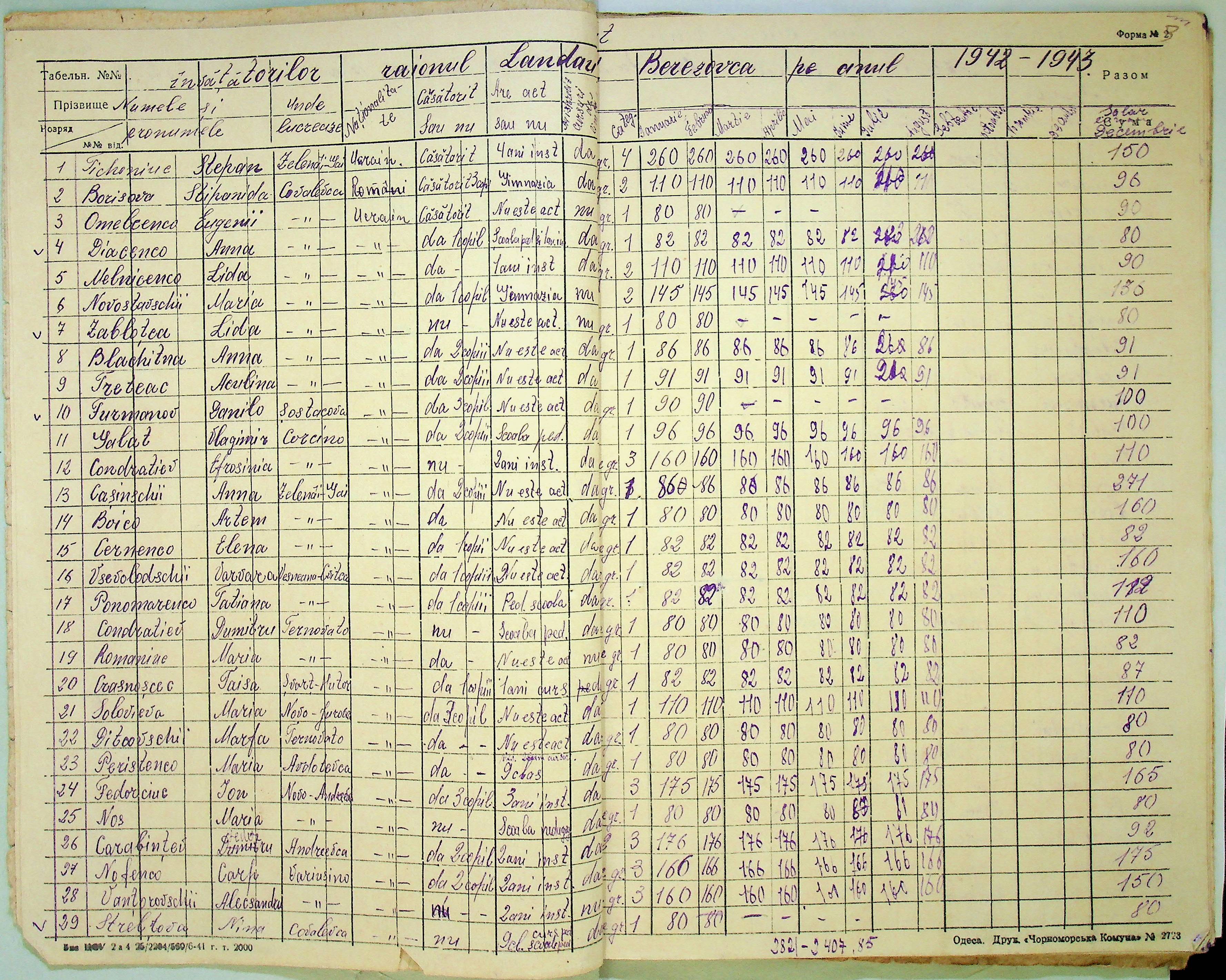 • • • • Справа № 121 Відомості про директорів та вчителів шкіл Ландауського району за 1942-1944 роки