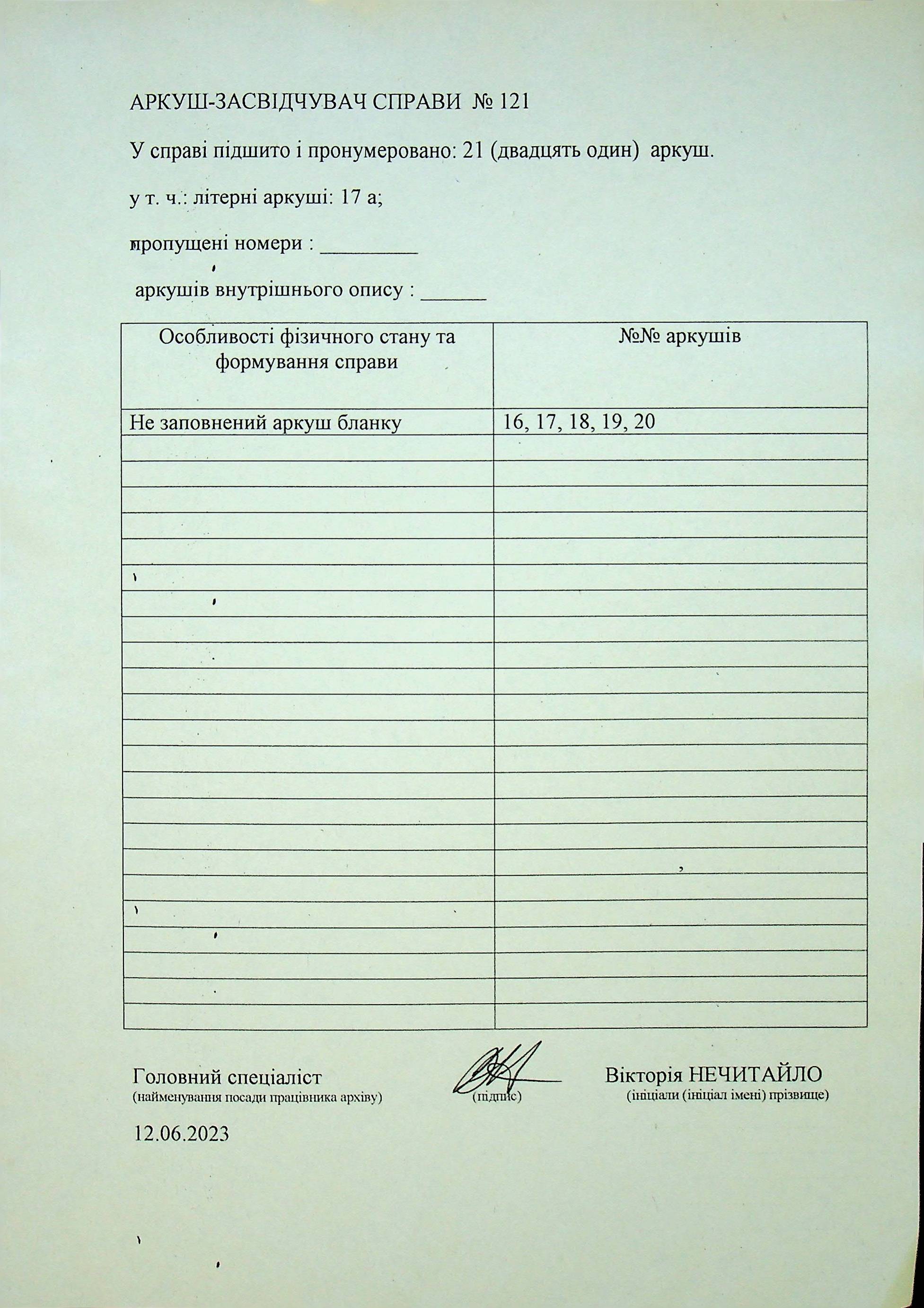 Фонд Н-1594 / Опис 3 / Справа 121
