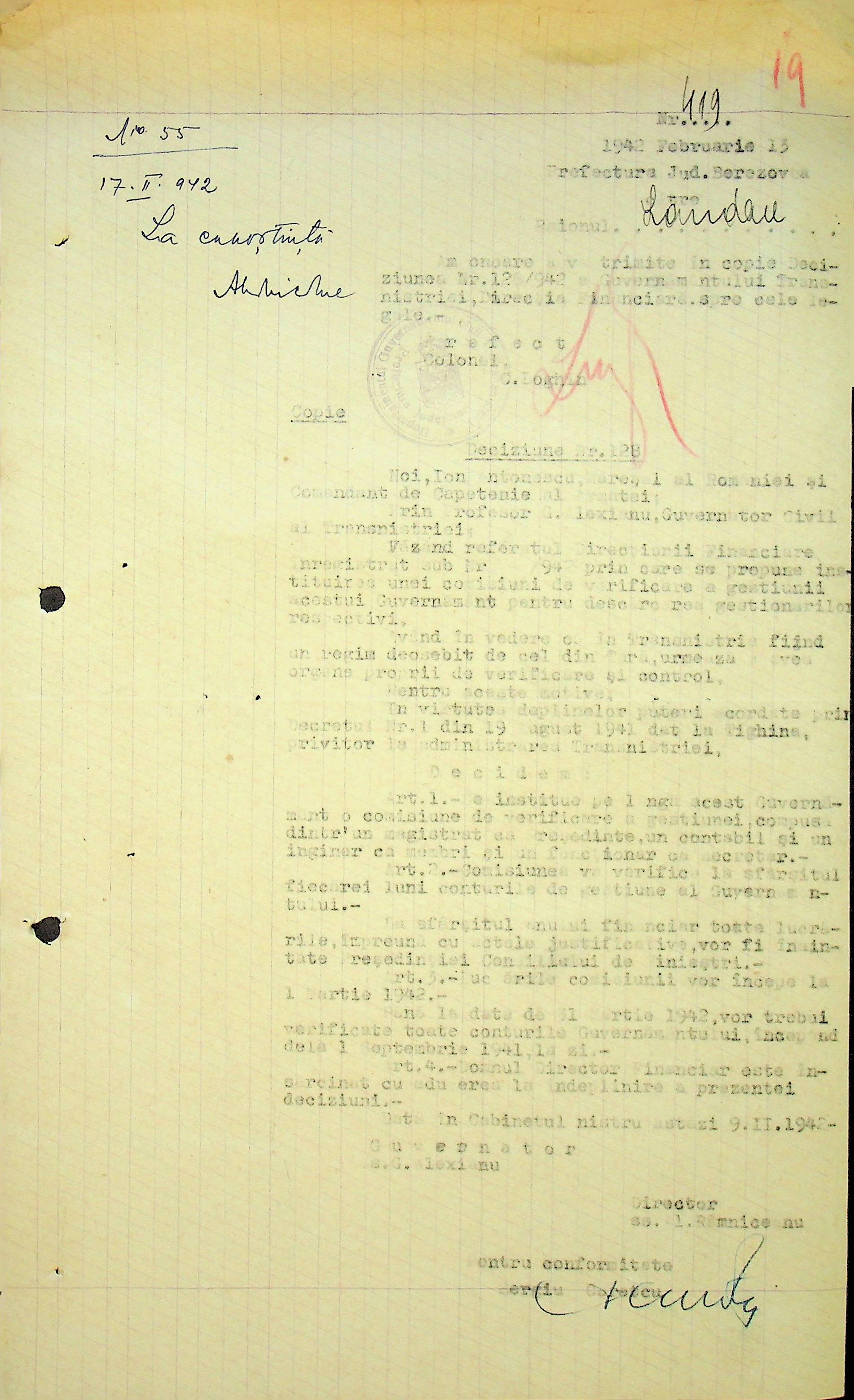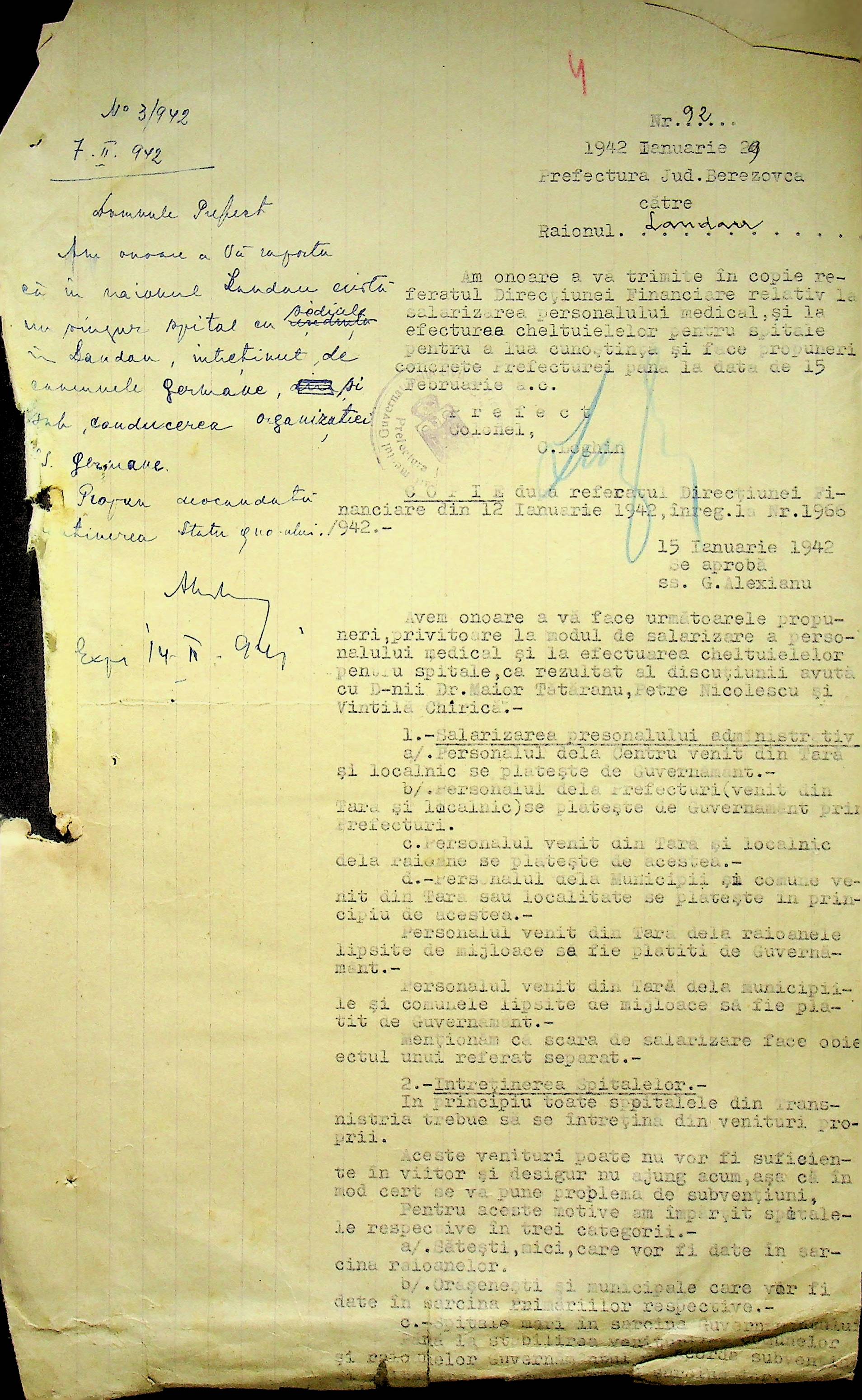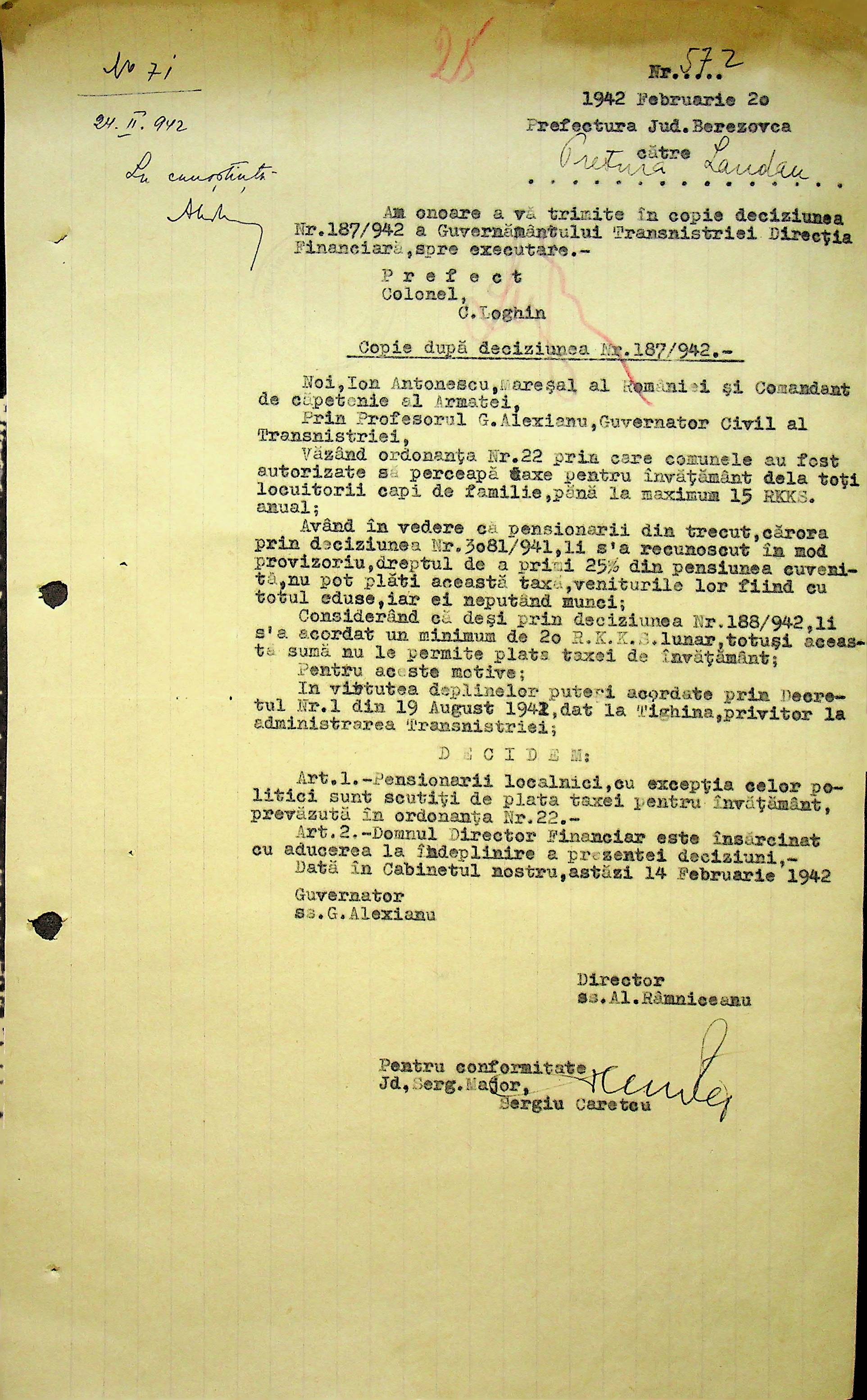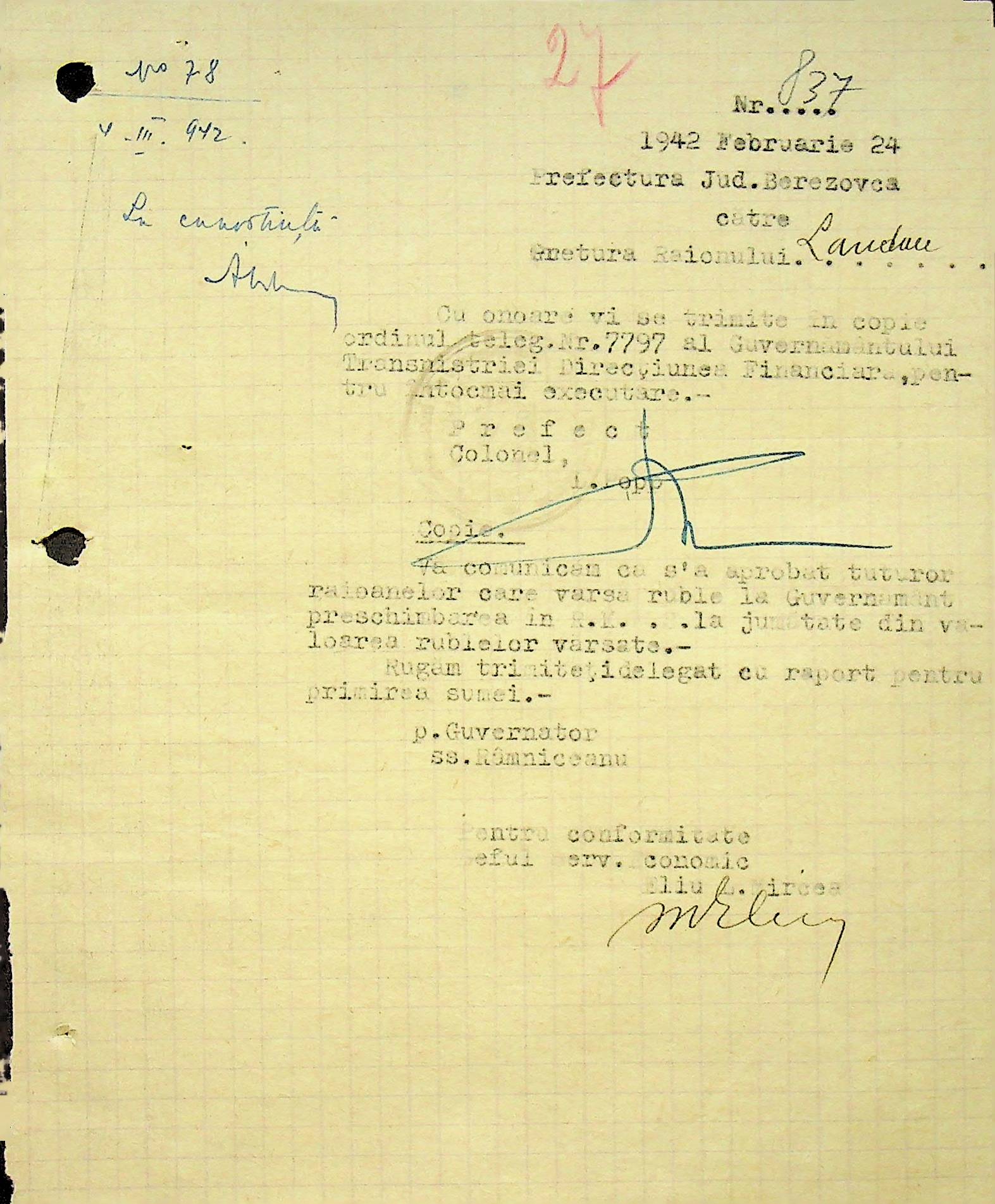 • • • • Справа № 123 Документи (копії обіжників, постанов, рішень, звітів; інструкції, відомості, листування) про адміністративний поділ району, порядок встановлення заробітної плати та надання допомоги місцевому персоналу та посадовим особам, які прибули із країни, медичному персоналу та витрати на лікарні; про встановлення надбавок і доплат через дороговизну працівникам, які обслуговують Трансністрію, транспортні виплати державним службовцям; про моделі виплати заробітної плати, оклади місцевих державних службовців; про стан та облаштування шкіл округу, стягнення коштів за освіту дітей з голів сімей; про створення пенсійної програми та порядок нарахування пенсій, затвердження місцевих бюджетів, підготовку платіжних квитанції та облік коштів; оподаткування селян та порядок виплати штрафів в судах