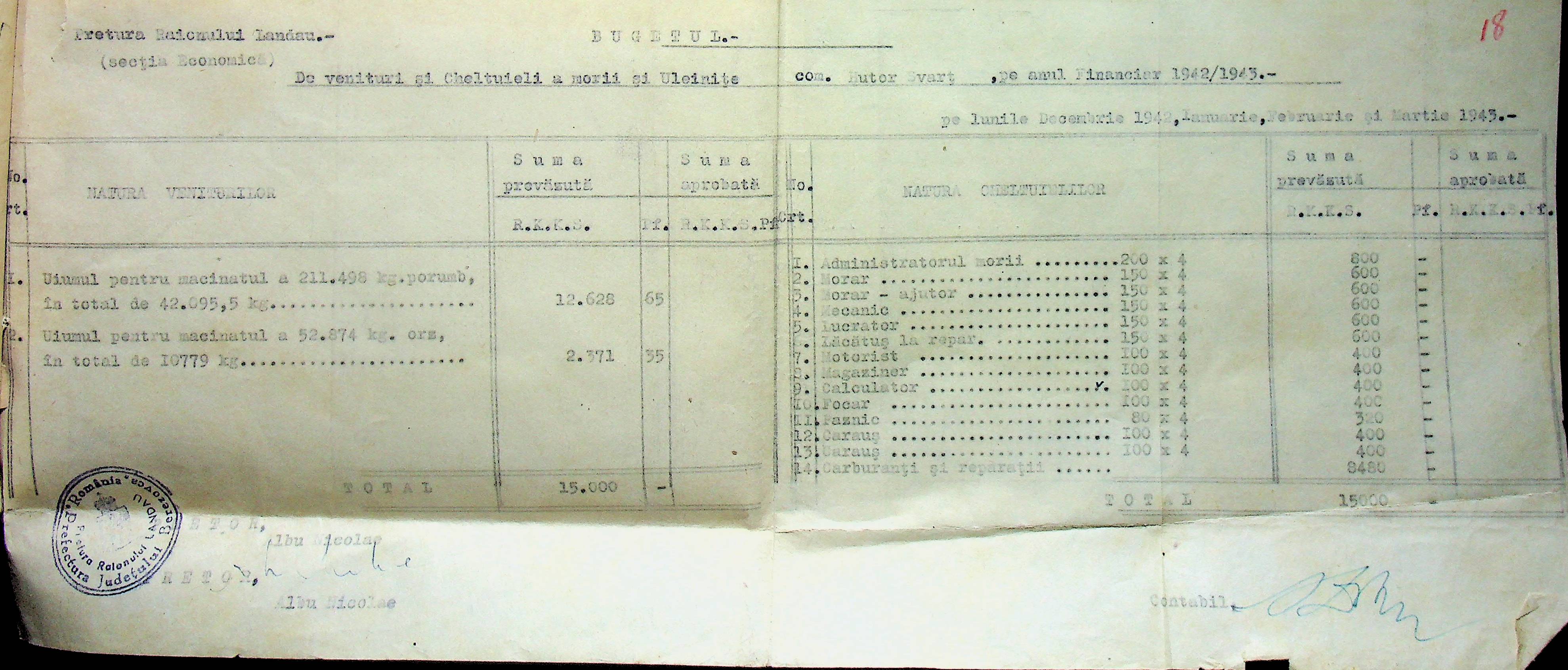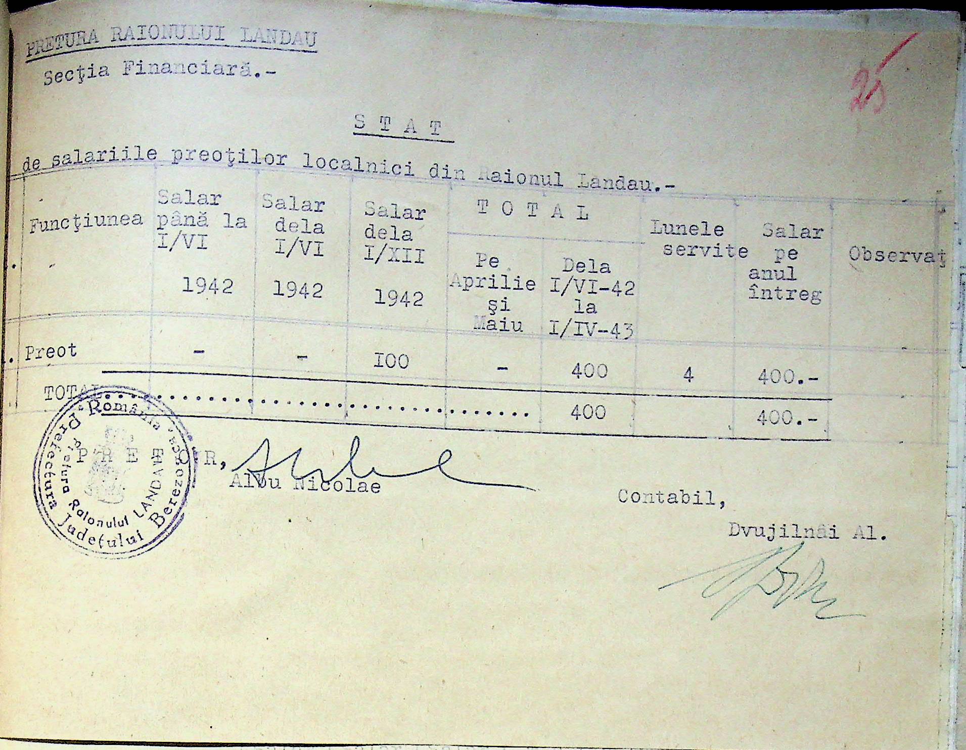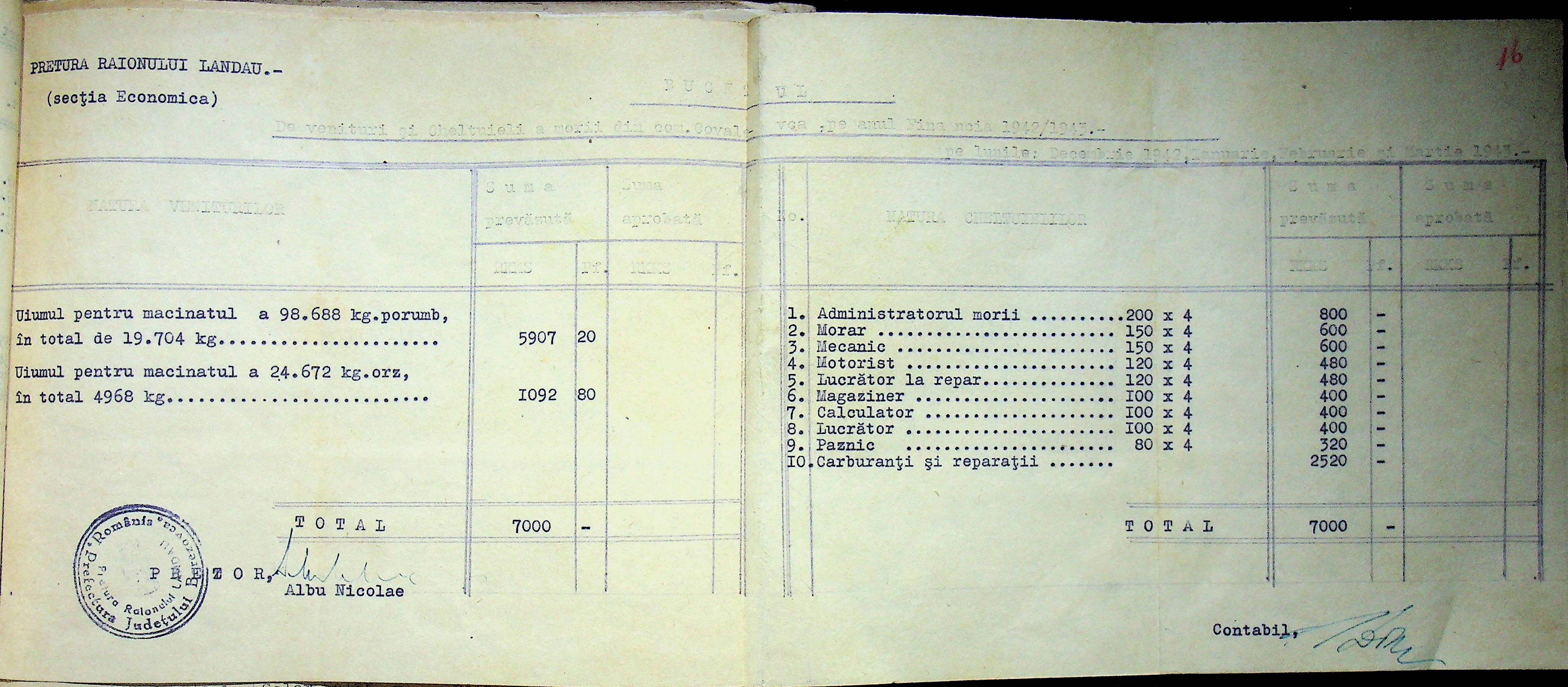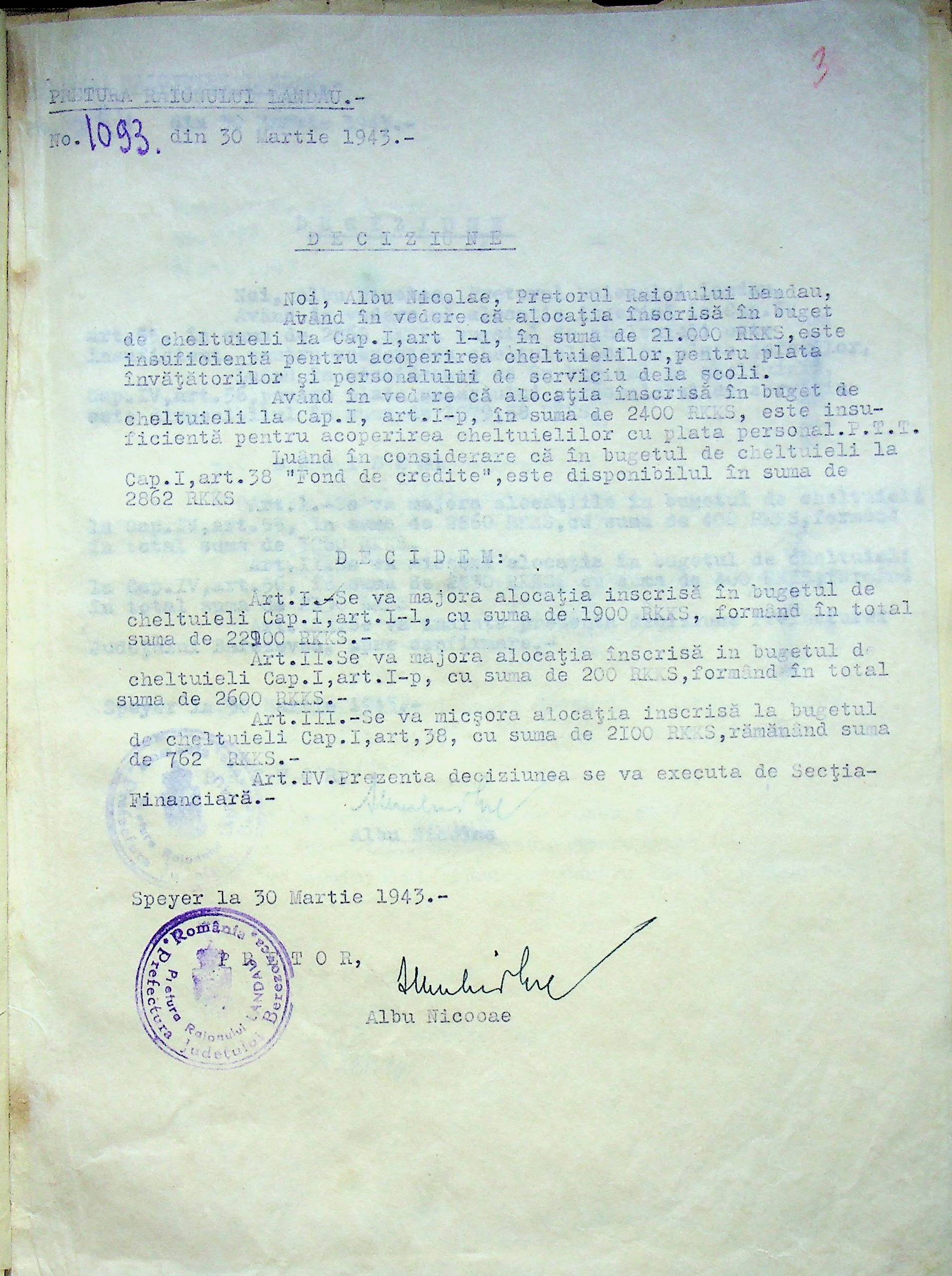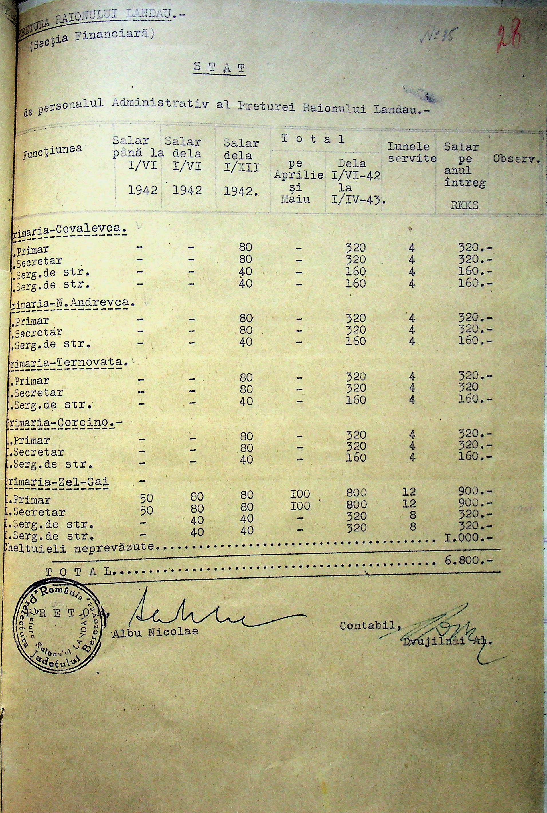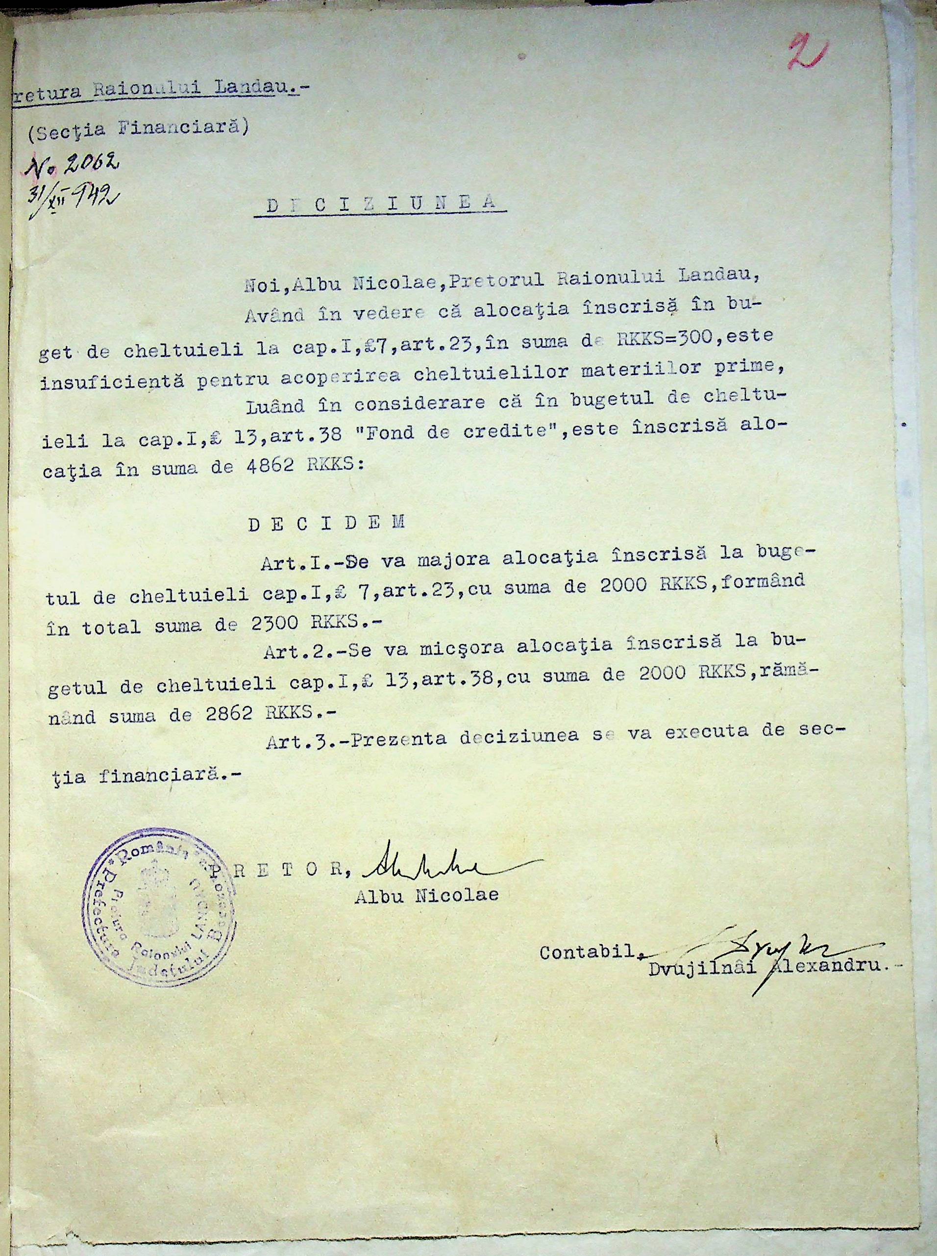 • • • • Справа № 125 Рішення префекта Березівського повіту і претора Ландауського району про затвердження проекту бюджету Ландауського району на 1942-1943 роки, зміни до нього; бюджет та штатний розпис на 1942-1943 роки