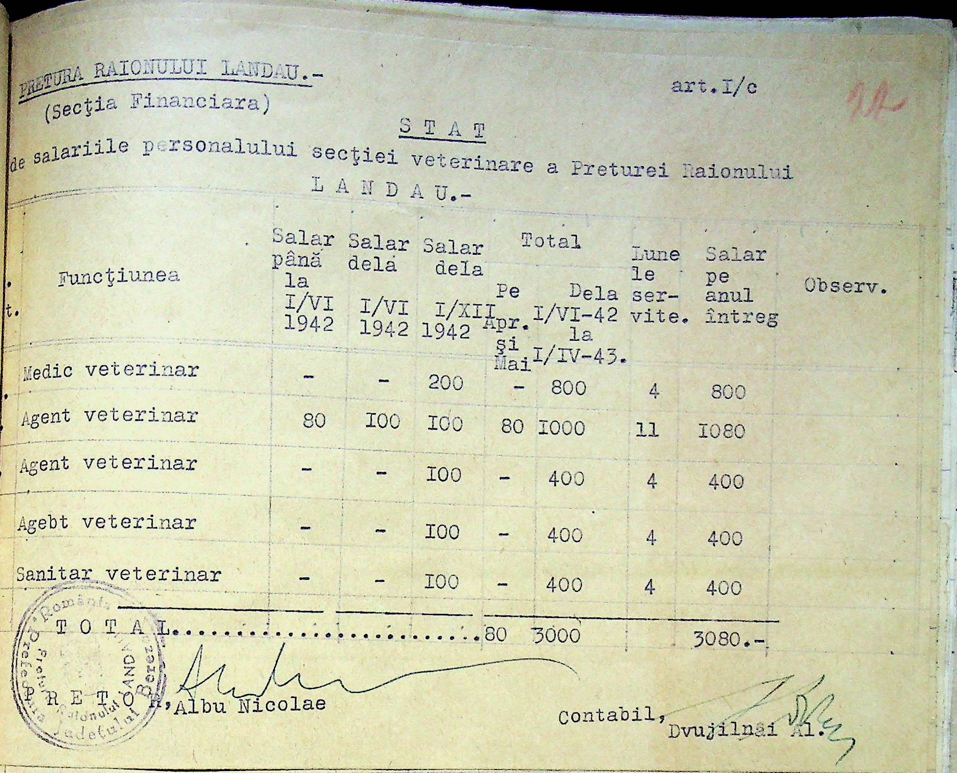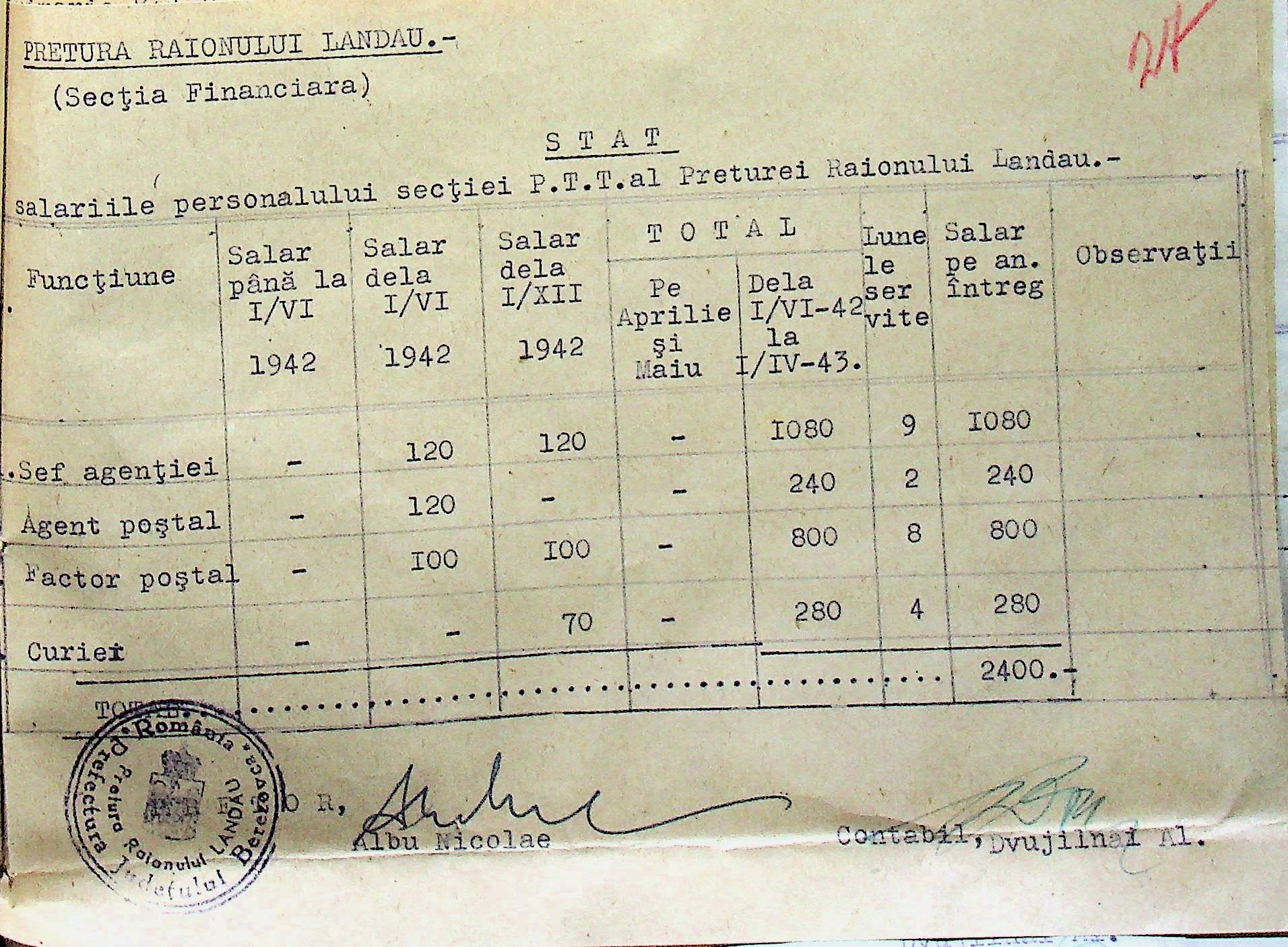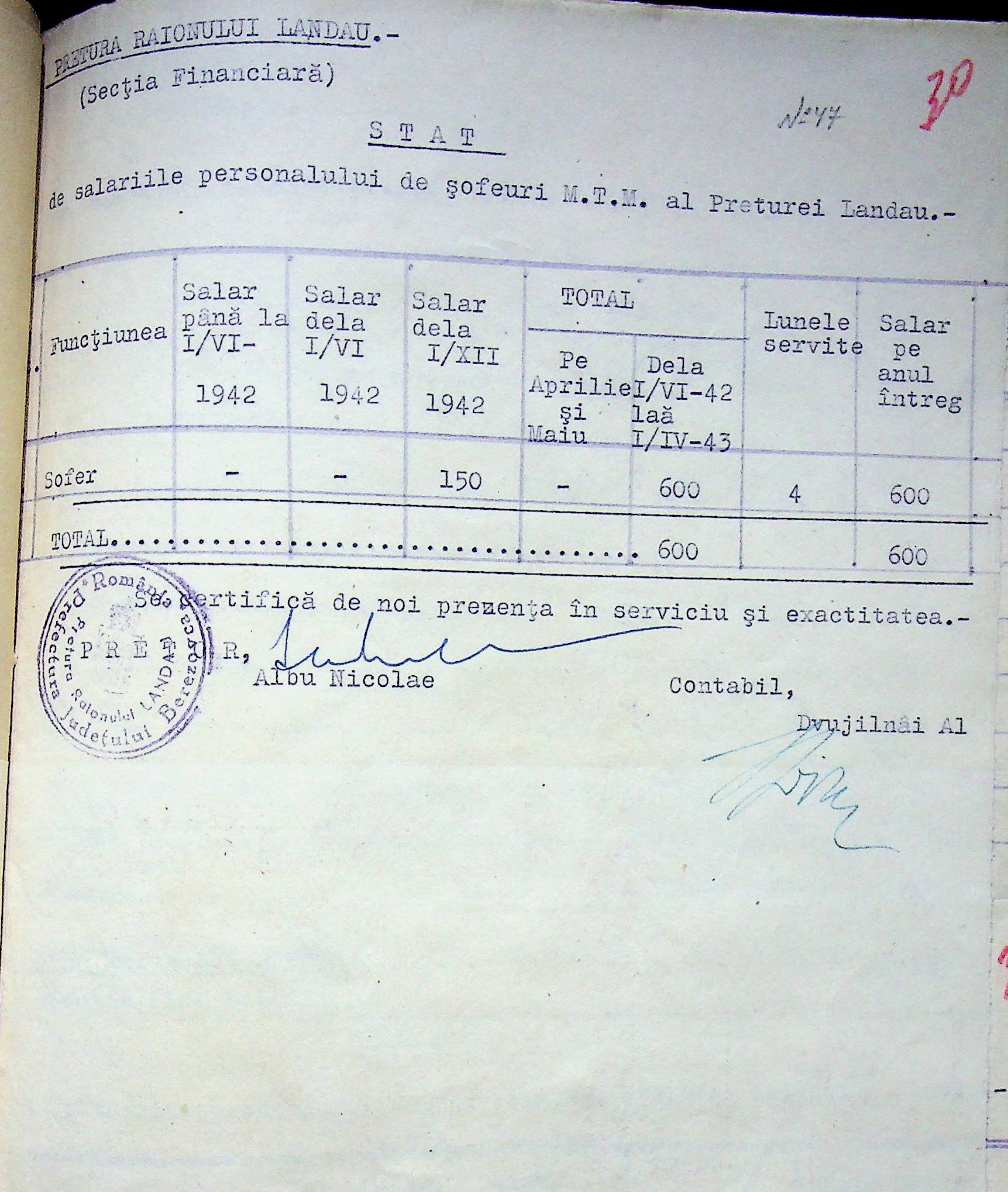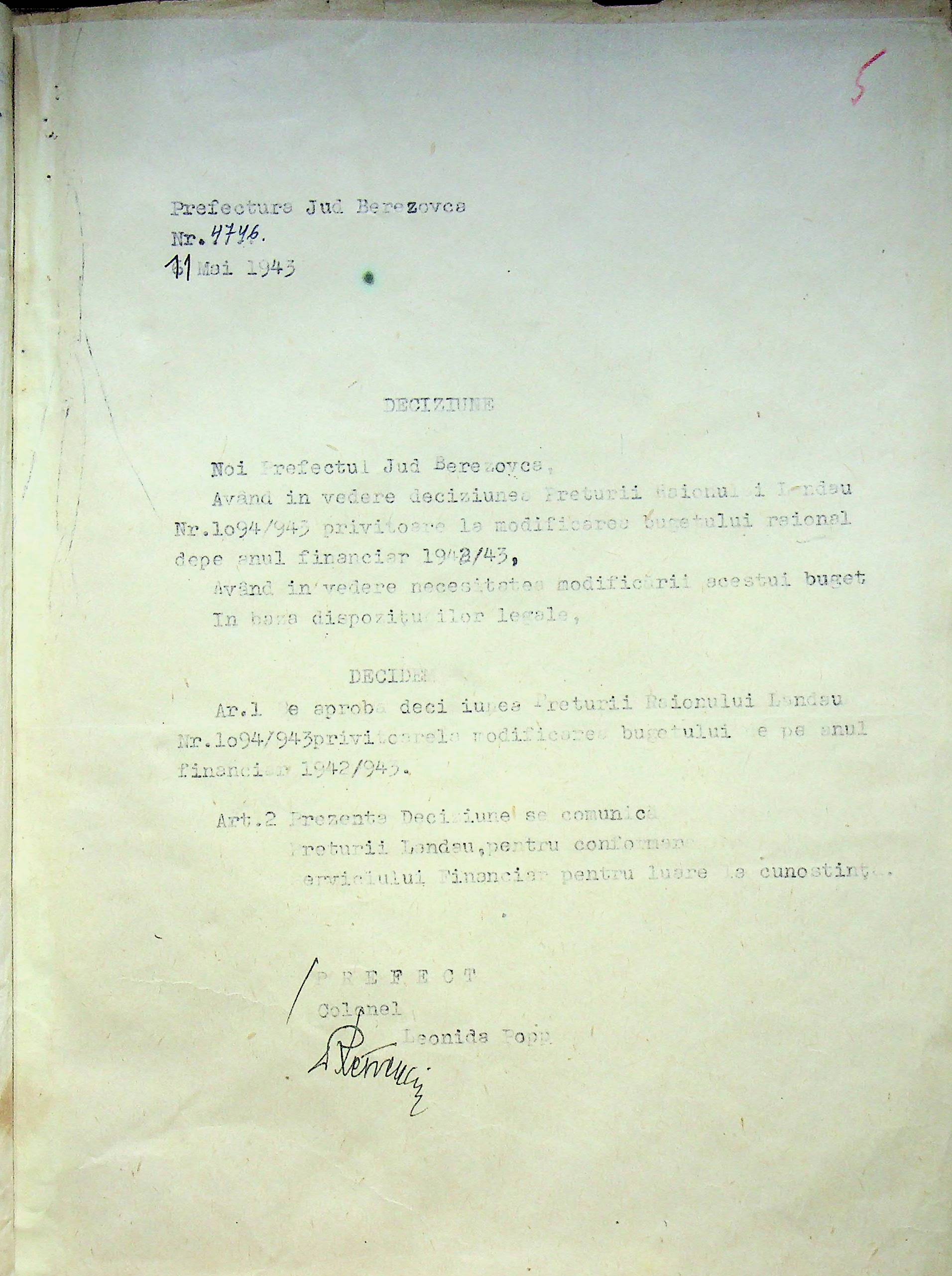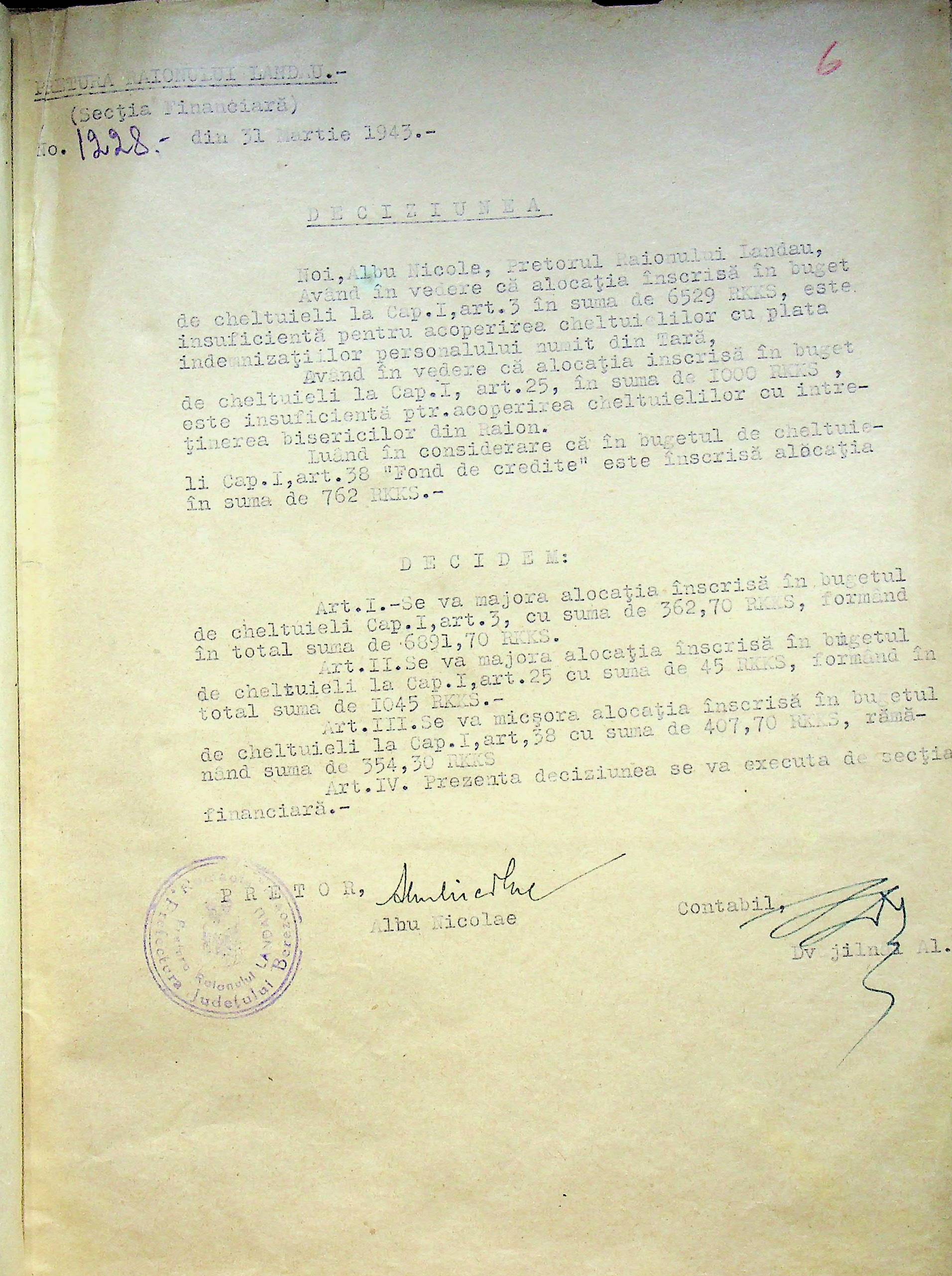 • • • • Справа № 125 Рішення префекта Березівського повіту і претора Ландауського району про затвердження проекту бюджету Ландауського району на 1942-1943 роки, зміни до нього; бюджет та штатний розпис на 1942-1943 роки
