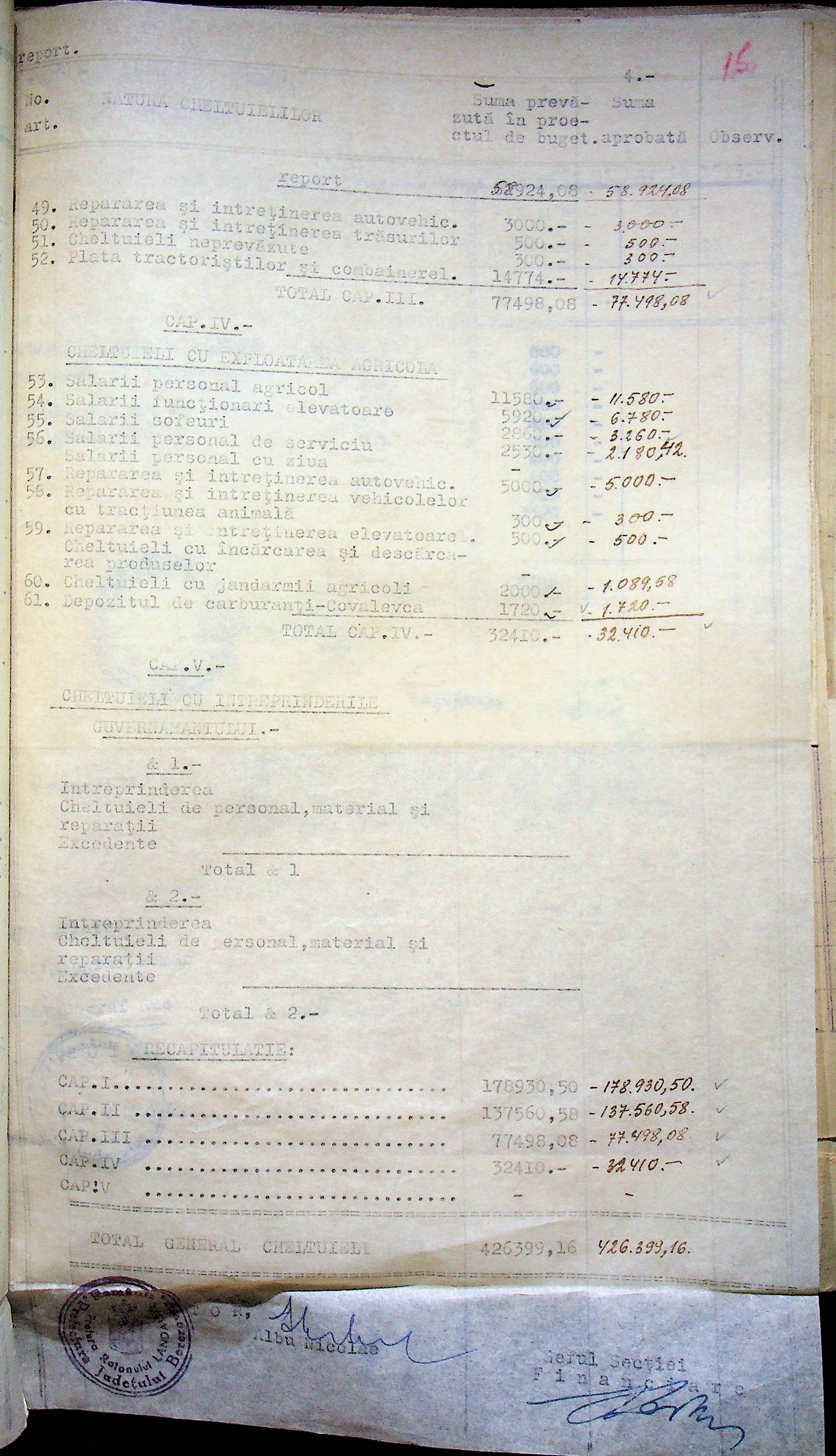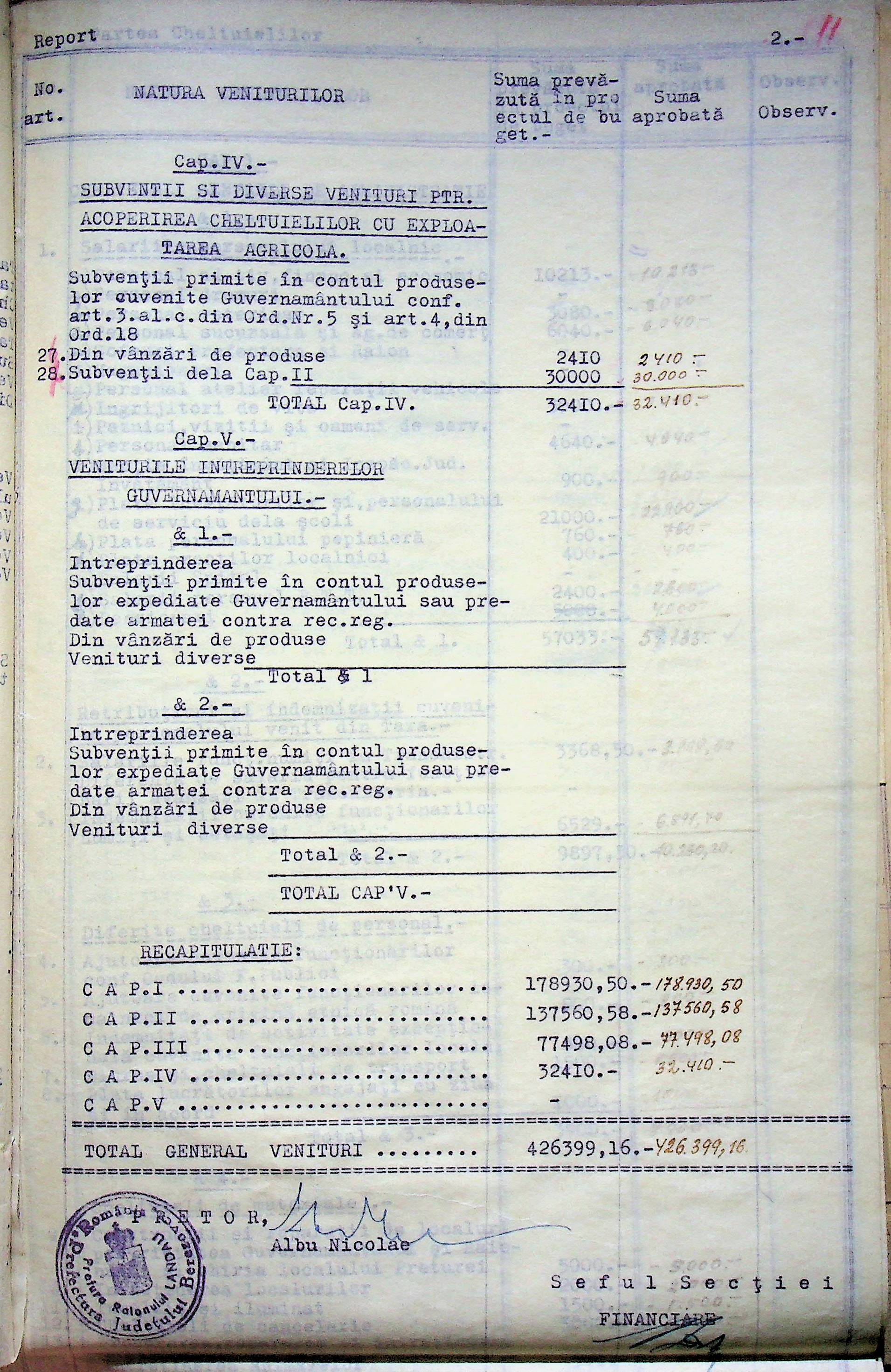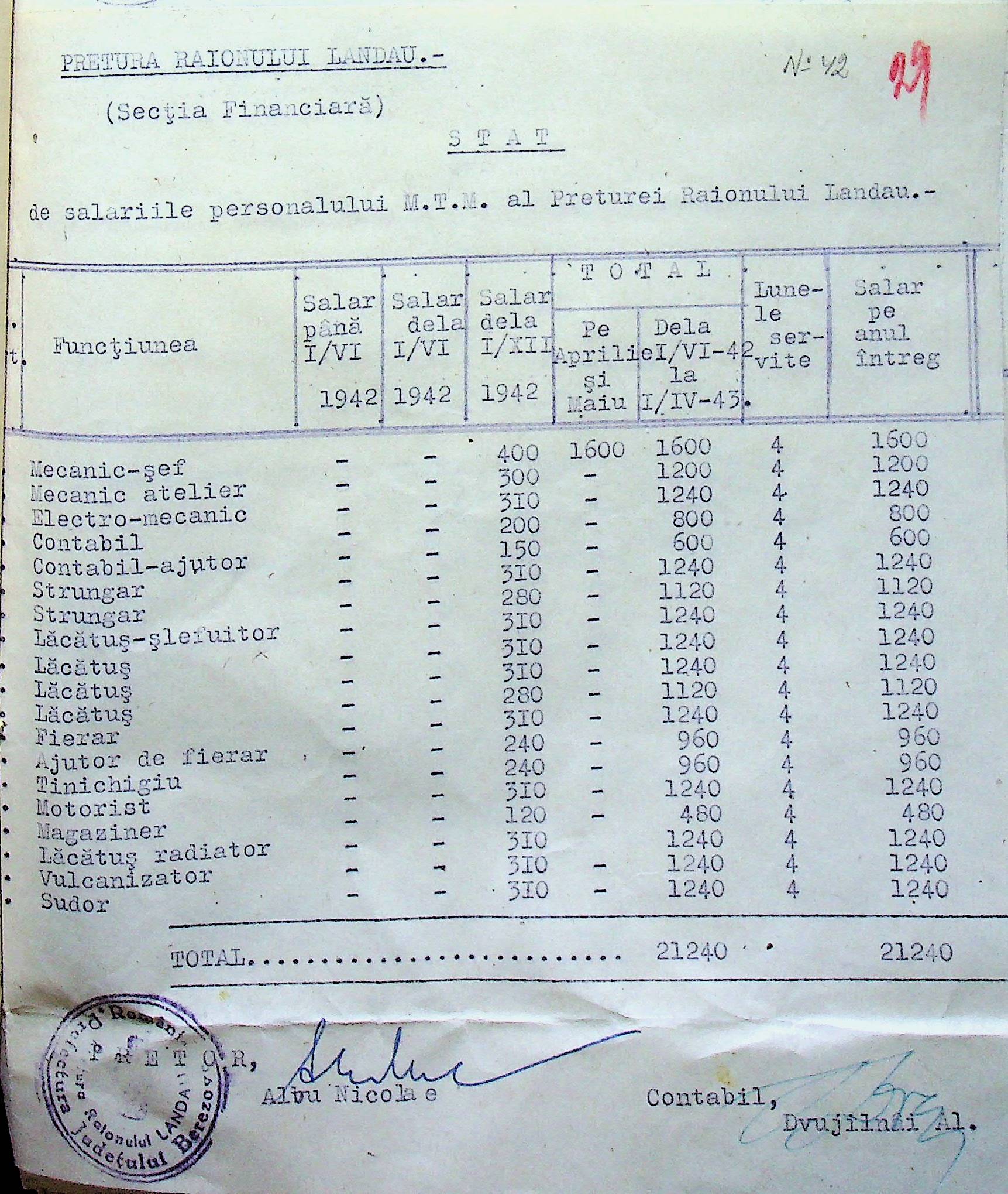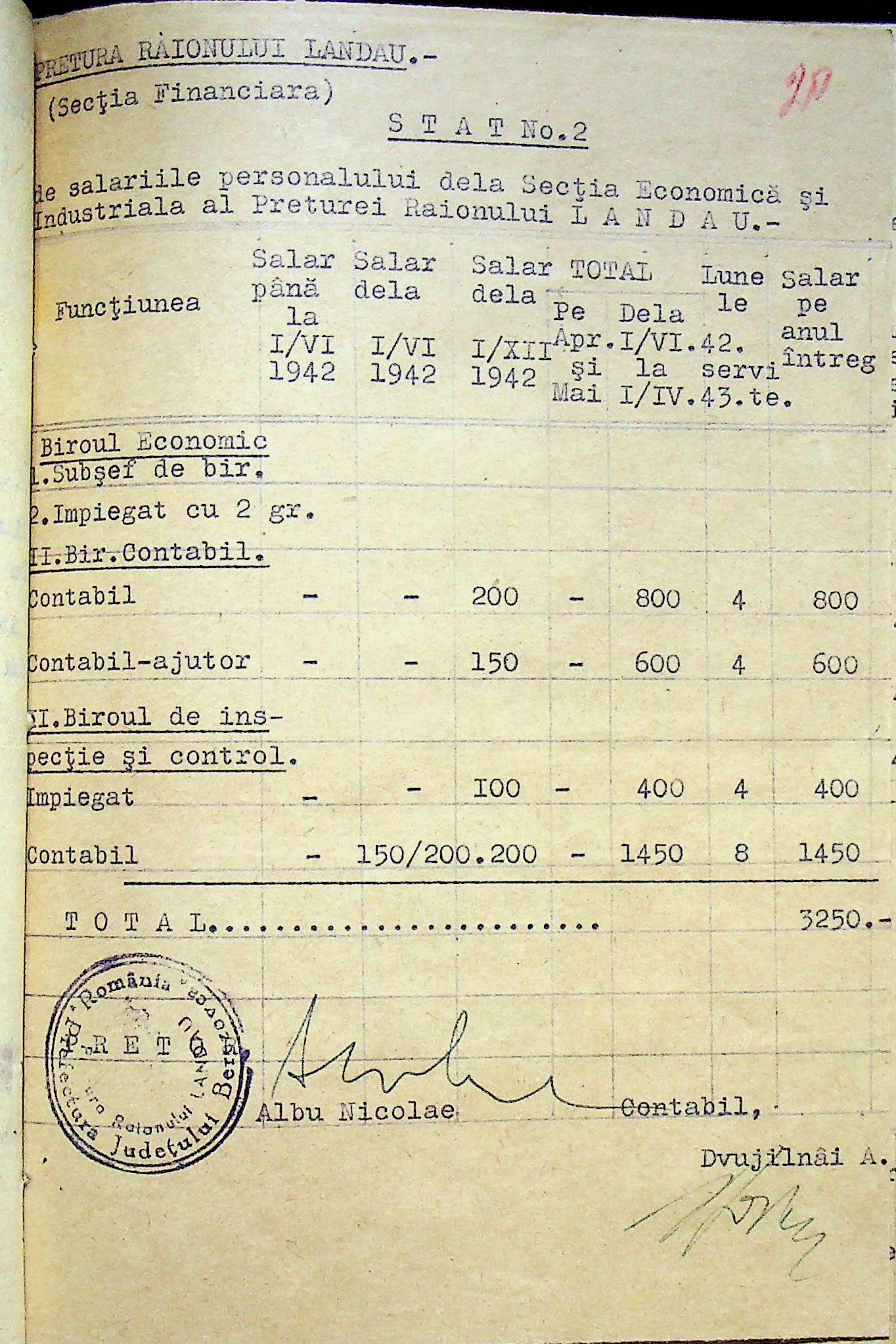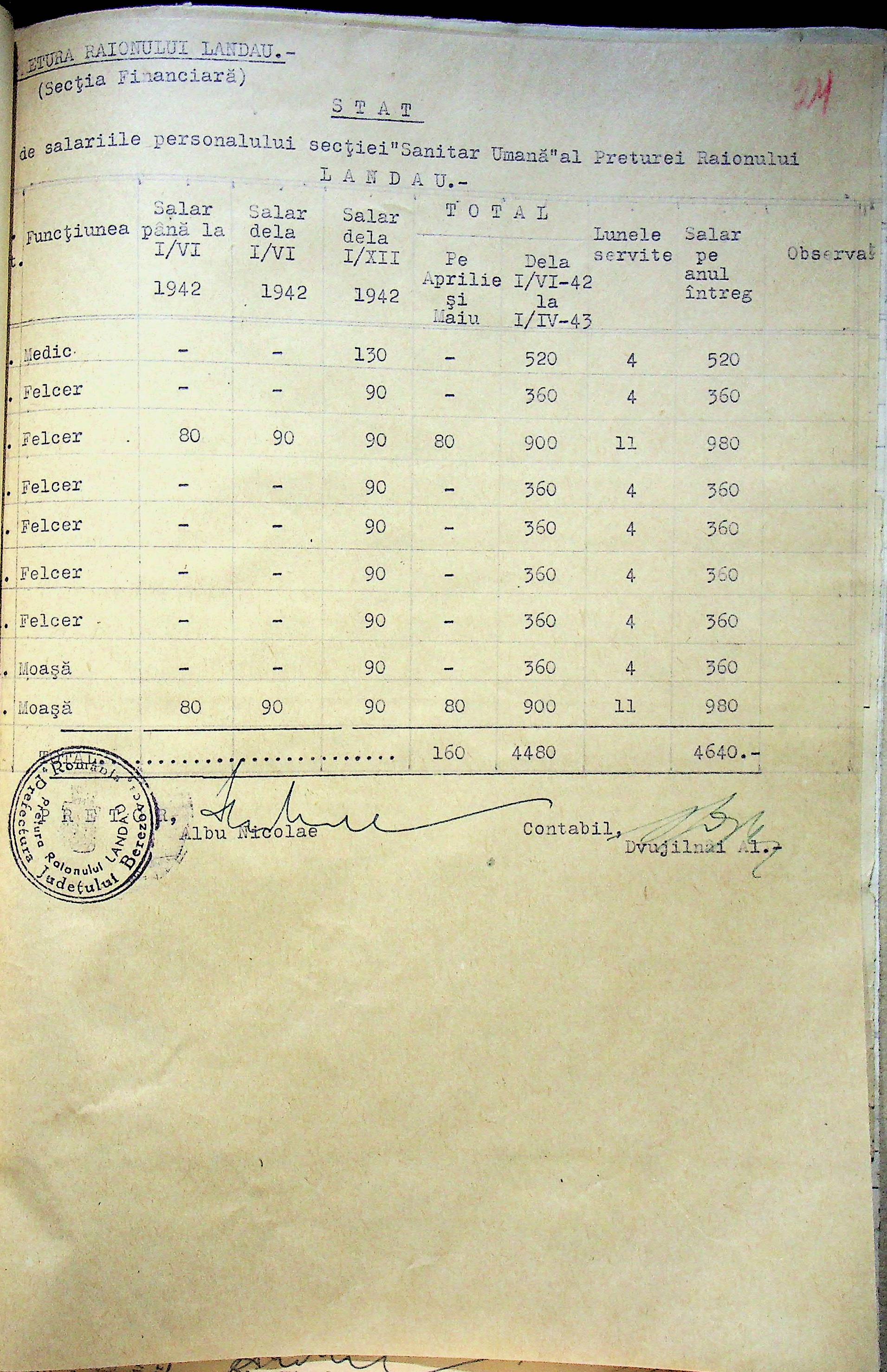 • • • • Справа № 125 Рішення префекта Березівського повіту і претора Ландауського району про затвердження проекту бюджету Ландауського району на 1942-1943 роки, зміни до нього; бюджет та штатний розпис на 1942-1943 роки