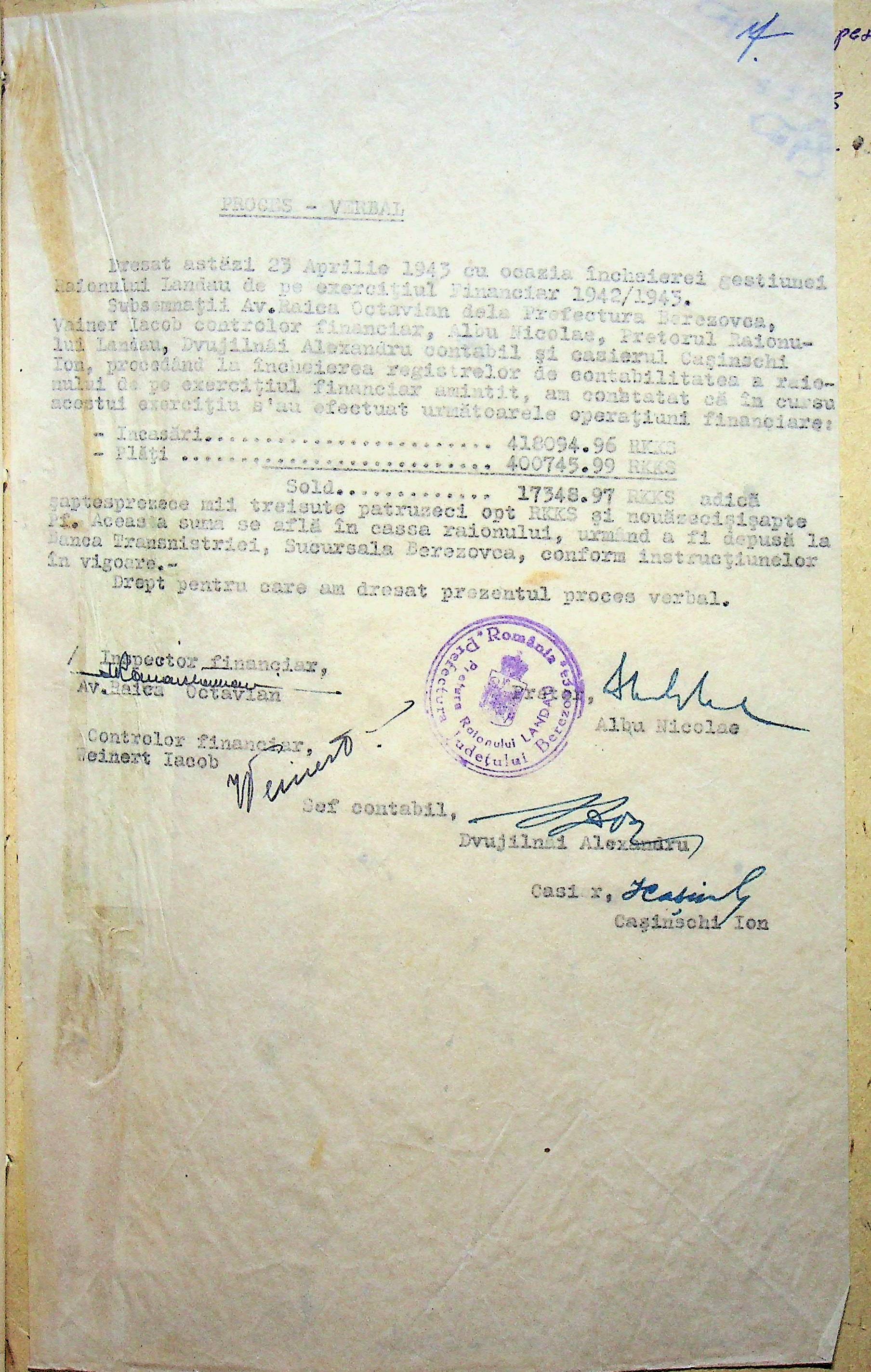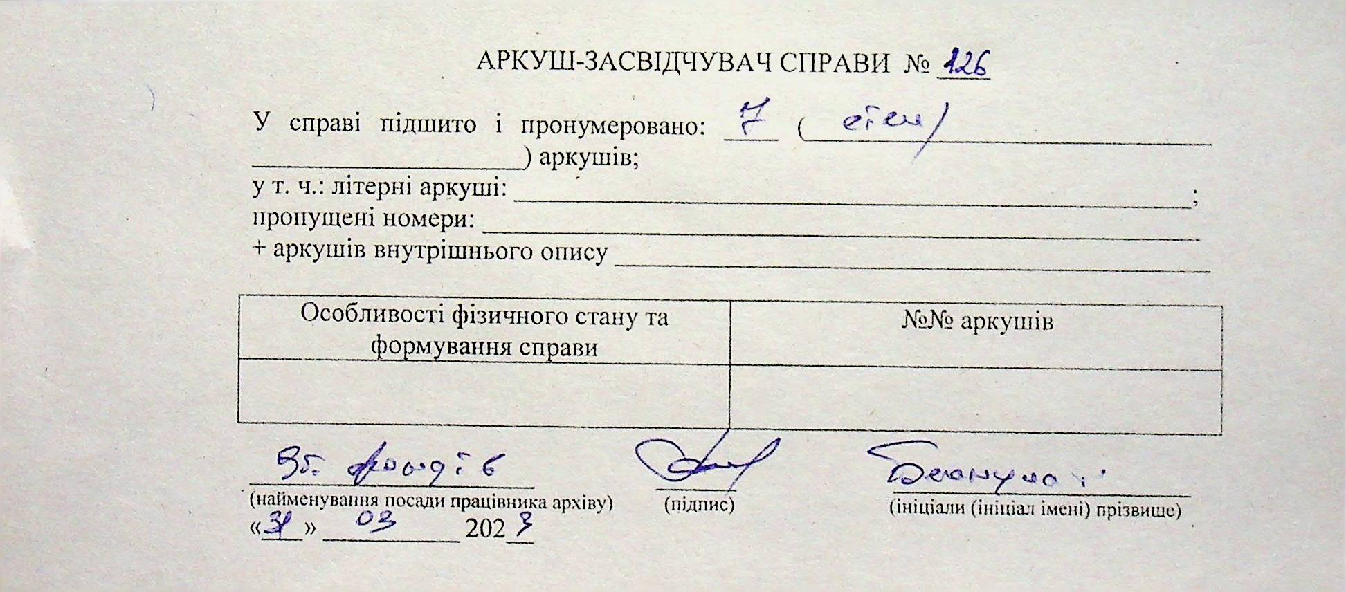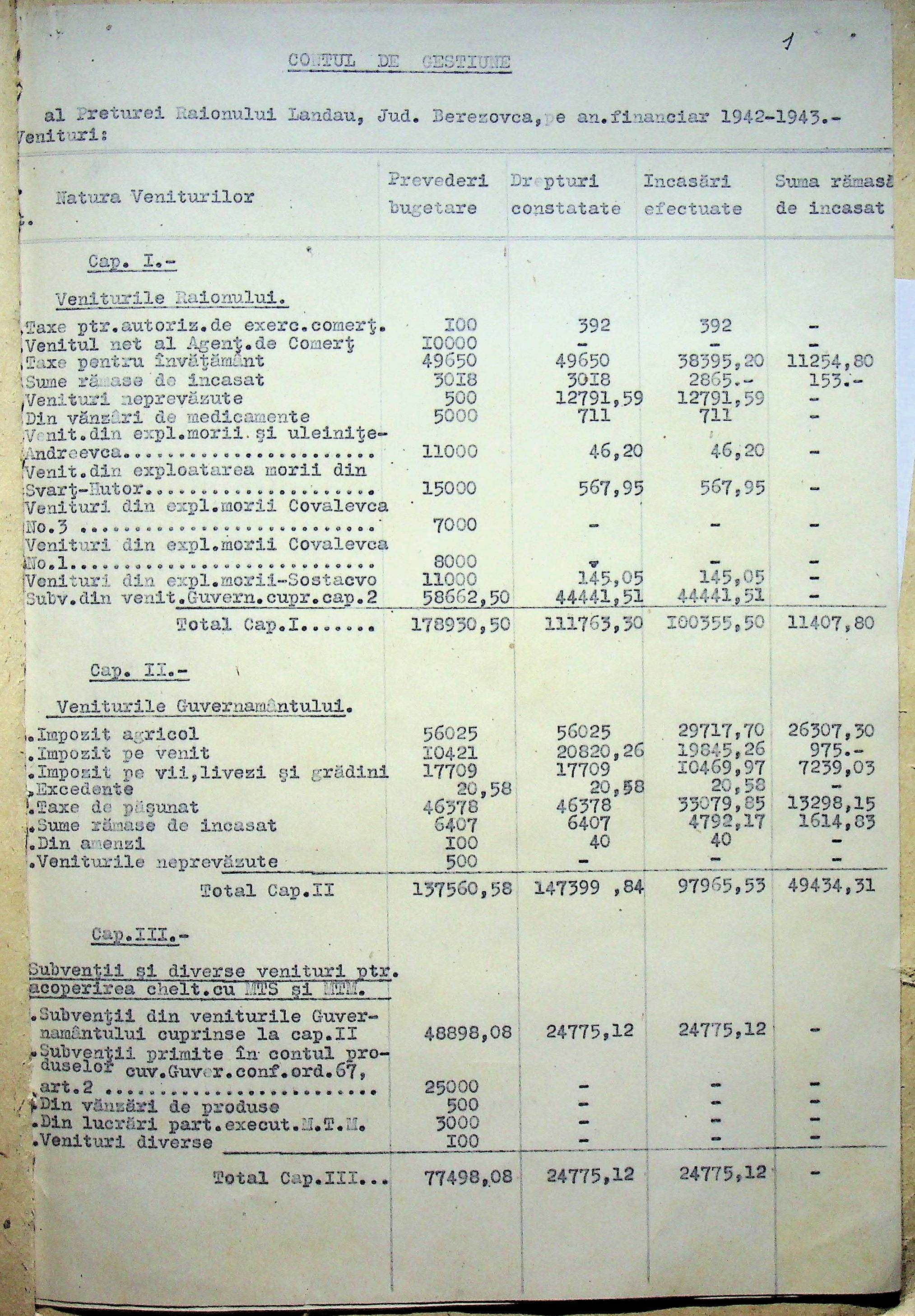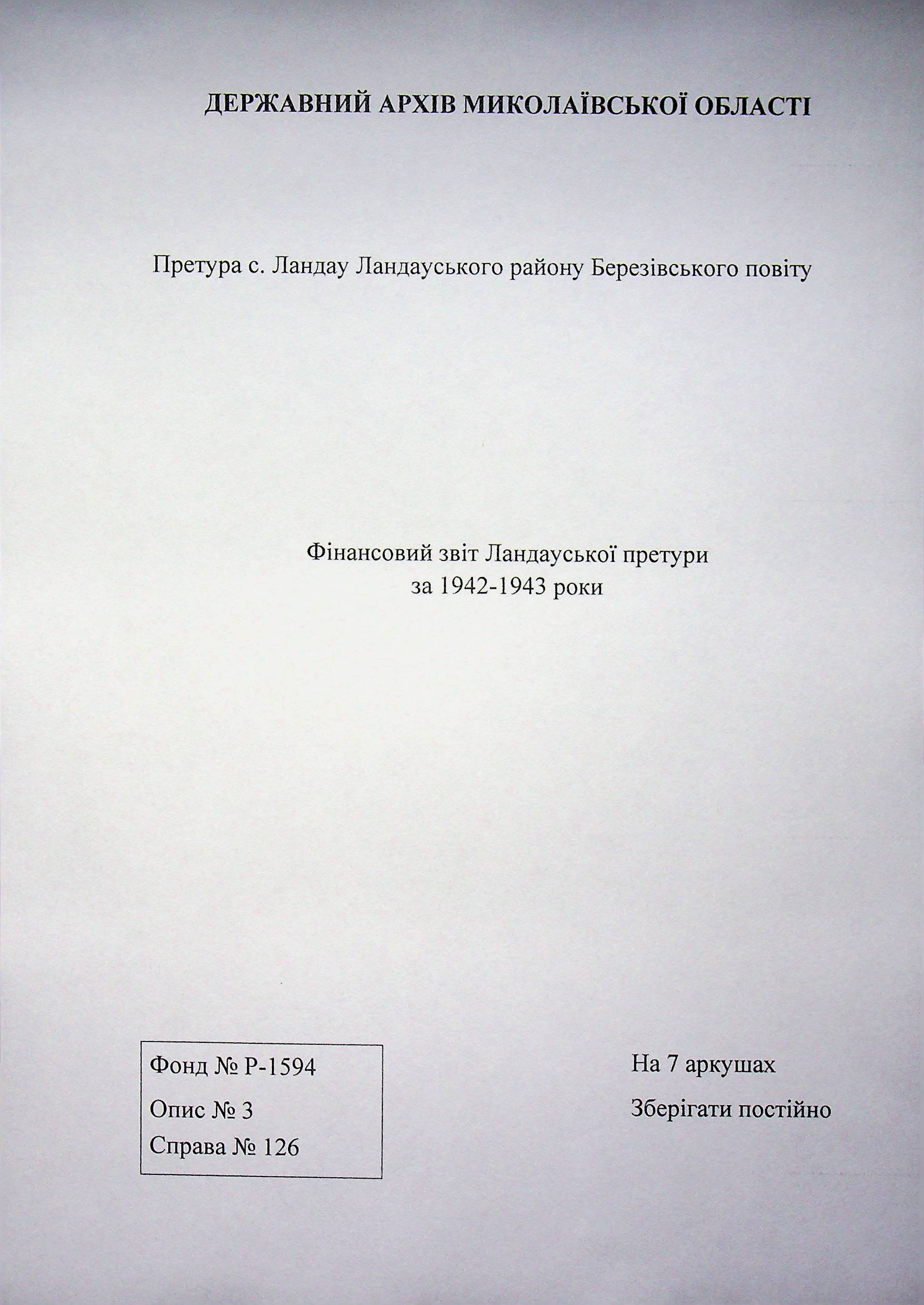 • • • • Справа № 126 Фінансовий звіт Ландауської претури за 1942-1943 роки