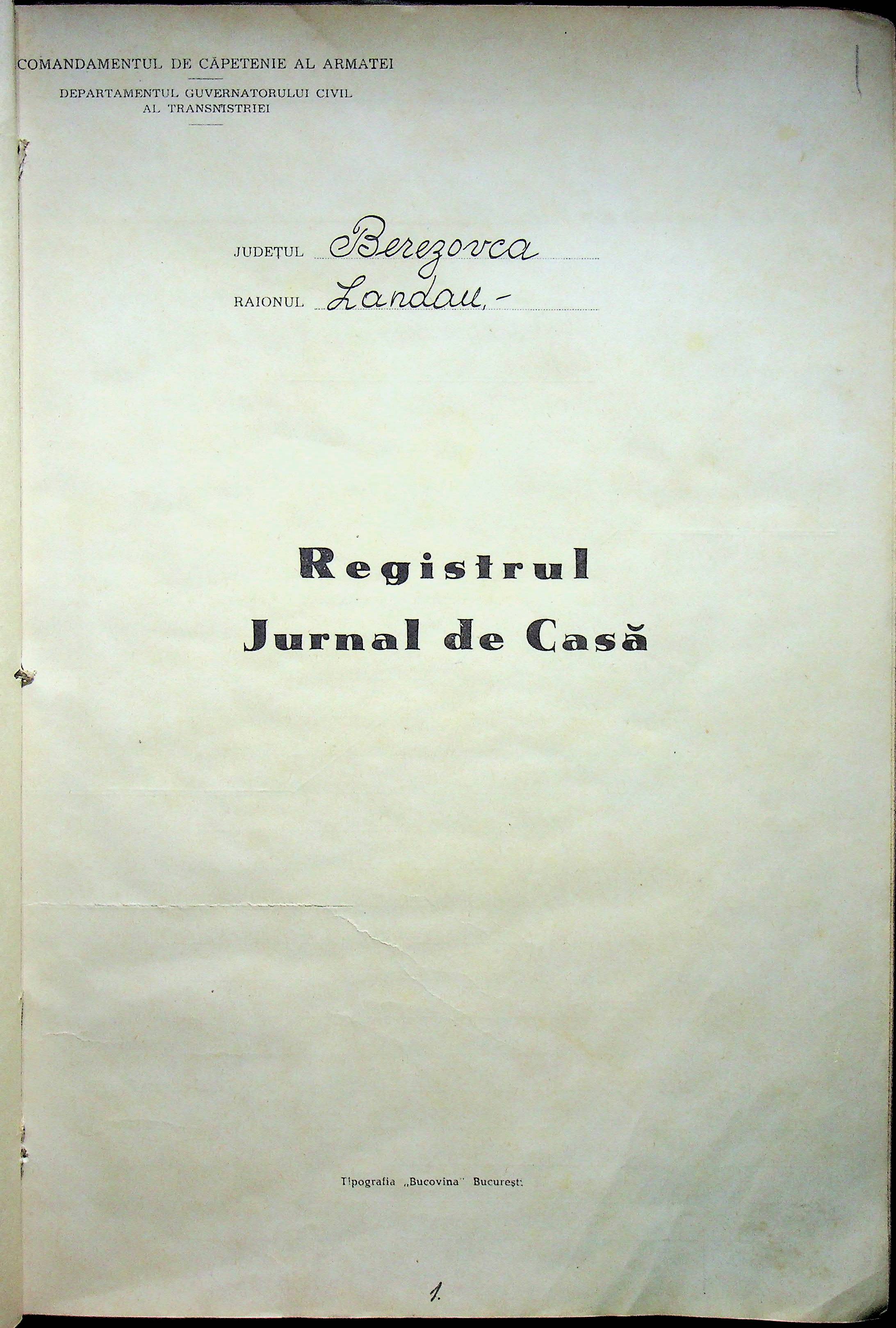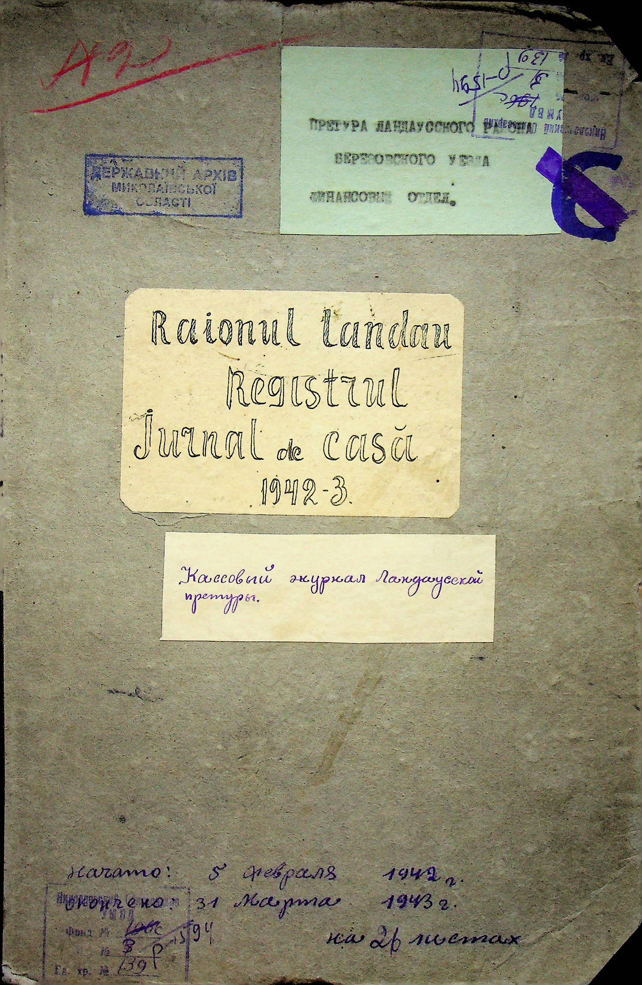 • • • • Справа № 139 Журнал реєстрації касових документів претури Ландауського району Департаменту цивільного губернатора Трансністрії