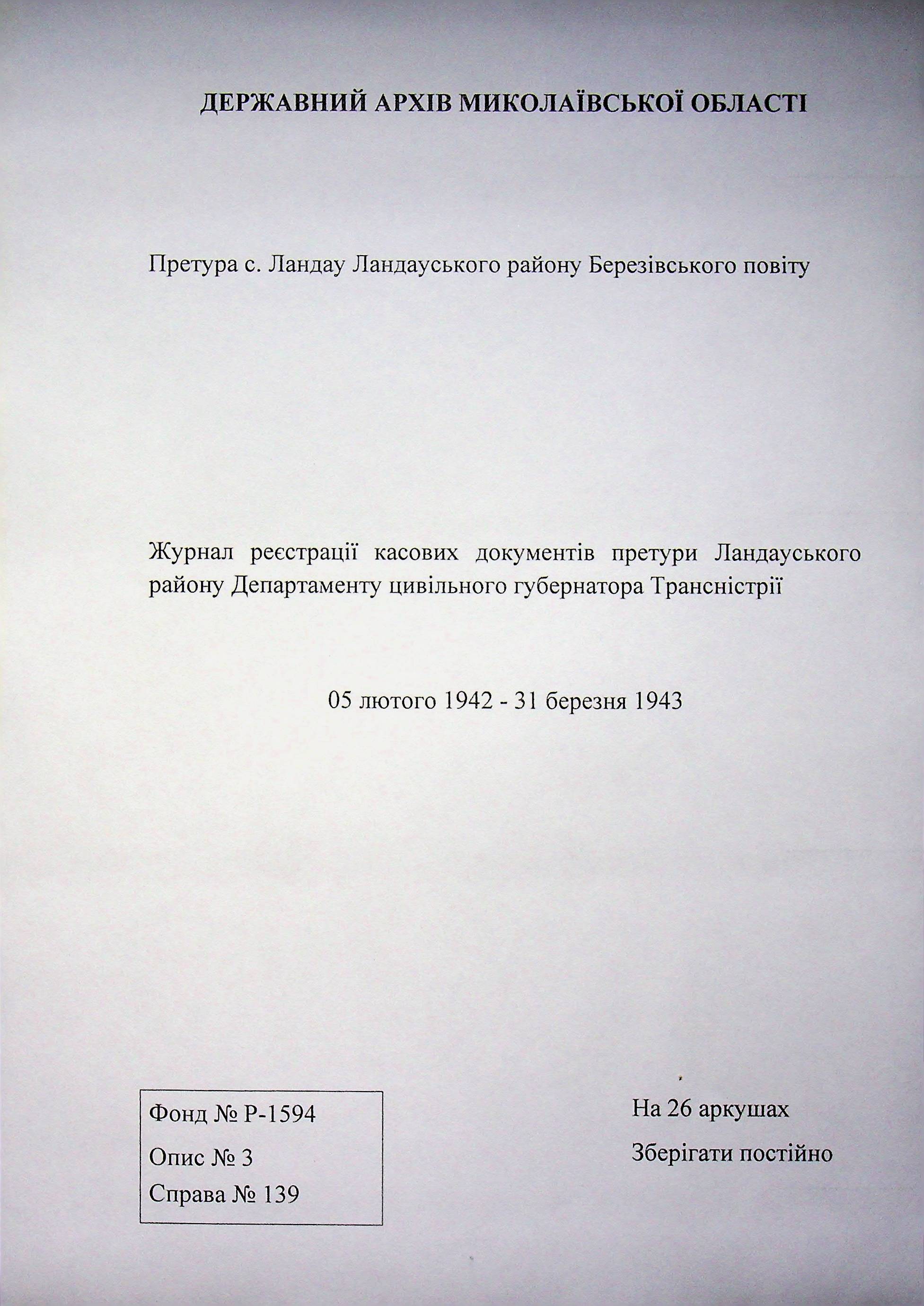 ◦ ◦ Фонд № Н-1594 “Претура Ландауського району”
