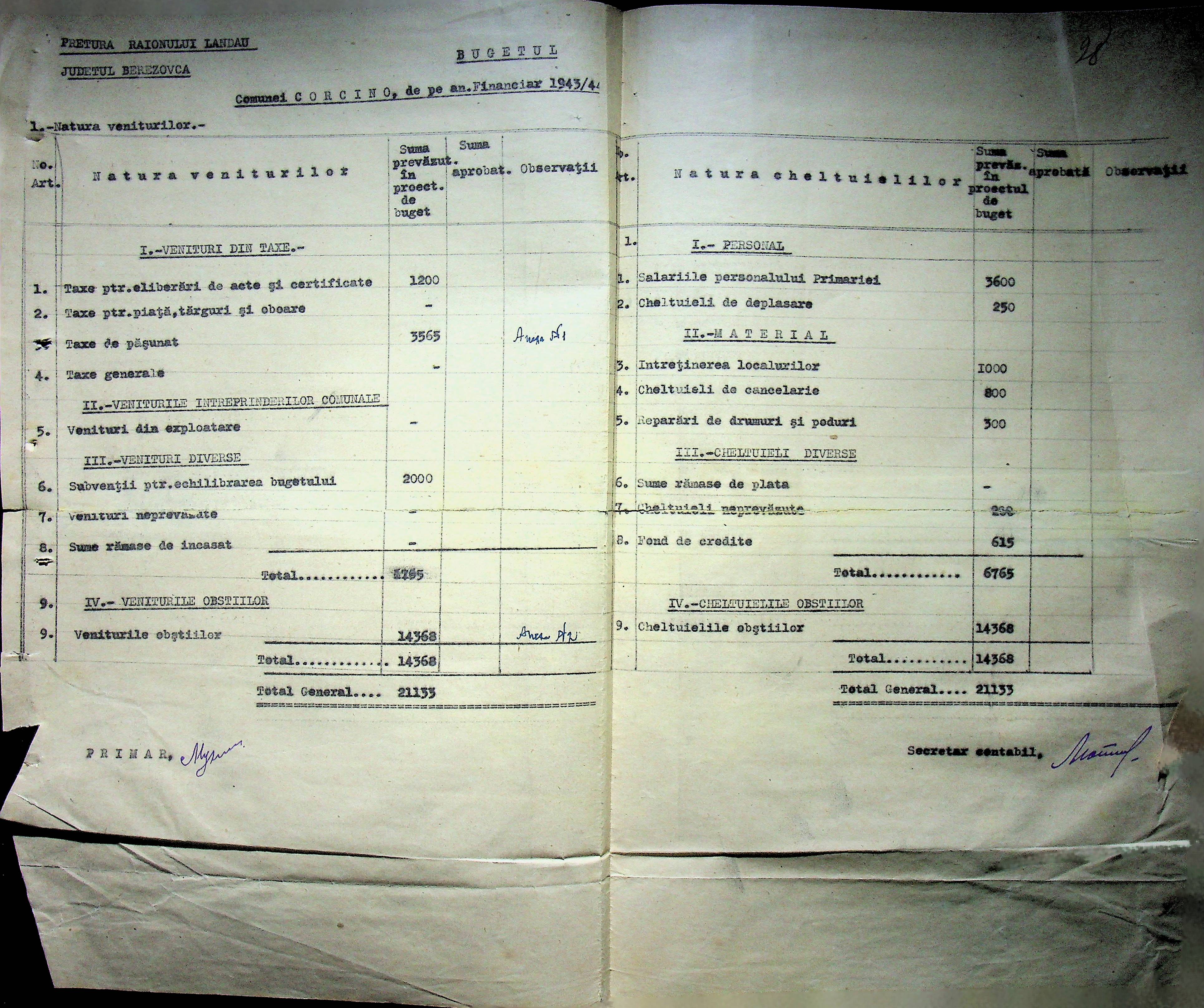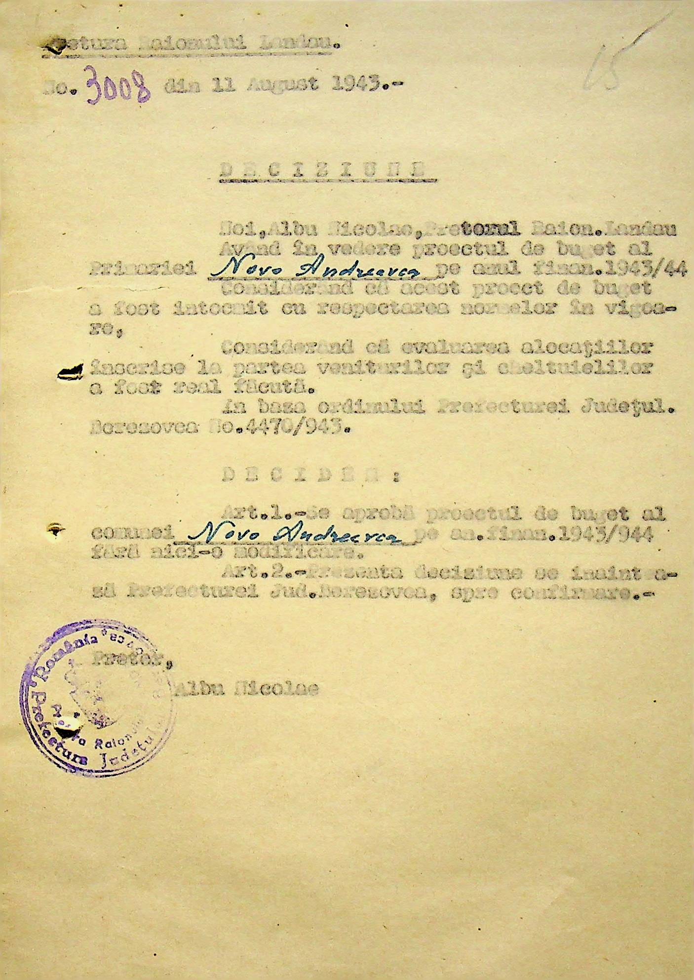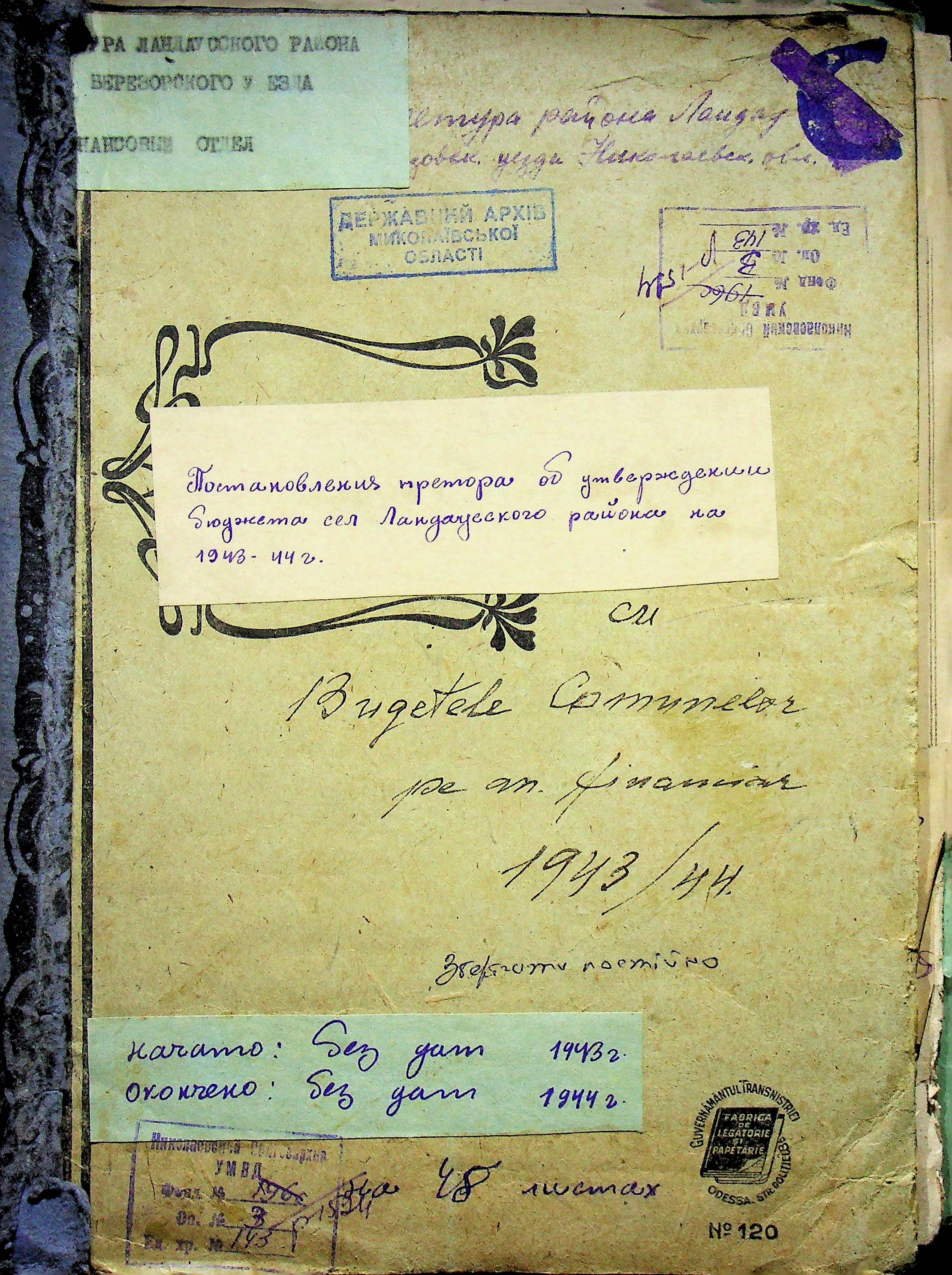 • • • • Справа № 143 Рішення претора Ландауського району про затвердження бюджету Ландауського району на 1943-1944 рок