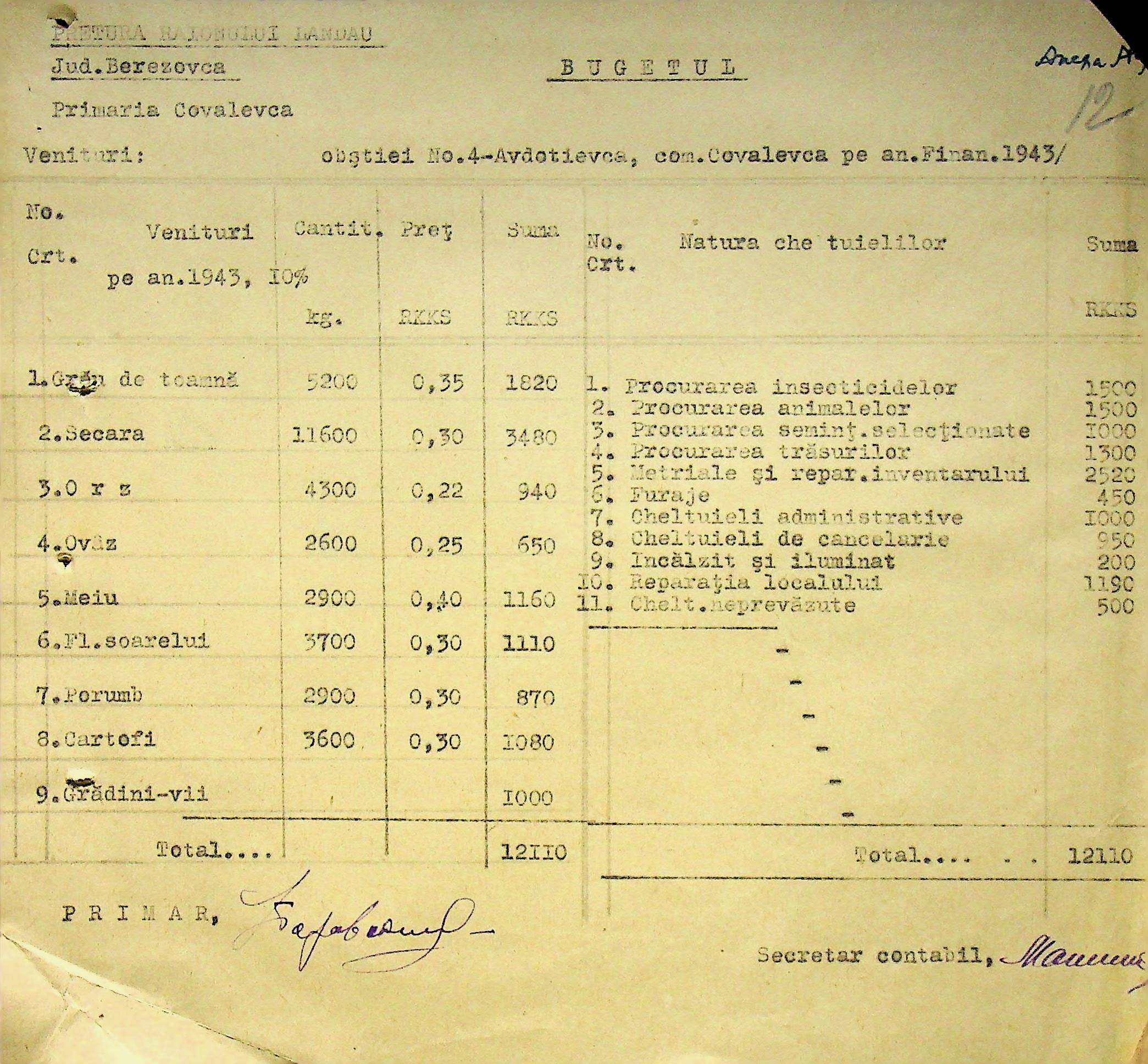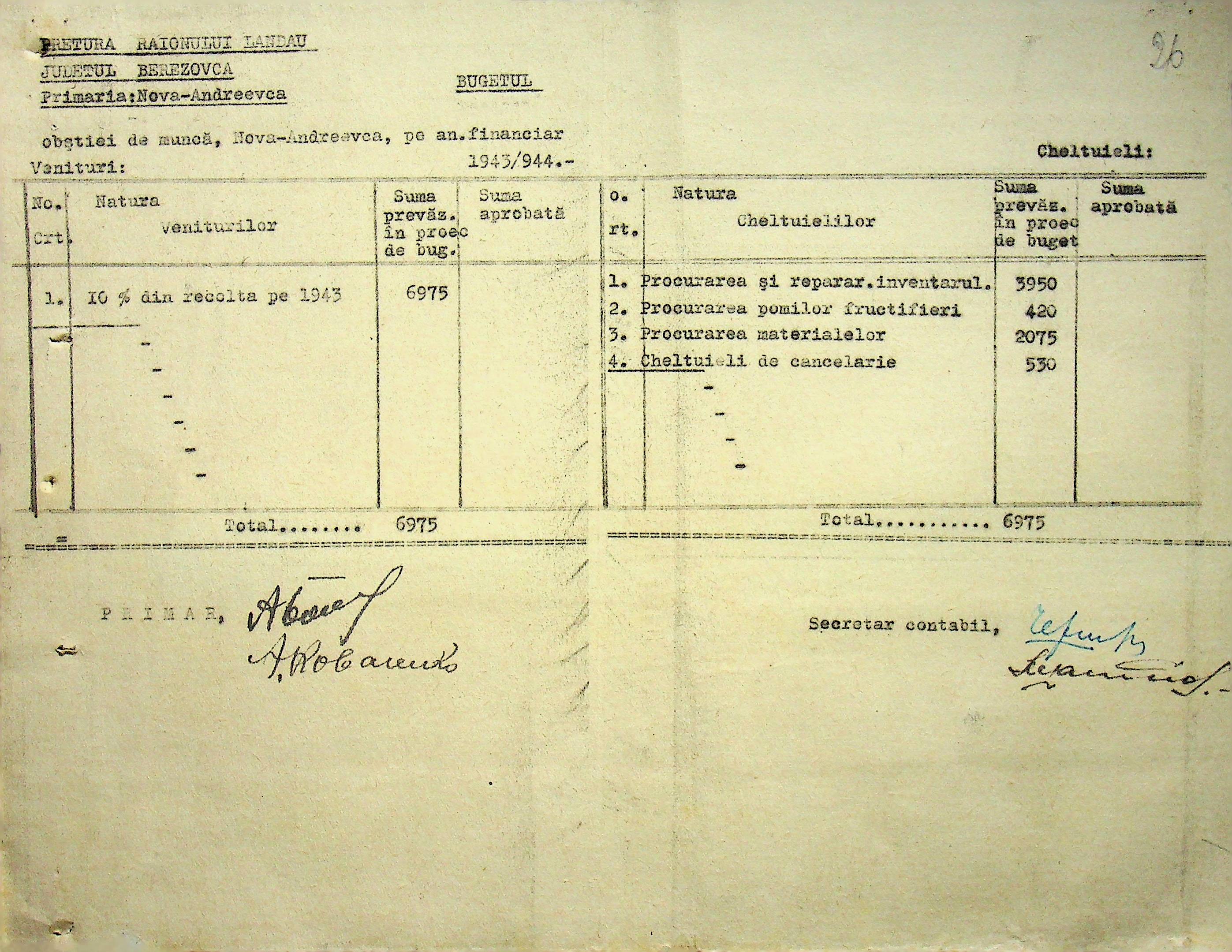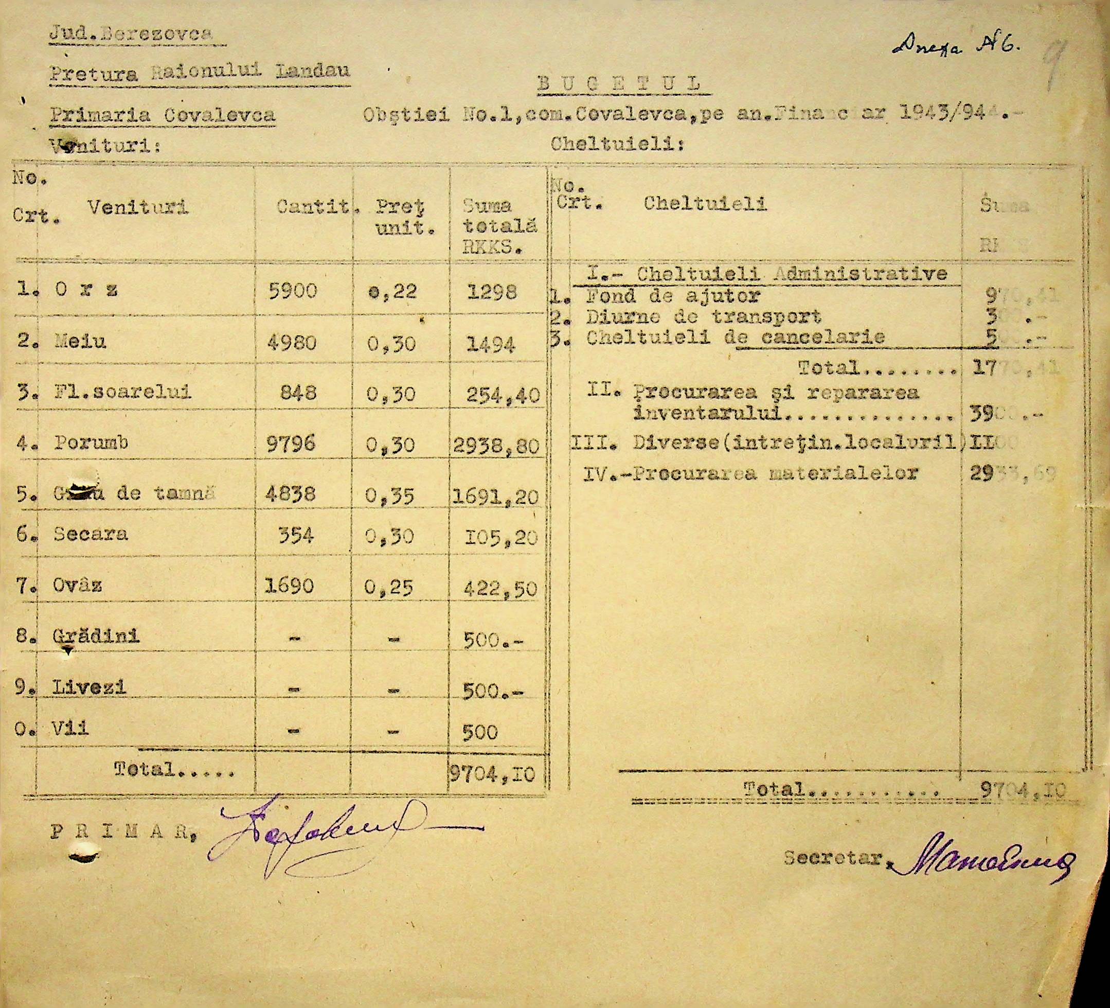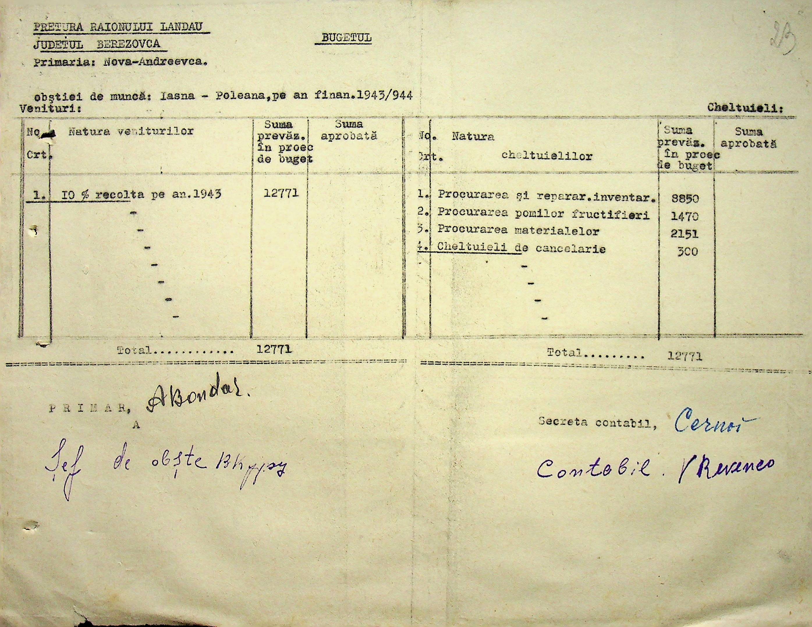 • • • • Справа № 143 Рішення претора Ландауського району про затвердження бюджету Ландауського району на 1943-1944 рок