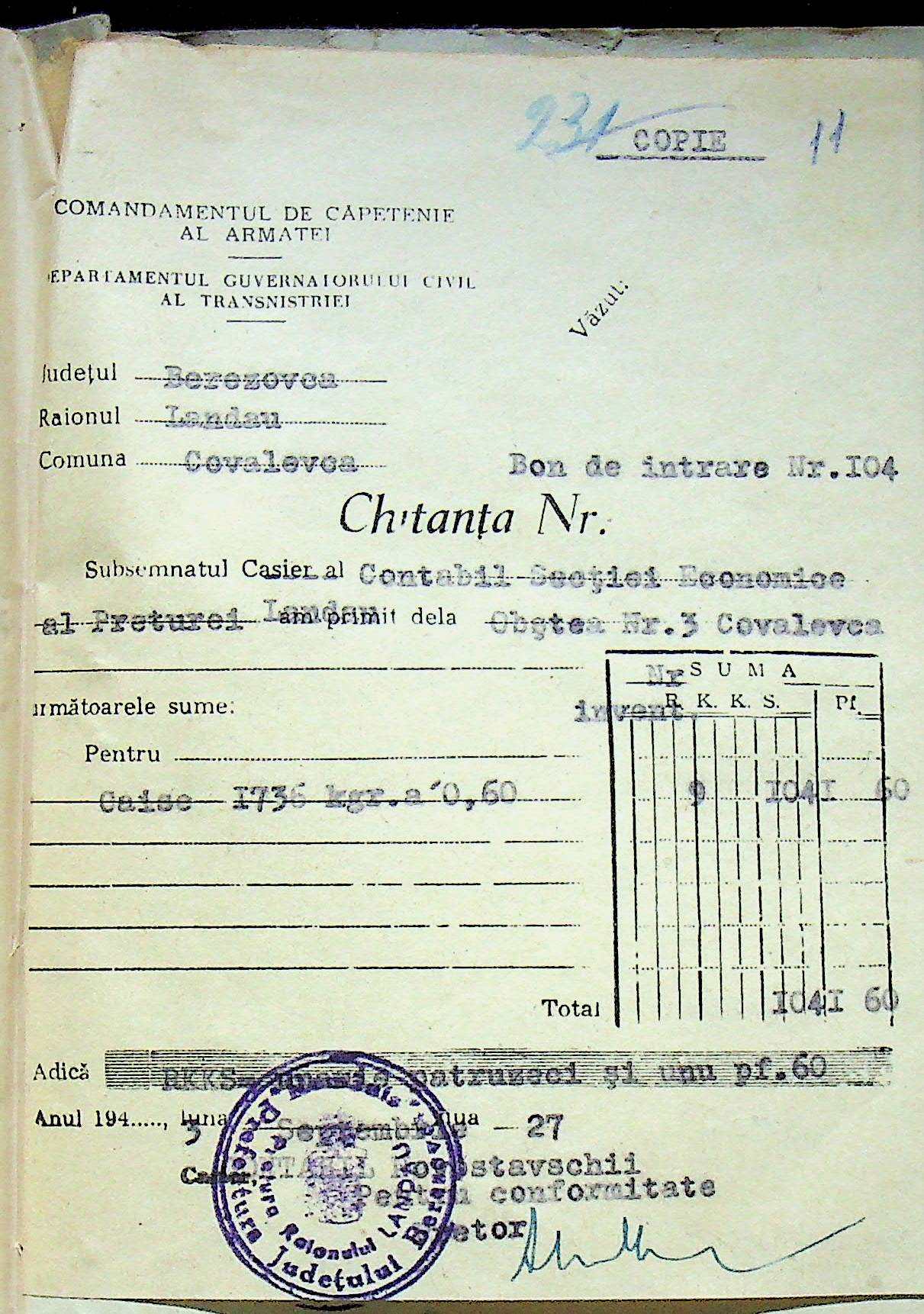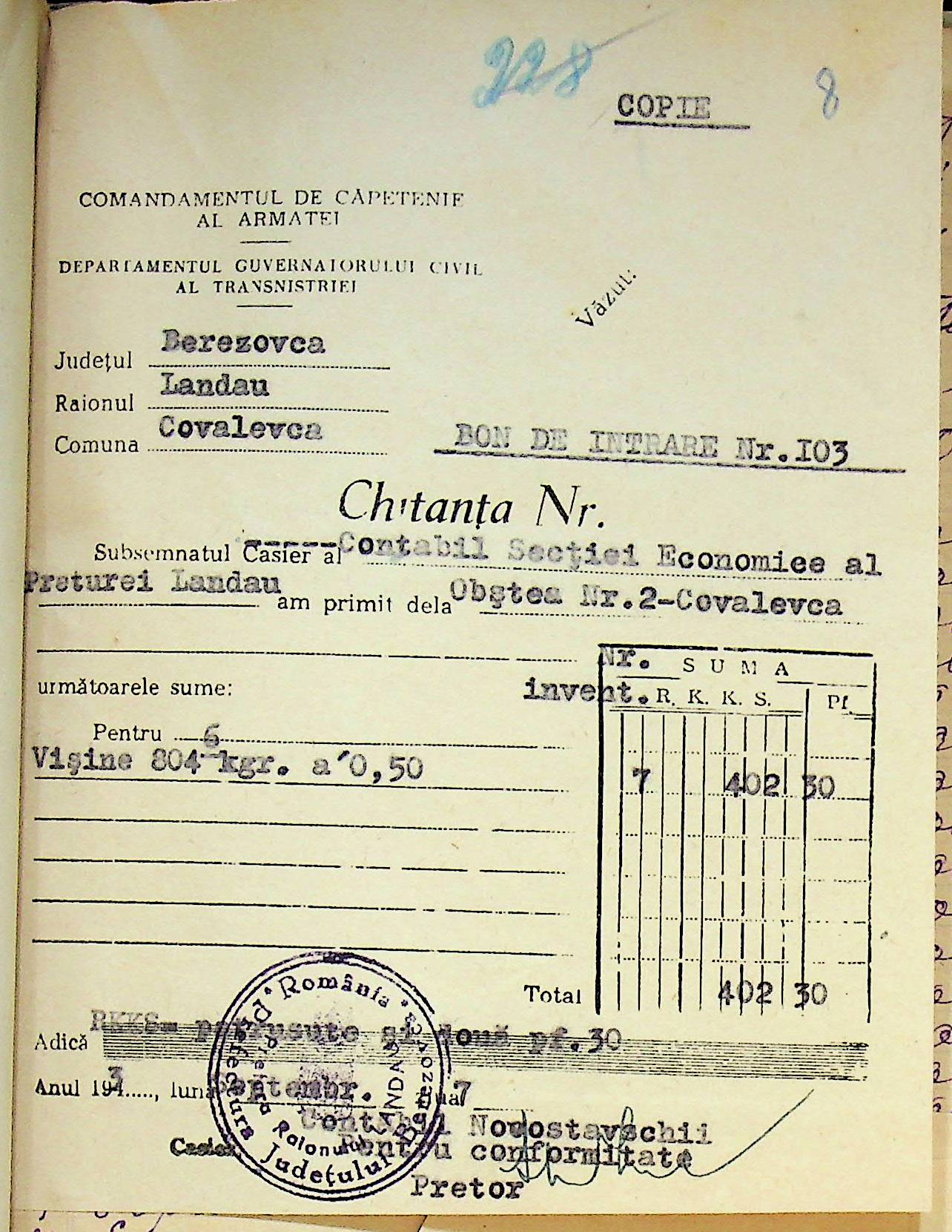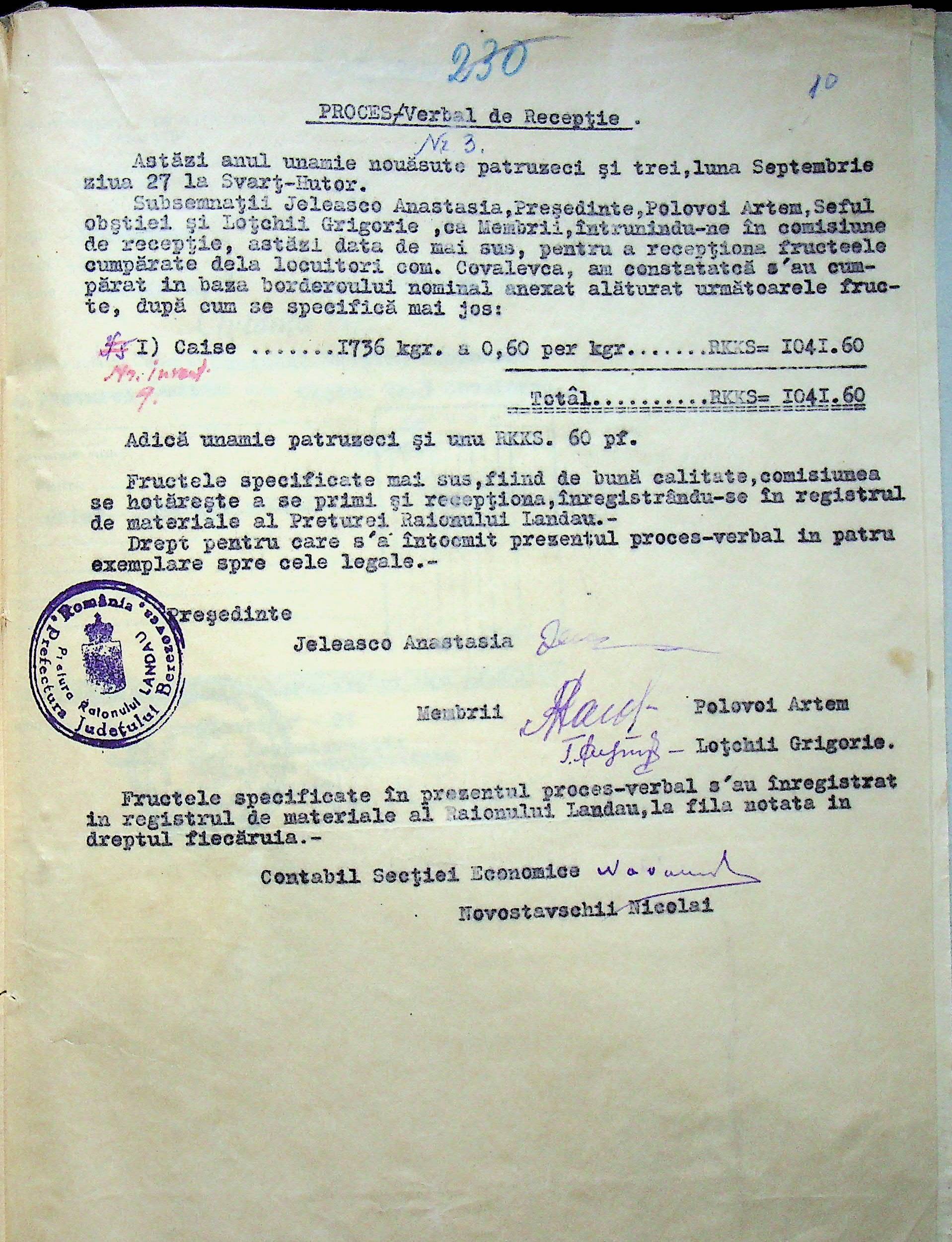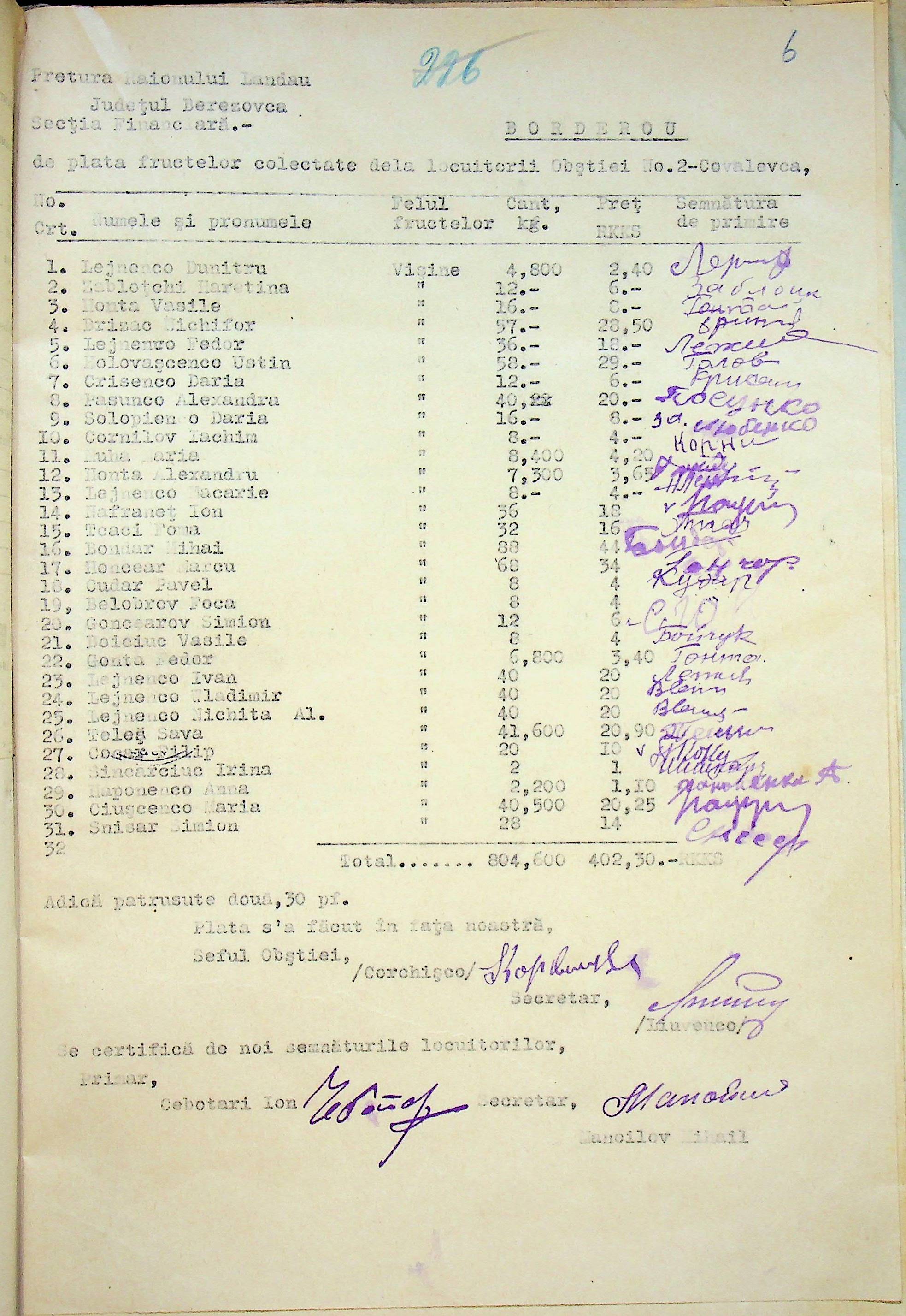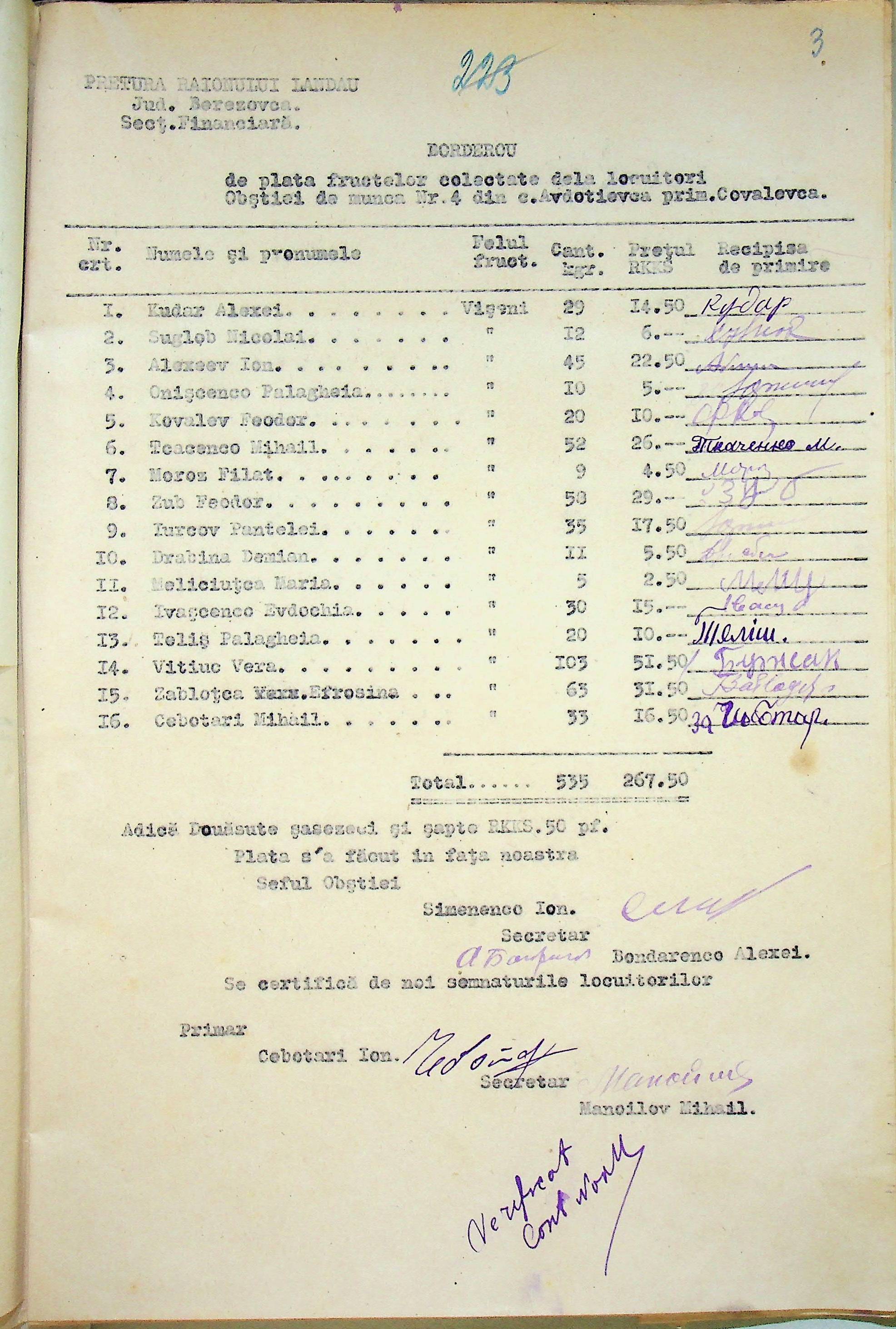 • • • • Справа № 150 Документи (протоколи, відомості, квитанції) про виплату авансу Управлінням садівництва за фрукти, зібрані мешканцями общин претури Ландауського району