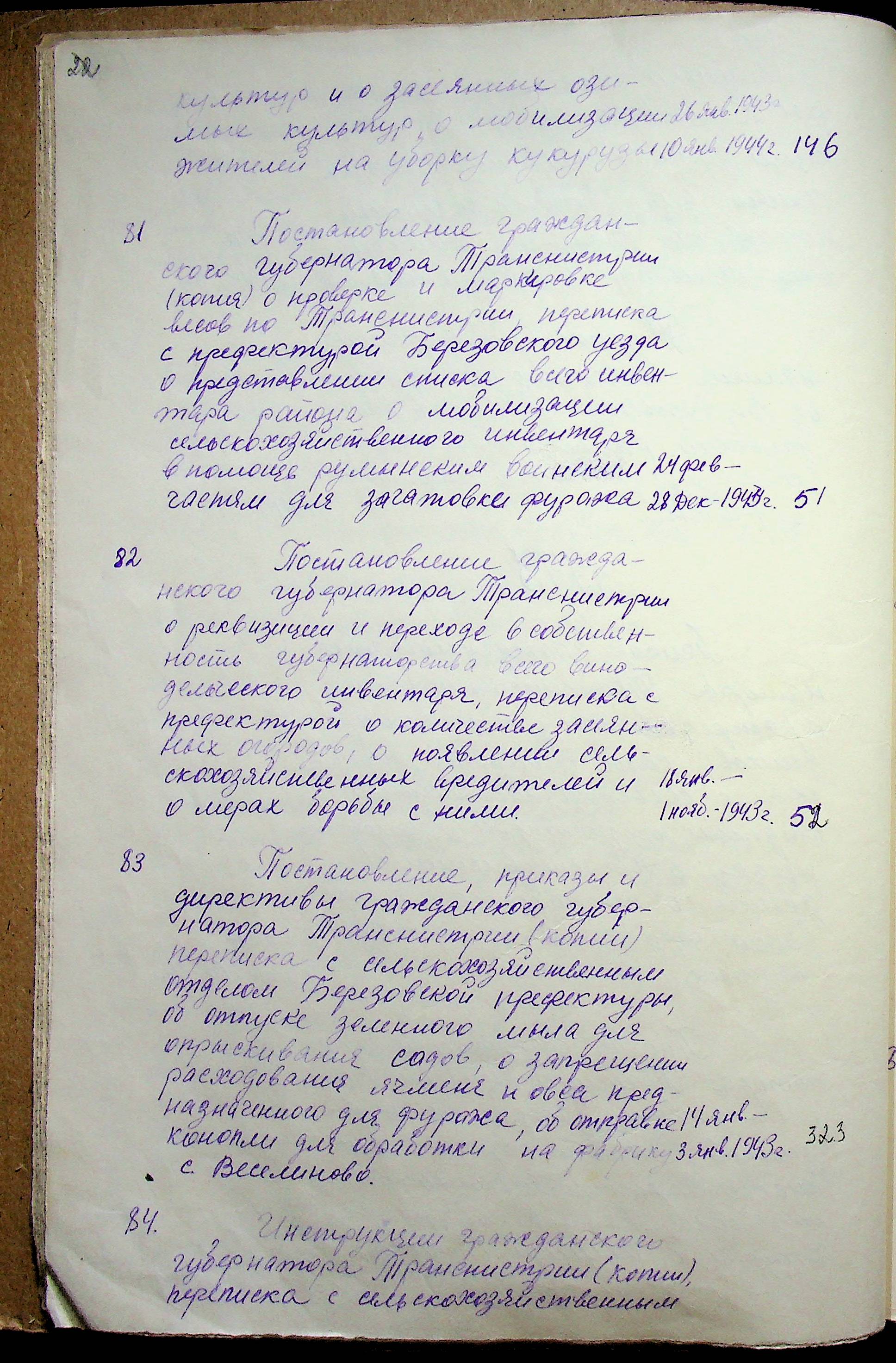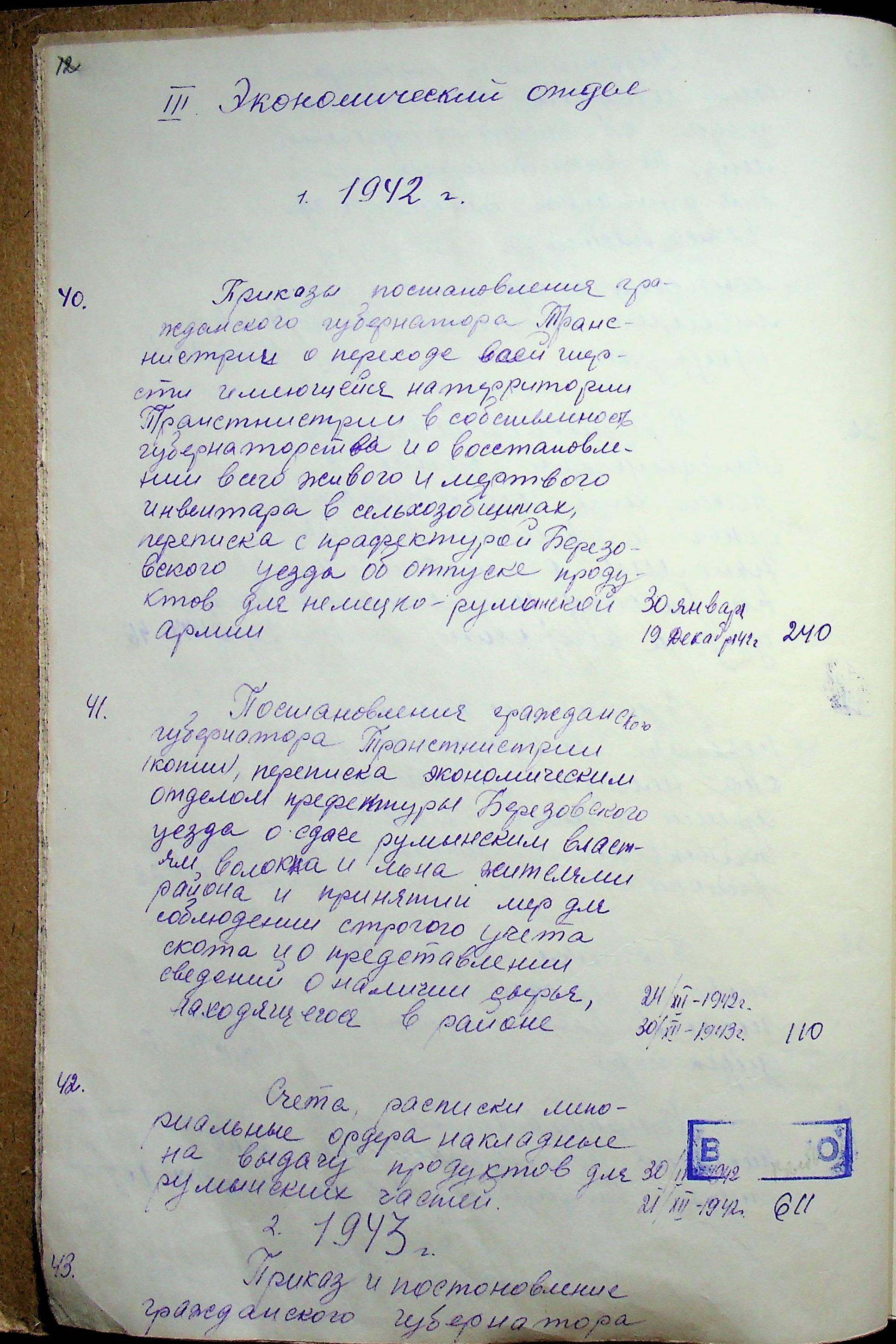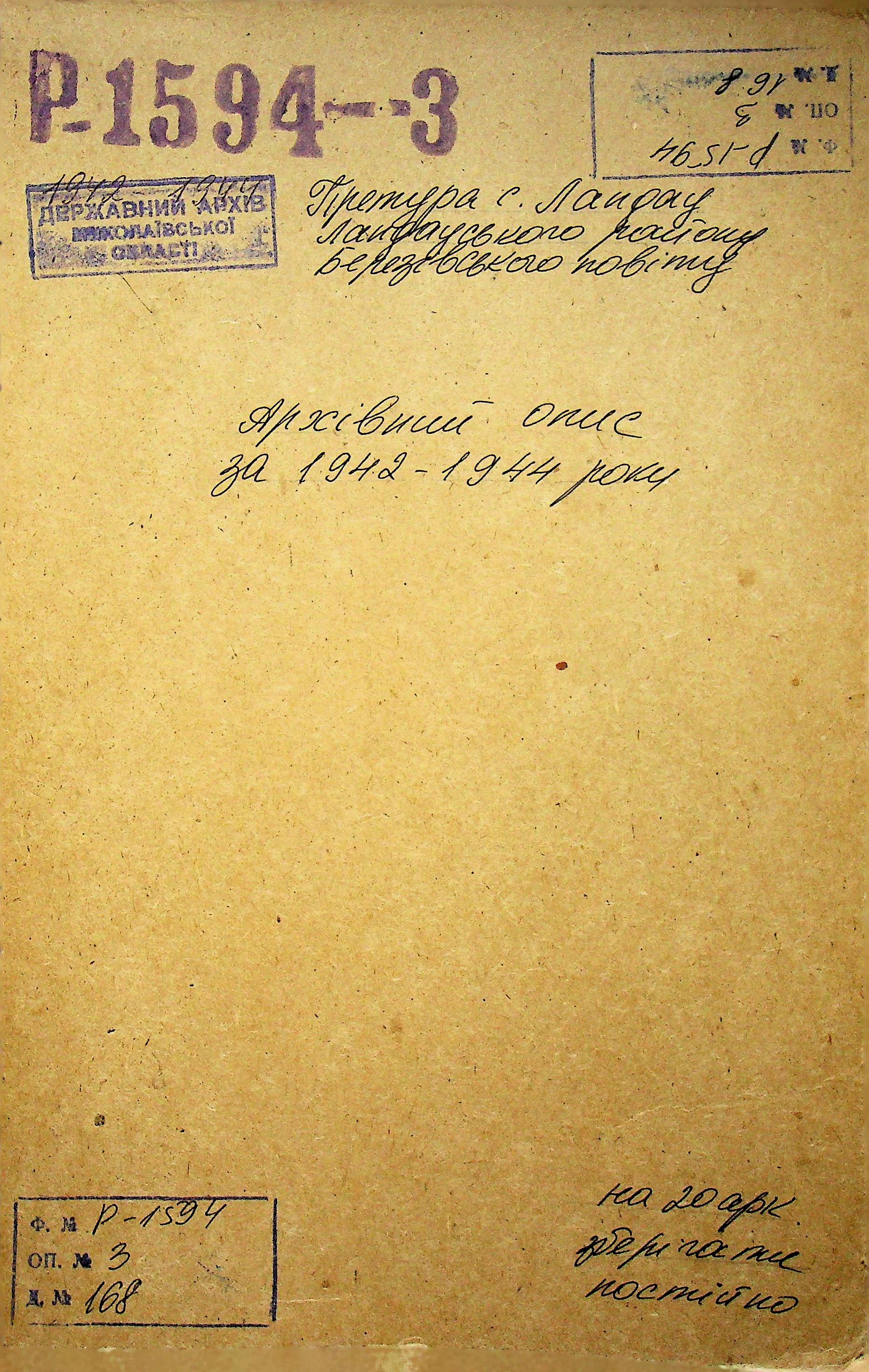 • • • • Справа № 168 Архівний опис за 1942-1944 роки