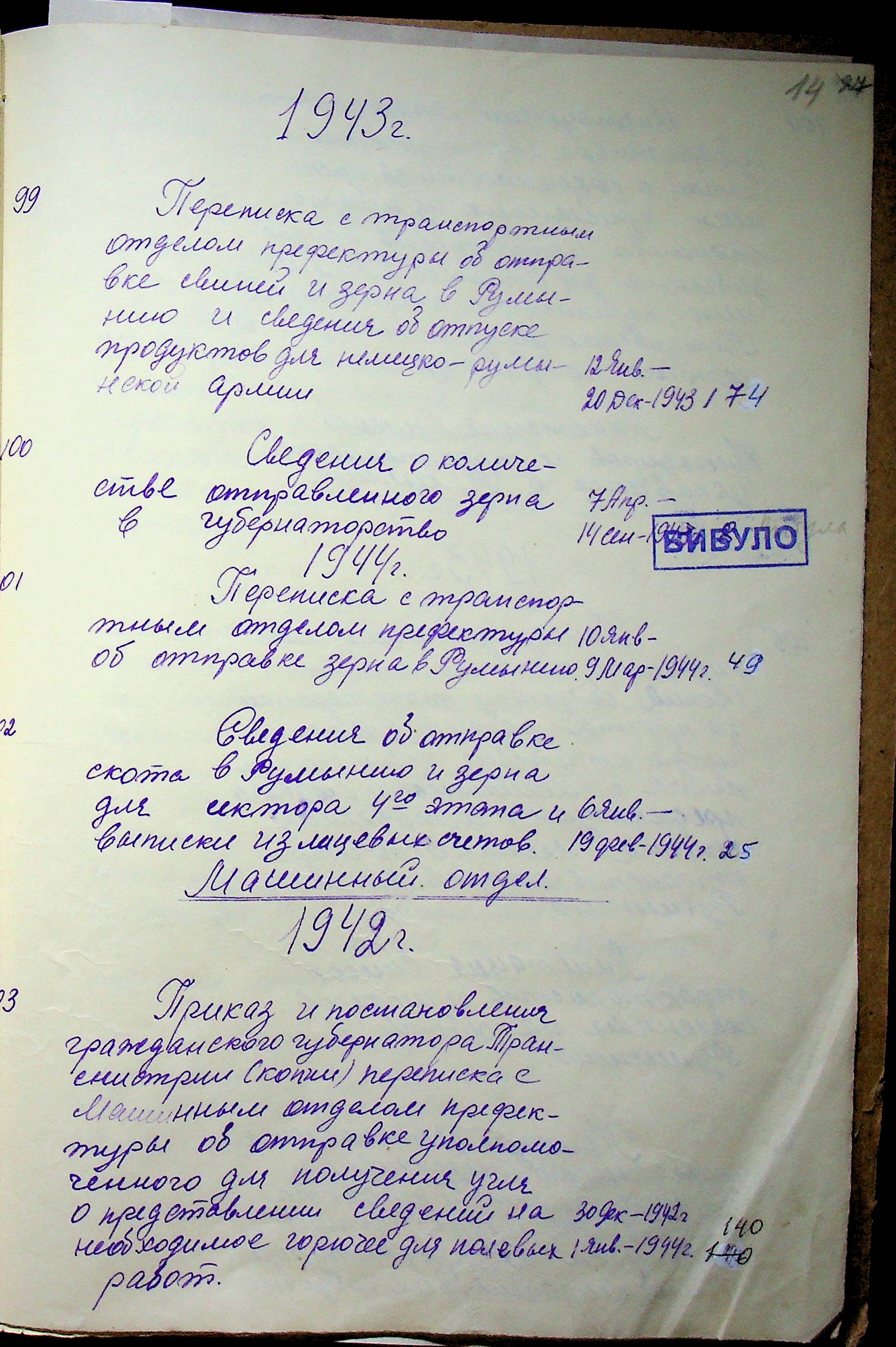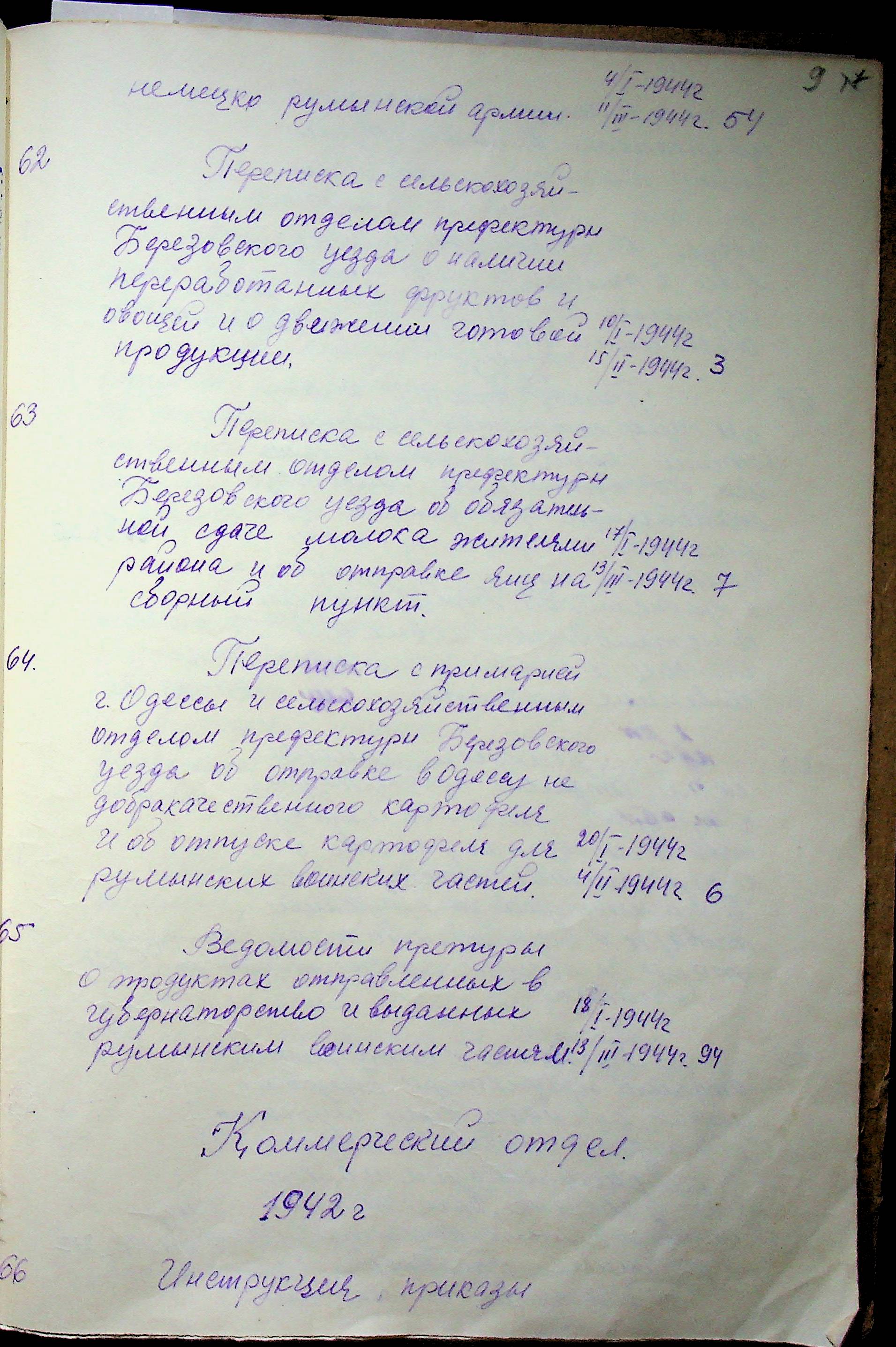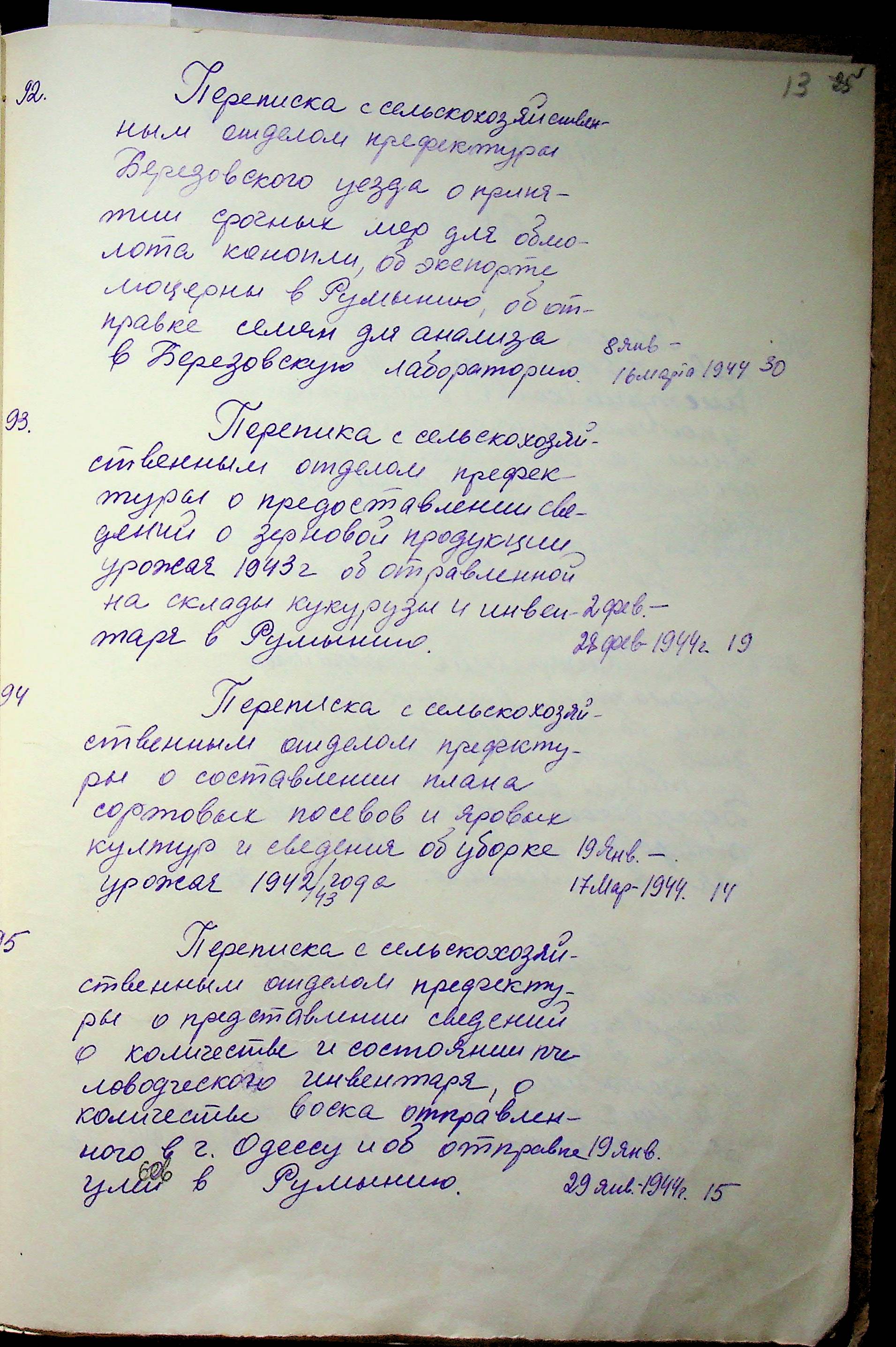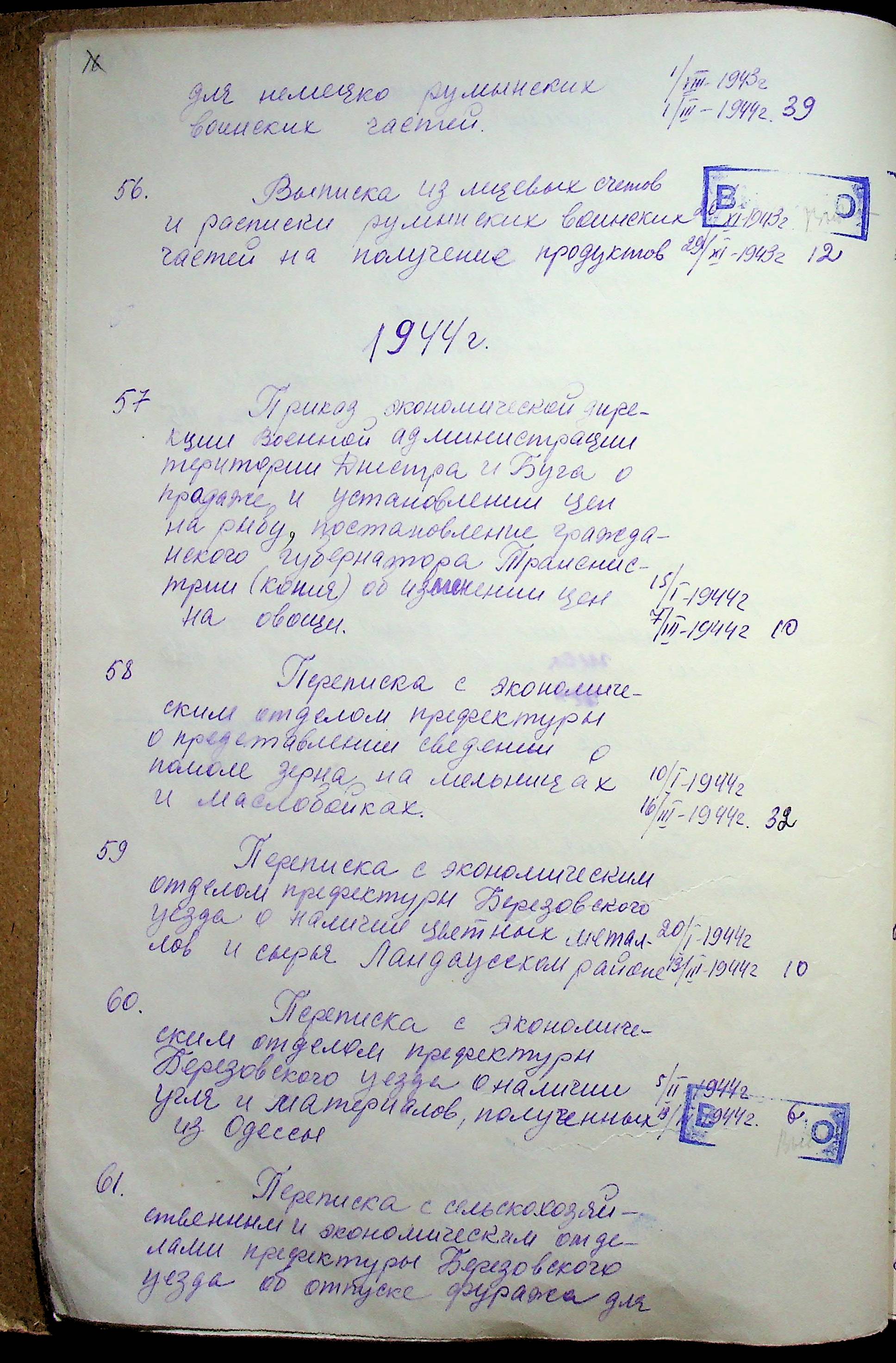 • • • • Справа № 168 Архівний опис за 1942-1944 роки