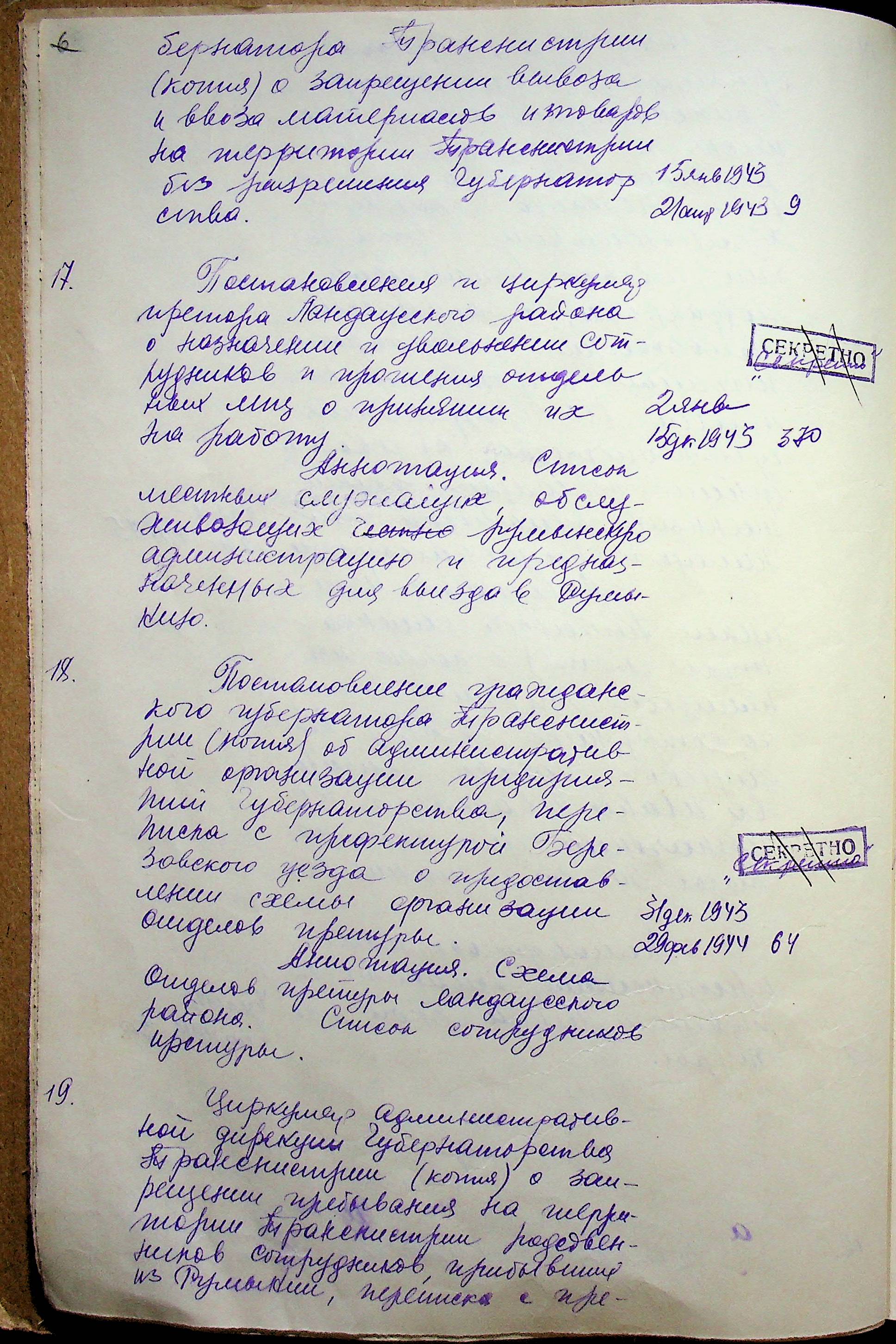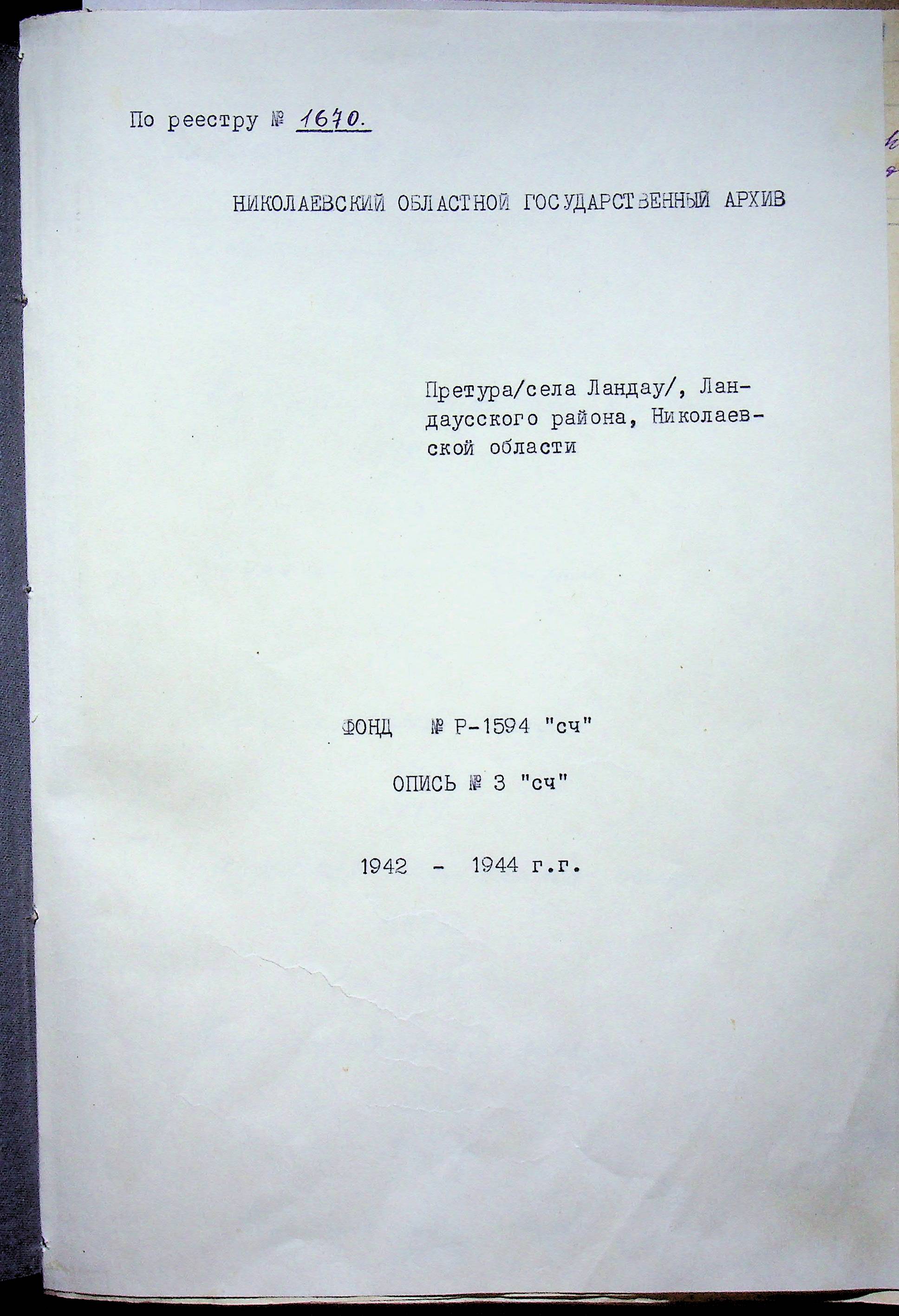 ◦ ◦ Фонд № Н-1594 “Претура Ландауського району”