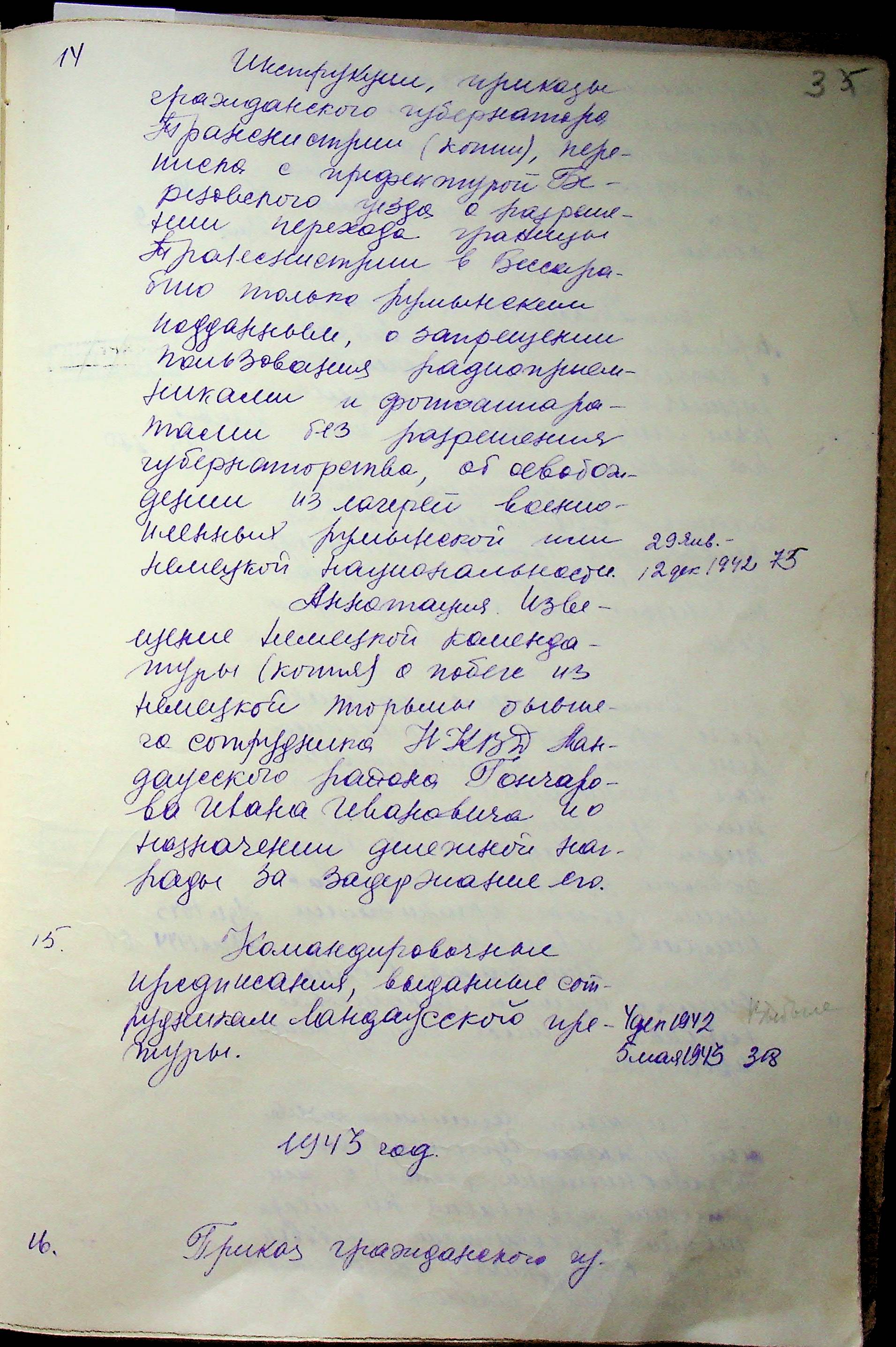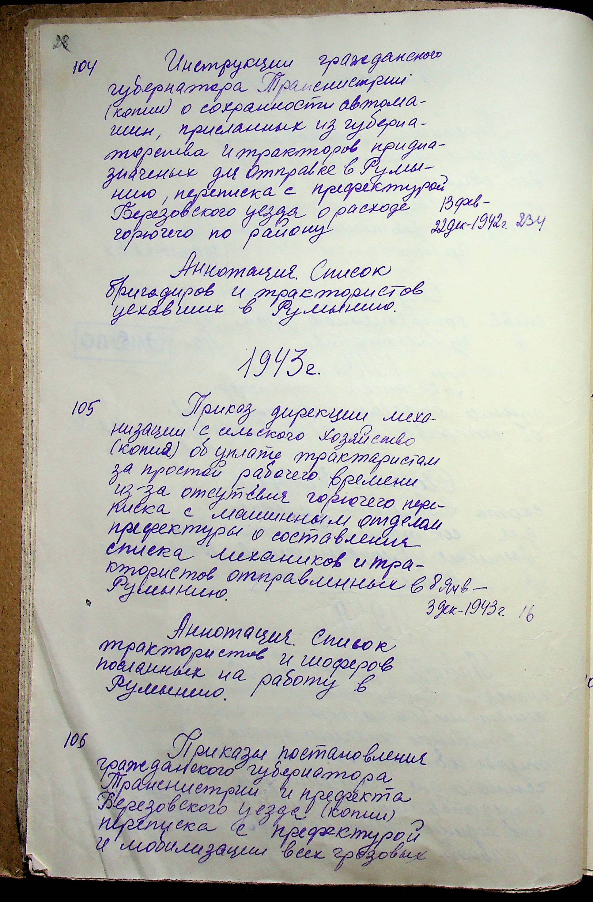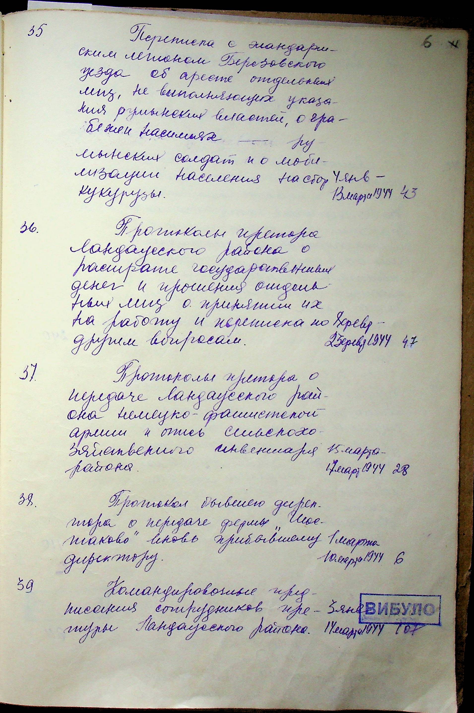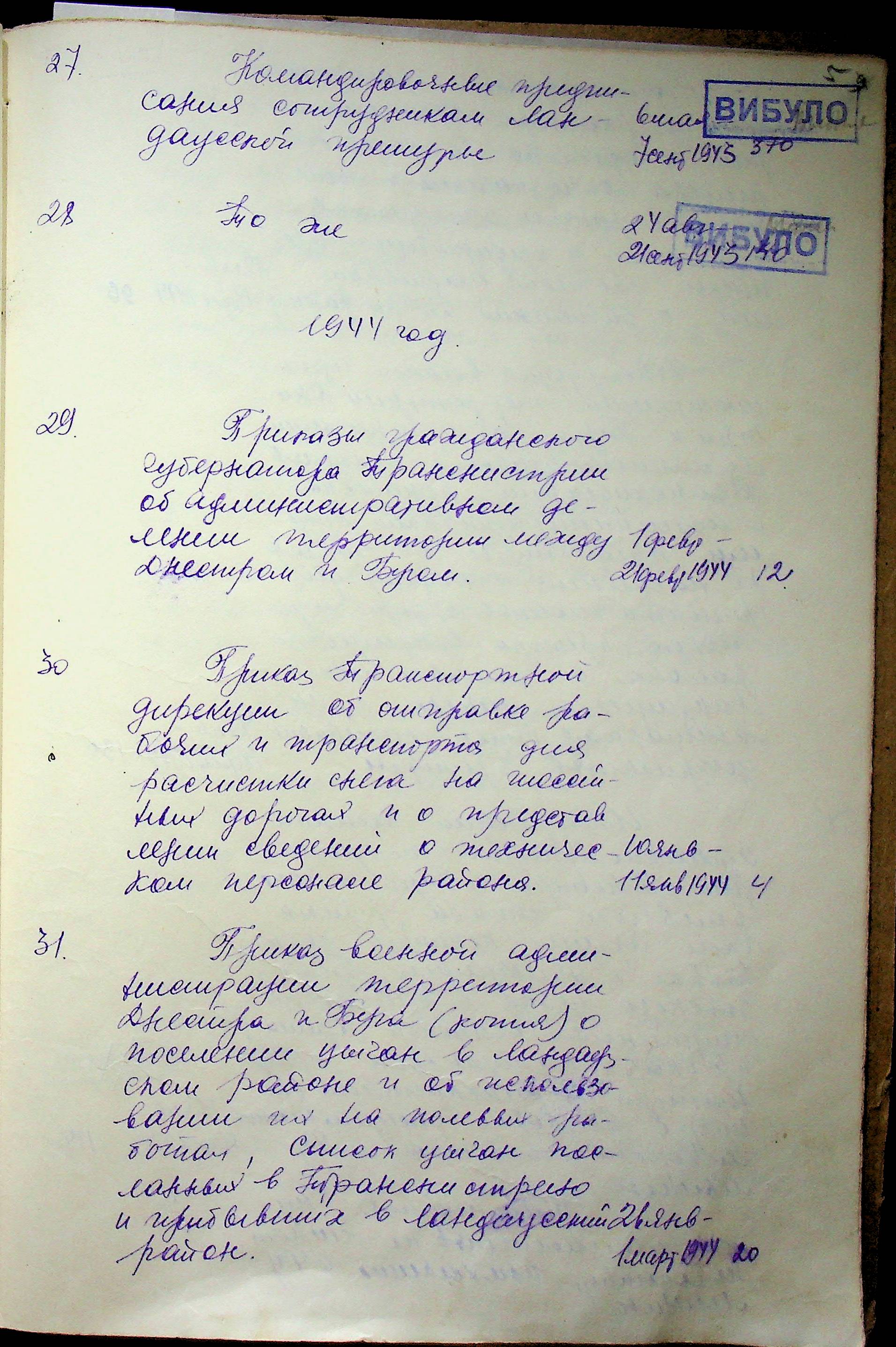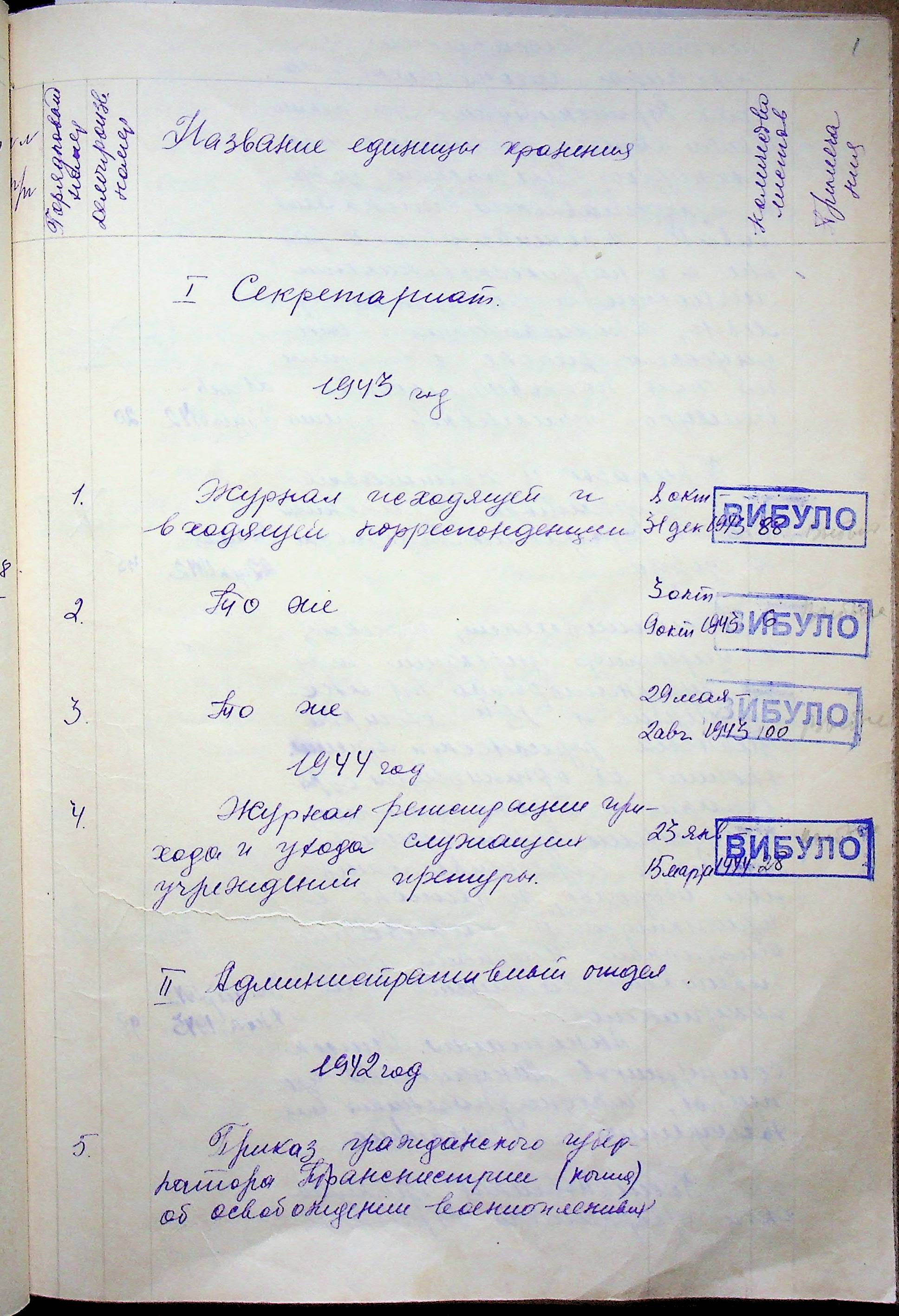 ◦ ◦ ◦ Опис № 3 справ постійного зберігання за 1941–1944 роки