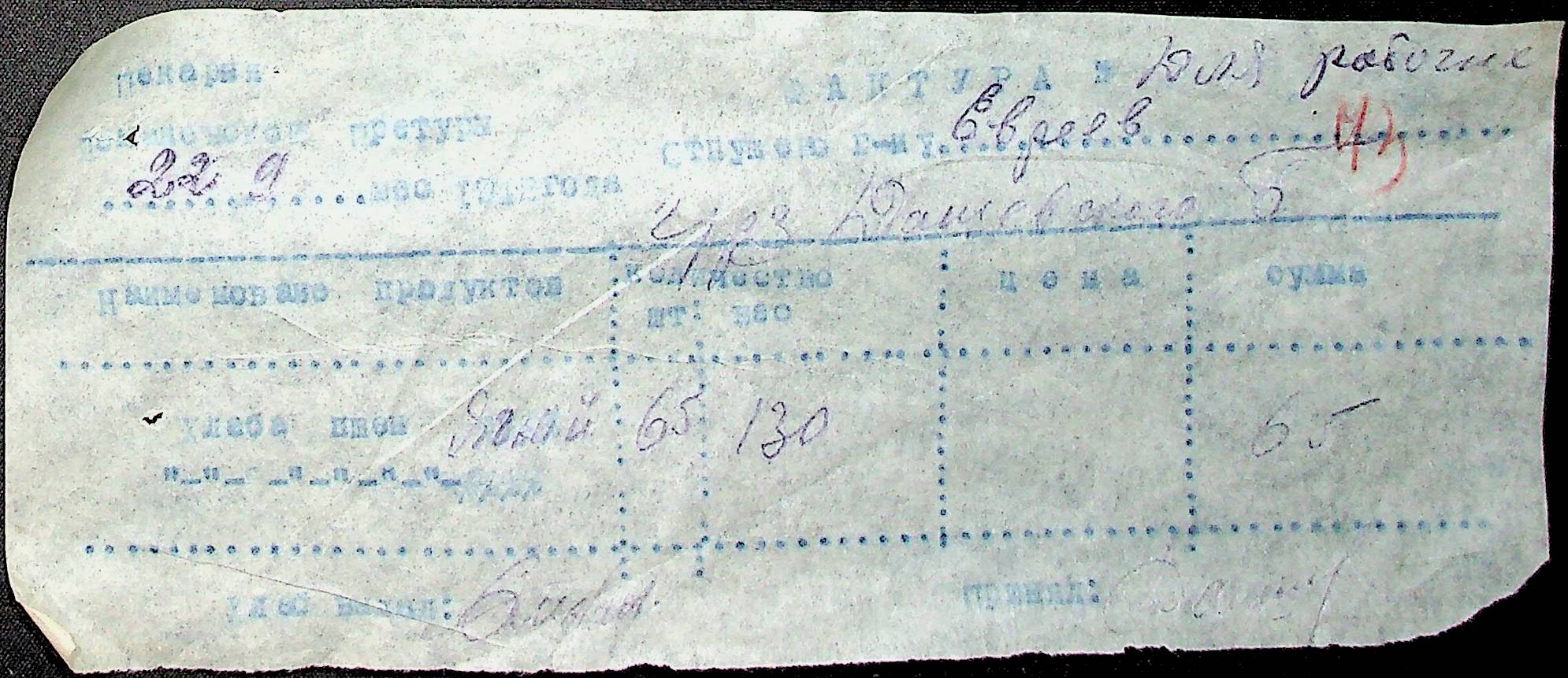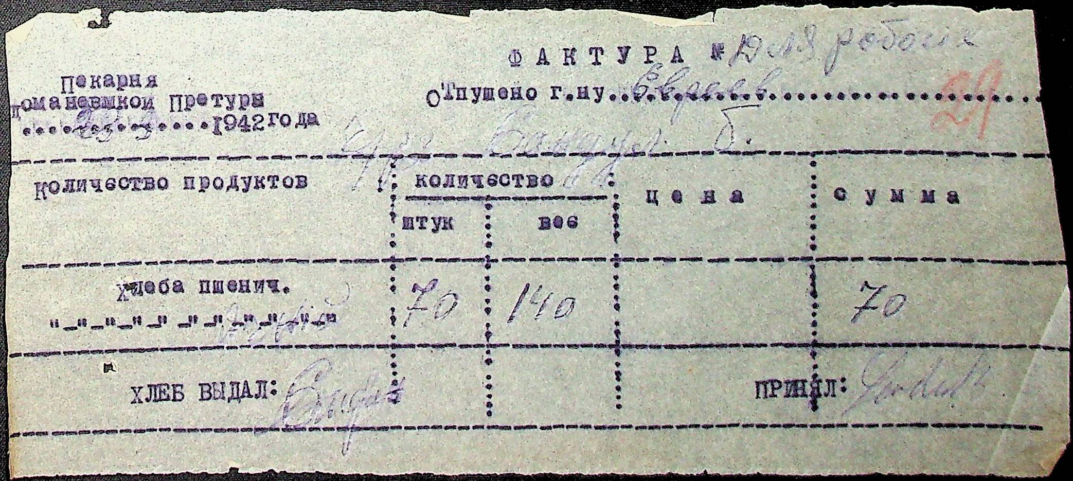 • • • • Справа № 2 “Список службовців та працівників претури, лікарні, пошти, поліції та інших установ на отримання печеного хліба; рахунки щодо вартості його випікання. Відомості на безкоштовну видачу хліба. Документи (меморіальні ордери, відомості, рахунки, квитанції, фактура) на відпуск хліба та інших продуктів жандармам, євреям, ромам за готівковий розрахунок; про нарахування та виплату заробітної плати працівникам пекарні”