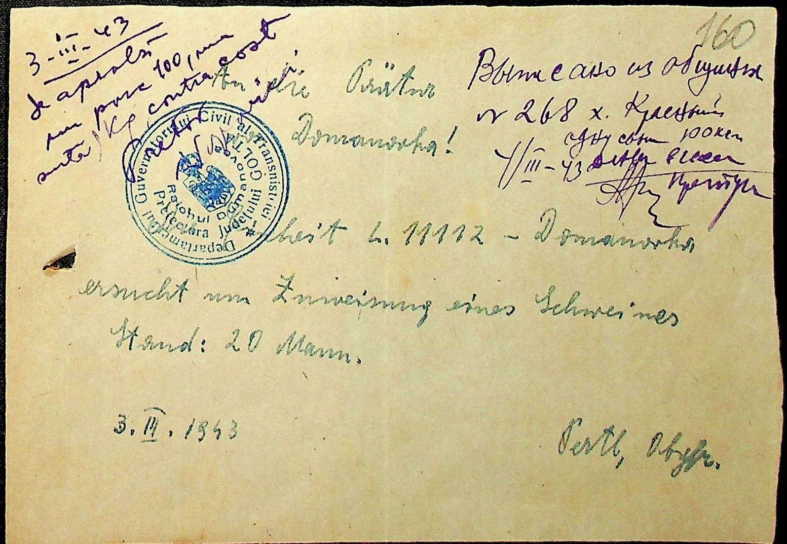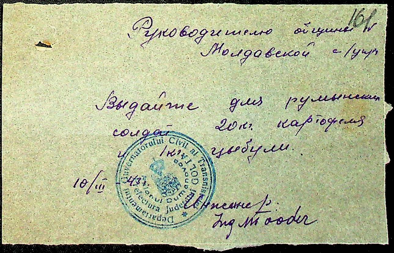 • • • • Справа № 19 “Документи (відомості, зведення, витратні ордери, листування) про видачу трудовими общинами Акмечетської сільської управи хліба, солі, м’яса, олії та інших продуктів німцям, які проживають на території Доманівського району, військовим частинам і жандармам, працівникам і службовцям претури, працюючим євреям”