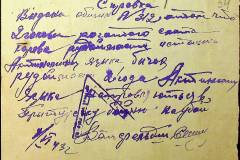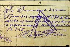 • • • • Справа № 20 “Документи (реєстри, квитанції, рахунки, товарно-матеріальні звіти, відомості, фактура, витратні ордери, довідки, акти ) про видачу мила з заводу по виготовленню мила; про продукти, що надійшли від забою худоби по реквізиції та через вимушене дорізування общинної і приватної худоби; про витрати сировини і пального для випікання хліба пекарнею Доманівської претури, кількість готової продукції, видачу хліба із пекарні; про збір молока та виробництво бринзи”