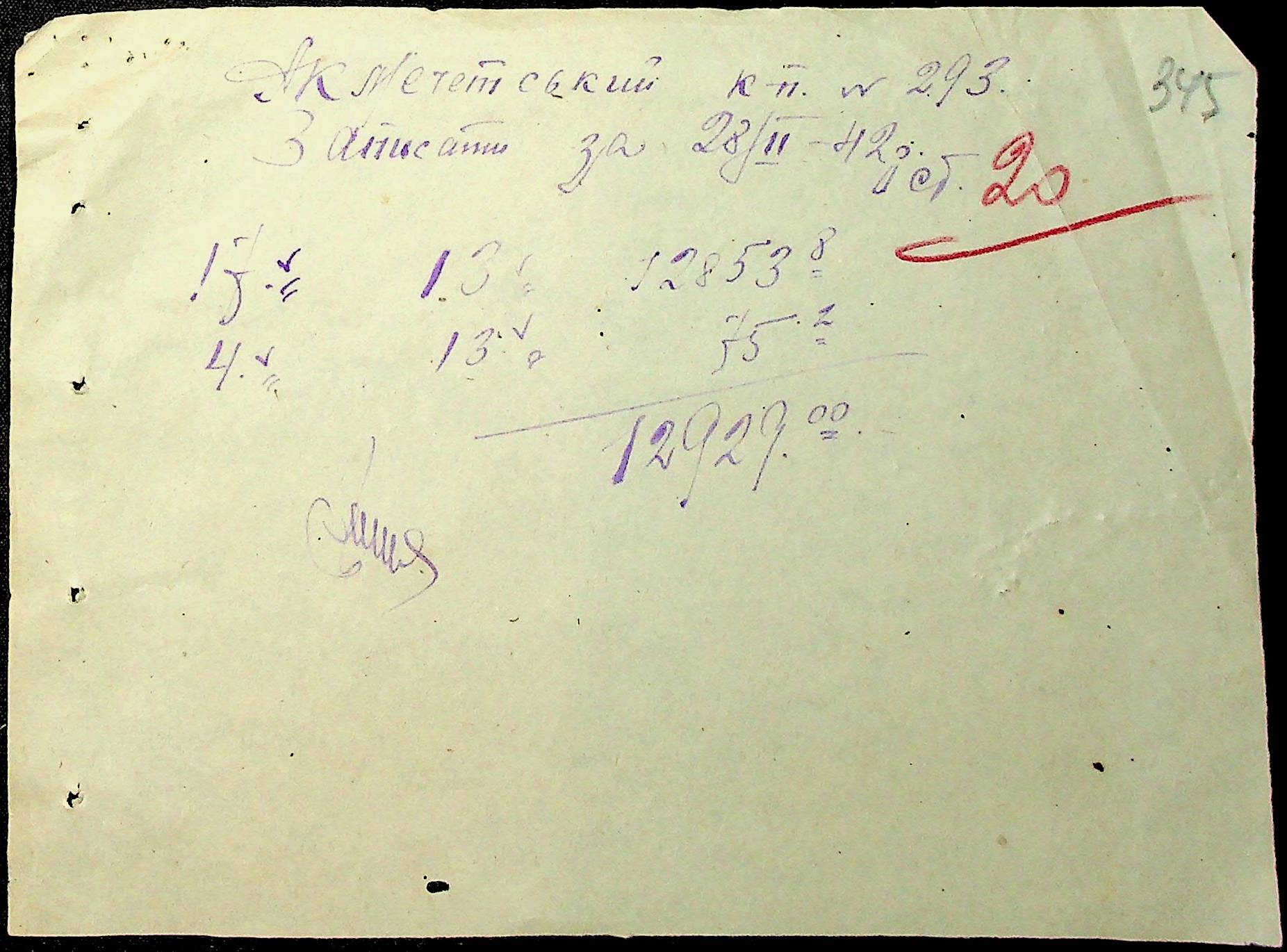 • • • • Справа № 77 “Табелі обліку трудоднів працівників трудової общини № 293 с. Акмечетка Доманівського району. Відомості та вимоги на видачу продуктів та матеріалів, наряди на роботу. Зведення про надходження та витрати матеріалів з комори”