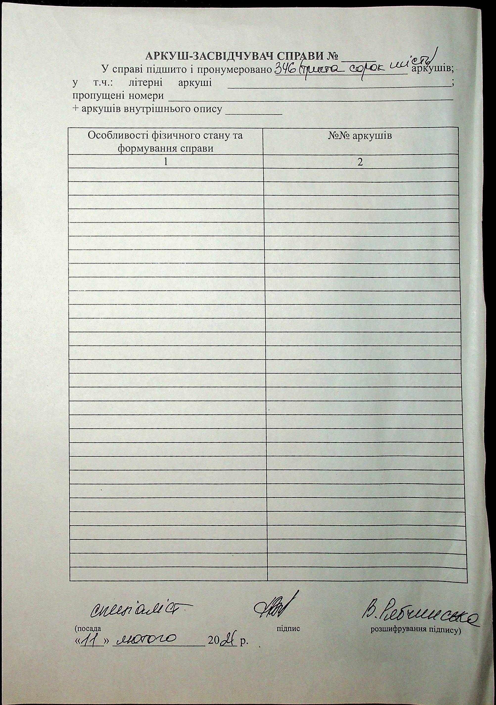 Фонд Н-2418 / Опис 1 / Справа 077