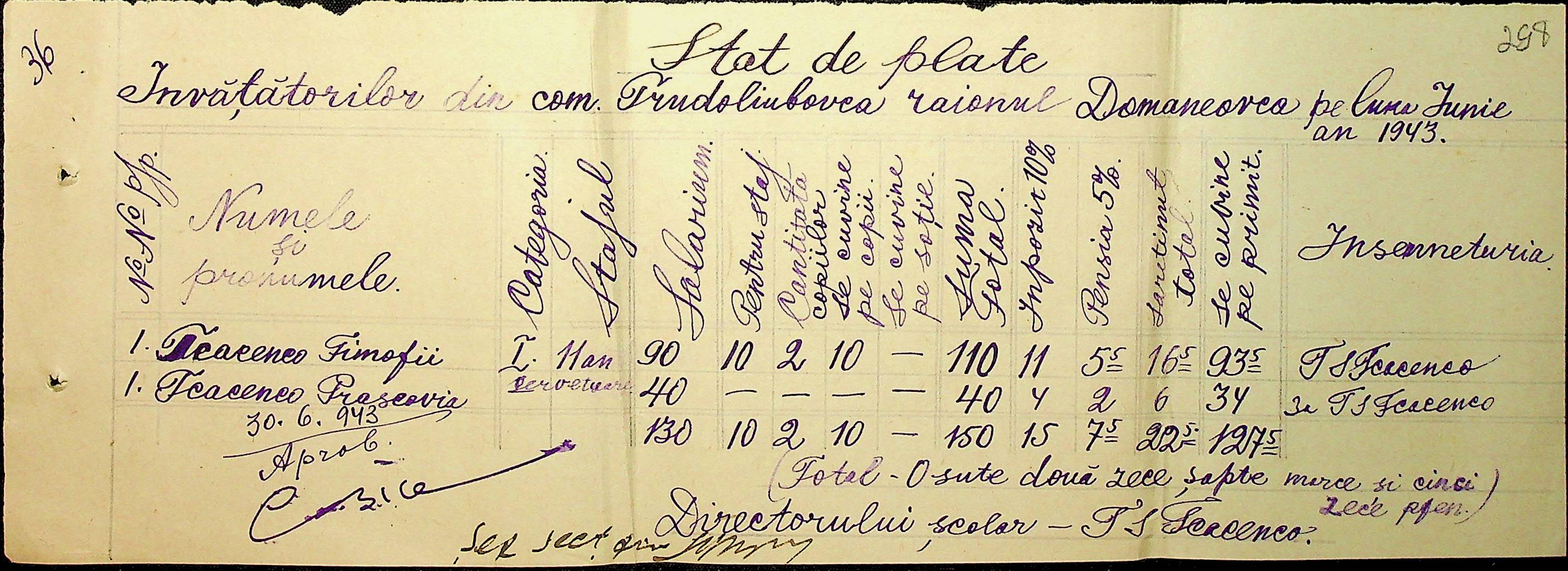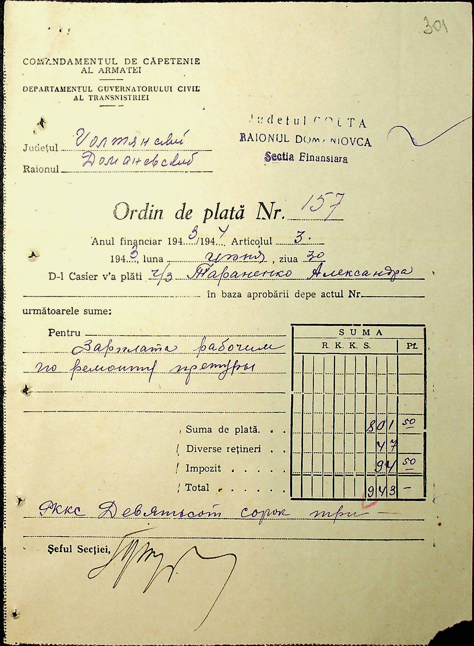 • • • • Справа № 97 “Відомості нарахування та виплати заробітної плати спеціалістам та їх сім’ям, які виїхали до Румунії, працівникам претури, духовенству, вчителям, ветеринарним лікарям; платіжні доручення про переказ коштів на відрядження, ремонт лікарні, харчування хворих, придбання білизни для лікарні, харчування німців-агрономів, сплату податків тощо”