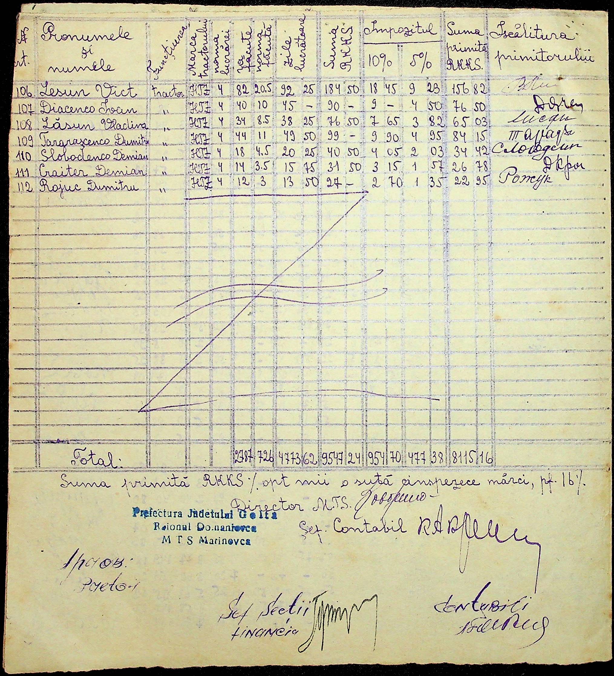 • • • • Справа № 111 “Відомості нарахування та виплати заробітної плати робітникам і службовцям Маринівської МТС”