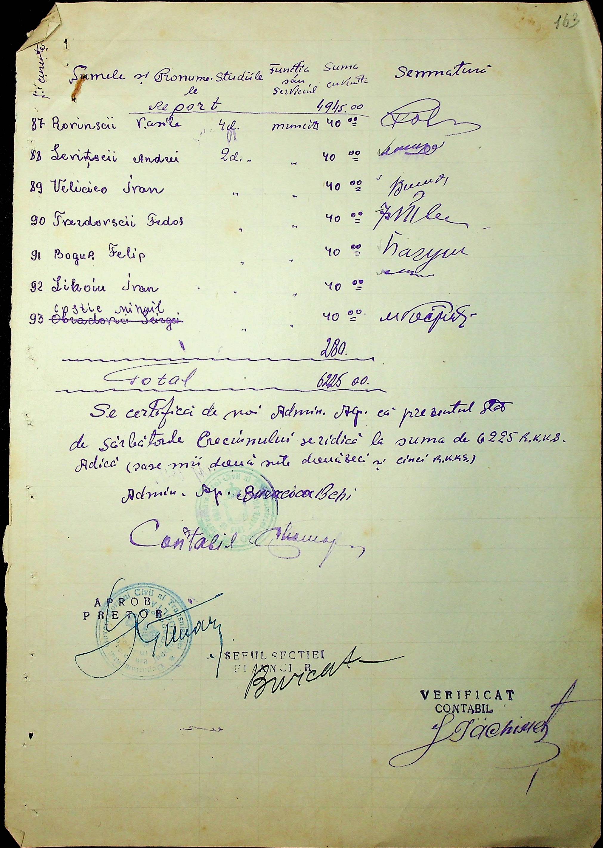 • • • • Справа № 131 “Відомості нарахування та виплати заробітної плати робітникам і службовцям держферм «Александру чел Бун», «Дука Вода» та «Богдан Вода»”