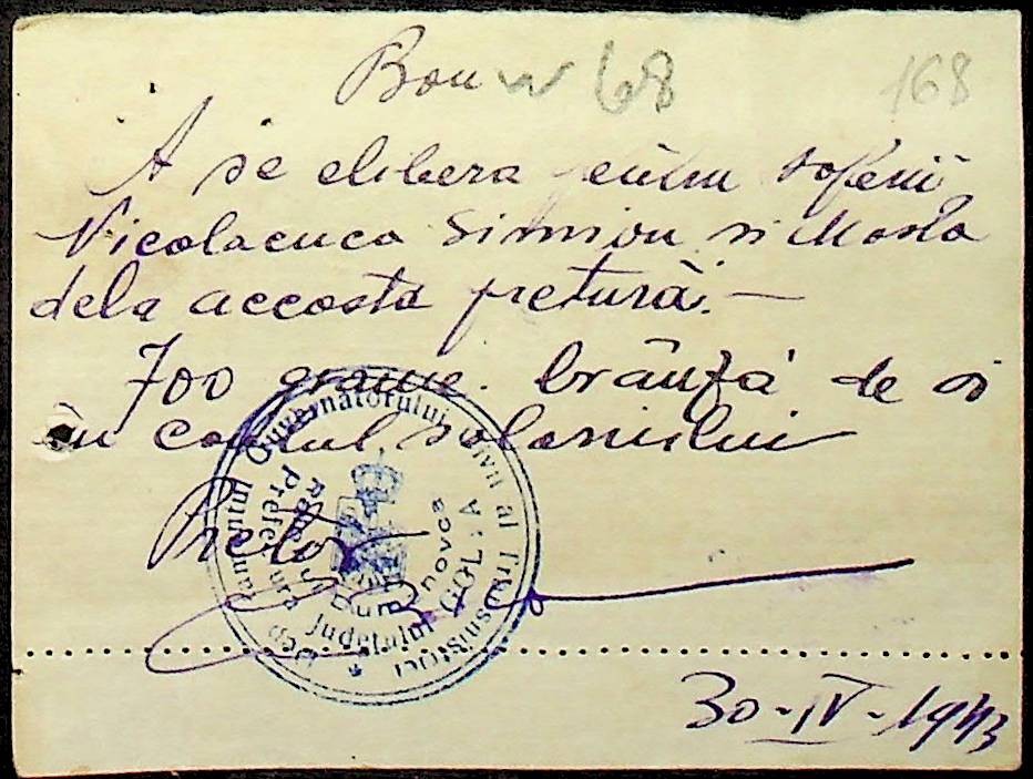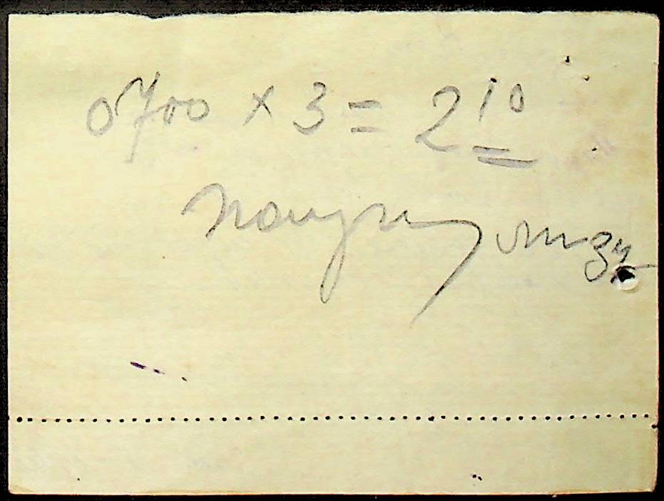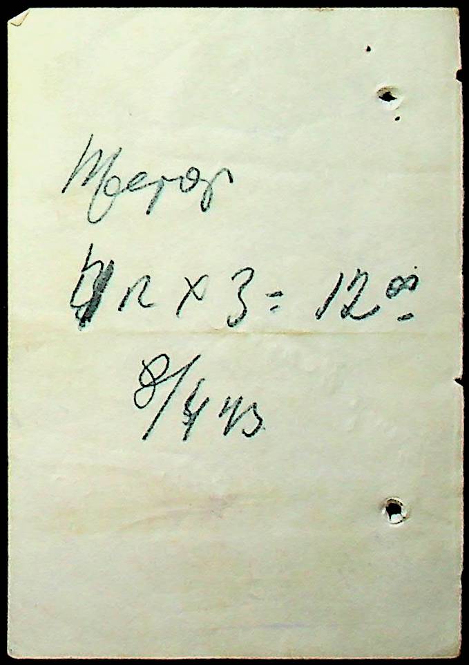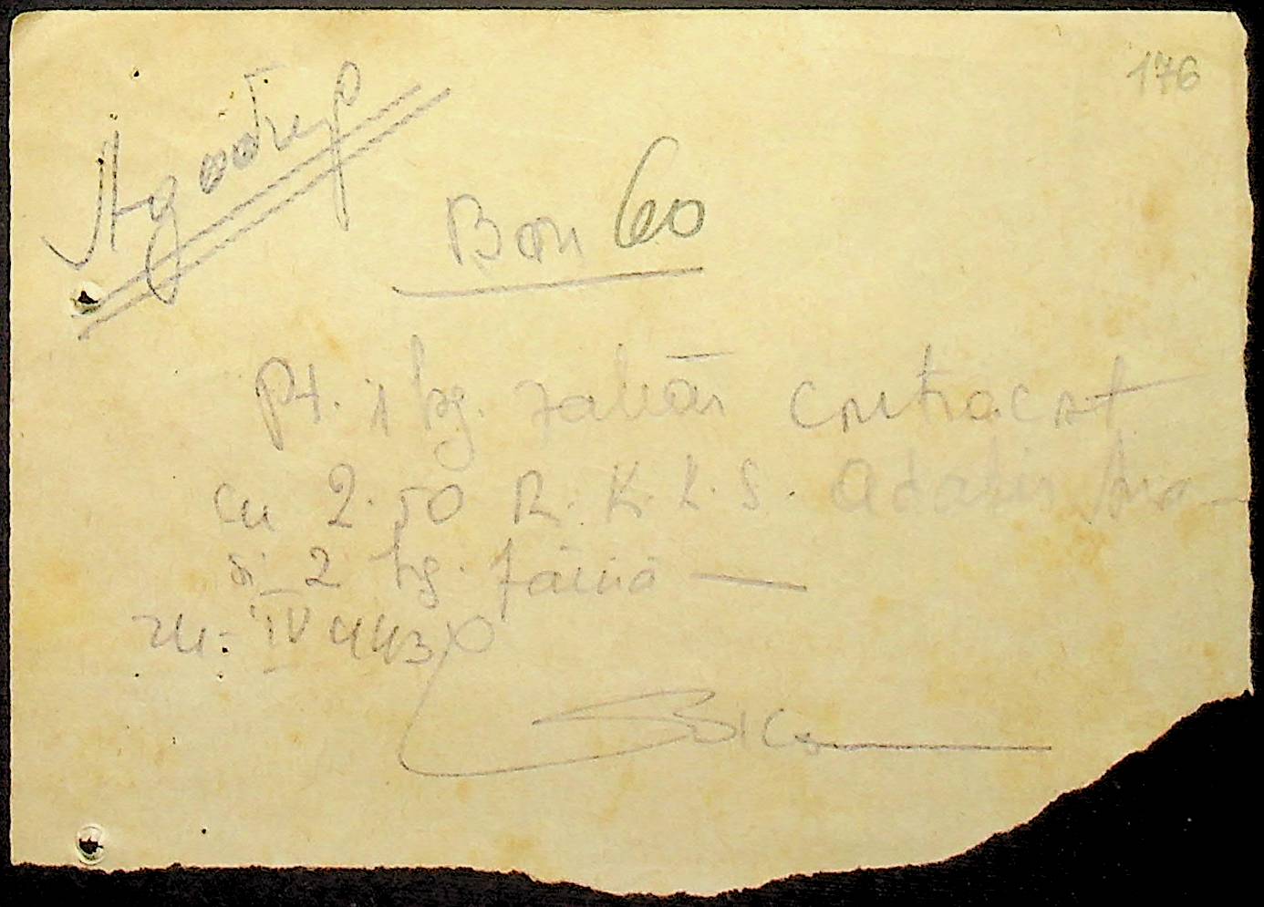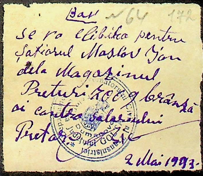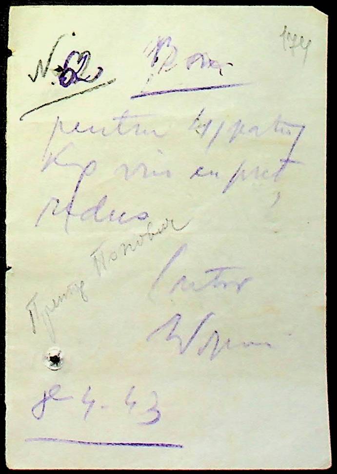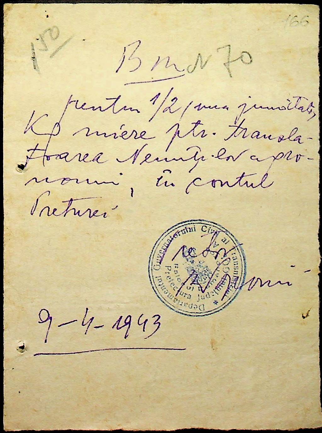 • • • • Справа № 11 “Первинні документи (квитанції, фактури, прибуткові та витратні ордери, вхідні ваучери, рахунки, товарно-грошові звіти) за 1943 рік. Відомості на видачу солі общинам, фермам, претурі, пекарні, бійні; про видачу товарів із магазинів в кредит, видачу м’яса сім’ям трактористів, які виїхали в Румунію. Акти про забій худоби, звіти про випікання хлібу”