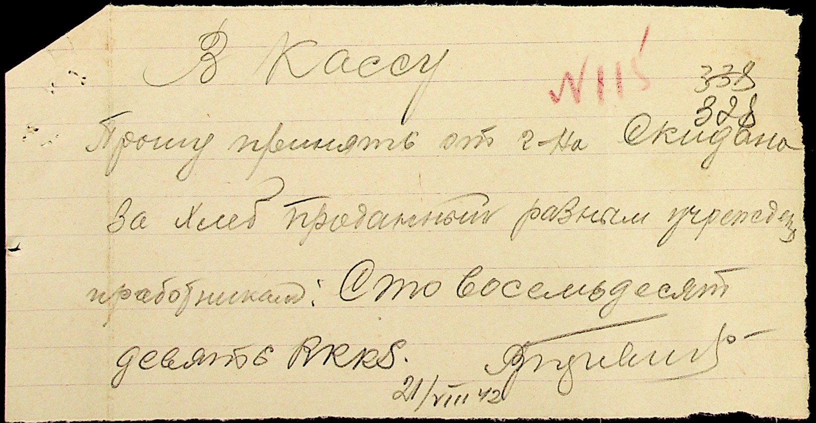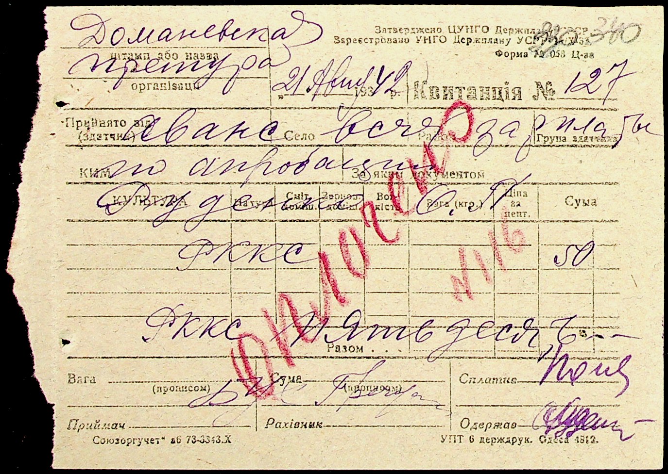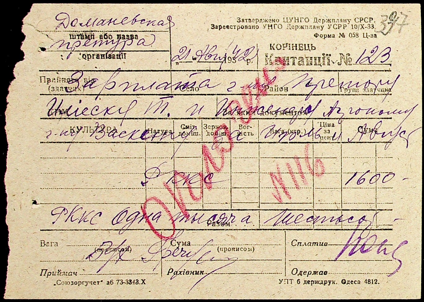 • • • • Справа № 15 “Відомості нарахування та виплати заробітної плати вчителям, медичним працівникам, працівникам млина та олійниці. Документи (довідки, доручення, заяви, касові звіти, квитанції) про фінансово-економічну діяльність Доманівської претури”
