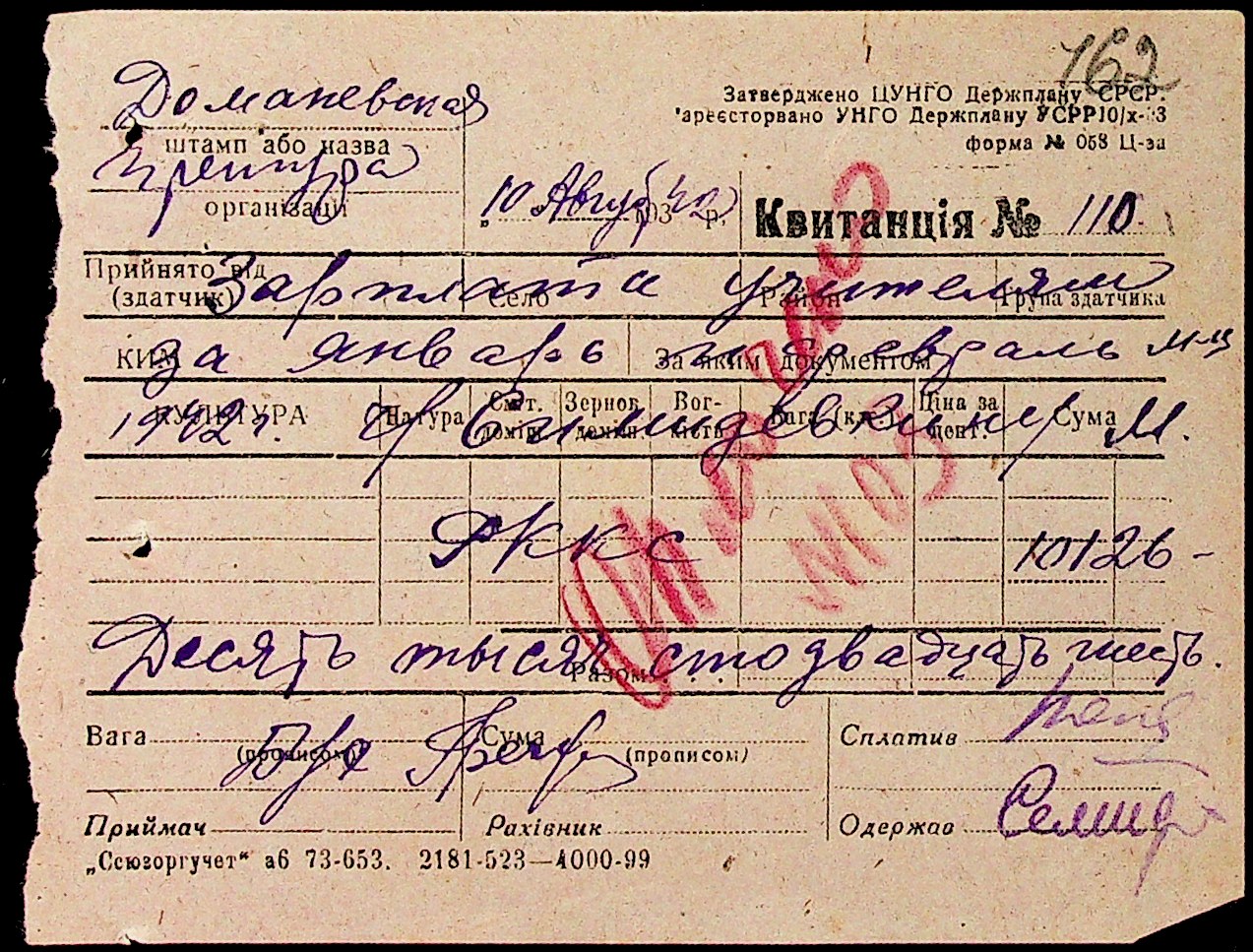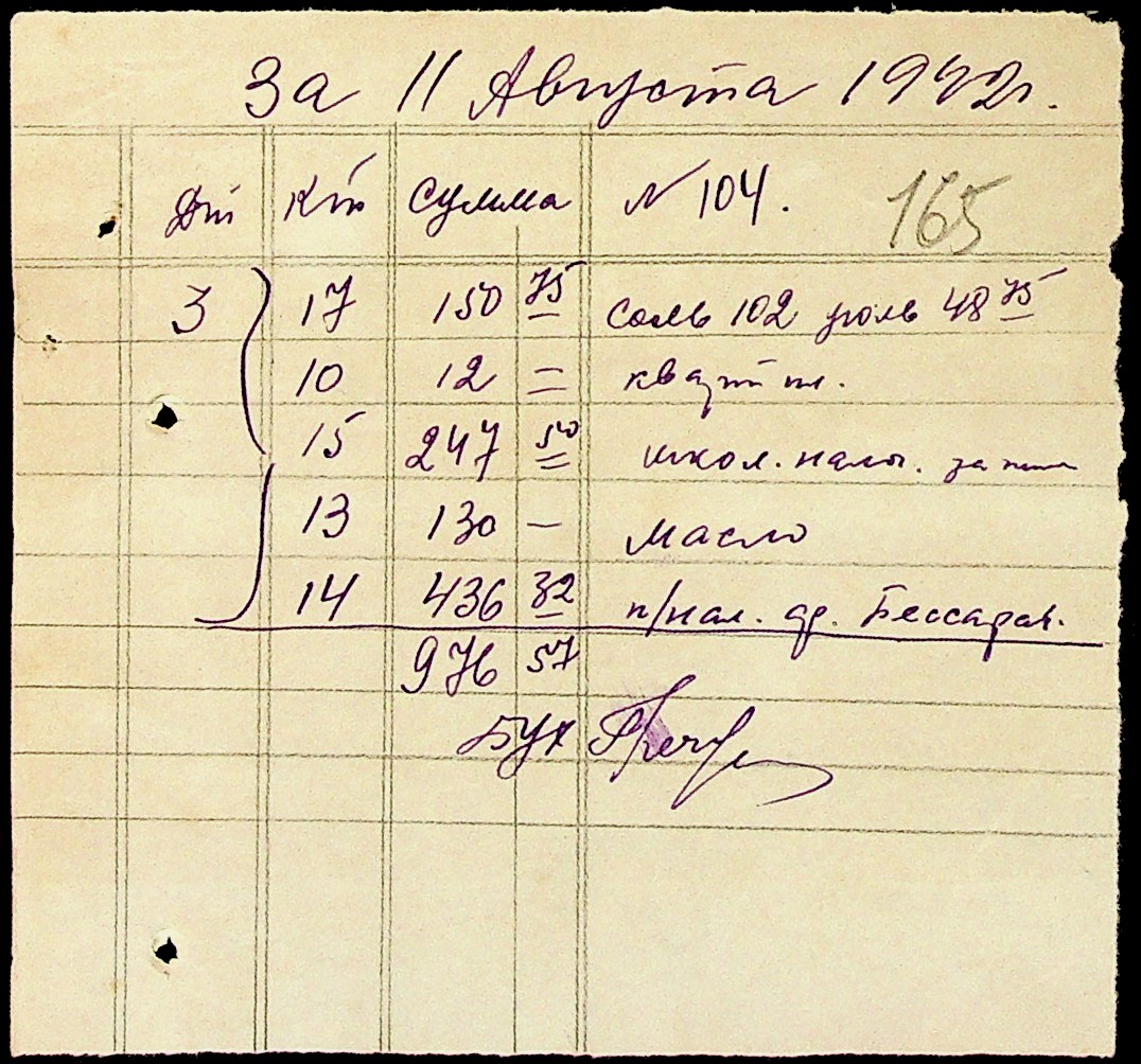 • • • • Справа № 15 “Відомості нарахування та виплати заробітної плати вчителям, медичним працівникам, працівникам млина та олійниці. Документи (довідки, доручення, заяви, касові звіти, квитанції) про фінансово-економічну діяльність Доманівської претури”