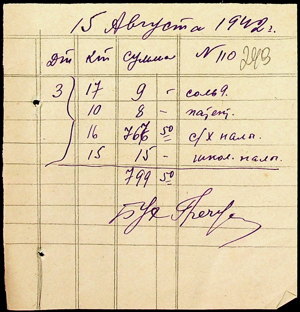 • • • • Справа № 15 “Відомості нарахування та виплати заробітної плати вчителям, медичним працівникам, працівникам млина та олійниці. Документи (довідки, доручення, заяви, касові звіти, квитанції) про фінансово-економічну діяльність Доманівської претури”