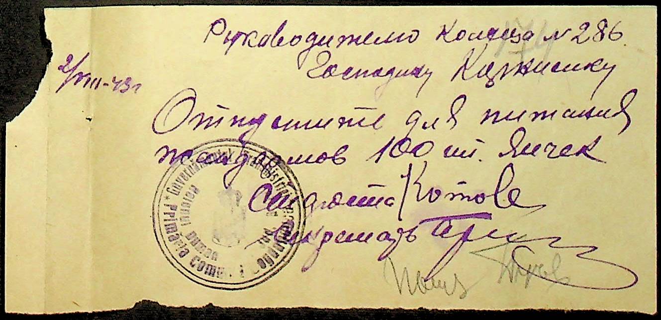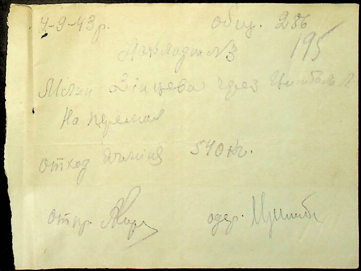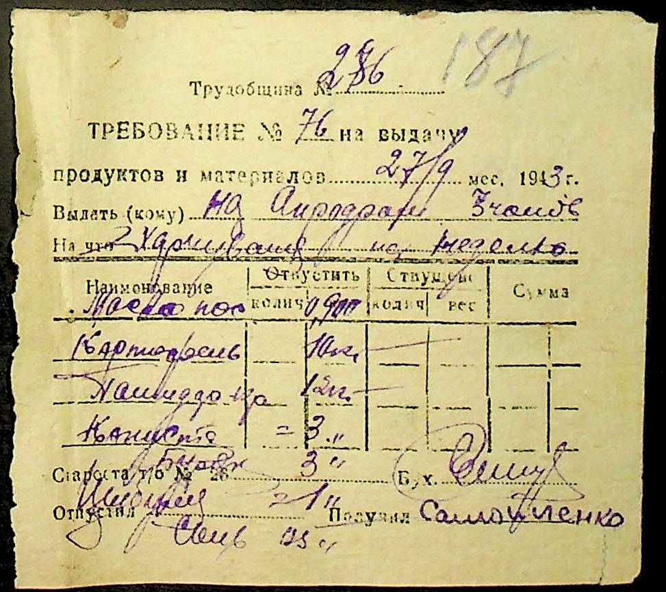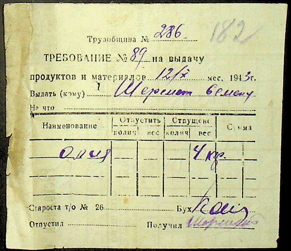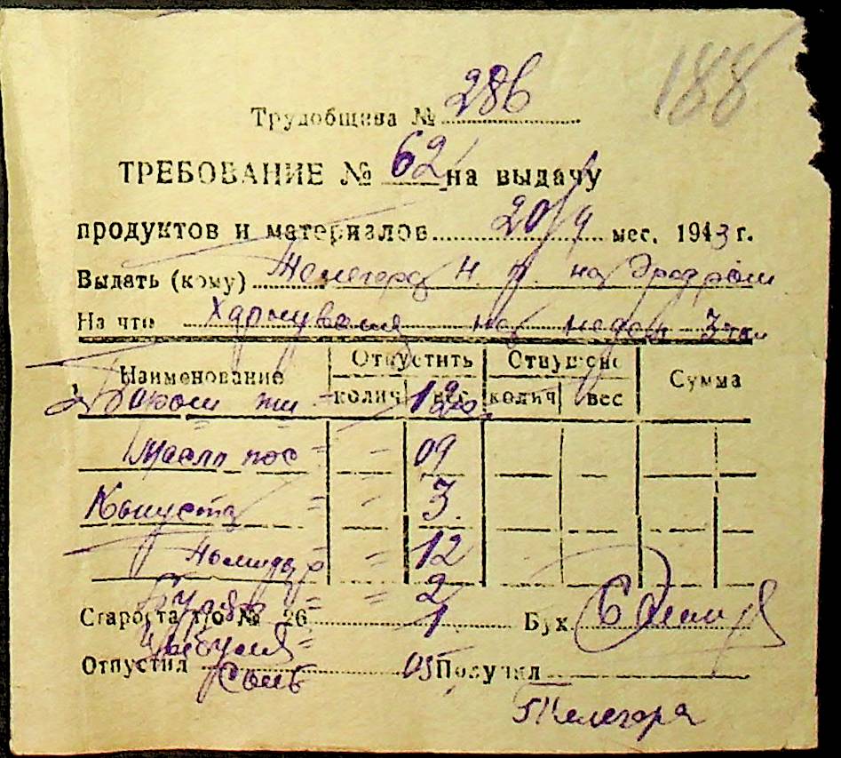 • • • • Справа № 26 “Документи (касові документи, квитанції, товарні чеки, акти, щоденники молотьби, накладні, наряди, довіреності) про отримання сортового насіннєвого матеріалу в обмін на ячмінь в трудовій общині № 286 Богданівської сільської управи. Відомості реєстрації накладних на видачу пшениці з комори та відомості на видачу озимої пшениці в рахунок трудоднів членам трудової общини № 286”