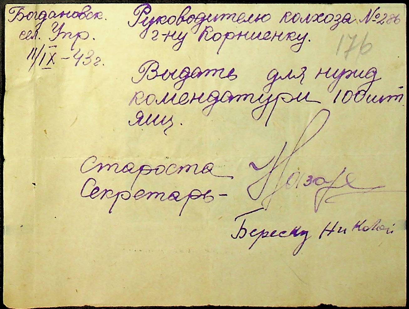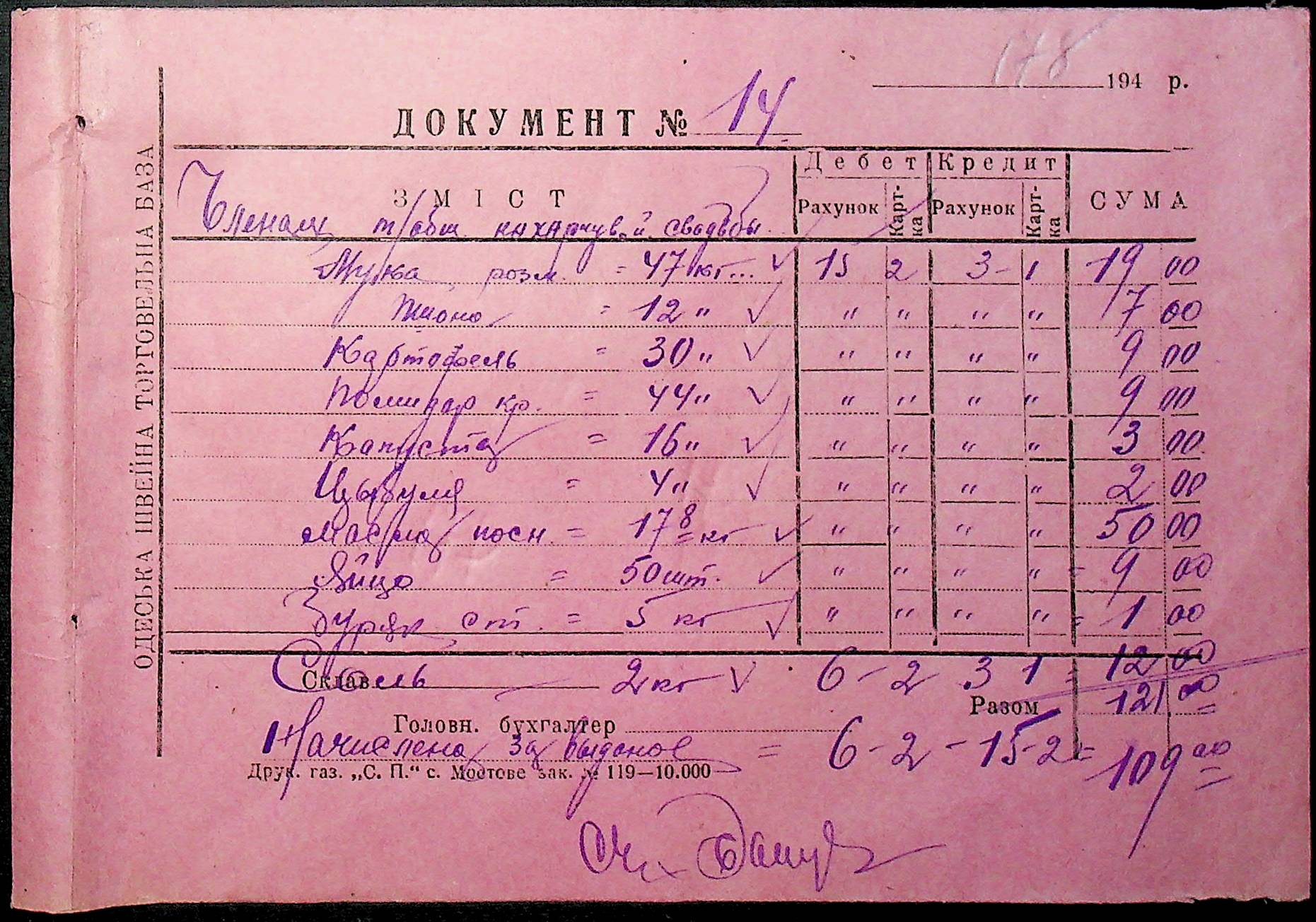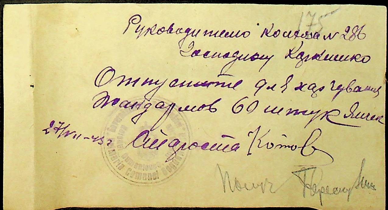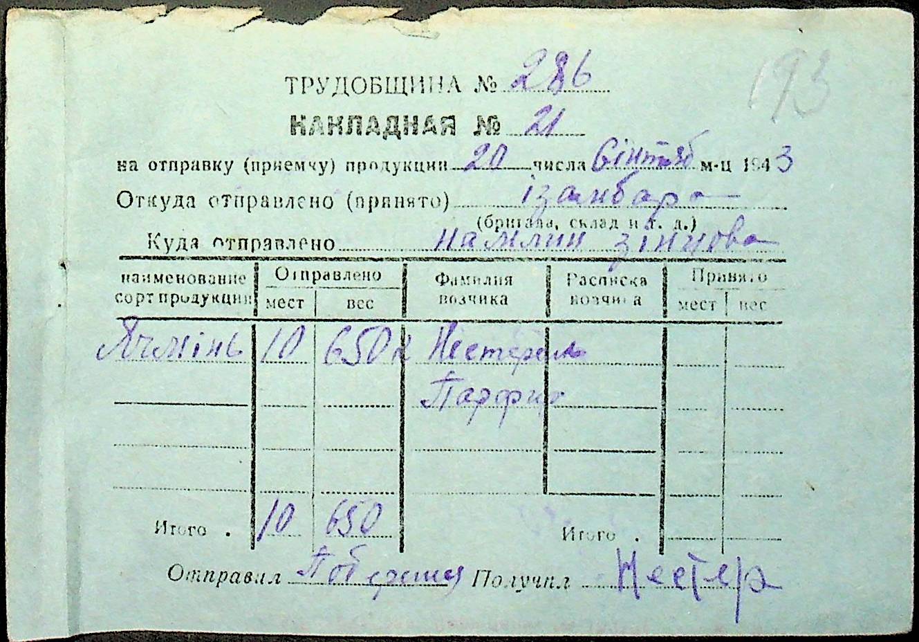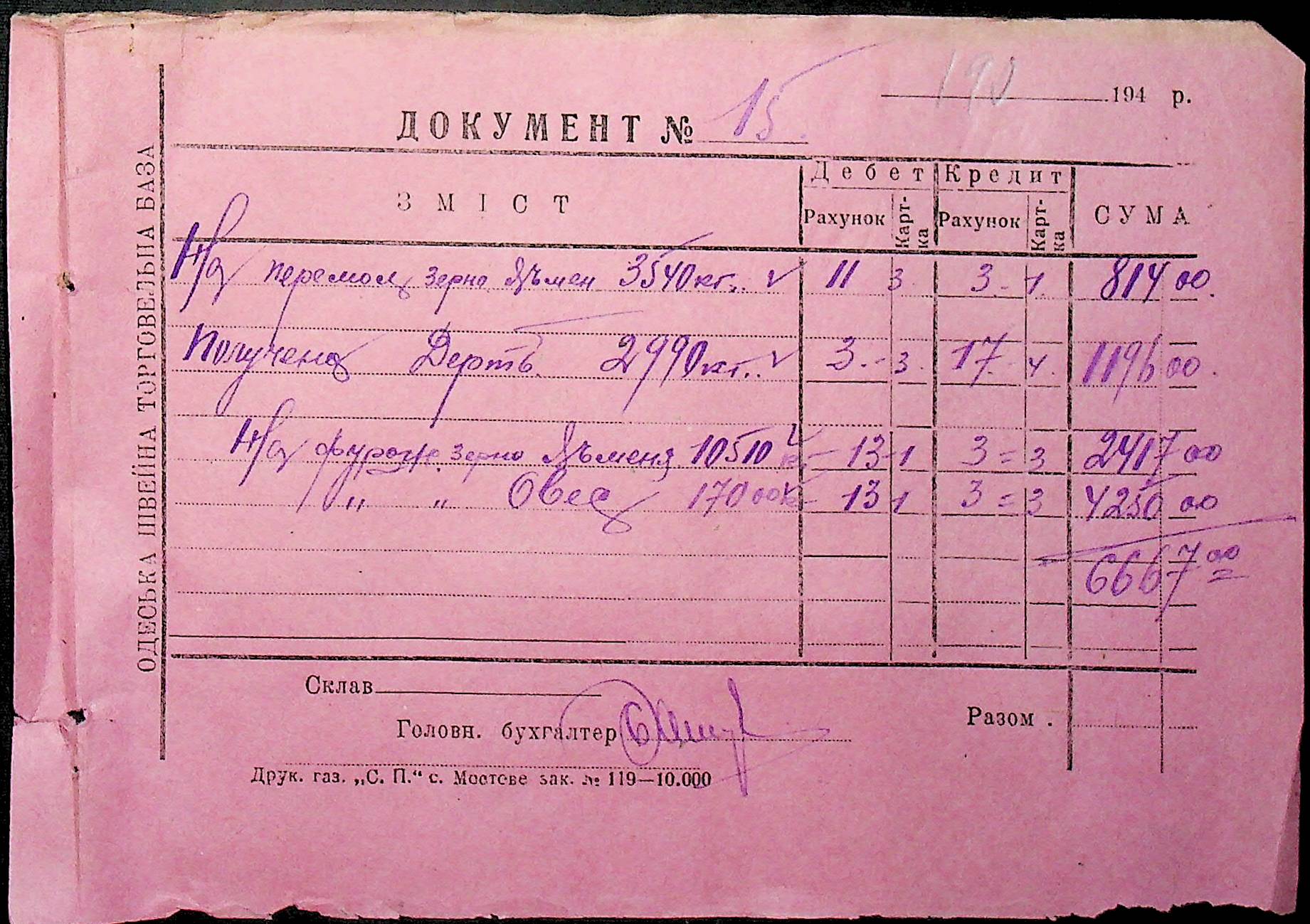 • • • • Справа № 26 “Документи (касові документи, квитанції, товарні чеки, акти, щоденники молотьби, накладні, наряди, довіреності) про отримання сортового насіннєвого матеріалу в обмін на ячмінь в трудовій общині № 286 Богданівської сільської управи. Відомості реєстрації накладних на видачу пшениці з комори та відомості на видачу озимої пшениці в рахунок трудоднів членам трудової общини № 286”