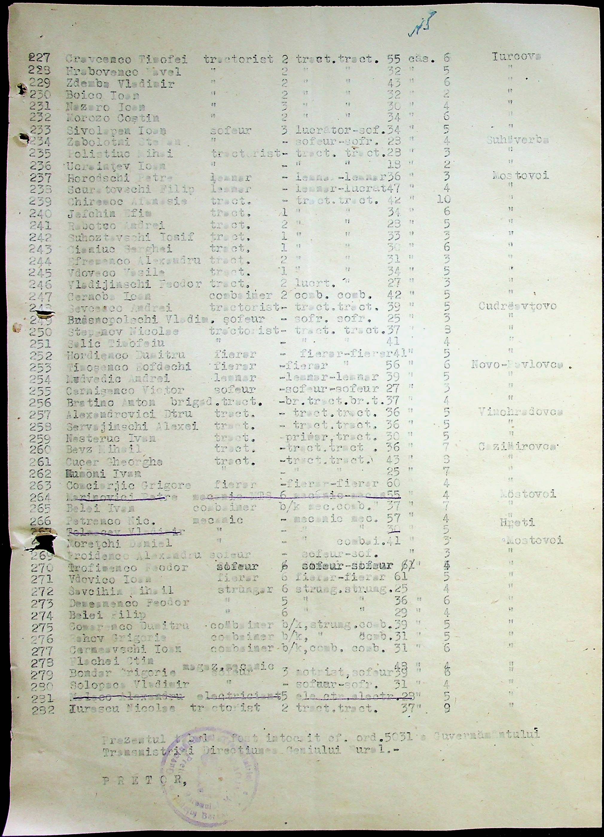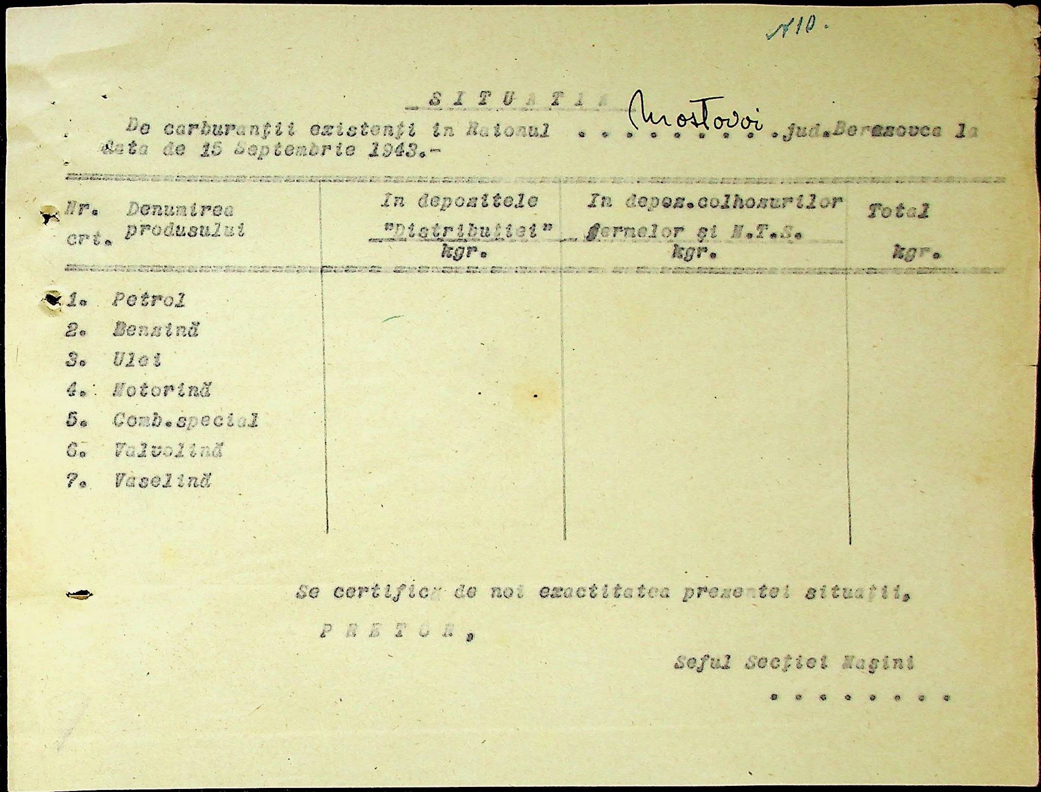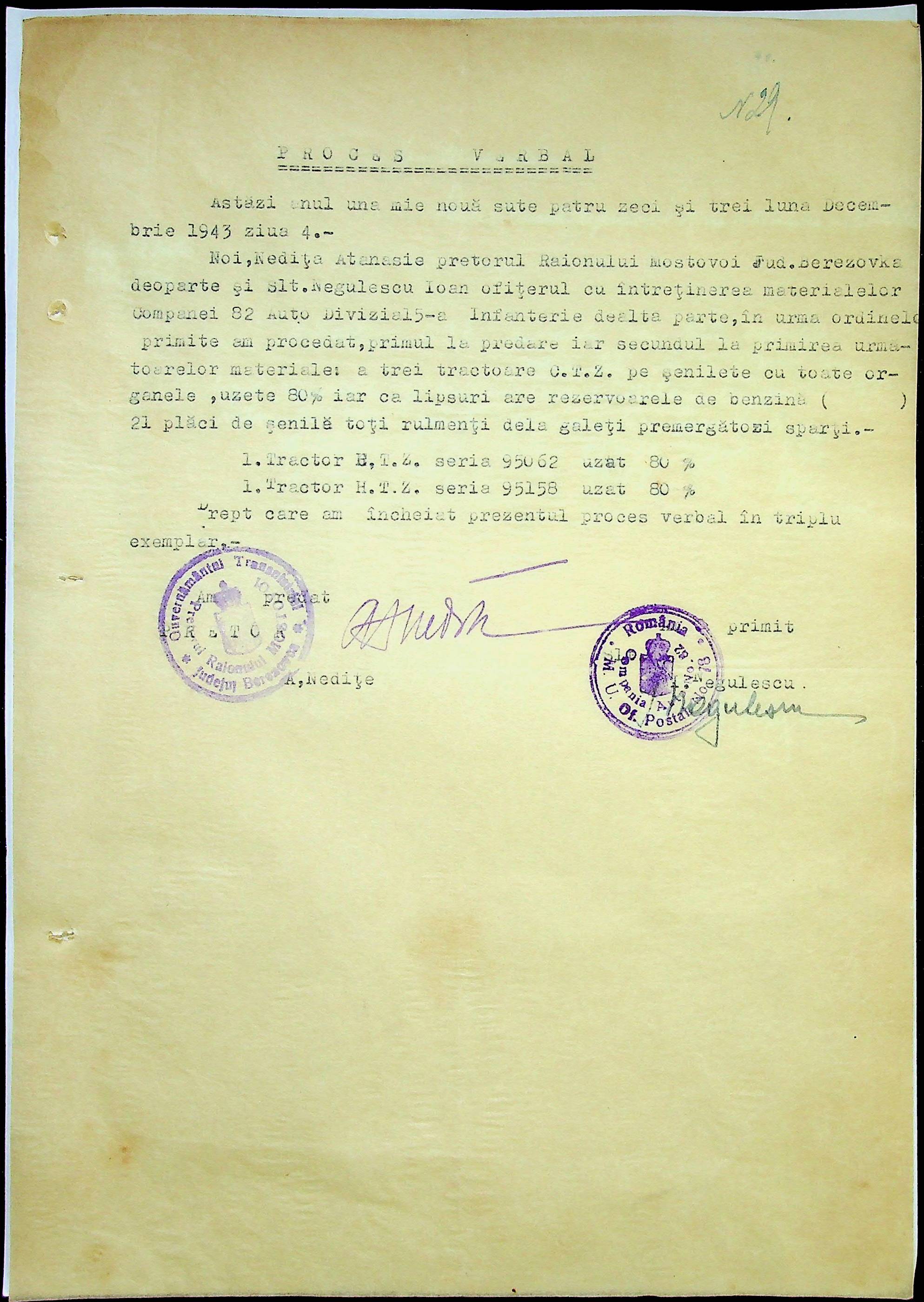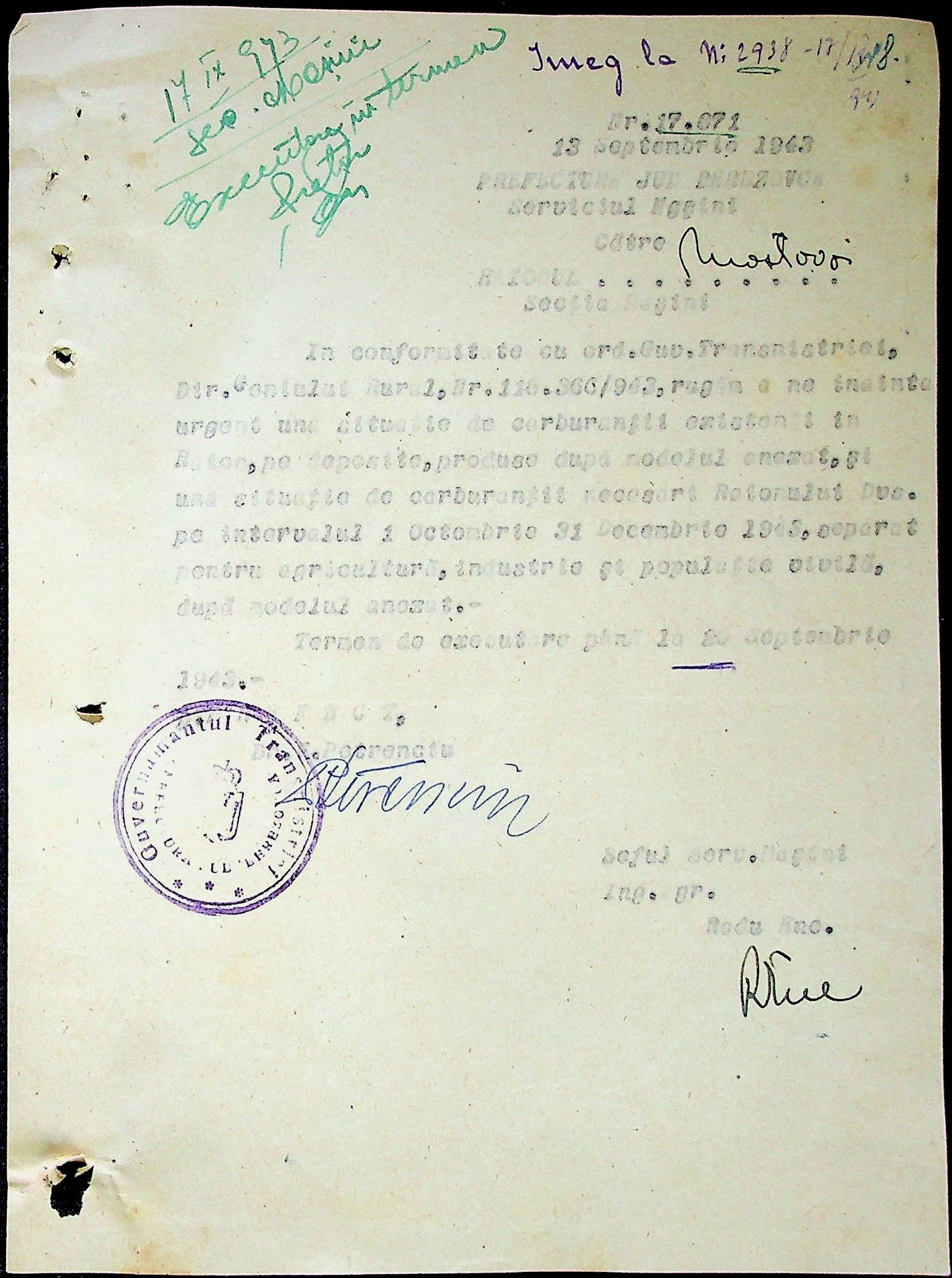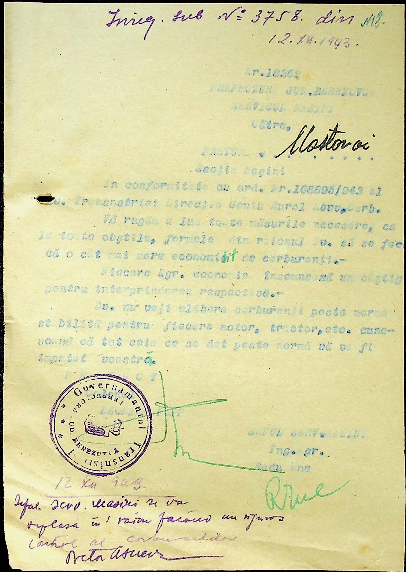• • • • Справа № 1 “Накази, постанови, розпорядження, обіжники Губернаторства Трансністрії, інструкції префектури та листування з машинним відділом з адміністративно-господарських питань, списки спеціалістів Мостовського району на 1943 рік”