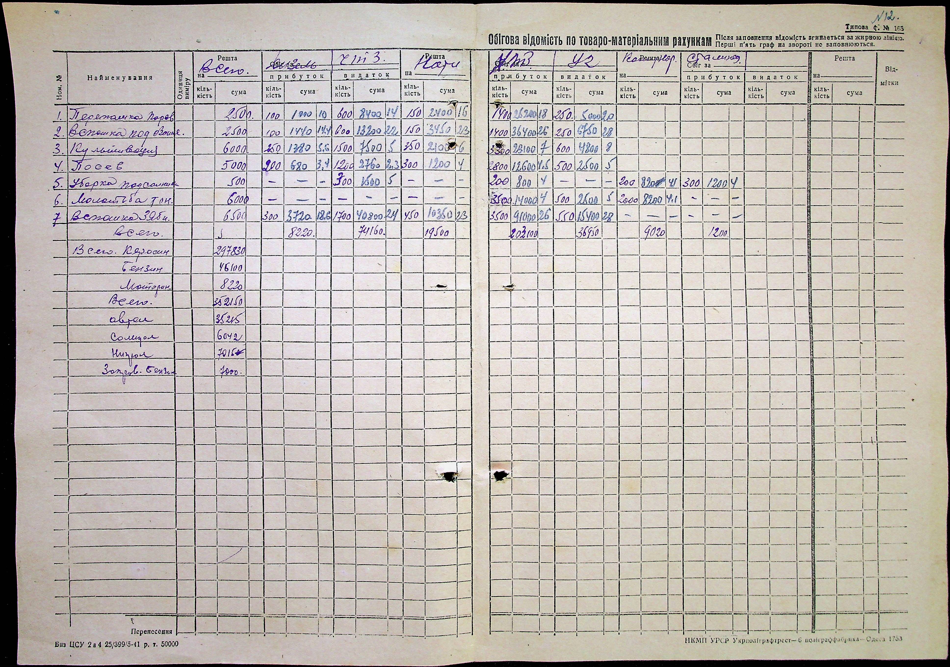 ◦ ◦ ◦ Опис № 1 справ постійного зберігання за 1941–1944 роки