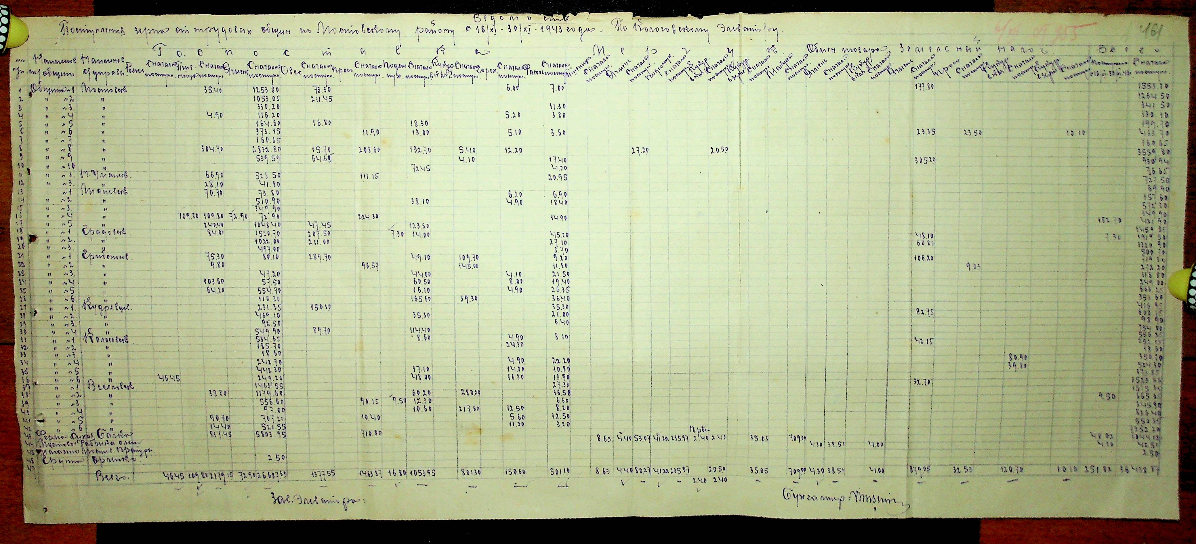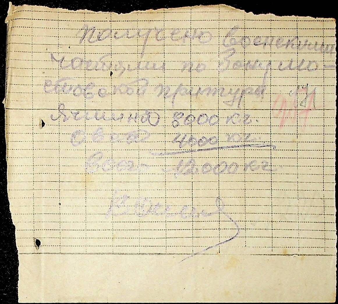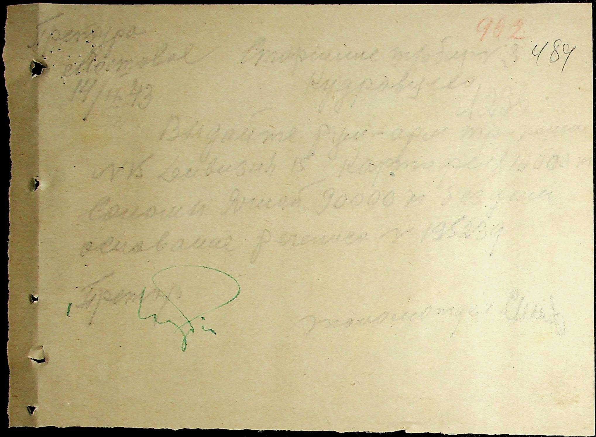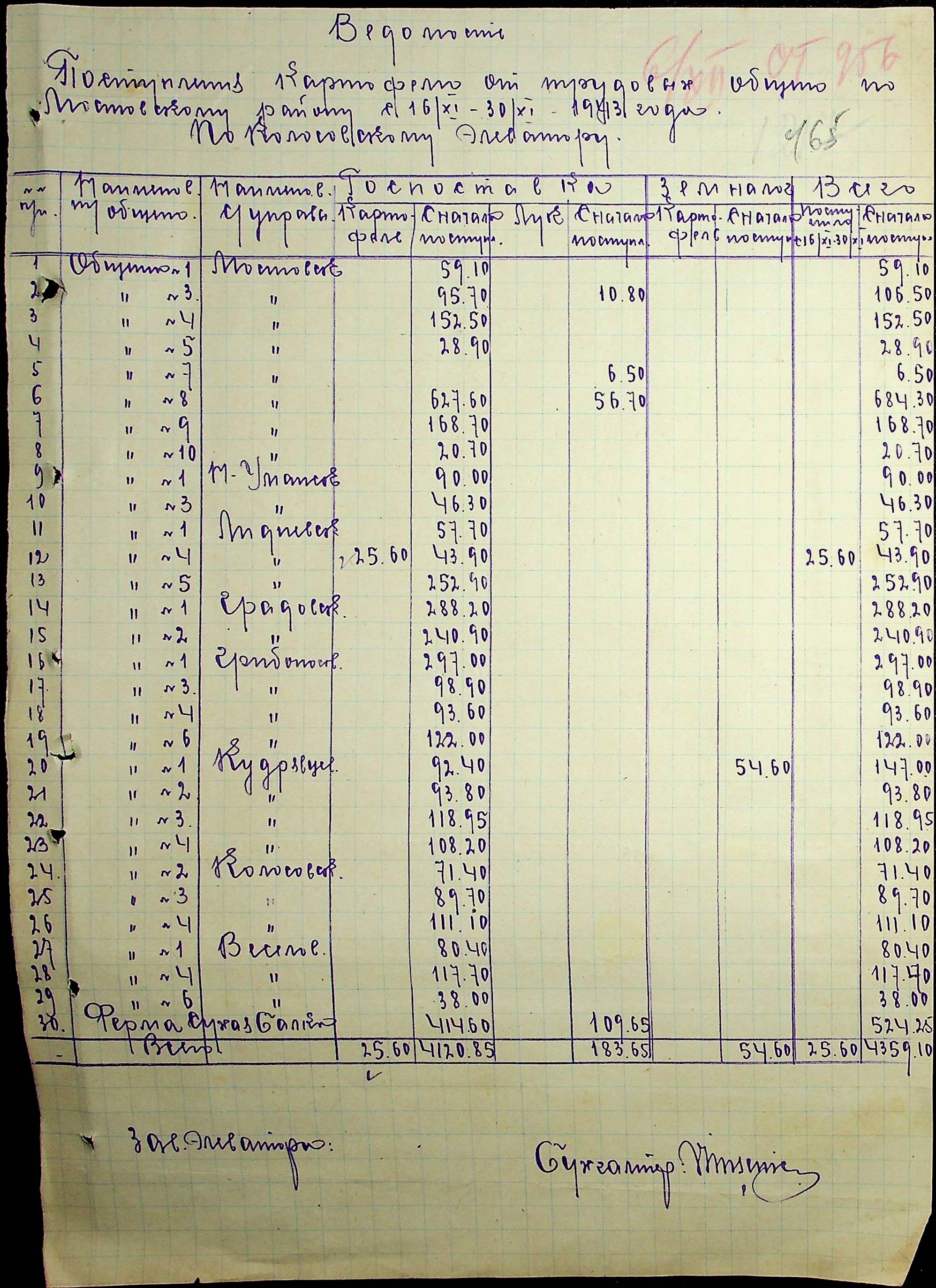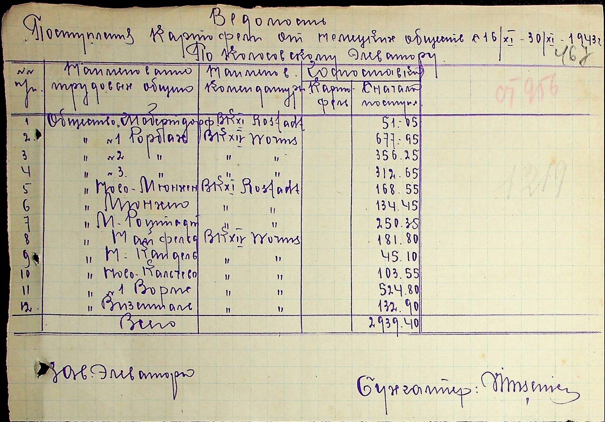 • • • • Справа № 23а Листування претури Мостівського району з установами, підприємствами і трудовими общинами про видачу продуктів службовцям румунських установ та німецькій армії. Звіти та відомості про надходження зерна, картоплі від трудових общин. Відомость про видачу продуктів євреям-майстровим. Списки худоби, вивезеної до Румунії