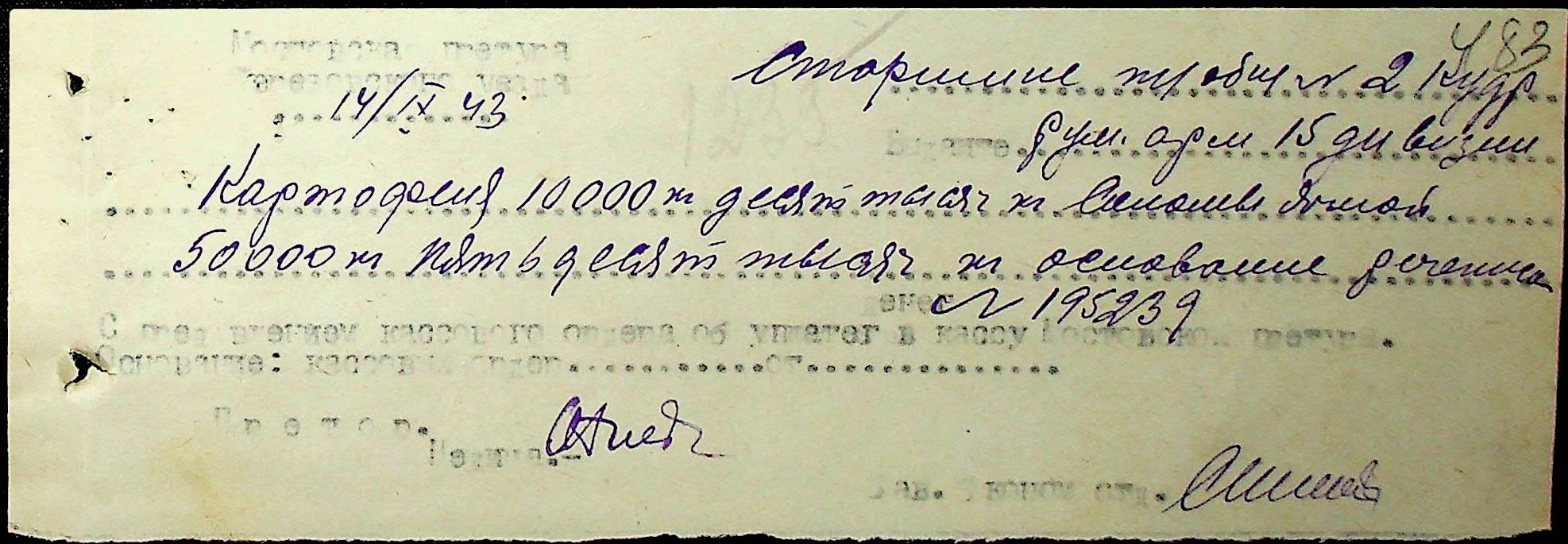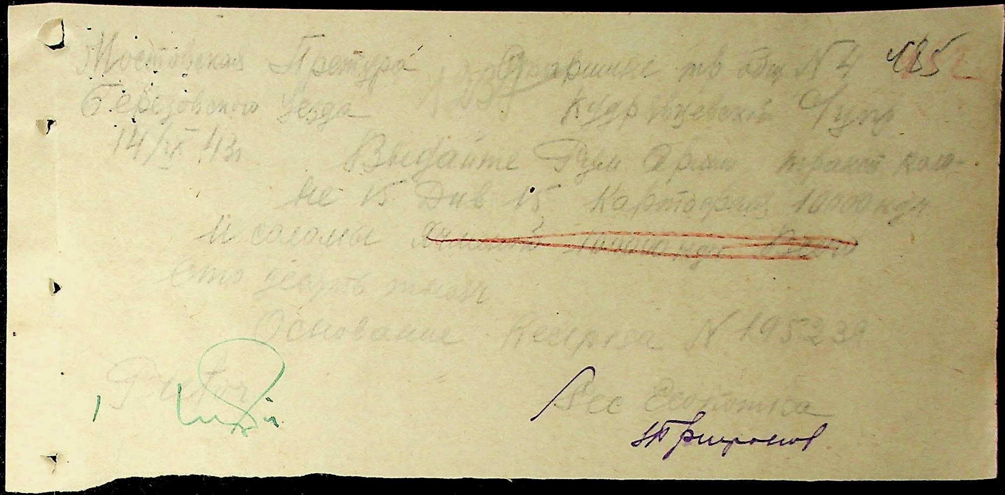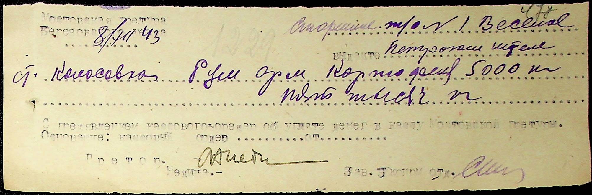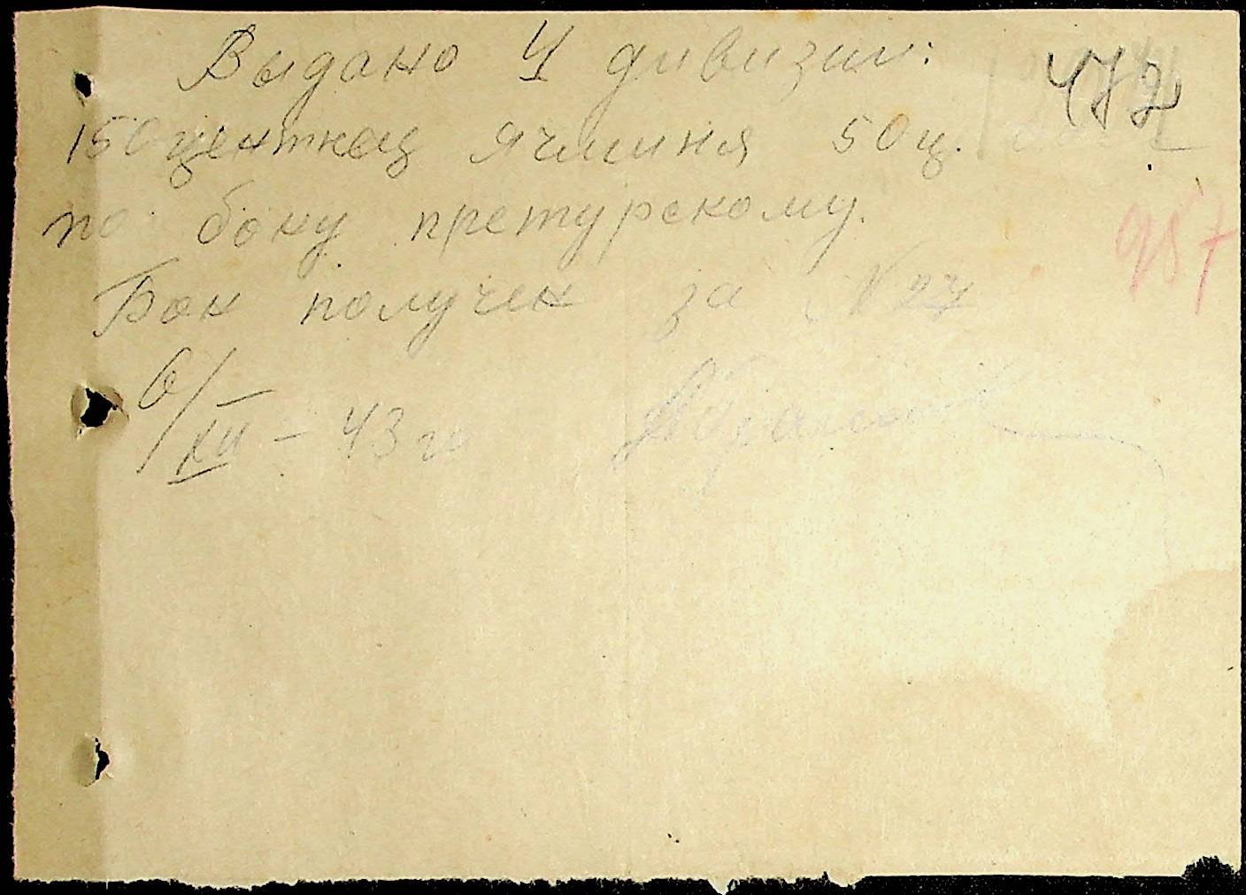 • • • • Справа № 23а Листування претури Мостівського району з установами, підприємствами і трудовими общинами про видачу продуктів службовцям румунських установ та німецькій армії. Звіти та відомості про надходження зерна, картоплі від трудових общин. Відомость про видачу продуктів євреям-майстровим. Списки худоби, вивезеної до Румунії